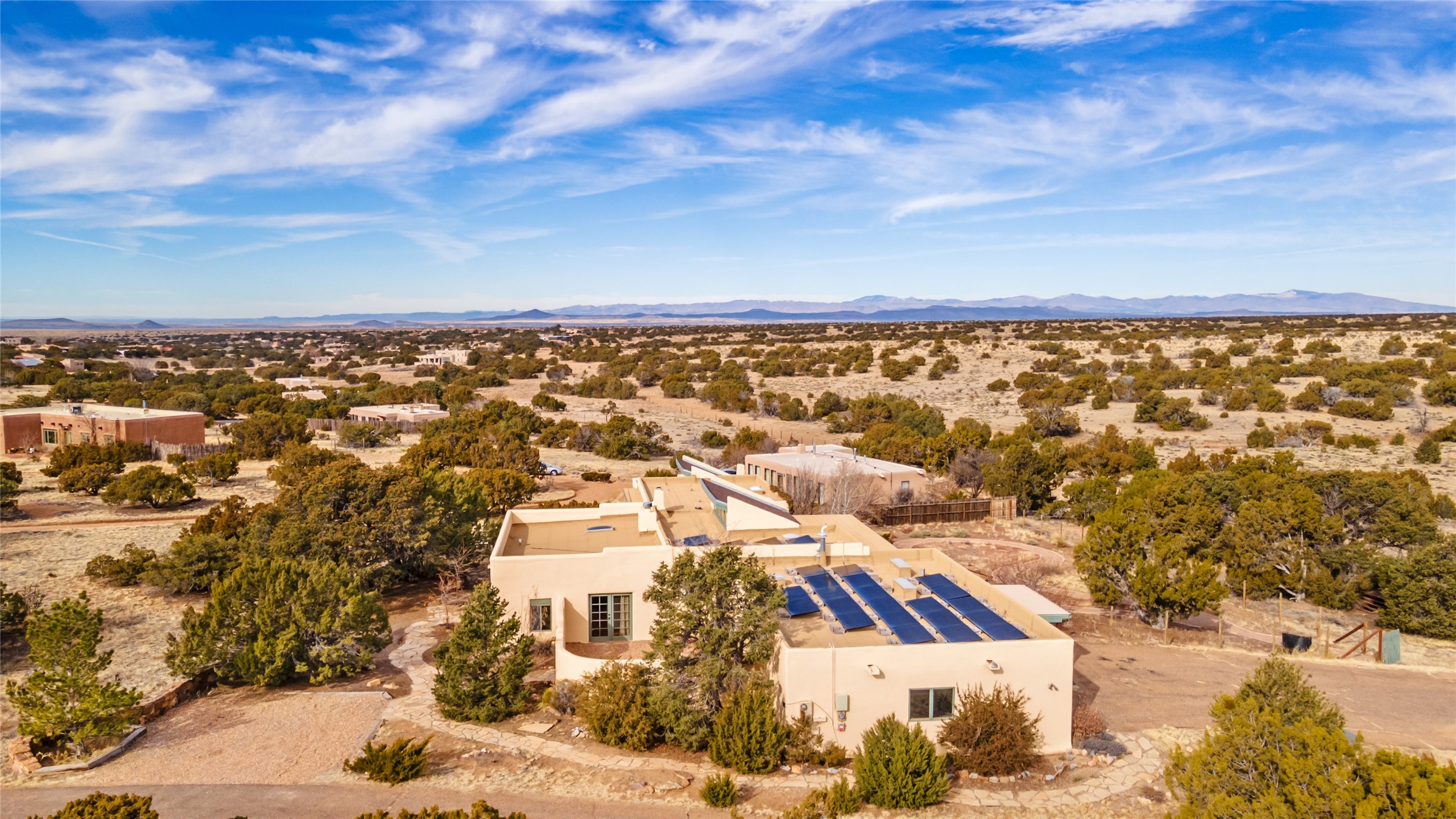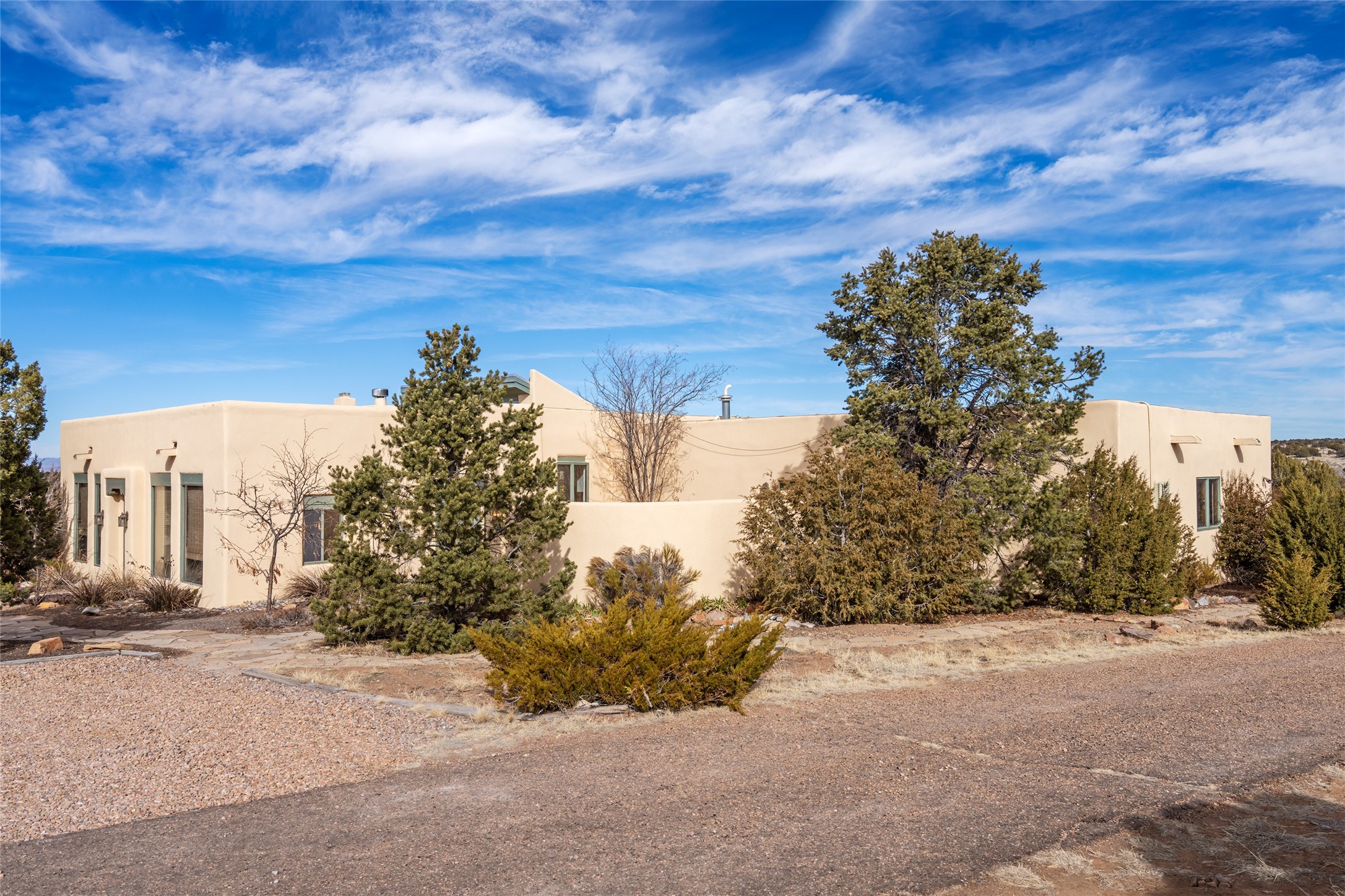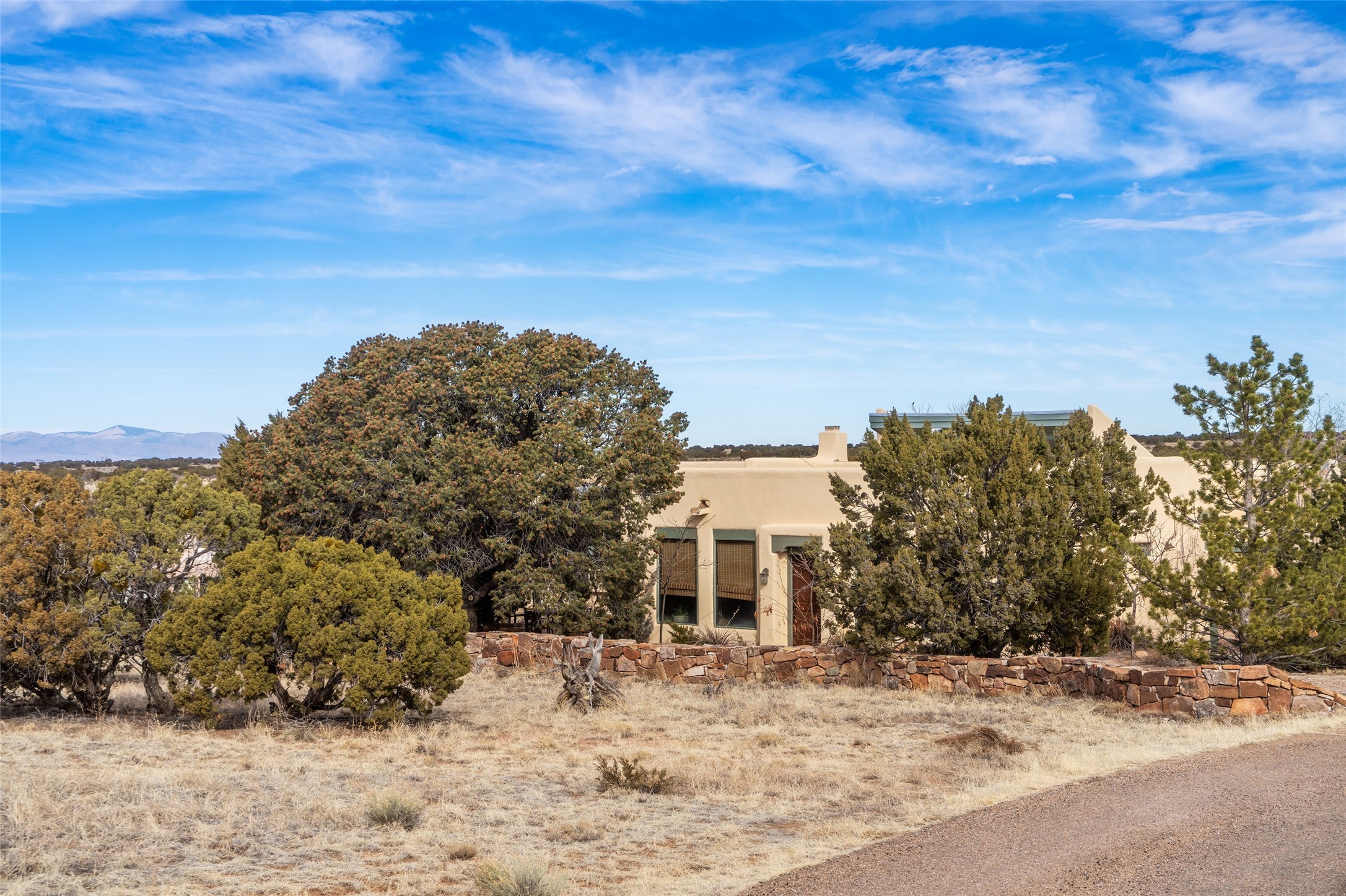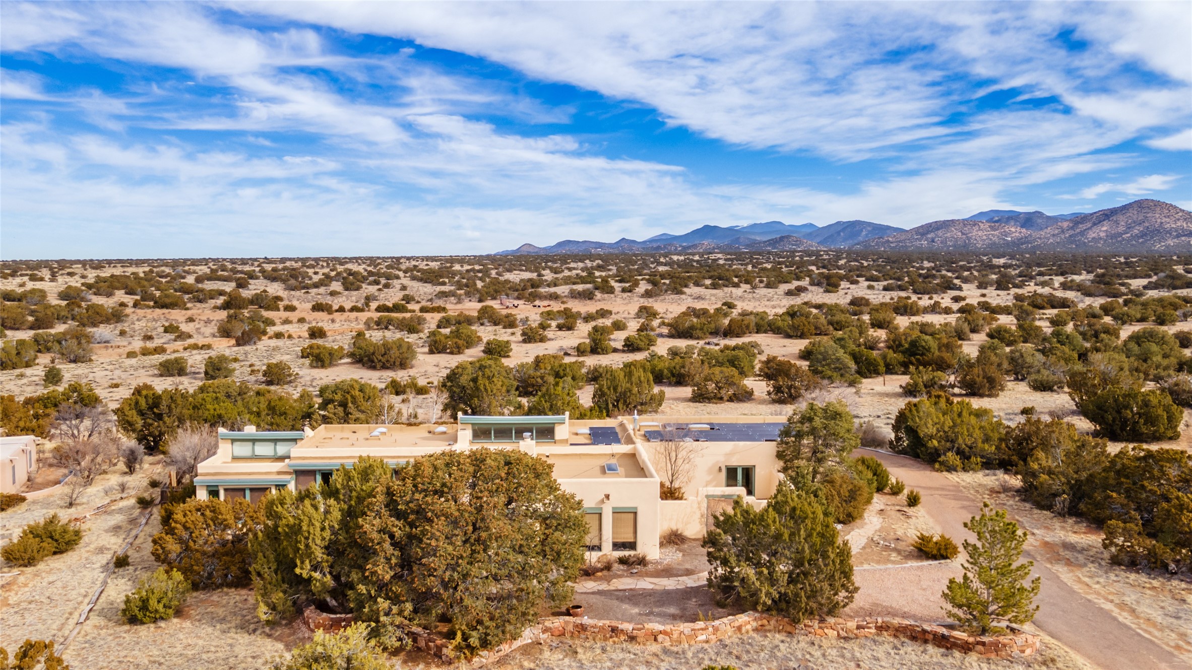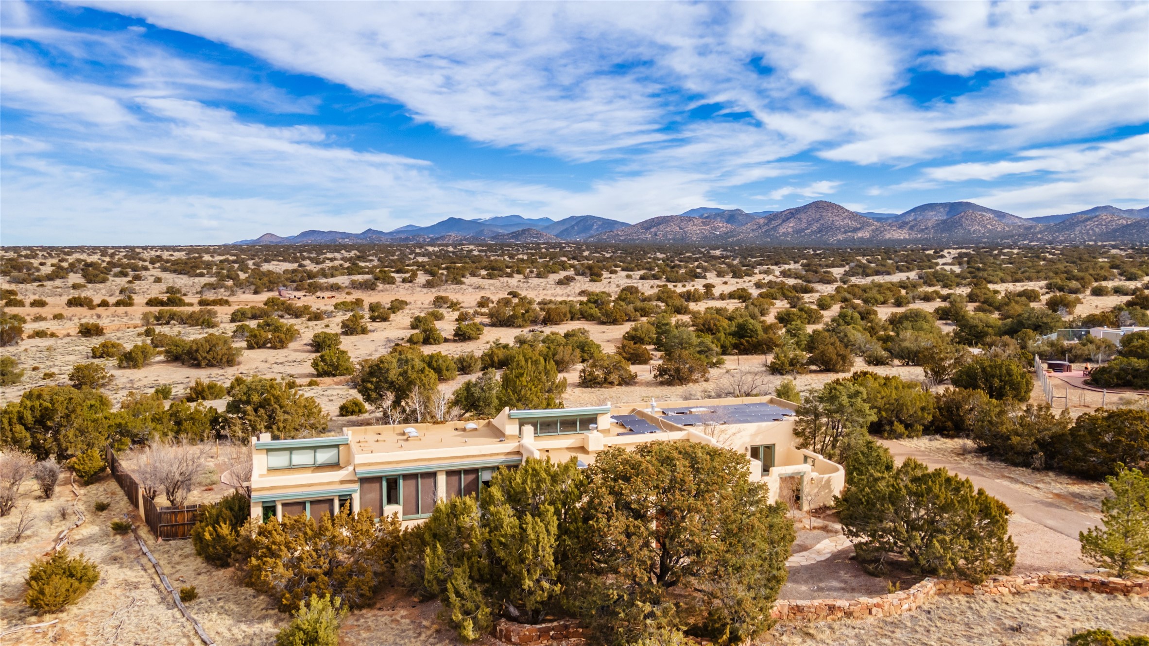 Welcome to 22 Alcalde Rd, a breathtaking 3,404 sq. ft. Southwestern-style home nestled in the heart of Eldorado at Santa Fe. This exquisite 4-bedroom, 3-bath residence captures the essence of Santa Fe living with its warm adobe charm, stunning mountain views, and elegant design details.Step inside to discover two inviting living areas, each featuring a gorgeous Kiva fireplace, creating a cozy ambiance perfect for relaxing or entertaining. The spacious primary suite is a true sanctuary, boasting a grand Kiva fireplace, luxurious en-suite bath, and double doors that open onto a private deck--where you can take in the sweeping views of the Sangre de Cristo Mountain foothills.Throughout the home, you'll find lovely architectural accents, including vigas, Saltillo tile, and custom woodwork, adding to its authentic charm. The well-appointed kitchen and dining areas provide the perfect blend of style and function, ideal for hosting gatherings or enjoying quiet evenings at home.Situated in the sought-after Eldorado community, this property offers access to miles of trails, scenic open spaces, and a vibrant arts scene--all while being just a short drive to downtown Santa Fe.Come experience the magic of this stunning home.