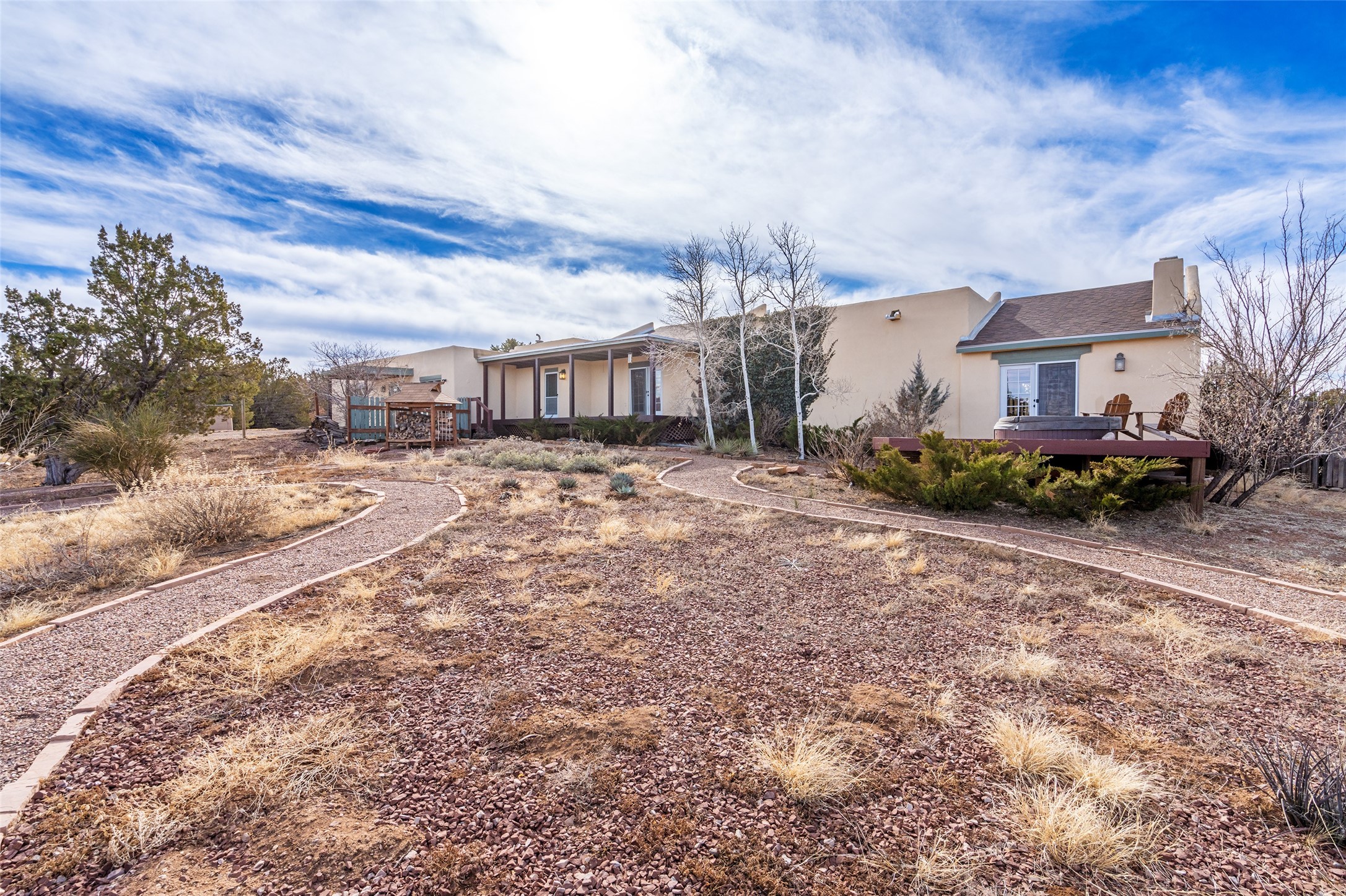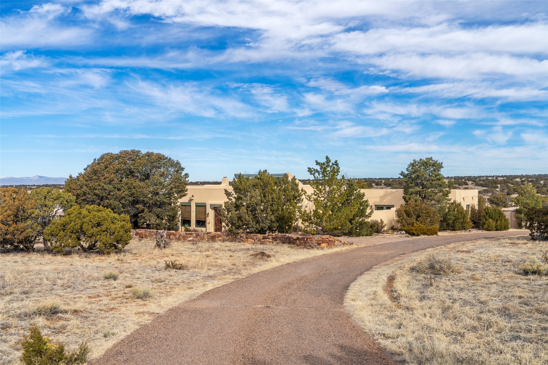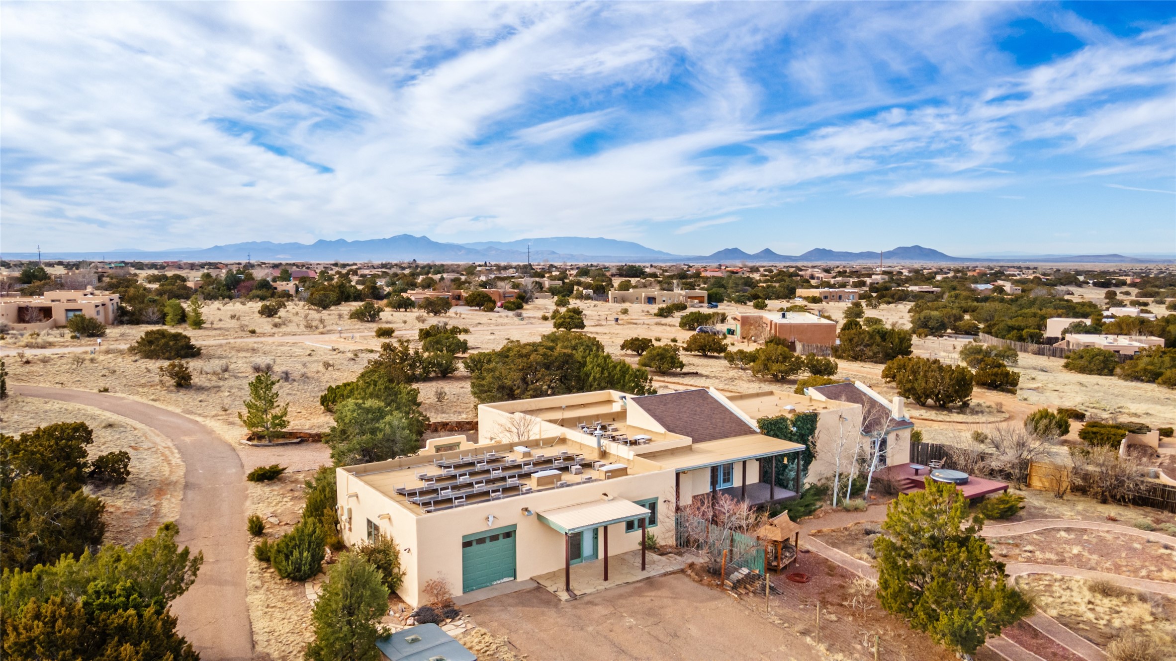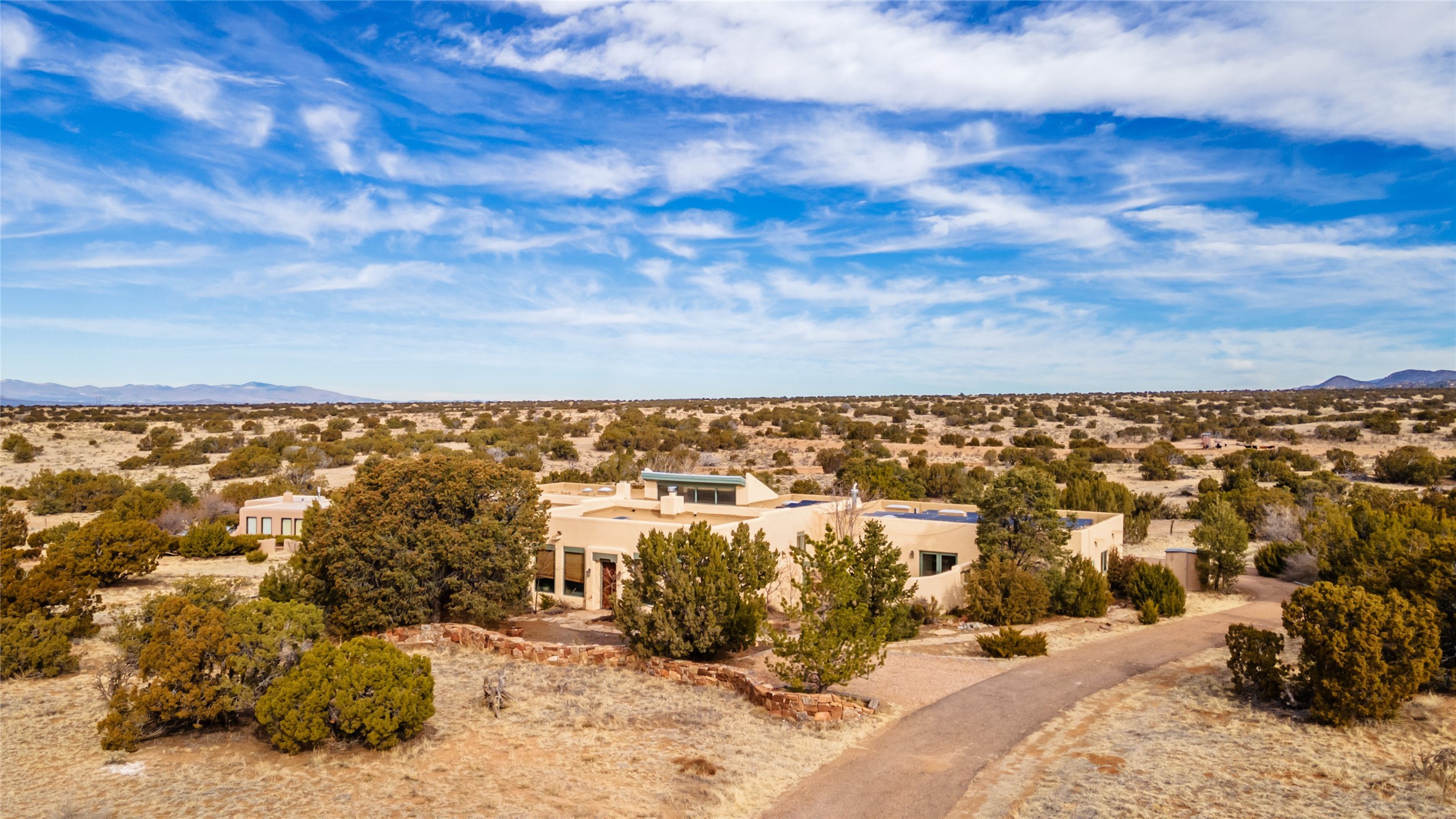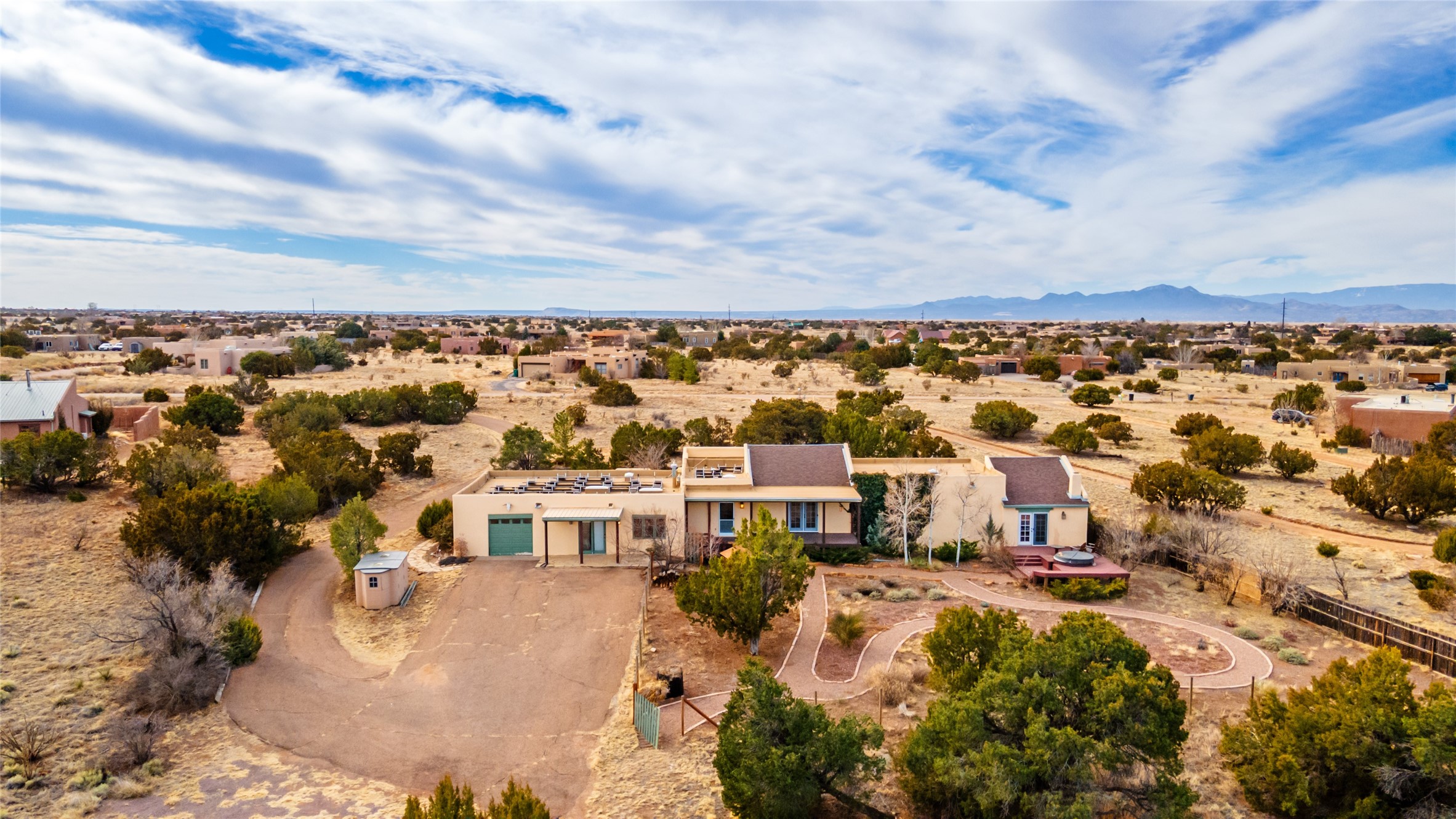 Welcome to 22 Alcalde Rd, a breathtaking 3,404 sq. ft. Southwestern-style home nestled in the heart of Eldorado at Santa Fe. This exquisite 4-bedroom, 3-bath residence captures the essence of Santa Fe living with its warm adobe charm, stunning mountain views, and elegant design details.Step inside to discover two inviting living areas, each featuring a gorgeous Kiva fireplace, creating a cozy ambiance perfect for relaxing or entertaining. The spacious primary suite is a true sanctuary, boasting a grand Kiva fireplace, luxurious en-suite bath, and double doors that open onto a private deck--where you can take in the sweeping views of the Sangre de Cristo Mountain foothills.Throughout the home, you'll find lovely architectural accents, including vigas, Saltillo tile, and custom woodwork, adding to its authentic charm. The well-appointed kitchen and dining areas provide the perfect blend of style and function, ideal for hosting gatherings or enjoying quiet evenings at home.Situated in the sought-after Eldorado community, this property offers access to miles of trails, scenic open spaces, and a vibrant arts scene--all while being just a short drive to downtown Santa Fe.Come experience the magic of this stunning home.