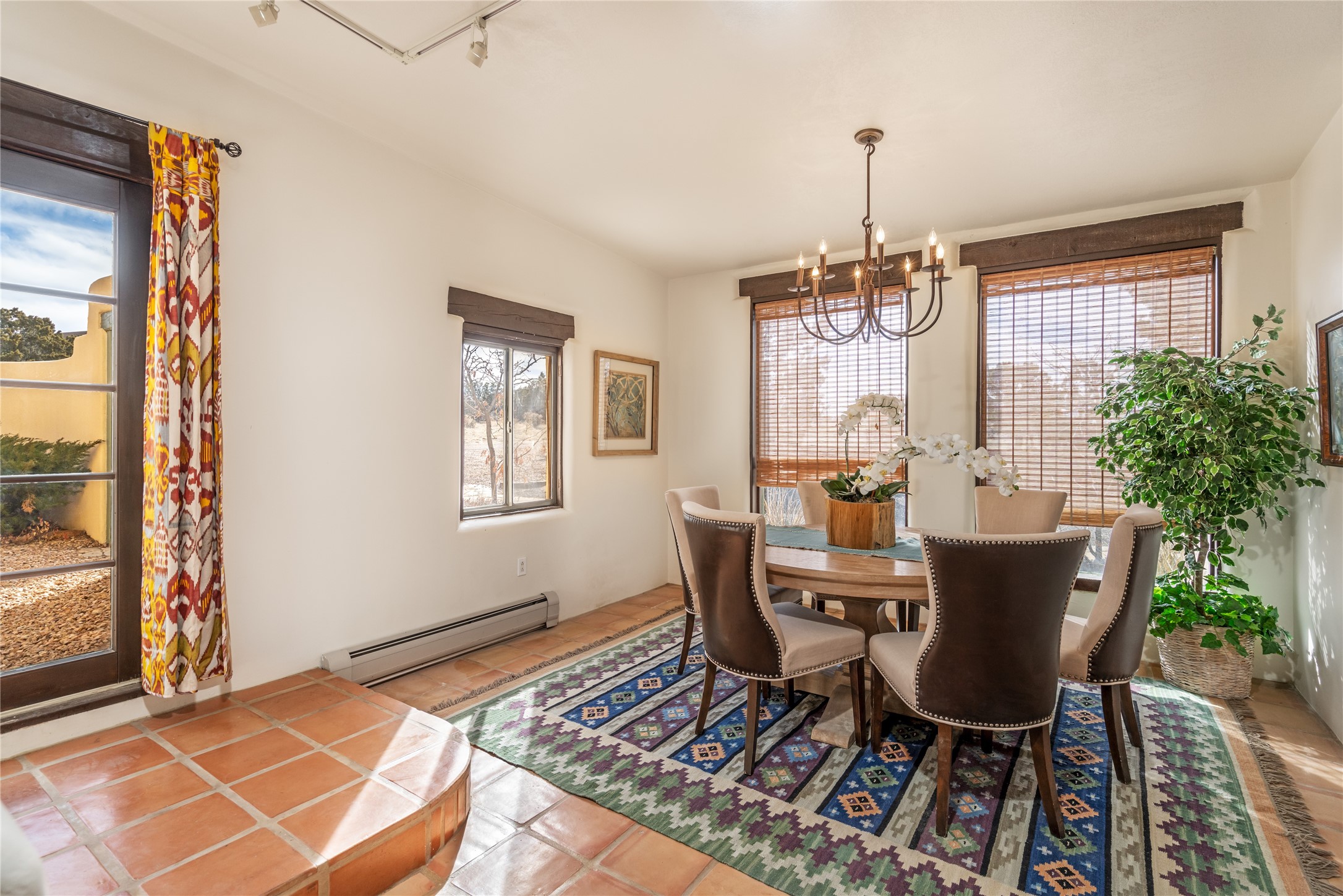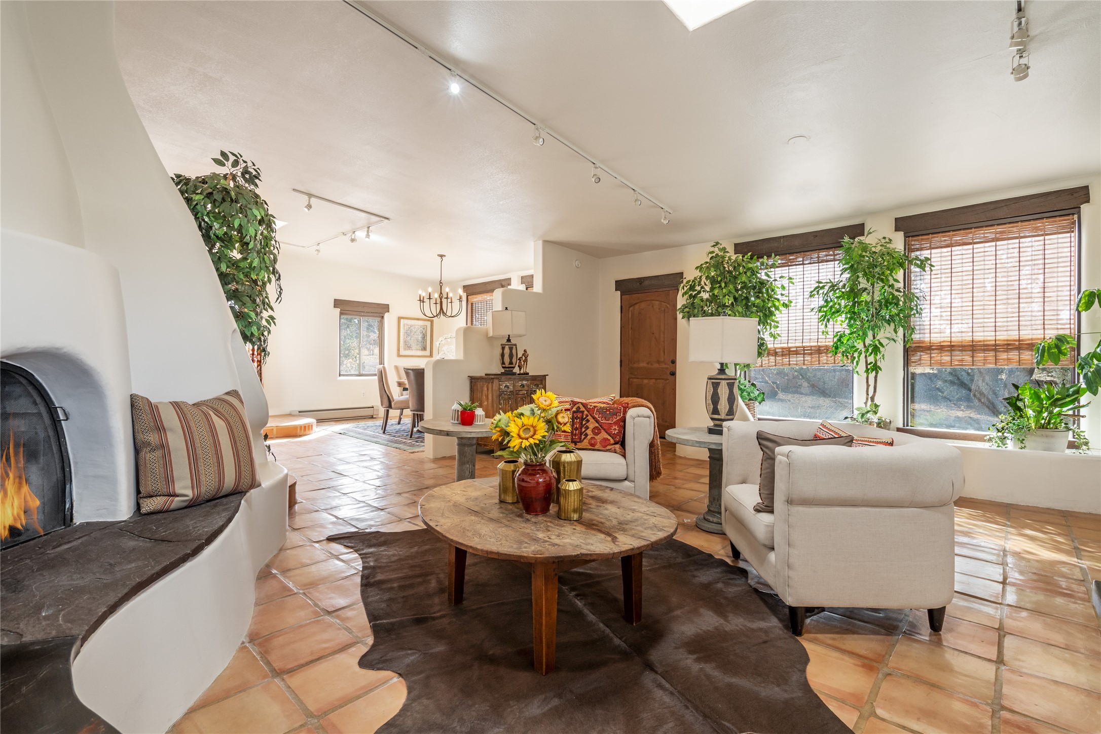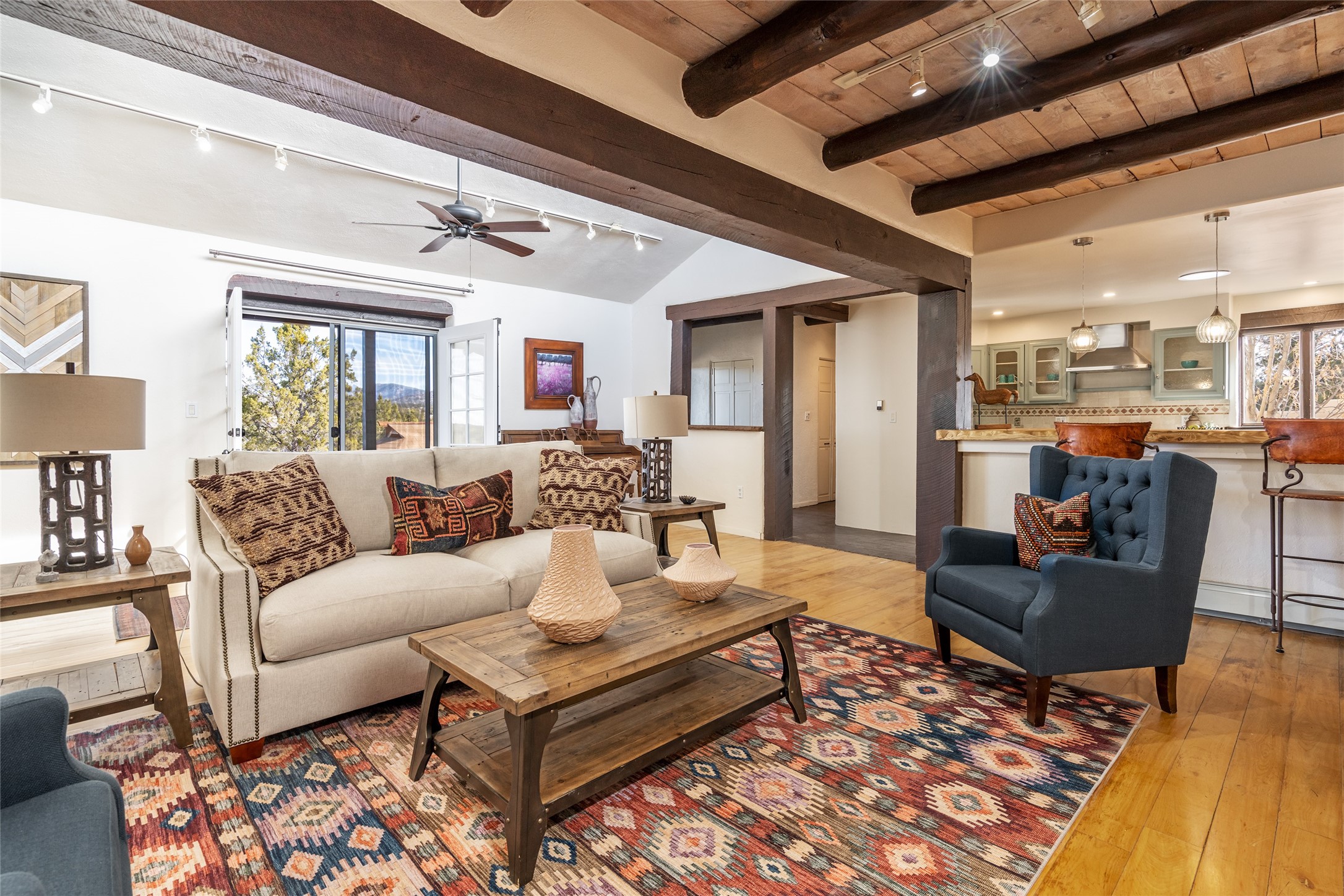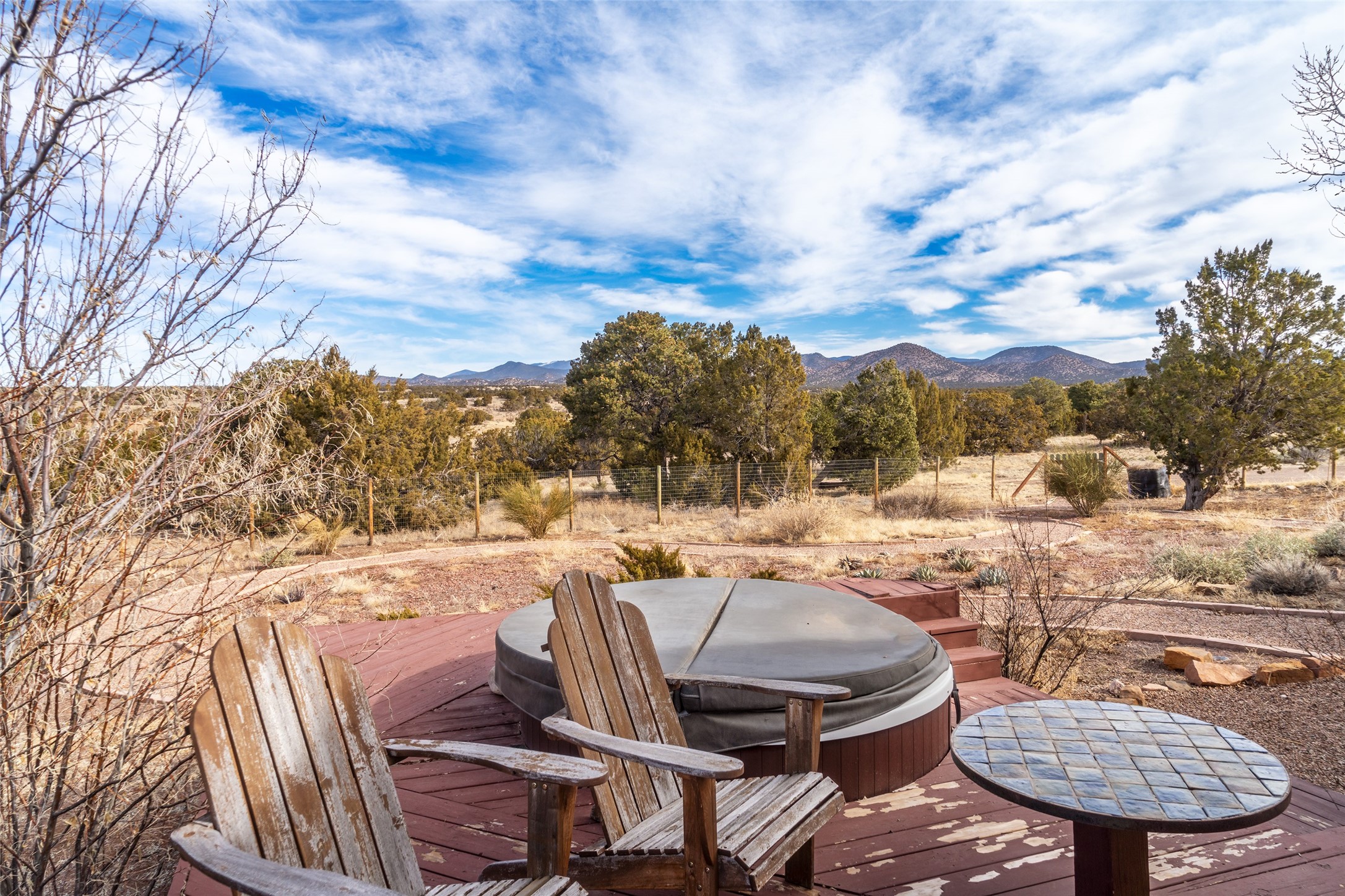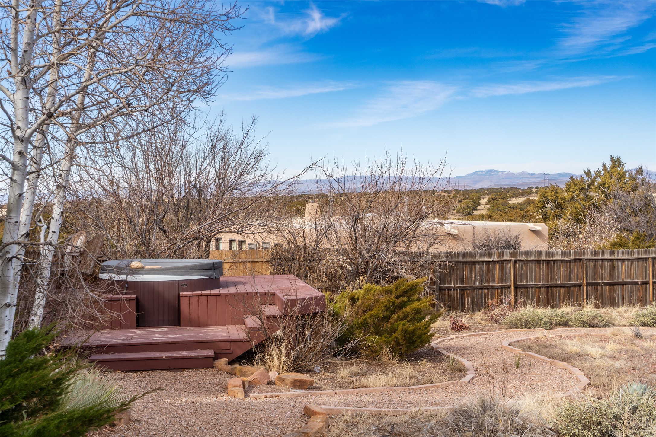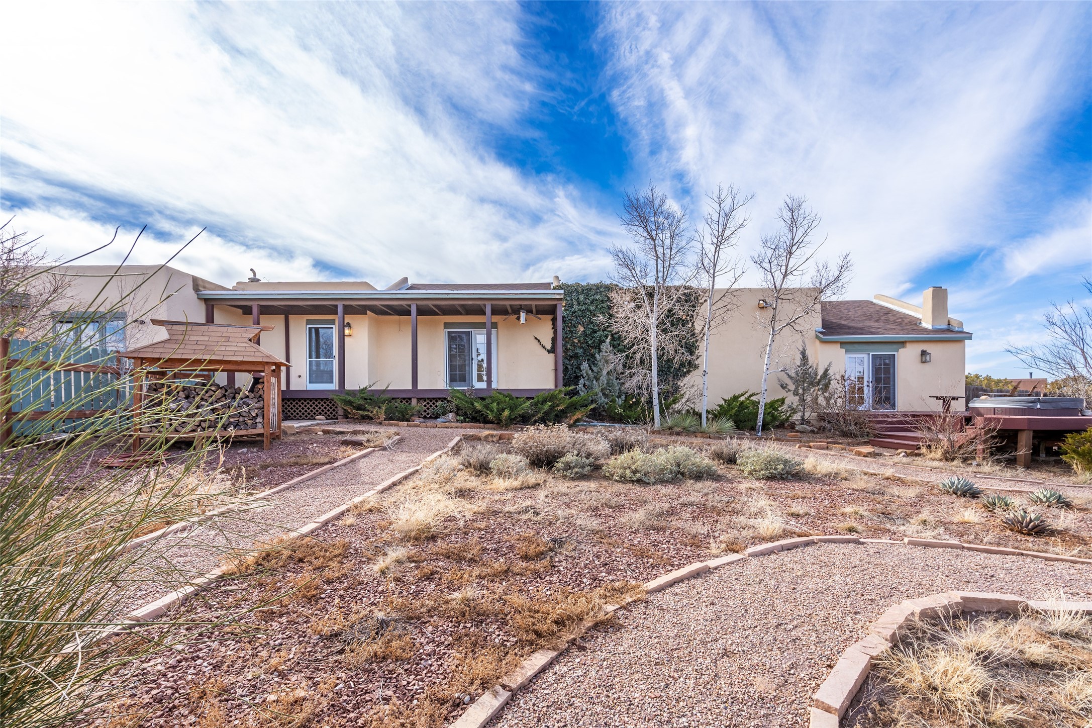 Welcome to 22 Alcalde Rd, a breathtaking 3,404 sq. ft. Southwestern-style home nestled in the heart of Eldorado at Santa Fe. This exquisite 4-bedroom, 3-bath residence captures the essence of Santa Fe living with its warm adobe charm, stunning mountain views, and elegant design details.Step inside to discover two inviting living areas, each featuring a gorgeous Kiva fireplace, creating a cozy ambiance perfect for relaxing or entertaining. The spacious primary suite is a true sanctuary, boasting a grand Kiva fireplace, luxurious en-suite bath, and double doors that open onto a private deck--where you can take in the sweeping views of the Sangre de Cristo Mountain foothills.Throughout the home, you'll find lovely architectural accents, including vigas, Saltillo tile, and custom woodwork, adding to its authentic charm. The well-appointed kitchen and dining areas provide the perfect blend of style and function, ideal for hosting gatherings or enjoying quiet evenings at home.Situated in the sought-after Eldorado community, this property offers access to miles of trails, scenic open spaces, and a vibrant arts scene--all while being just a short drive to downtown Santa Fe.Come experience the magic of this stunning home.