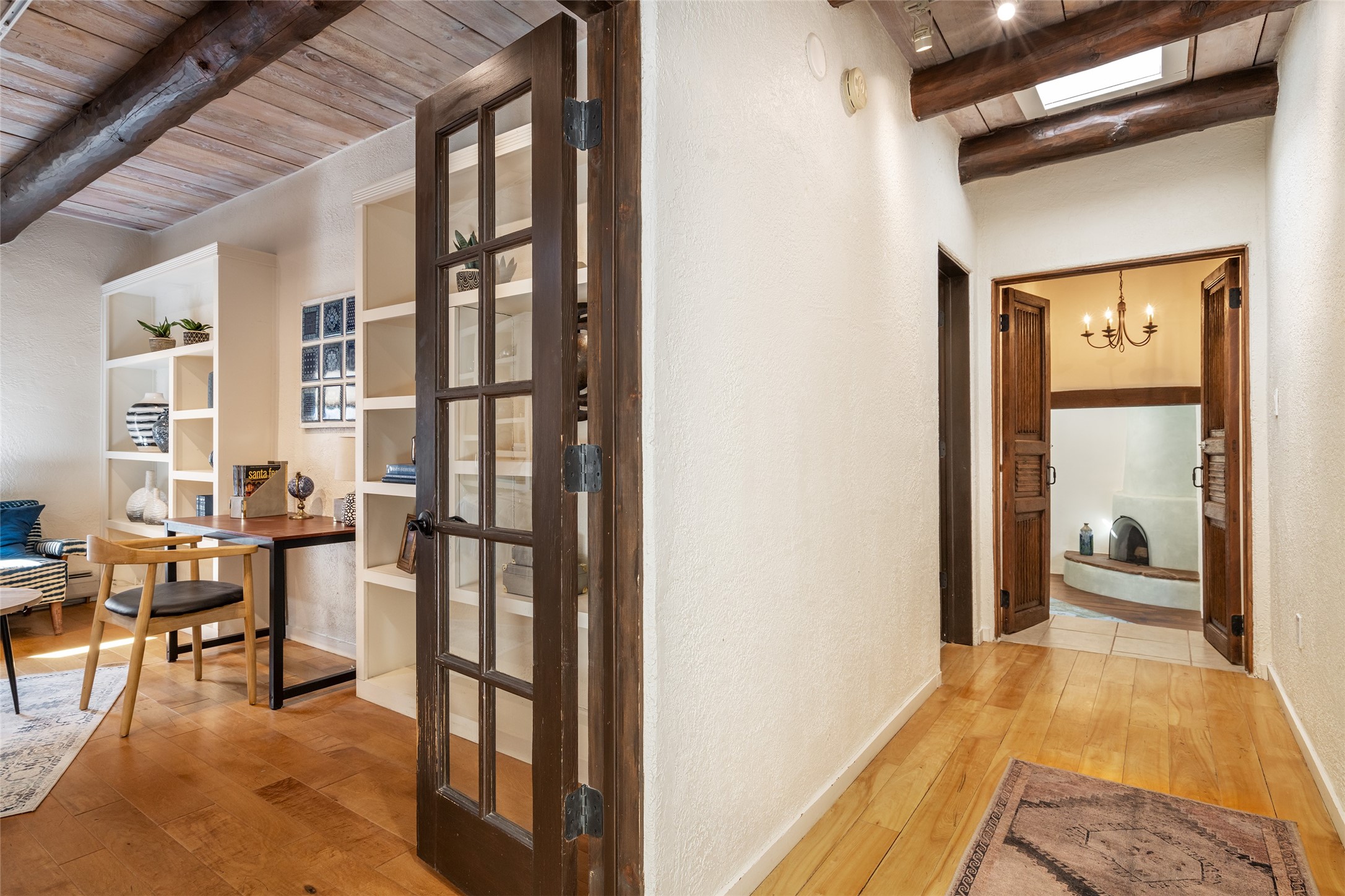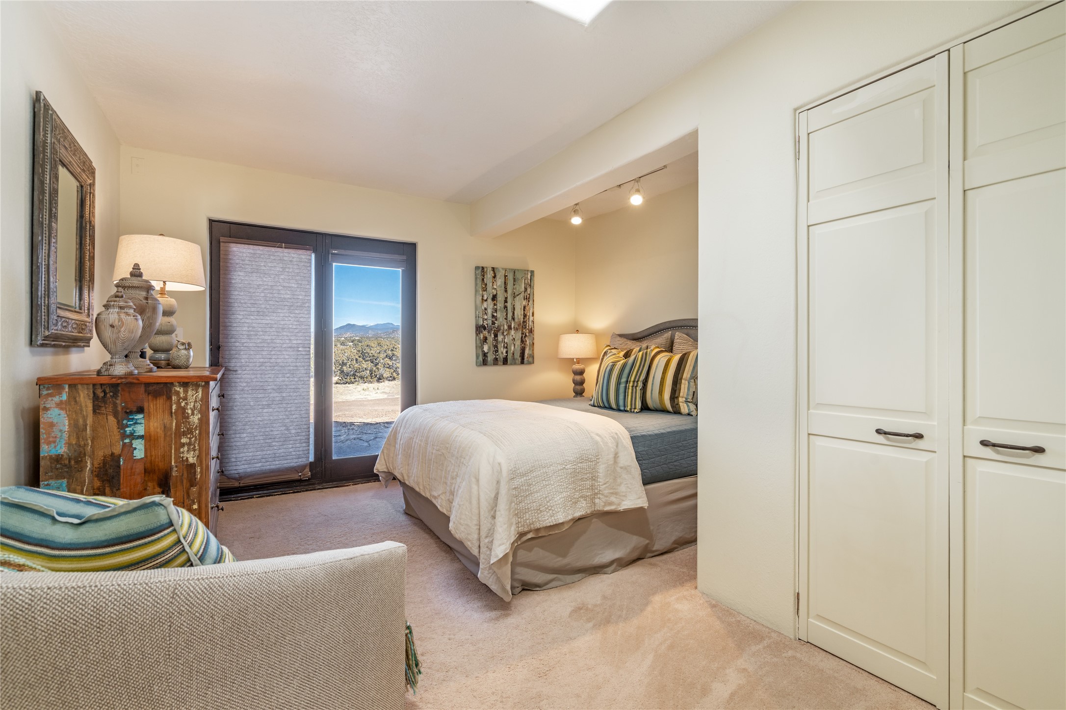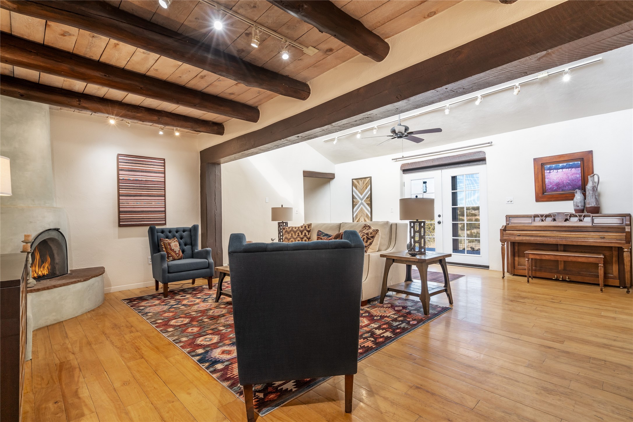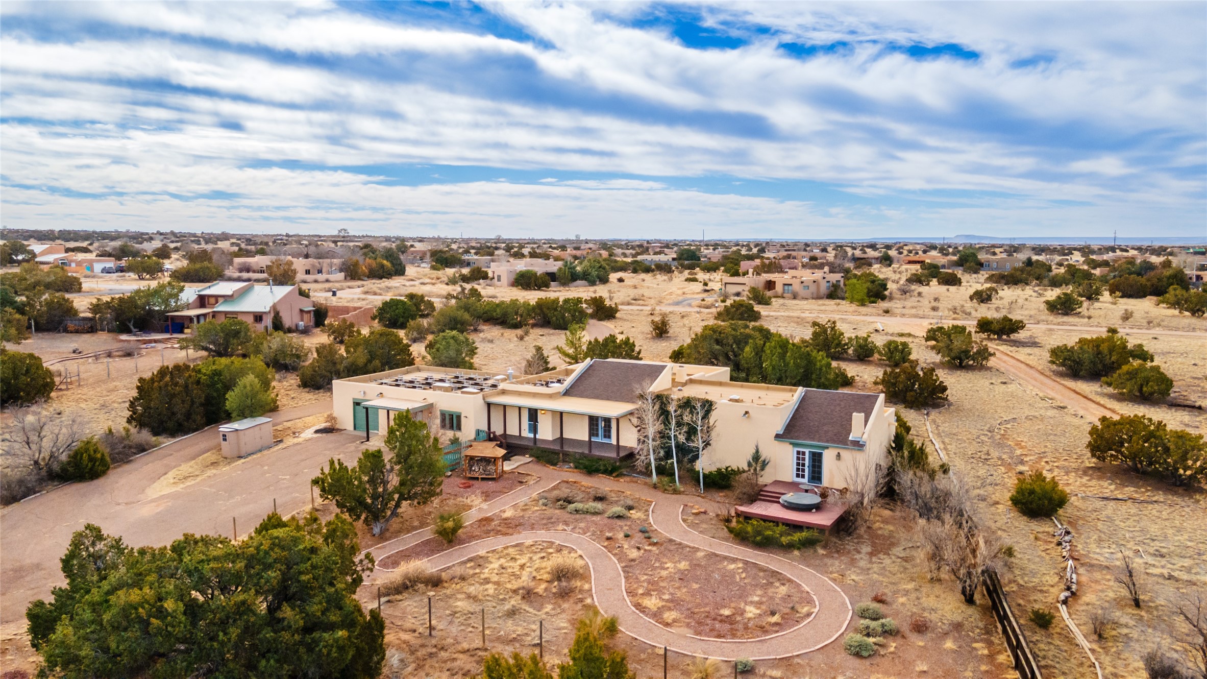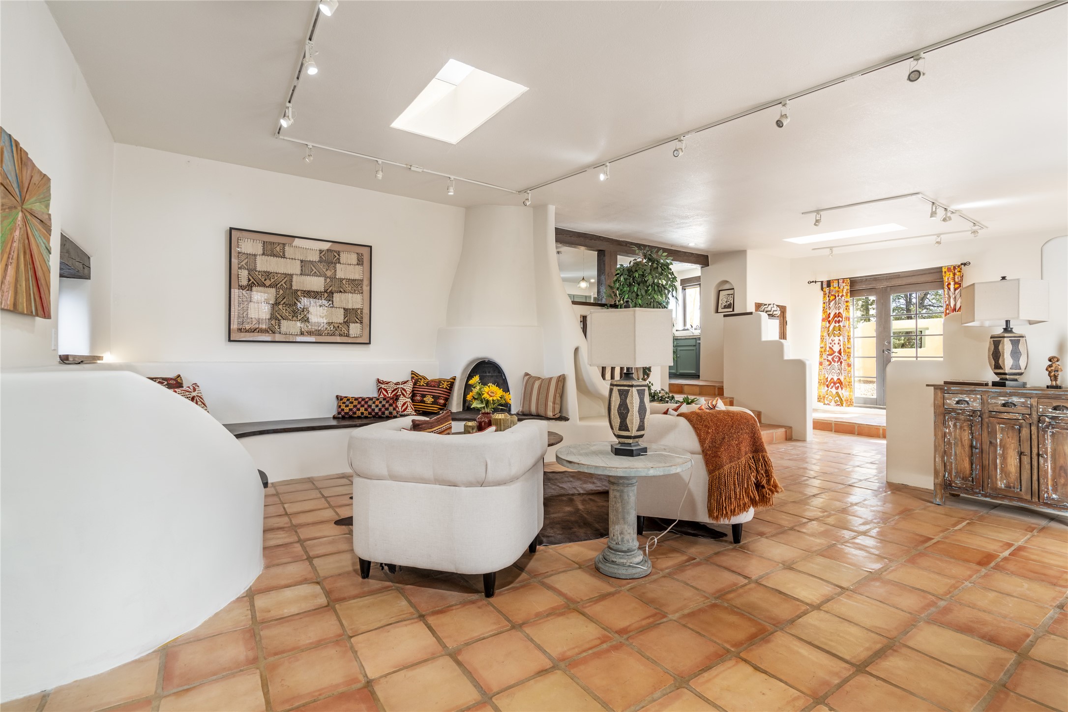 Welcome to 22 Alcalde Rd, a breathtaking 3,404 sq. ft. Southwestern-style home nestled in the heart of Eldorado at Santa Fe. This exquisite 4-bedroom, 3-bath residence captures the essence of Santa Fe living with its warm adobe charm, stunning mountain views, and elegant design details.Step inside to discover two inviting living areas, each featuring a gorgeous Kiva fireplace, creating a cozy ambiance perfect for relaxing or entertaining. The spacious primary suite is a true sanctuary, boasting a grand Kiva fireplace, luxurious en-suite bath, and double doors that open onto a private deck--where you can take in the sweeping views of the Sangre de Cristo Mountain foothills.Throughout the home, you'll find lovely architectural accents, including vigas, Saltillo tile, and custom woodwork, adding to its authentic charm. The well-appointed kitchen and dining areas provide the perfect blend of style and function, ideal for hosting gatherings or enjoying quiet evenings at home.Situated in the sought-after Eldorado community, this property offers access to miles of trails, scenic open spaces, and a vibrant arts scene--all while being just a short drive to downtown Santa Fe.Come experience the magic of this stunning home.