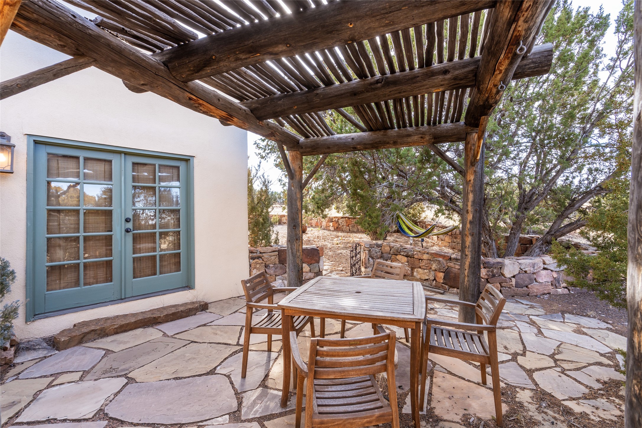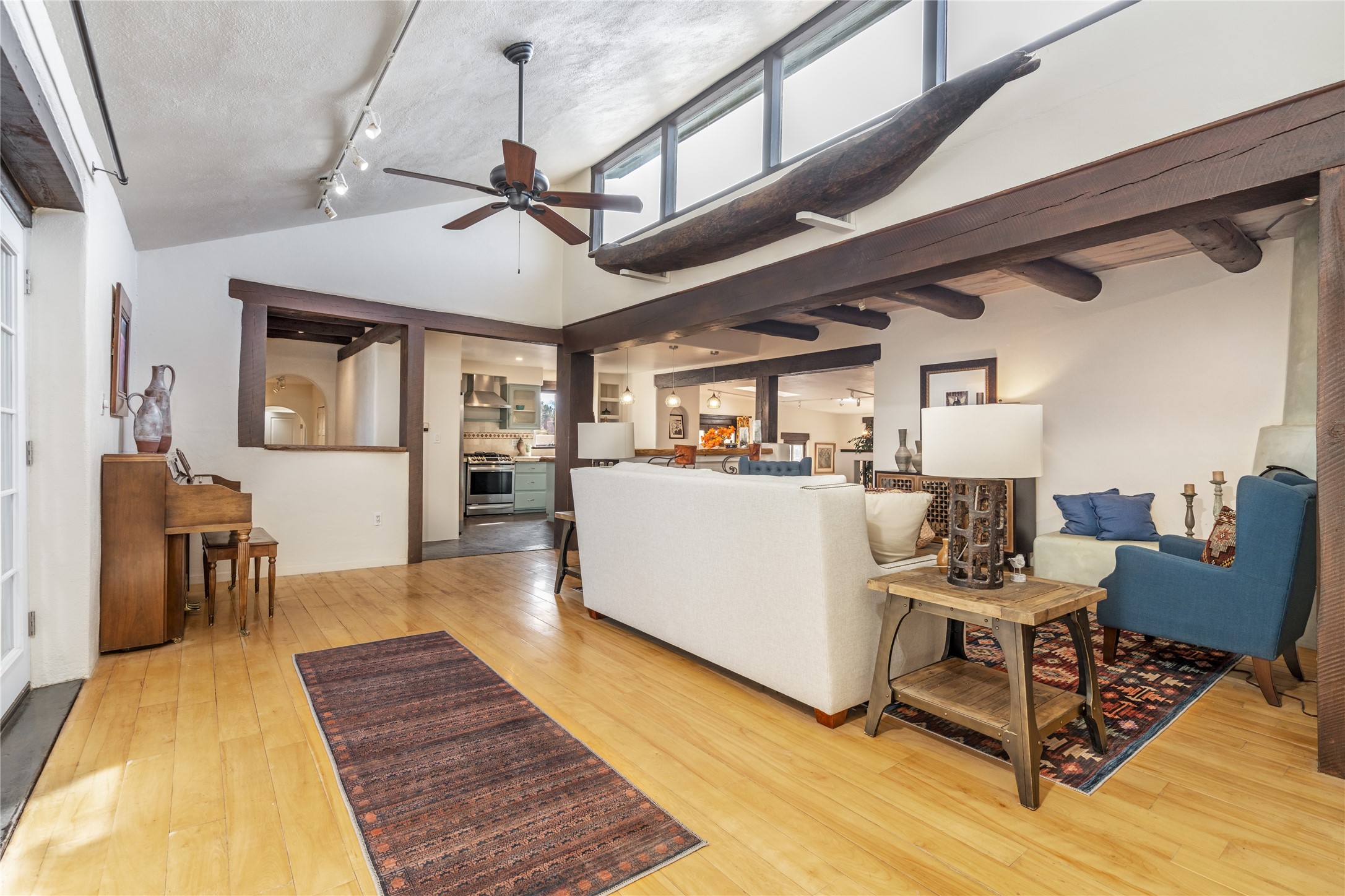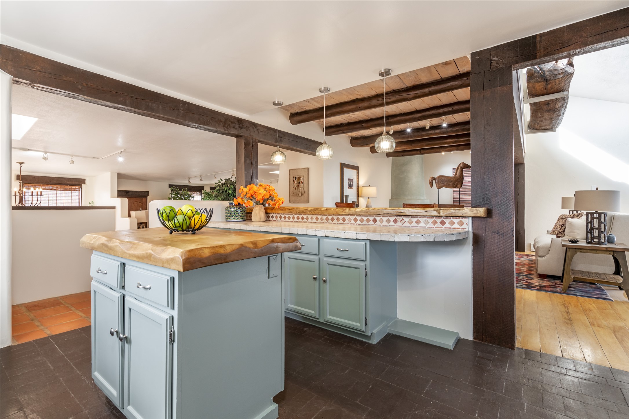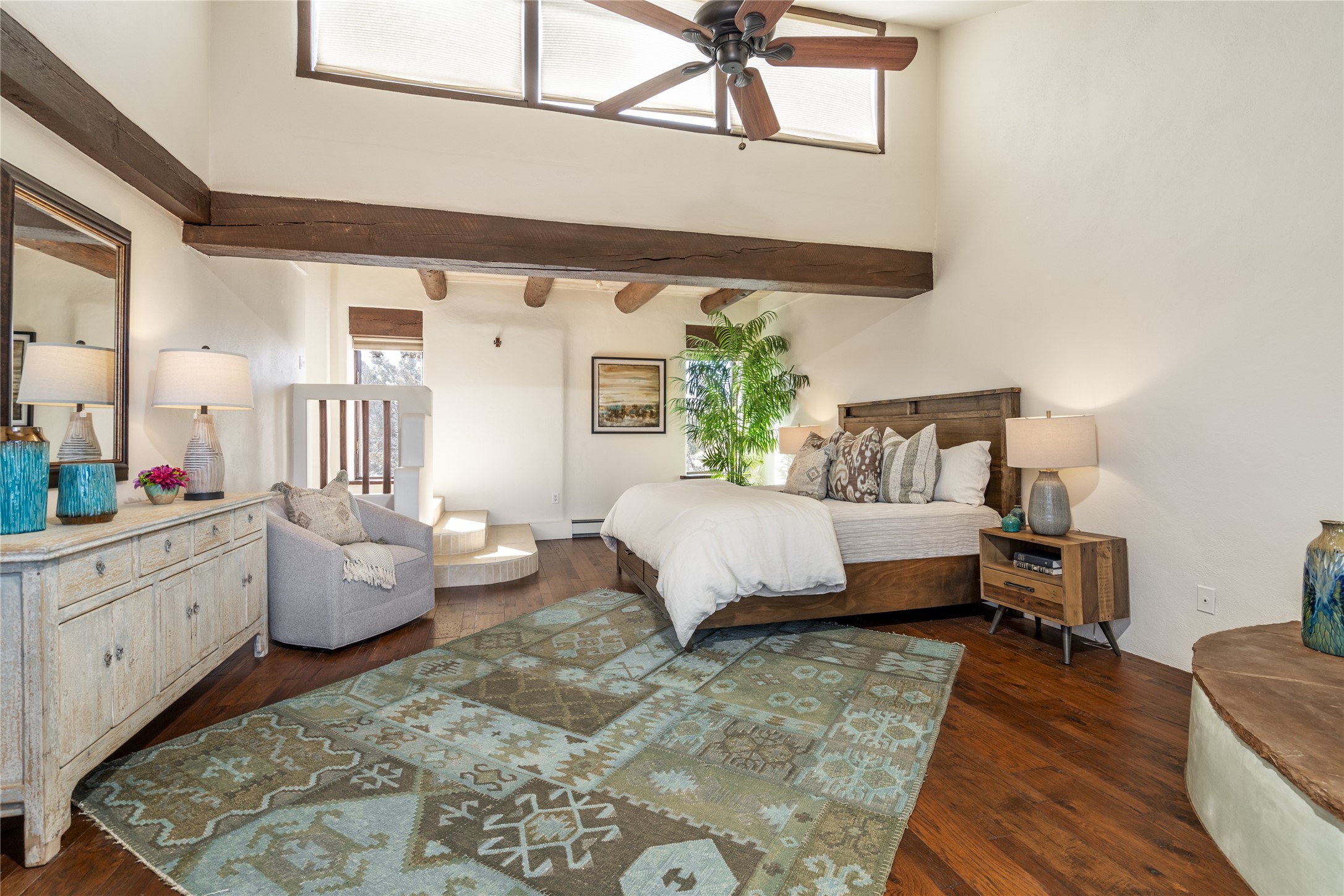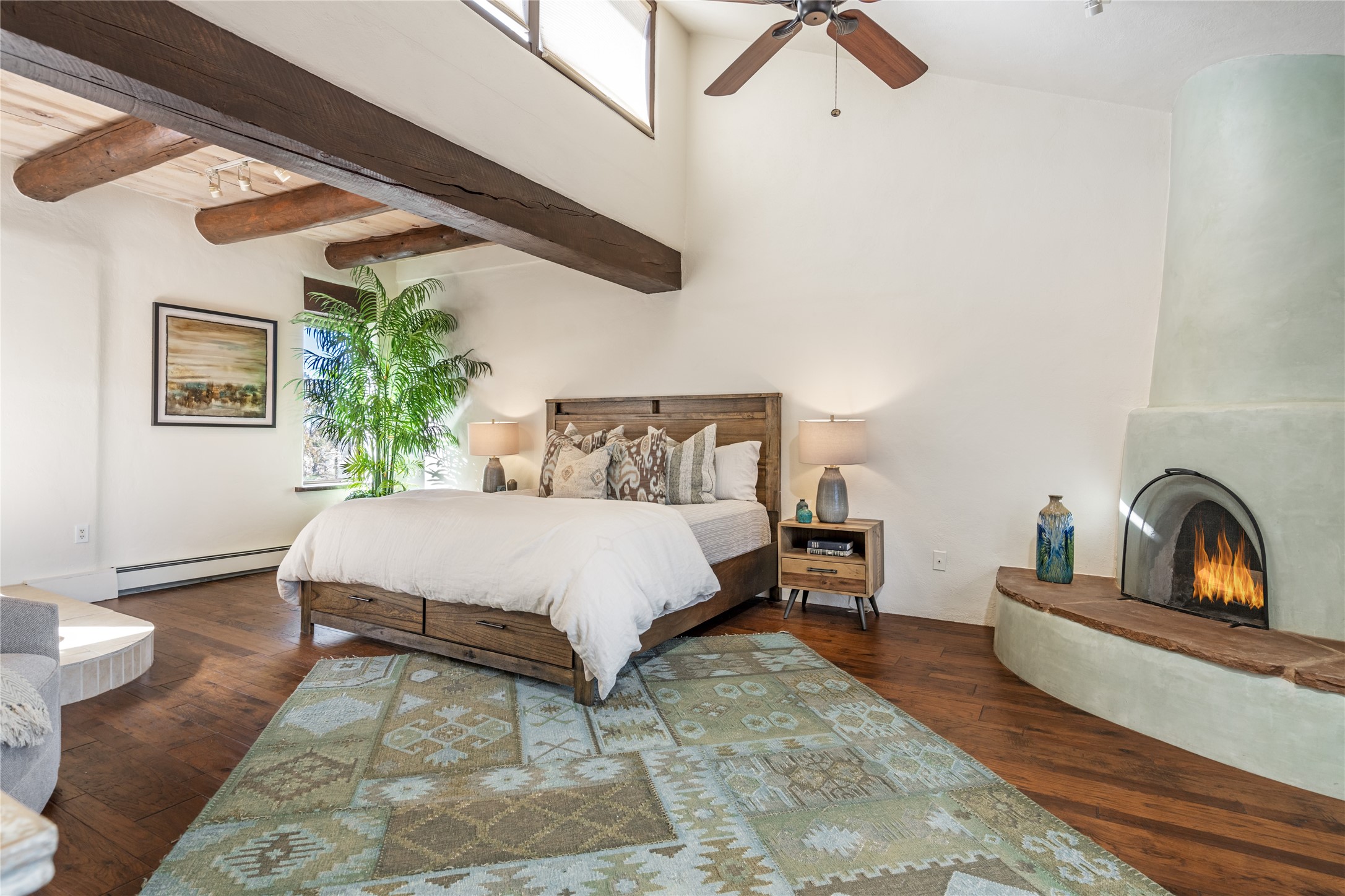 Welcome to 22 Alcalde Rd, a breathtaking 3,404 sq. ft. Southwestern-style home nestled in the heart of Eldorado at Santa Fe. This exquisite 4-bedroom, 3-bath residence captures the essence of Santa Fe living with its warm adobe charm, stunning mountain views, and elegant design details.Step inside to discover two inviting living areas, each featuring a gorgeous Kiva fireplace, creating a cozy ambiance perfect for relaxing or entertaining. The spacious primary suite is a true sanctuary, boasting a grand Kiva fireplace, luxurious en-suite bath, and double doors that open onto a private deck--where you can take in the sweeping views of the Sangre de Cristo Mountain foothills.Throughout the home, you'll find lovely architectural accents, including vigas, Saltillo tile, and custom woodwork, adding to its authentic charm. The well-appointed kitchen and dining areas provide the perfect blend of style and function, ideal for hosting gatherings or enjoying quiet evenings at home.Situated in the sought-after Eldorado community, this property offers access to miles of trails, scenic open spaces, and a vibrant arts scene--all while being just a short drive to downtown Santa Fe.Come experience the magic of this stunning home.