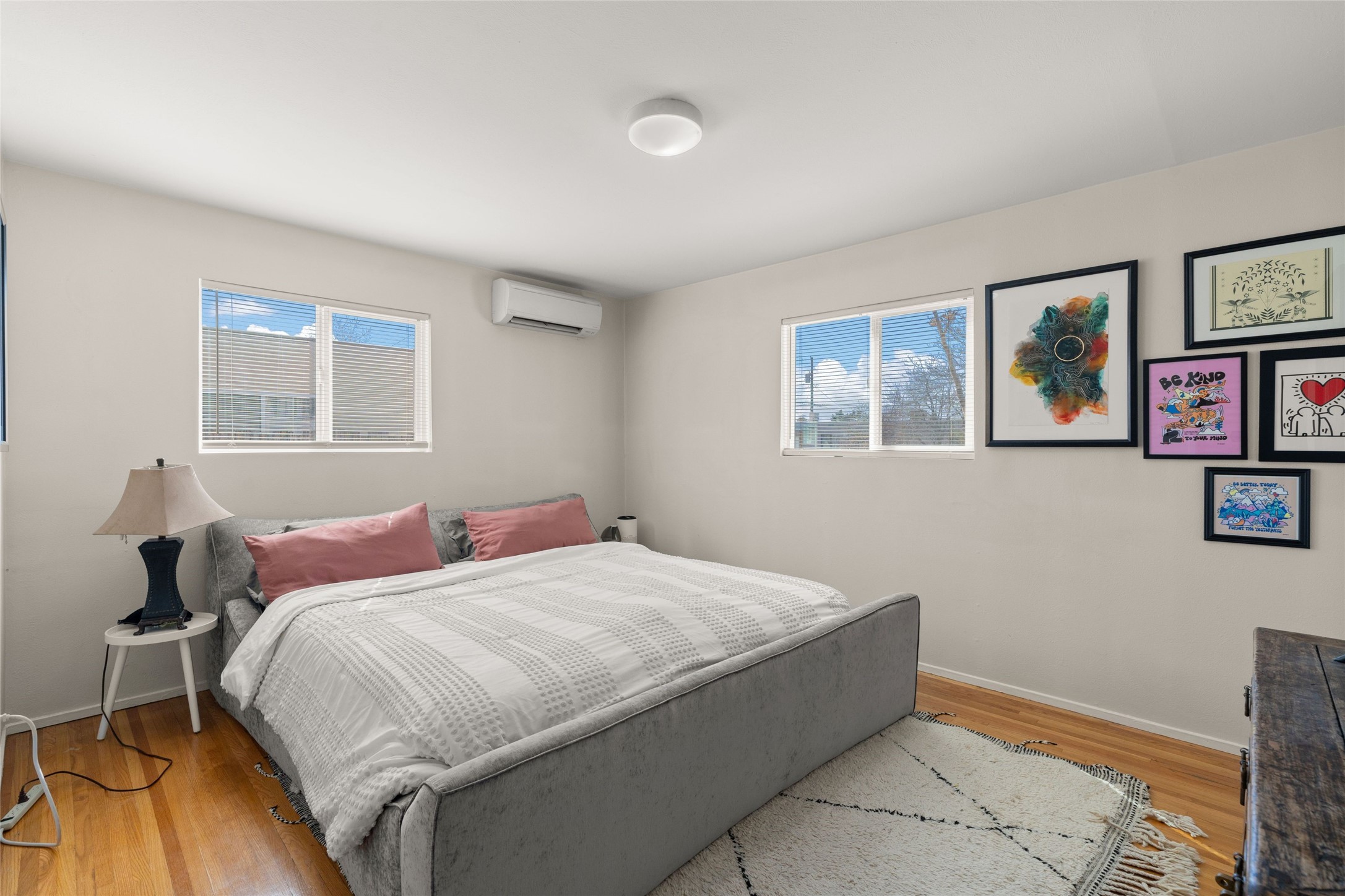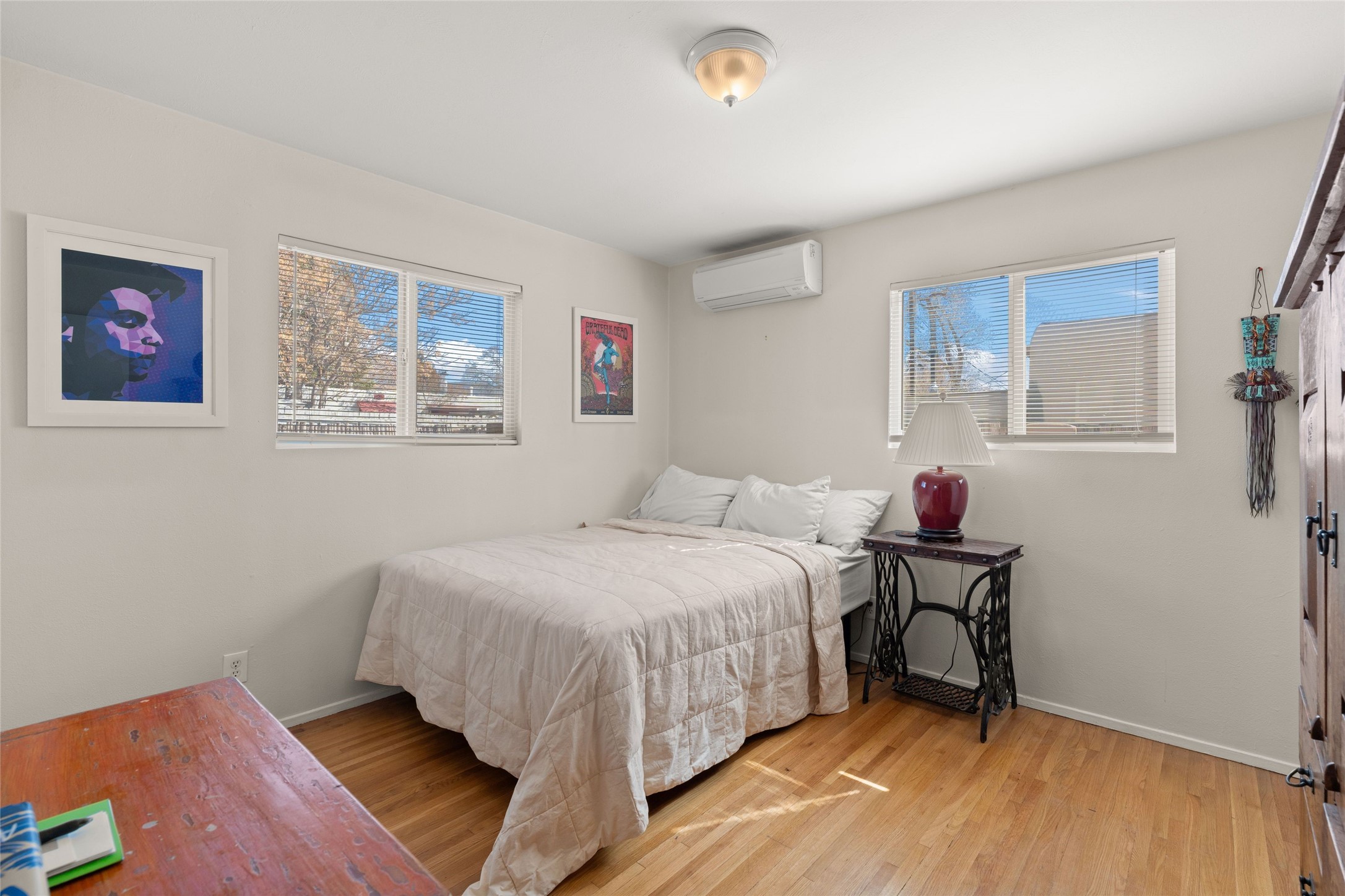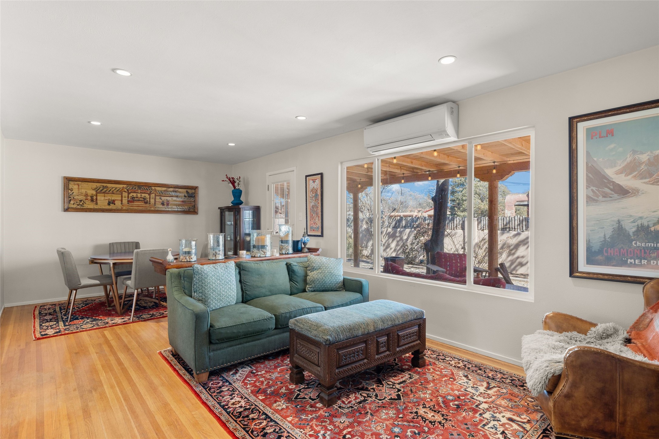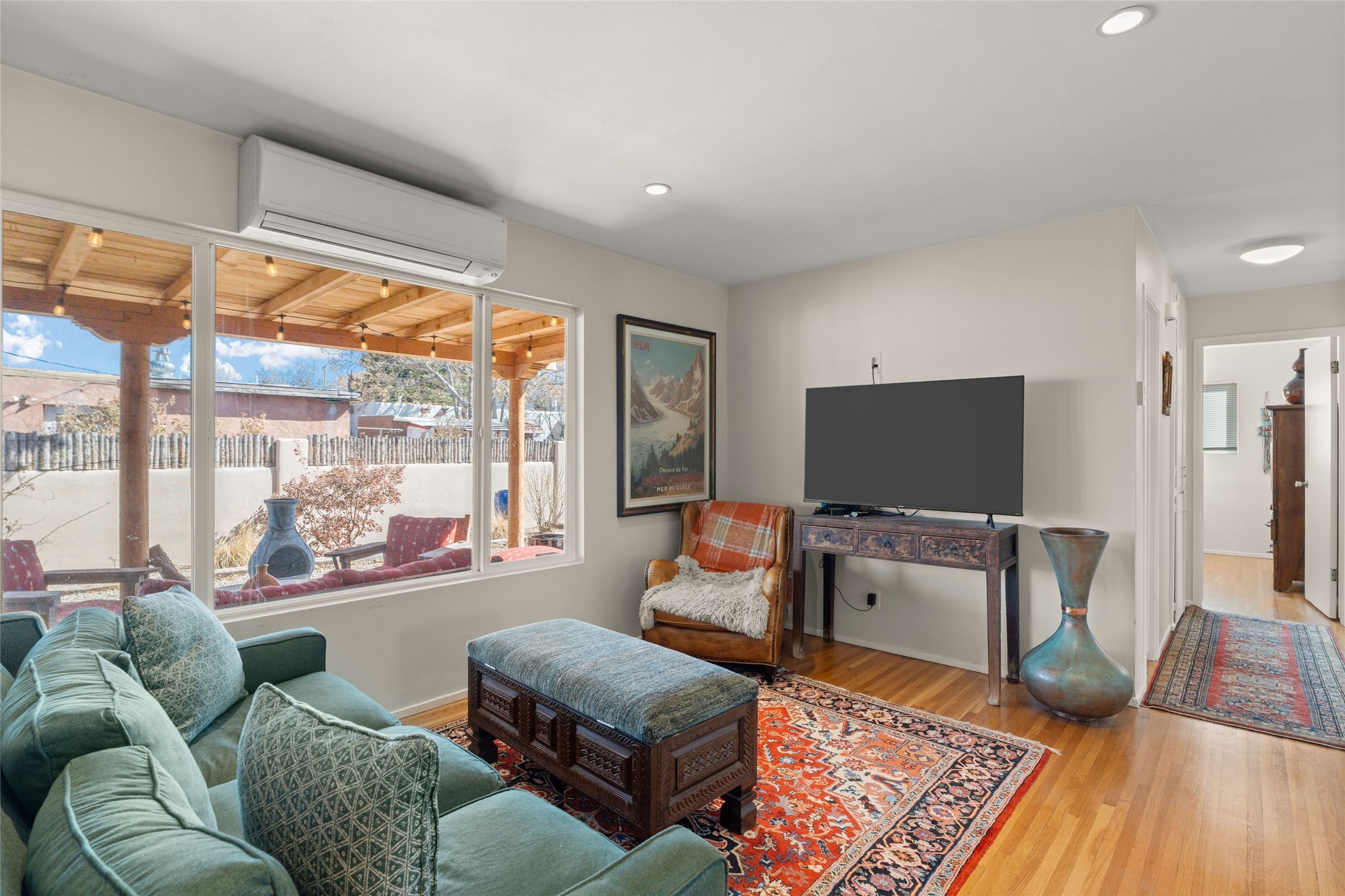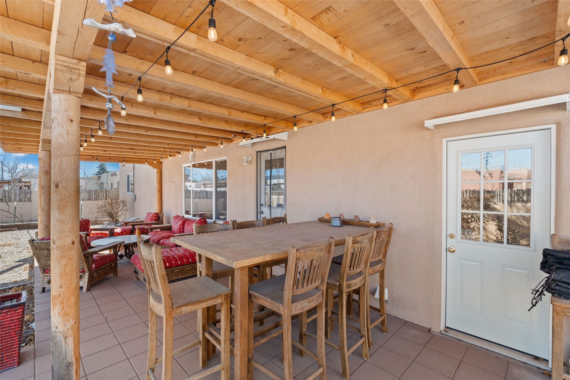 Beautifully remodeled Casa Solana gem. This extensively updated Stamm home resides on a large corner lot in a quiet street in the desirable Casa Solana neighborhood of Santa Fe. The 3 bedrooms, 1 bath home features an open kitchen / living area with wood floors, a large picture window and a single car garage. The newly built rear portal is an extension of the living space with room for lounging and dining. Updates include a TPO roof, minisplits for heat and air conditioning, updated kitchen appliances and counters, new bathroom tile and finishes, plus an extensive raised bed garden for the long Santa Fe growing season. Within walking distance to parks, the Santa Fe river, shops and restaurants come see what makes this property unique.