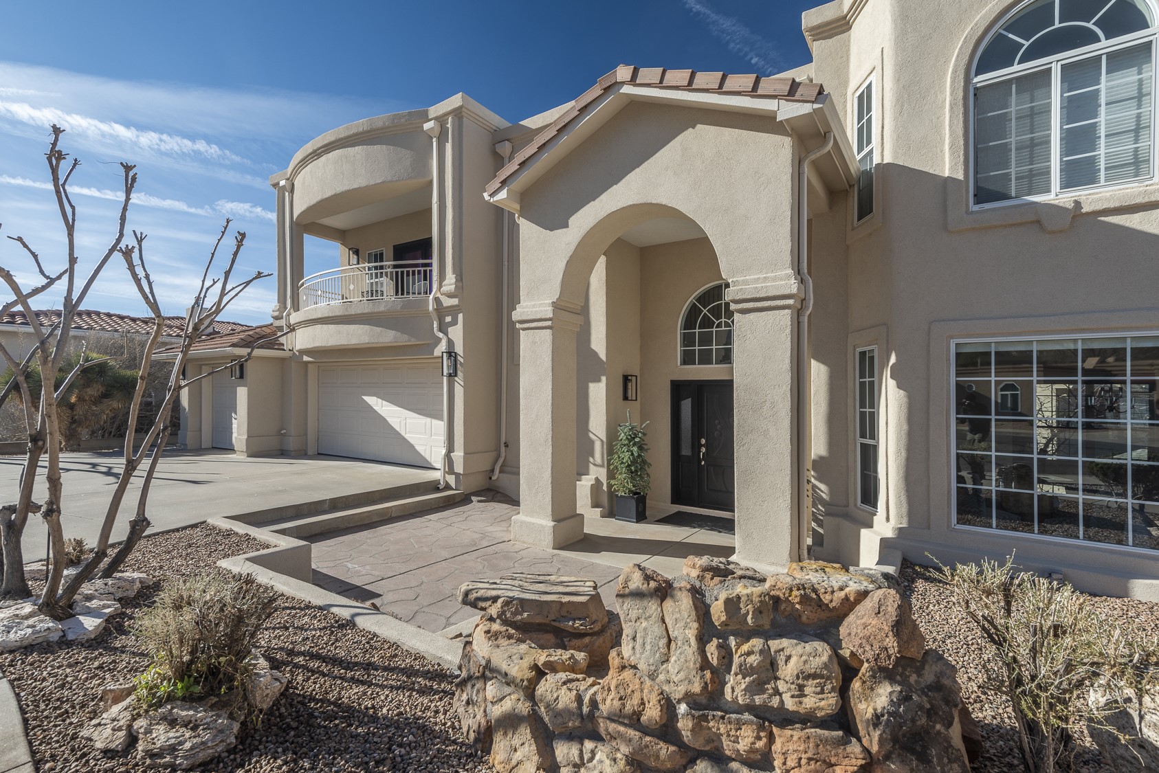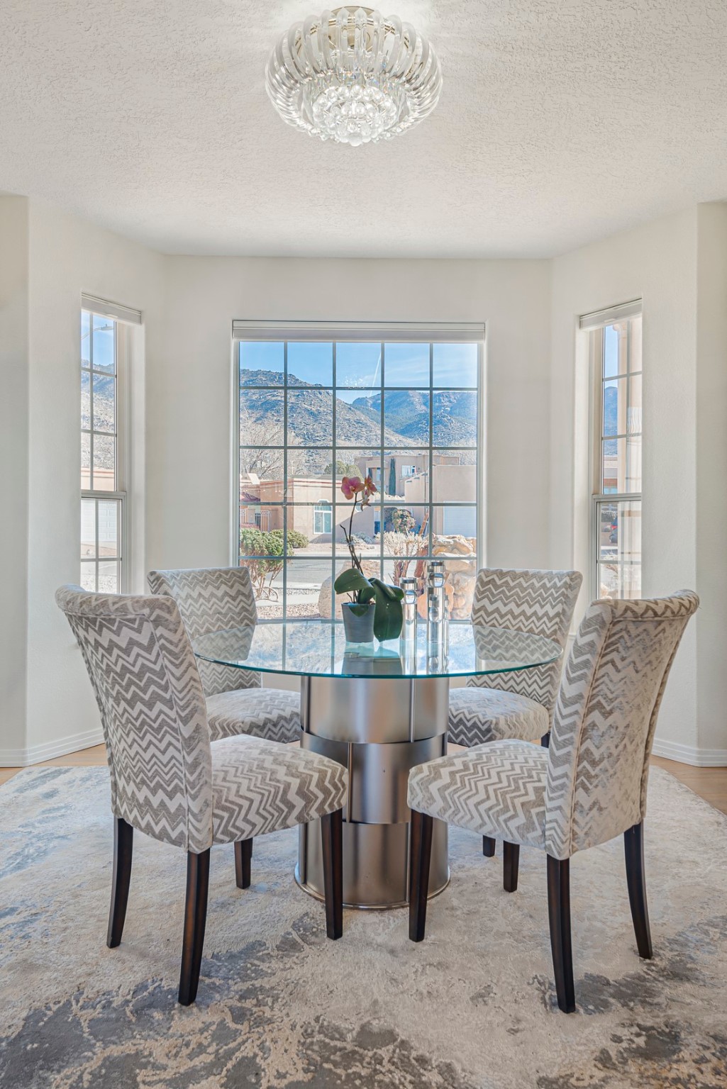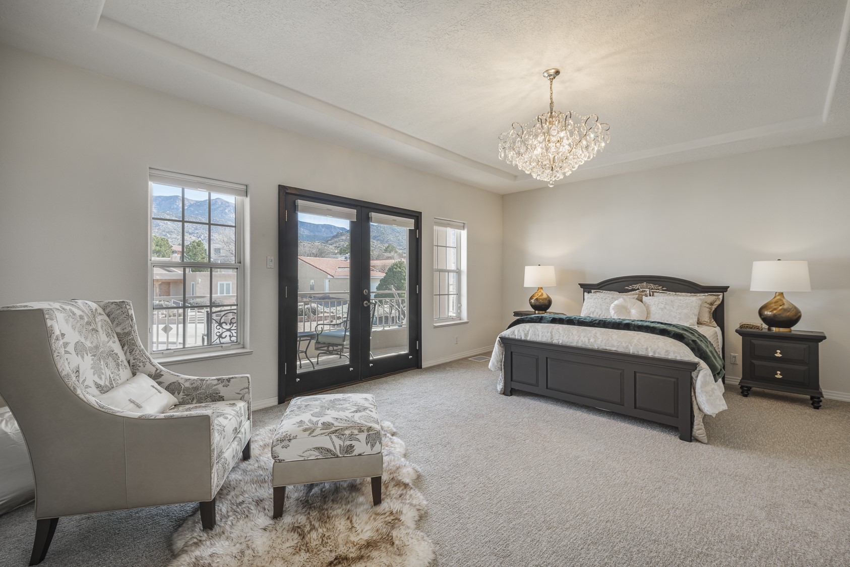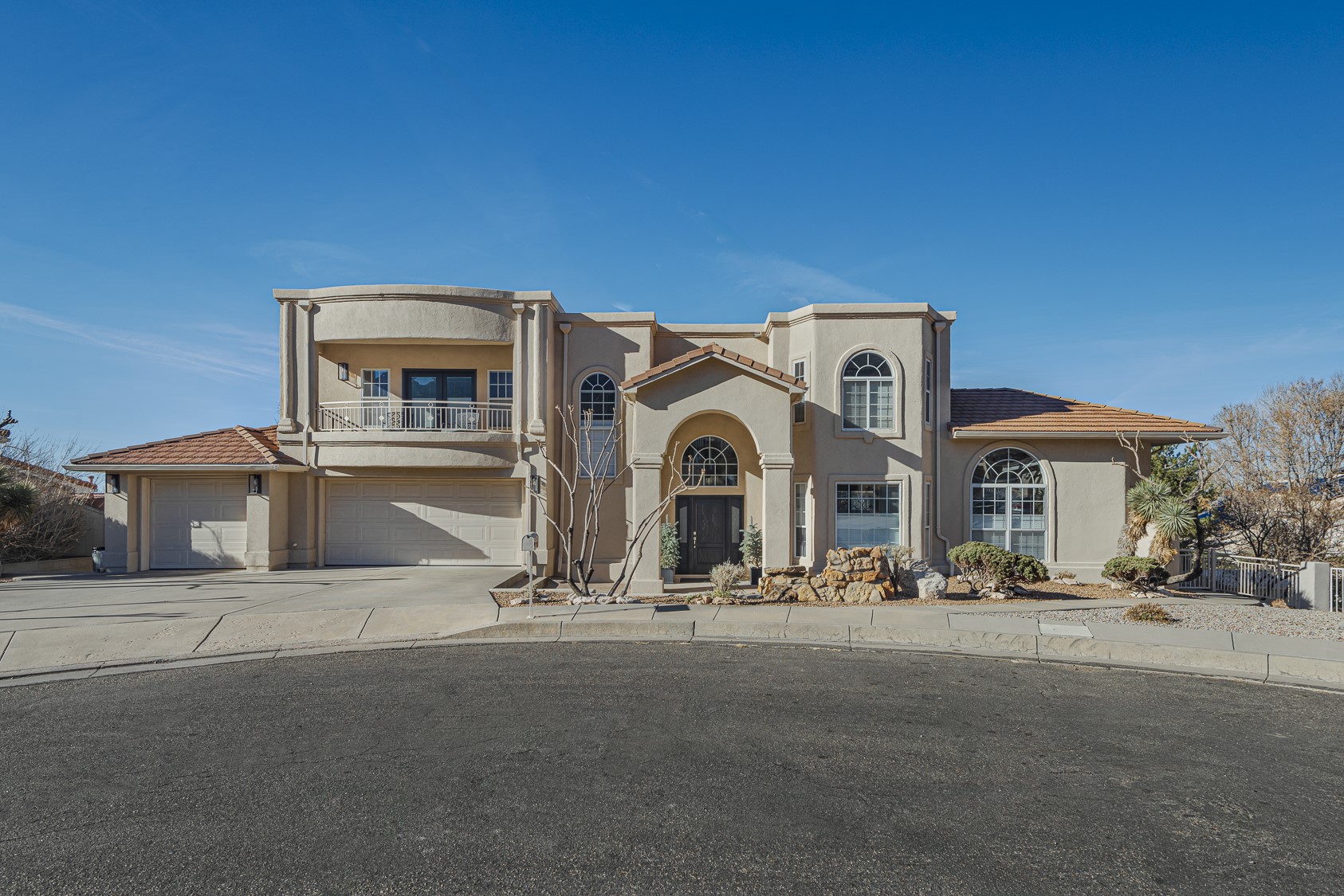 Come experience this lovely foothills home, featuring remarkable finishes throughout! Large windows w/ power blinds fill the interior with an abundance of light, and the open floor plan offers spacious rooms with breathtaking views of the Sandias, city lights, west mesa, and beyond. The chef's kitchen includes top-tier brands like Thomasville, Wolf, Thermador, Asko, & Vent-A-Hood. You'll fall in love with the main ensuite featuring a Brizo shower system, heated floors & towel rack, Jacuzzi soaking tub, walk-in closet, and a stunning view deck. Huge 31'X26' oversized 3 car garage. Cost of improvements weren't a concern for the current owners, as they thought this would be their forever home, but they never moved in. We are now offering this impressive value to the next owner.