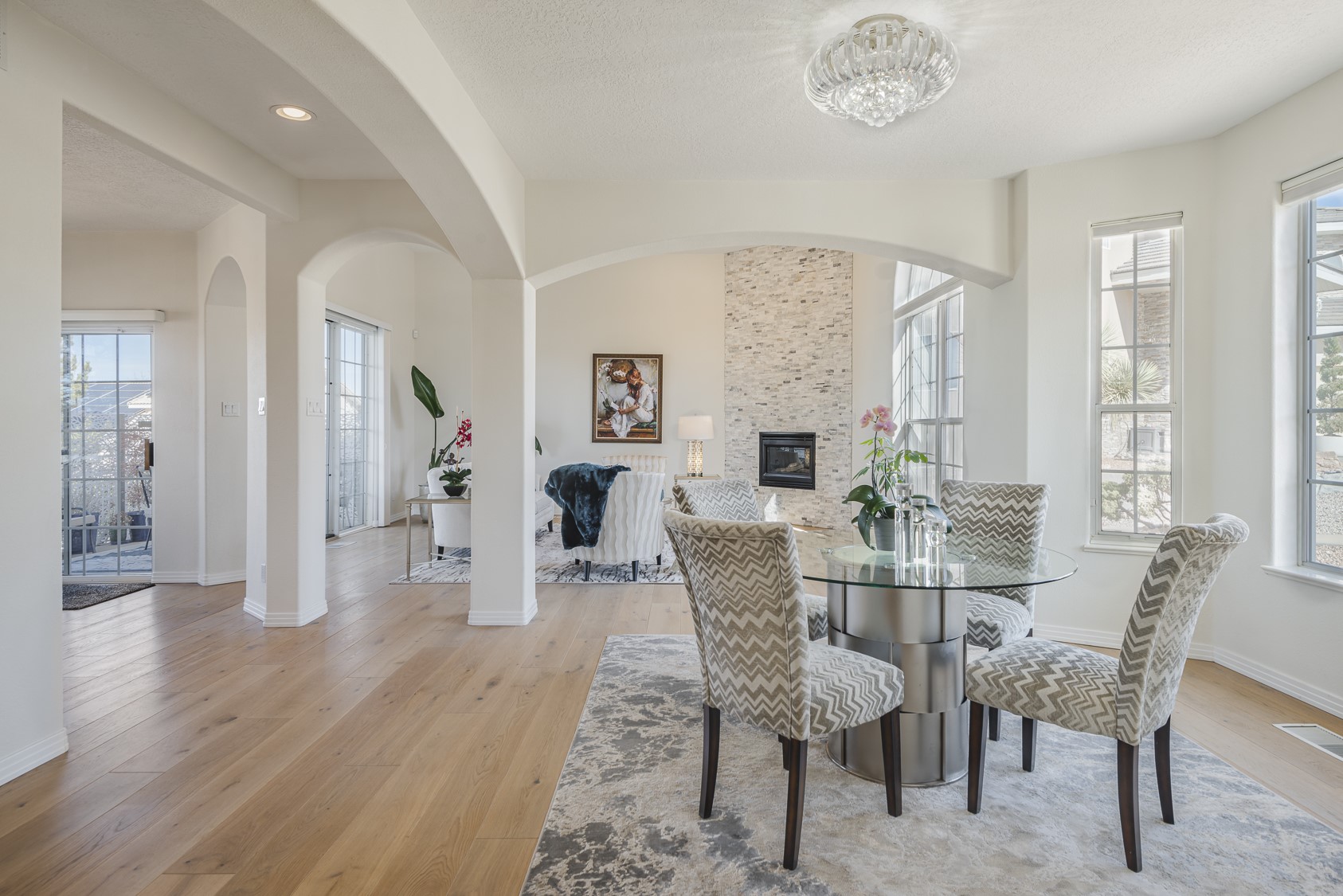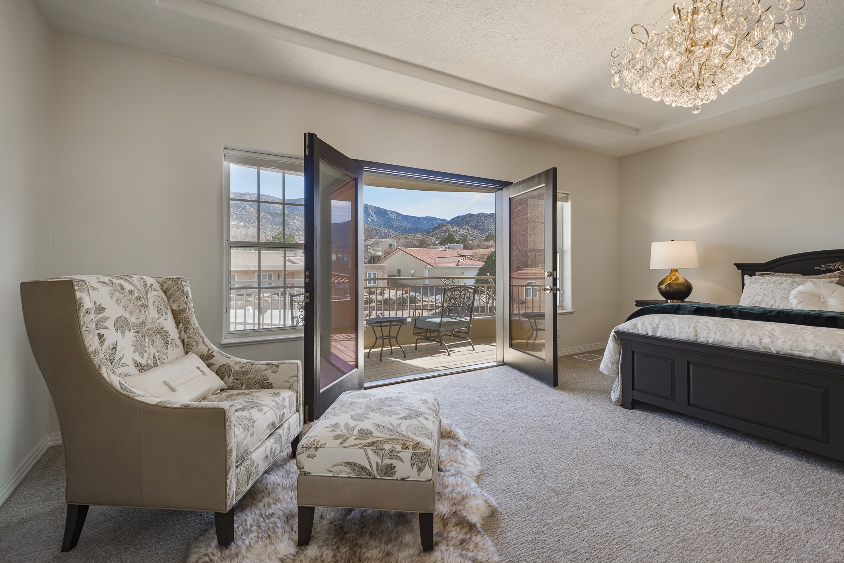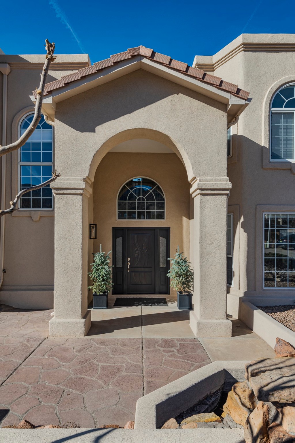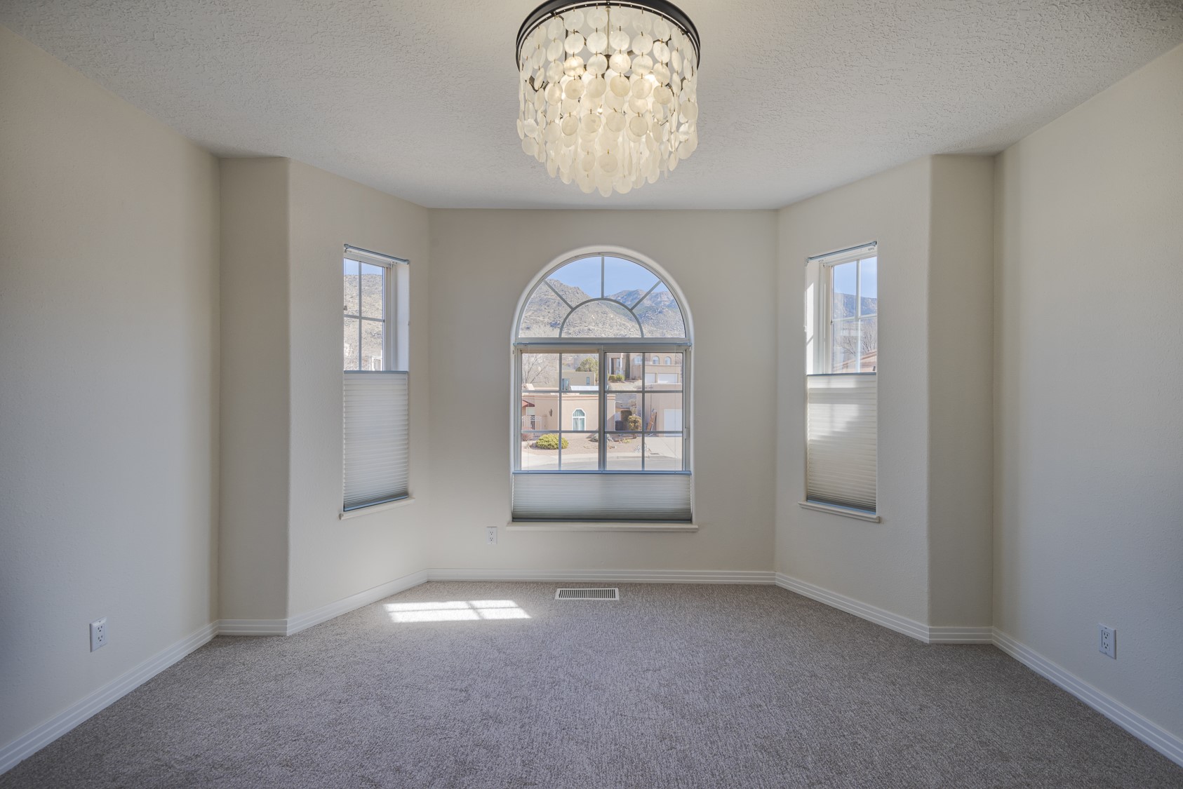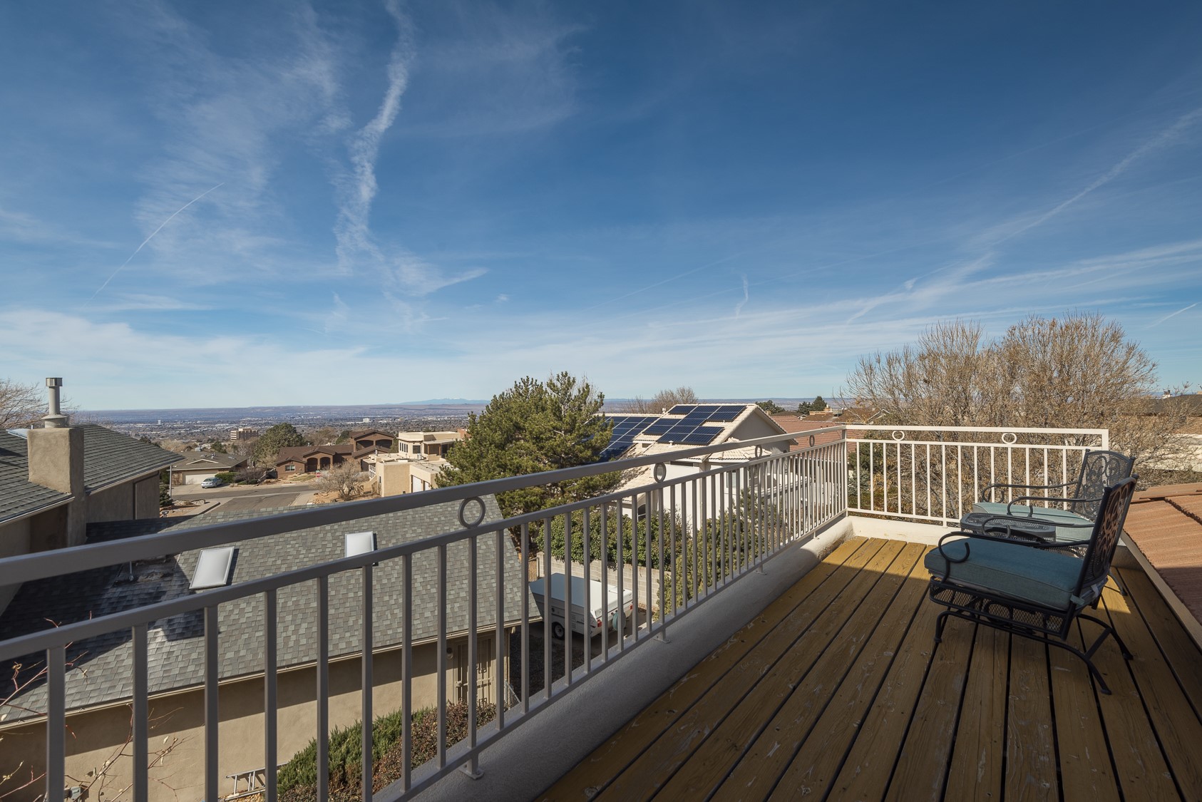 Come experience this lovely foothills home, featuring remarkable finishes throughout! Large windows w/ power blinds fill the interior with an abundance of light, and the open floor plan offers spacious rooms with breathtaking views of the Sandias, city lights, west mesa, and beyond. The chef's kitchen includes top-tier brands like Thomasville, Wolf, Thermador, Asko, & Vent-A-Hood. You'll fall in love with the main ensuite featuring a Brizo shower system, heated floors & towel rack, Jacuzzi soaking tub, walk-in closet, and a stunning view deck. Huge 31'X26' oversized 3 car garage. Cost of improvements weren't a concern for the current owners, as they thought this would be their forever home, but they never moved in. We are now offering this impressive value to the next owner.