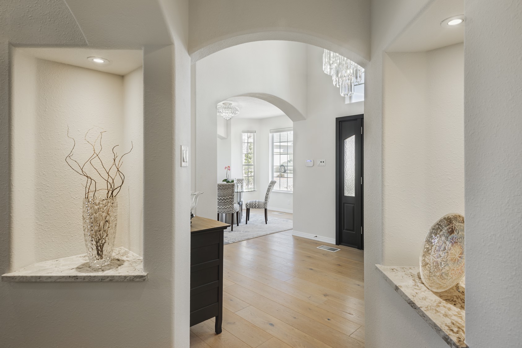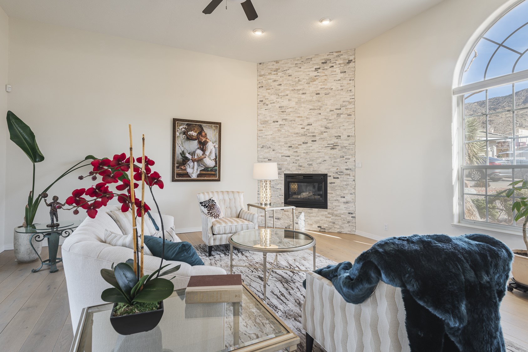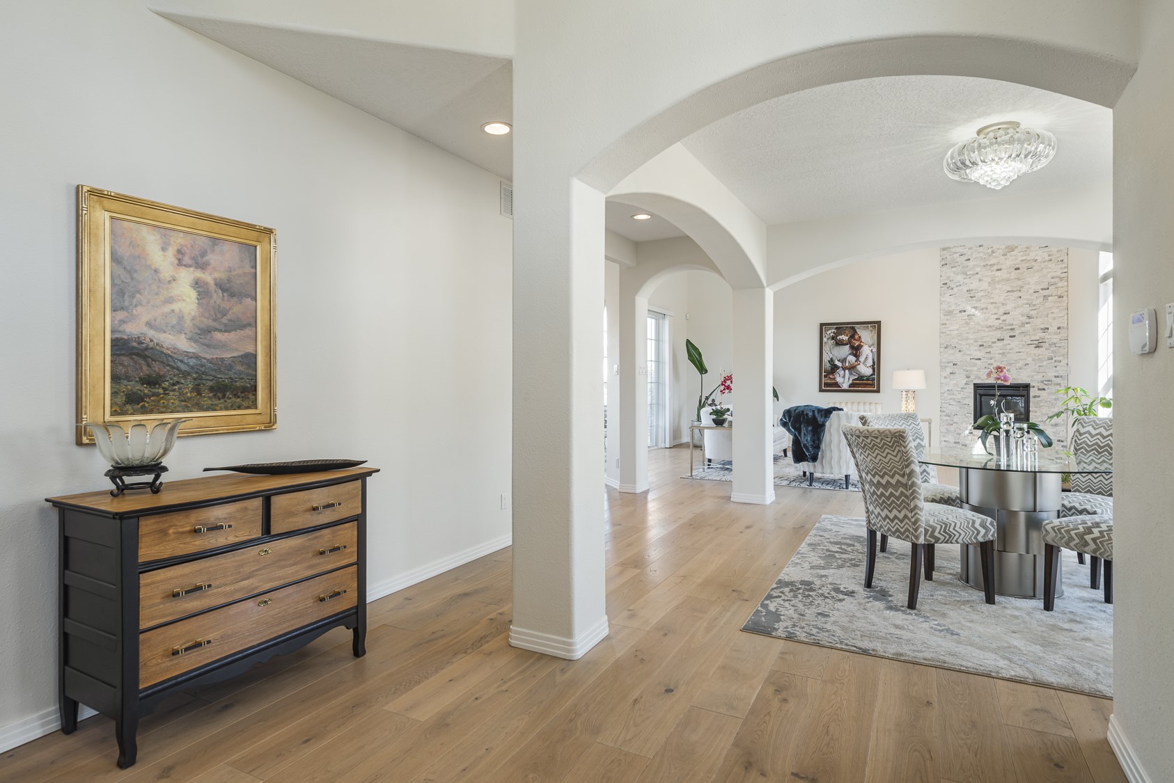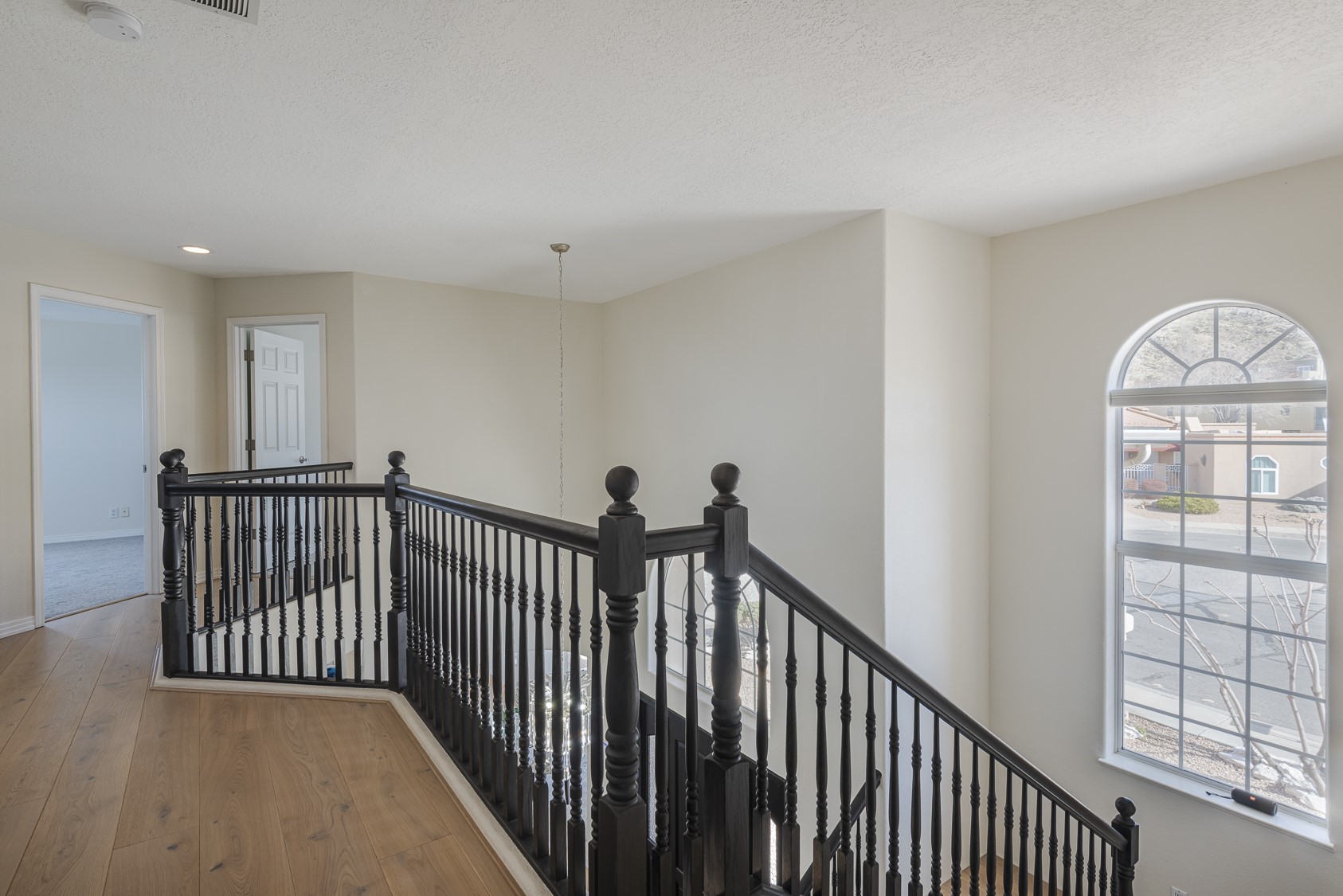 Come experience this lovely foothills home, featuring remarkable finishes throughout! Large windows w/ power blinds fill the interior with an abundance of light, and the open floor plan offers spacious rooms with breathtaking views of the Sandias, city lights, west mesa, and beyond. The chef's kitchen includes top-tier brands like Thomasville, Wolf, Thermador, Asko, & Vent-A-Hood. You'll fall in love with the main ensuite featuring a Brizo shower system, heated floors & towel rack, Jacuzzi soaking tub, walk-in closet, and a stunning view deck. Huge 31'X26' oversized 3 car garage. Cost of improvements weren't a concern for the current owners, as they thought this would be their forever home, but they never moved in. We are now offering this impressive value to the next owner.