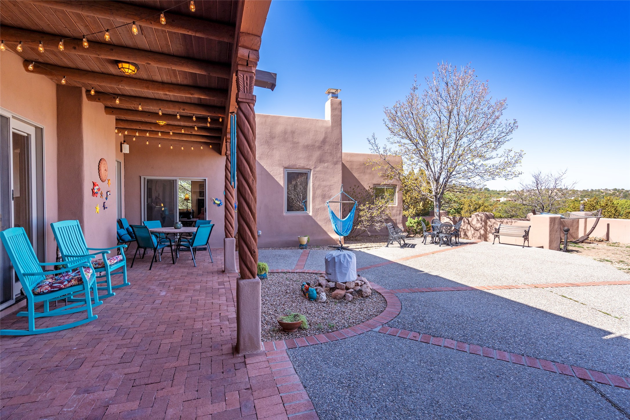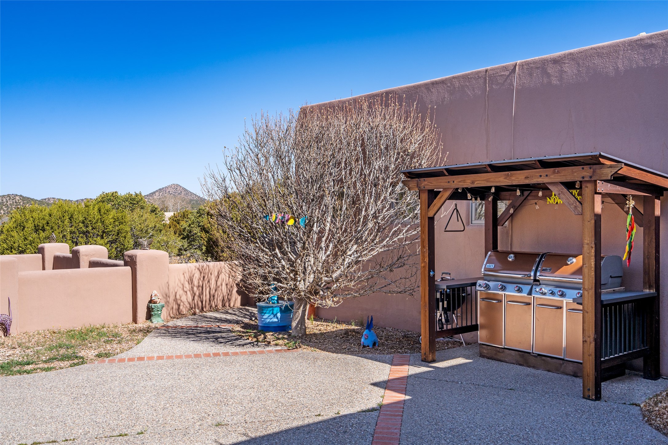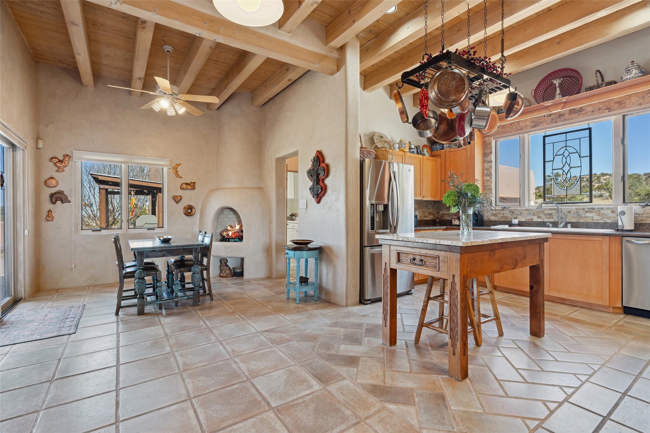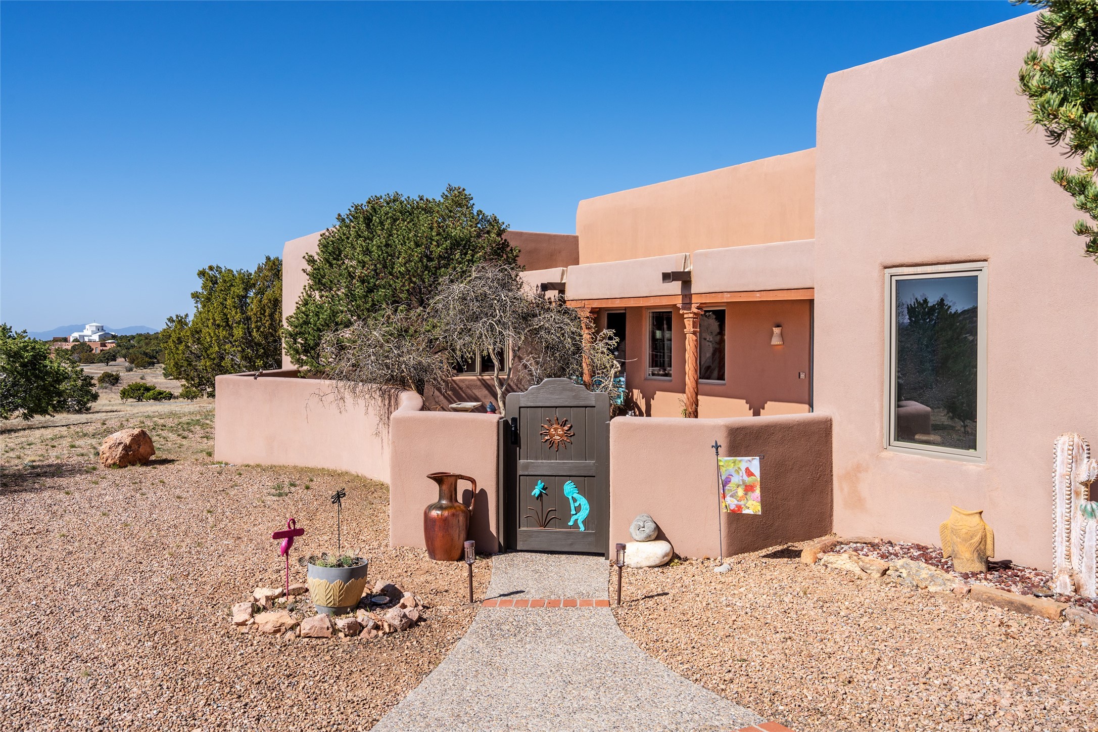 Exquisite Santa Fe Retreat with Sweeping Mountain Views3 Camino Costadino | Dos Griegos | Santa Fe, NMNestled in the highly sought-after Dos Griegos neighborhood, this stunning 3-bedroom, 3-bathroom residence captures the essence of Santa Fe living with breathtaking views of the Jemez Mountains and the foothills of the Sangre de Cristo range.Step into a grand great room where 15-foot ceilings, classic vigas, and smooth diamond plaster walls create a warm and timeless elegance. Expansive windows frame the dramatic natural landscape while flooding the home with ambient light--seamlessly blending the beauty of the outdoors with the comfort of the interior.This thoughtfully designed home also features a dedicated craft room and a spacious office just off the garage, offering flexibility for creatives, remote professionals, or those in need of extra space.Recent upgrades include a brand-new roof and Lifetime Fiberspan canales, ensuring long-term durability and peace of mind. A versatile 13' x 13' shed provides ample room for storage, hobbies, or workshop use.Whether you're savoring a quiet evening under the stars or hosting guests against a backdrop of spectacular mountain views, 3 Camino Costadino offers a rare blend of Southwestern charm, functionality, and enduring quality.