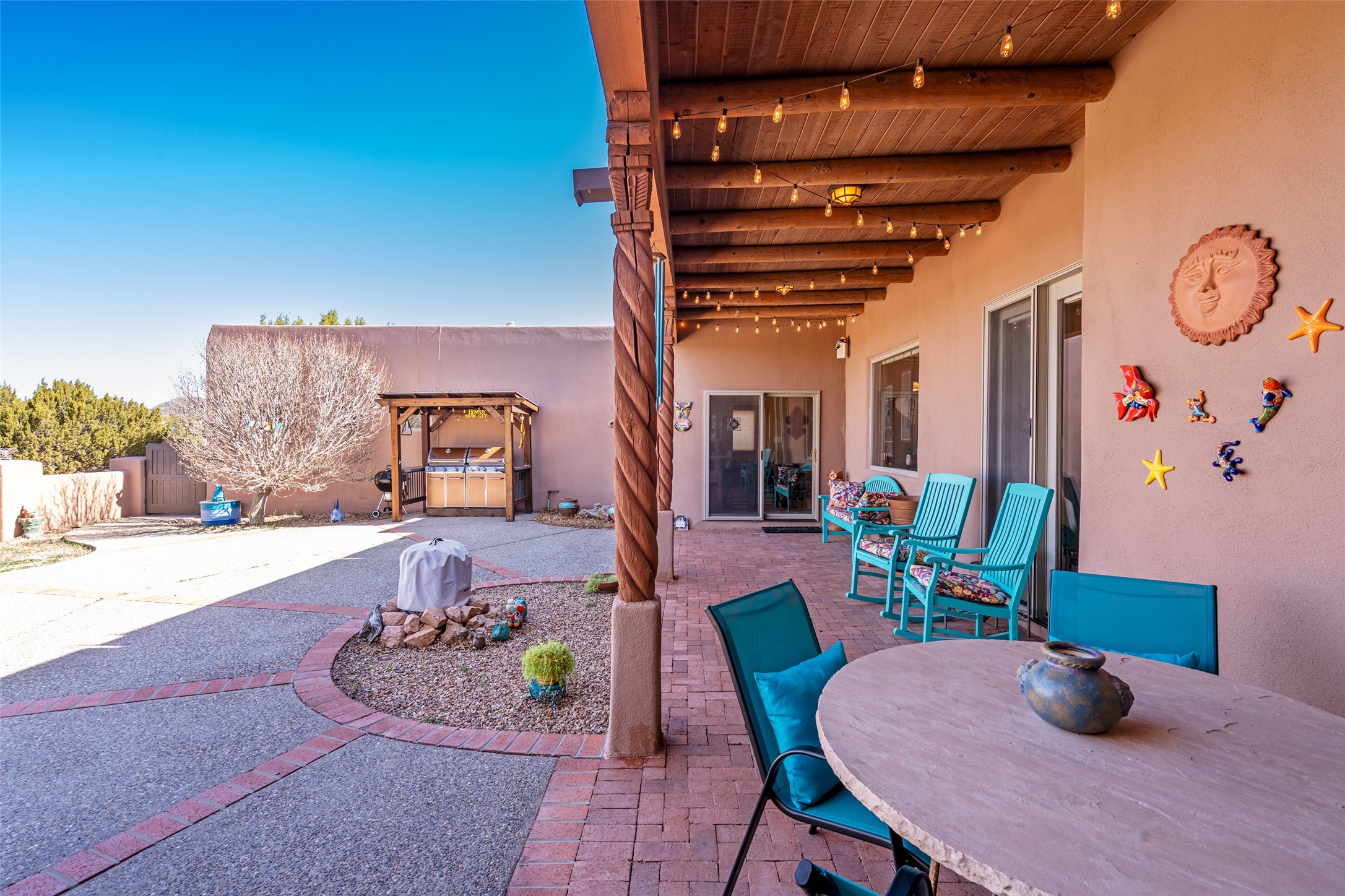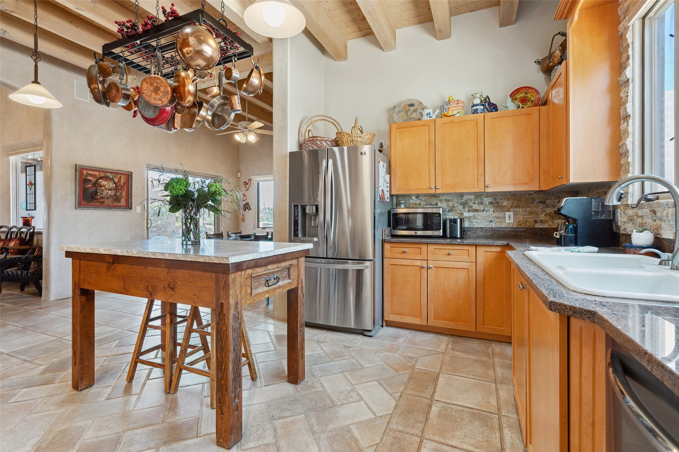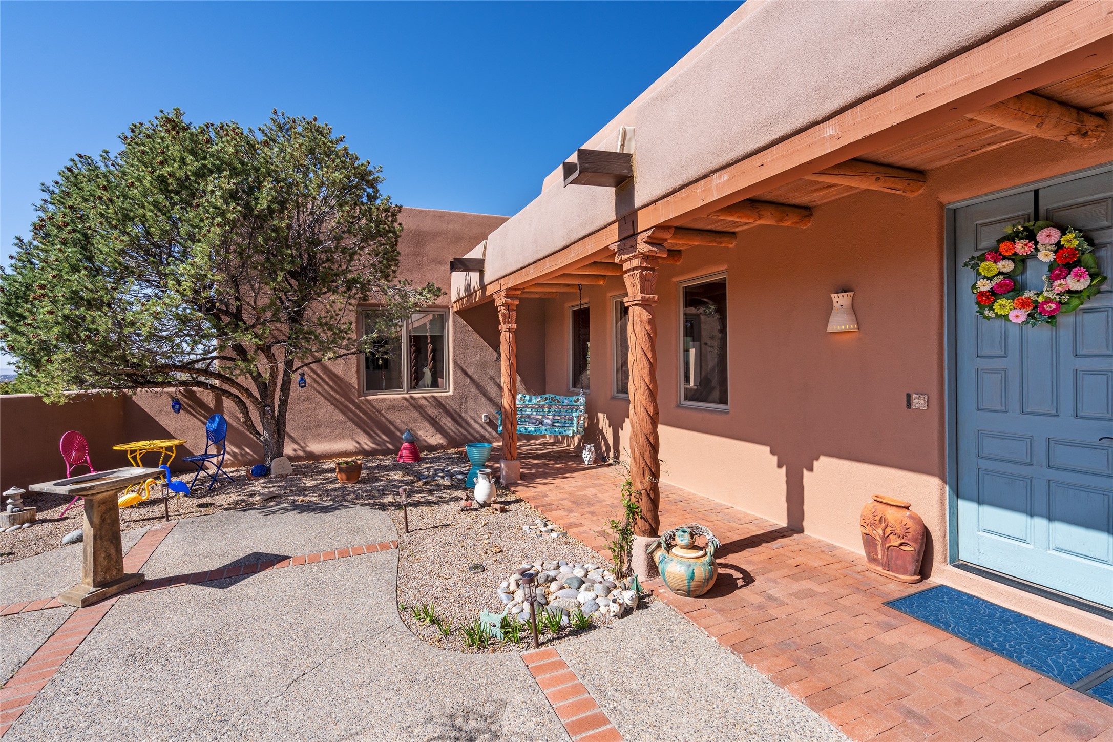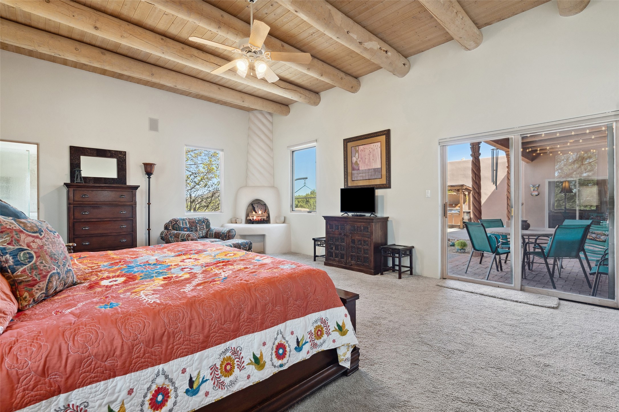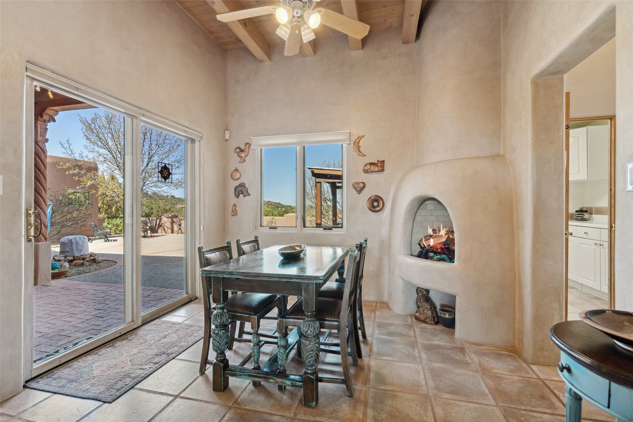 Exquisite Santa Fe Retreat with Sweeping Mountain Views3 Camino Costadino | Dos Griegos | Santa Fe, NMNestled in the highly sought-after Dos Griegos neighborhood, this stunning 3-bedroom, 3-bathroom residence captures the essence of Santa Fe living with breathtaking views of the Jemez Mountains and the foothills of the Sangre de Cristo range.Step into a grand great room where 15-foot ceilings, classic vigas, and smooth diamond plaster walls create a warm and timeless elegance. Expansive windows frame the dramatic natural landscape while flooding the home with ambient light--seamlessly blending the beauty of the outdoors with the comfort of the interior.This thoughtfully designed home also features a dedicated craft room and a spacious office just off the garage, offering flexibility for creatives, remote professionals, or those in need of extra space.Recent upgrades include a brand-new roof and Lifetime Fiberspan canales, ensuring long-term durability and peace of mind. A versatile 13' x 13' shed provides ample room for storage, hobbies, or workshop use.Whether you're savoring a quiet evening under the stars or hosting guests against a backdrop of spectacular mountain views, 3 Camino Costadino offers a rare blend of Southwestern charm, functionality, and enduring quality.