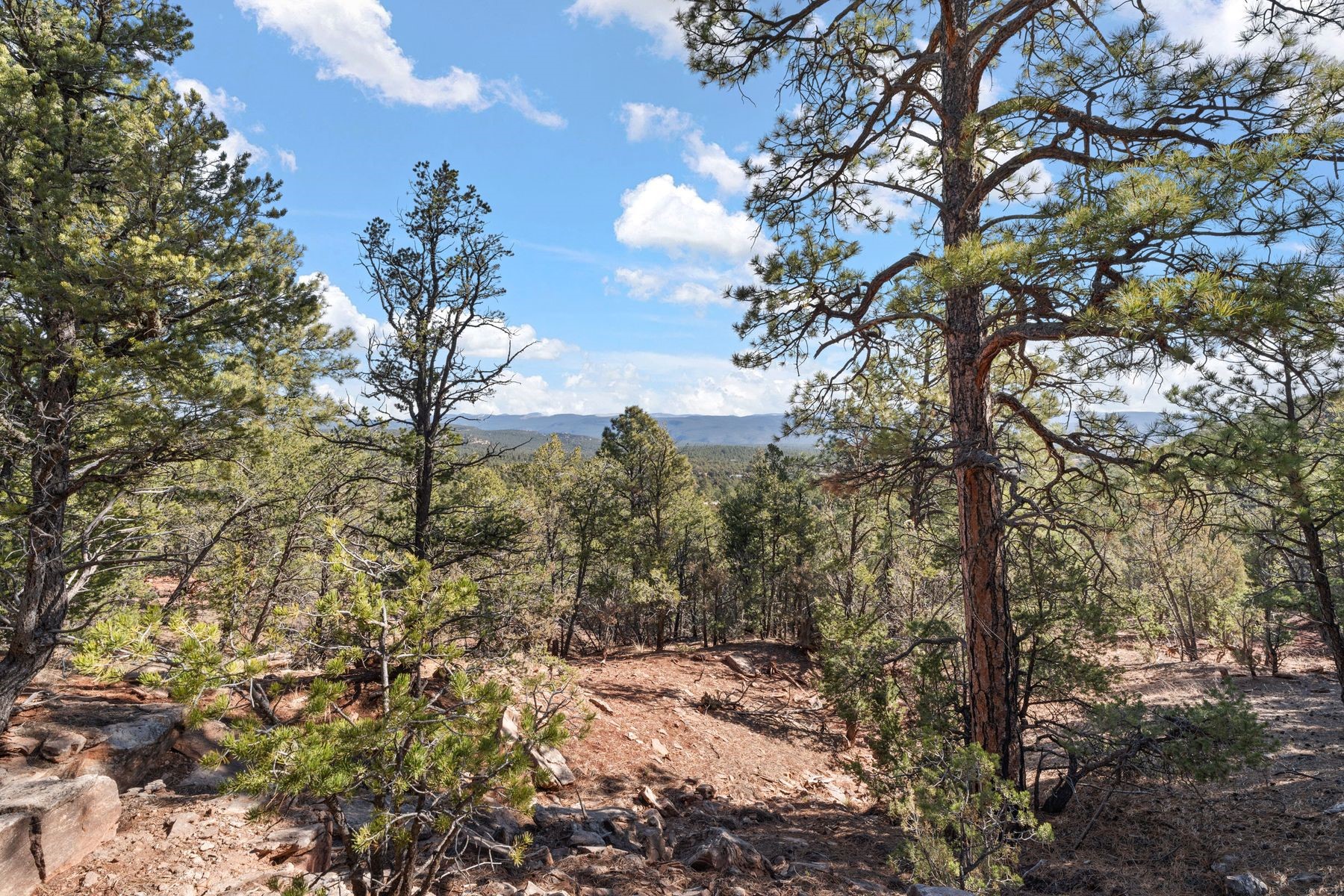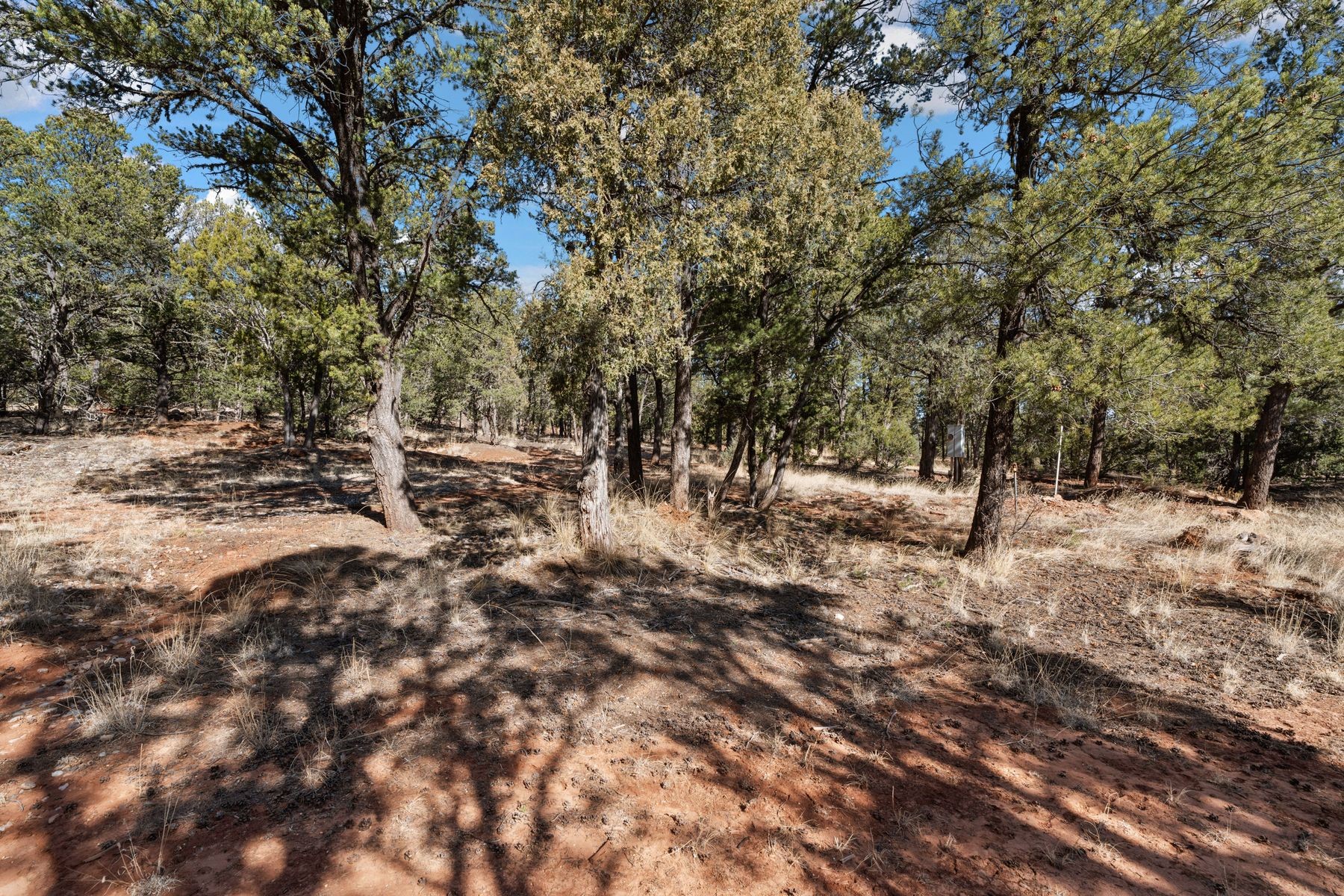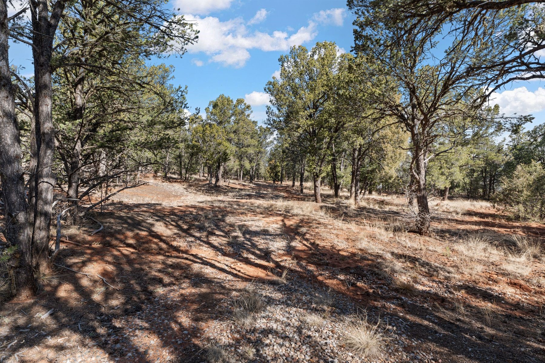 Located at the base of Glorieta Mesa with stunning views of the Pecos Valley, this 6.93-acre lot is ready for your dream home and horses! Level terrain makes for an optimal building site surrounded by majestic Ponderosa pines, fir, and pion trees. This serene property borders national forest land, offering direct access to endless outdoor adventures. A primitive driveway is already in place and an existing septic system, evaluated in 2021, adds to the property's readiness for development. Just 25 minutes from Santa Fe this lot offers the perfect blend of privacy and convenience for a new homeowner!