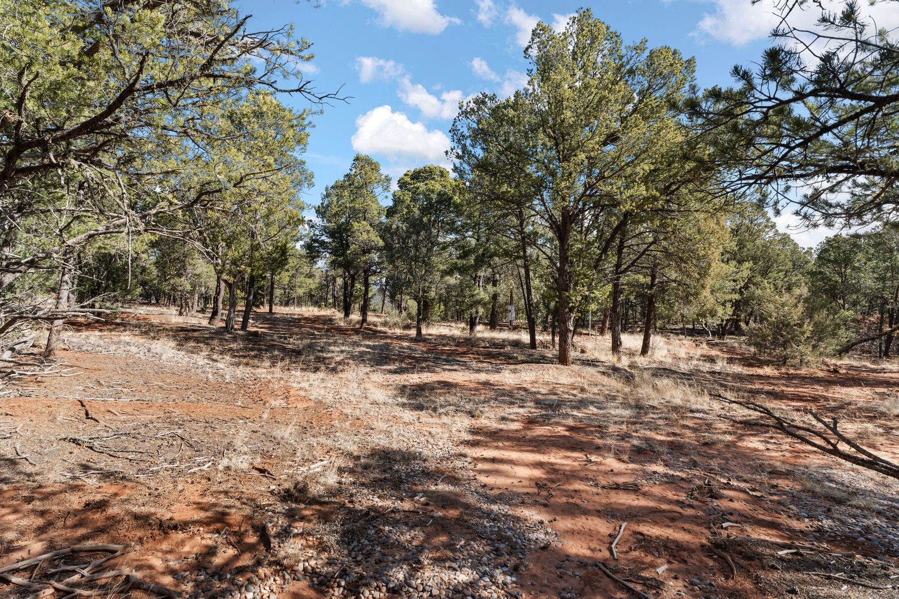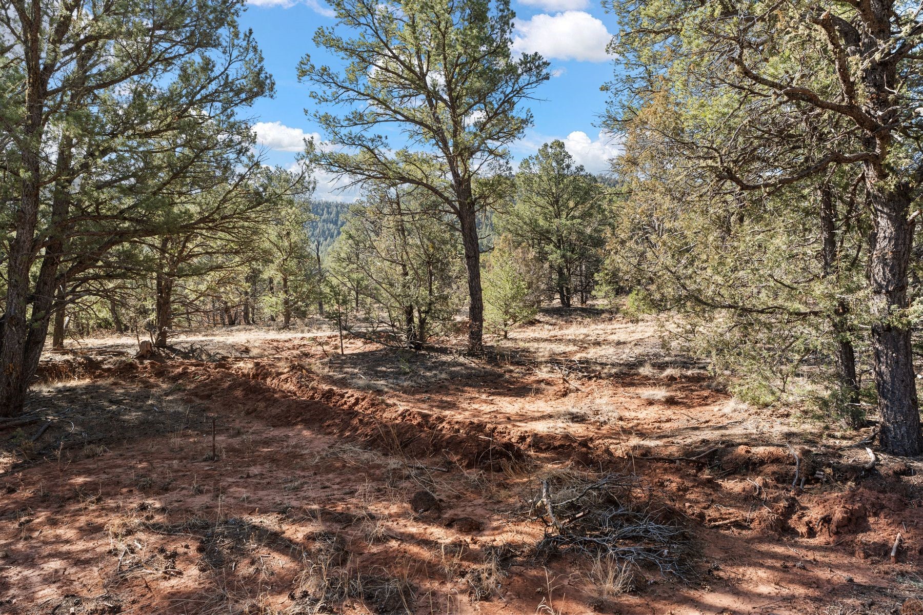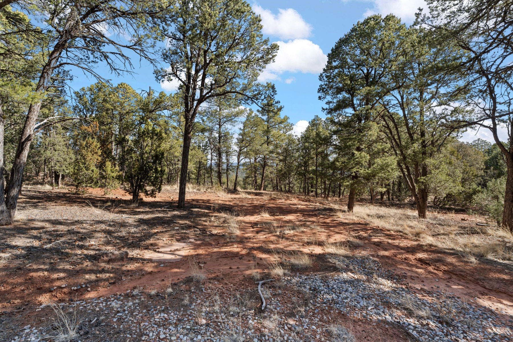 Located at the base of Glorieta Mesa with stunning views of the Pecos Valley, this 6.93-acre lot is ready for your dream home and horses! Level terrain makes for an optimal building site surrounded by majestic Ponderosa pines, fir, and pion trees. This serene property borders national forest land, offering direct access to endless outdoor adventures. A primitive driveway is already in place and an existing septic system, evaluated in 2021, adds to the property's readiness for development. Just 25 minutes from Santa Fe this lot offers the perfect blend of privacy and convenience for a new homeowner!