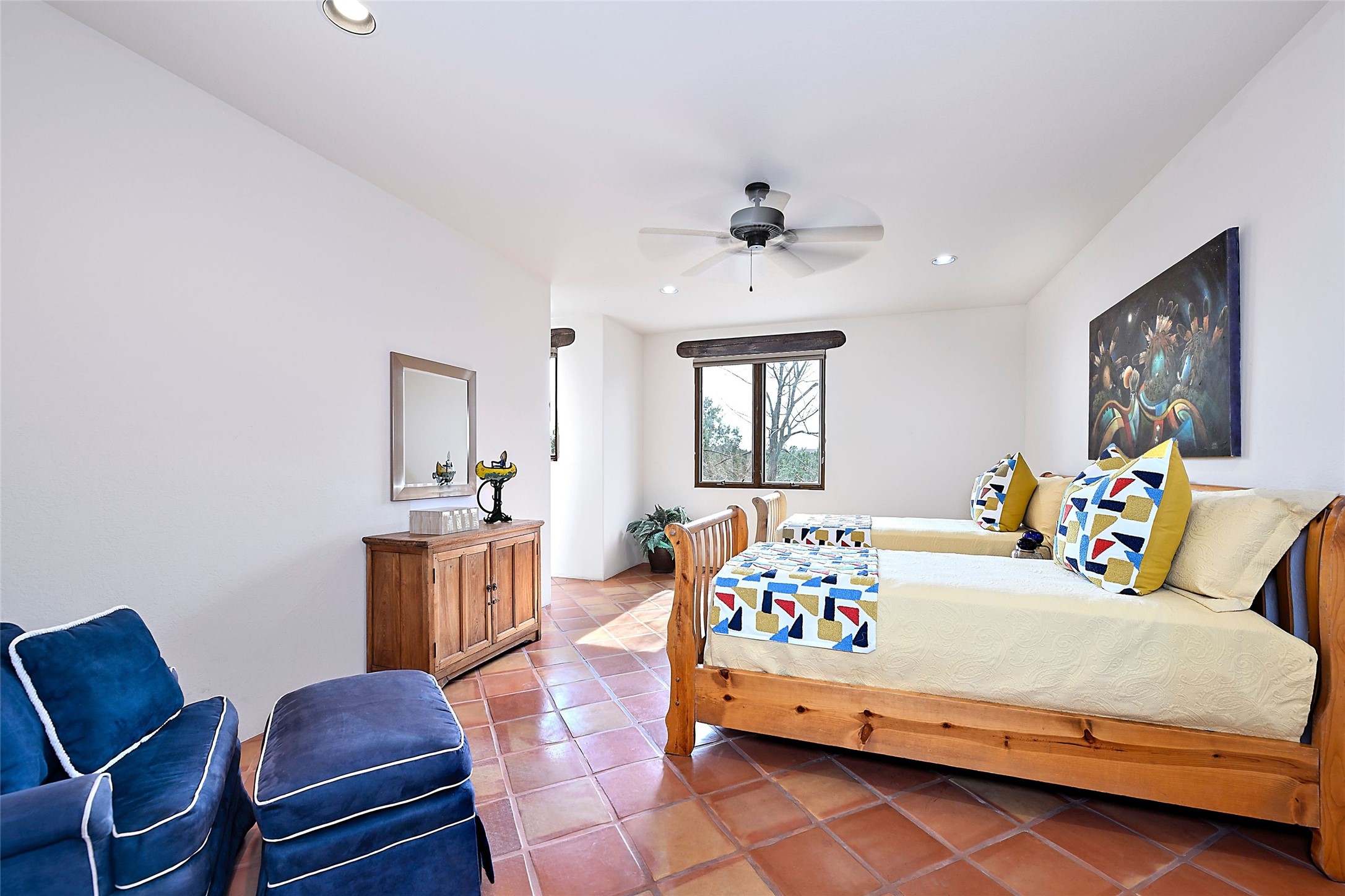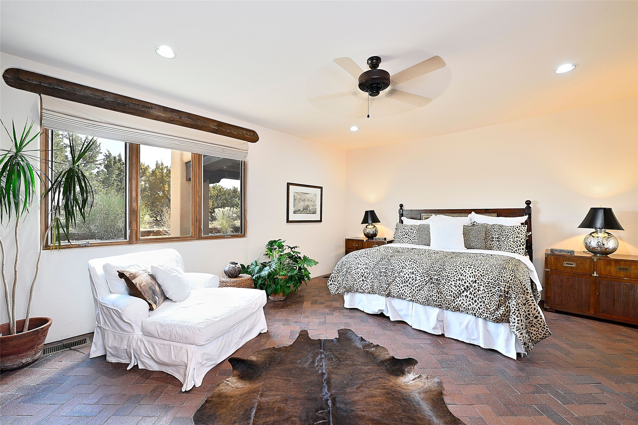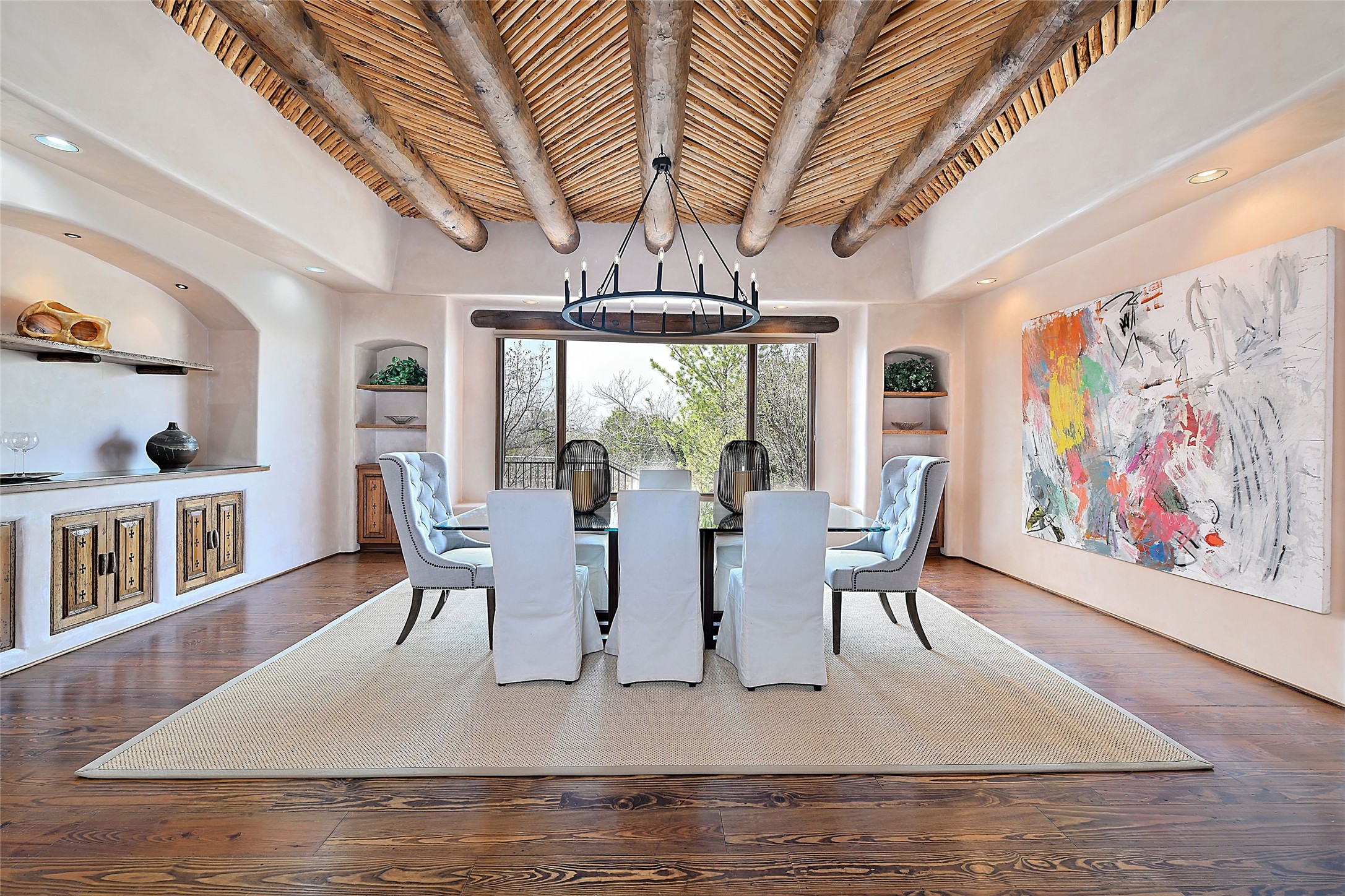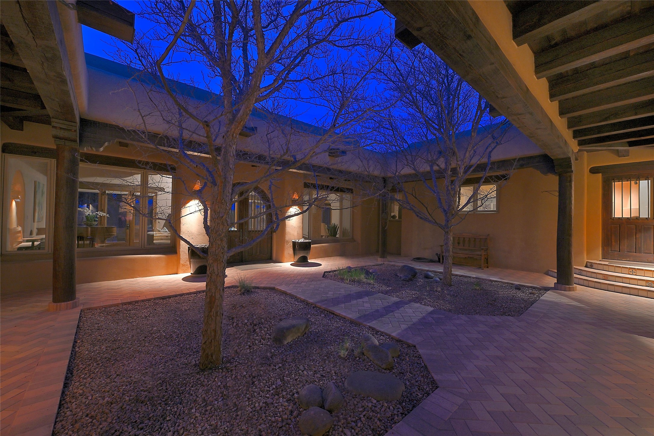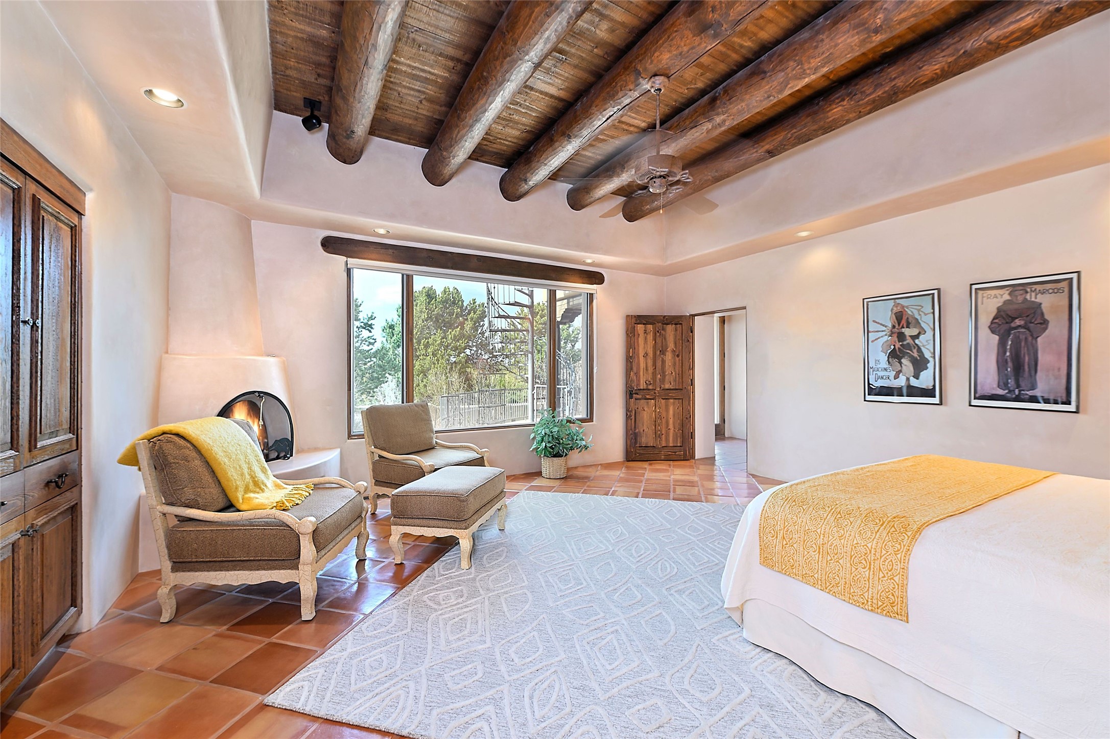The Grande Dame of las Campanas. Set on an expansive 5 acre double lot, this property offers unparalleled privacy and security. Substantial gates open to reveal a stunning courtyard meticulously designed to create a welcoming impression with natural, elegant landscaping. Stepping through the stately front doors you're greeted by the soaring ceilings of the expansive great room seamlessly connecting to the vast patio beyond. Adjacent to the great room lies the charming formal dining room. A step beyond is the extra-large game and media room. The kitchen has enough room for two to cook and friends to gather, with a charming breakfast nook opening to the courtyard. The estate boasts four bedrooms each with en-suite baths. The primary bedroom is a private retreat with accompanying bath and an extensive two sides walk-in closet. Steps away is the home's library ready for a collection of books or artifacts. the comfortable seating area offers a peaceful place to read, work or just relax. For those who opt to join the club at Las Campanas with its world class amenities, memberships are available. Or just enjoy the serenity of a beautifully cared for community.