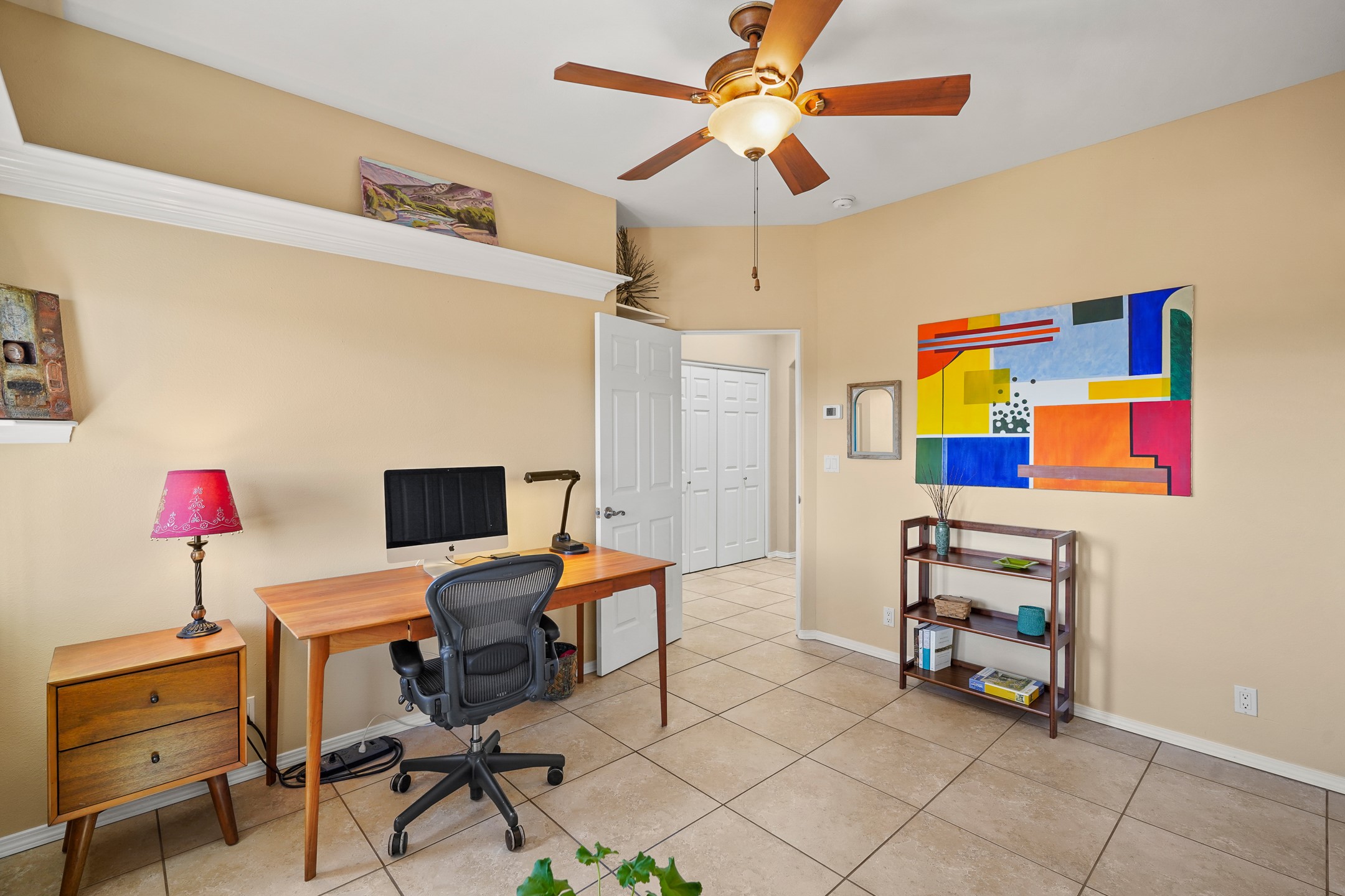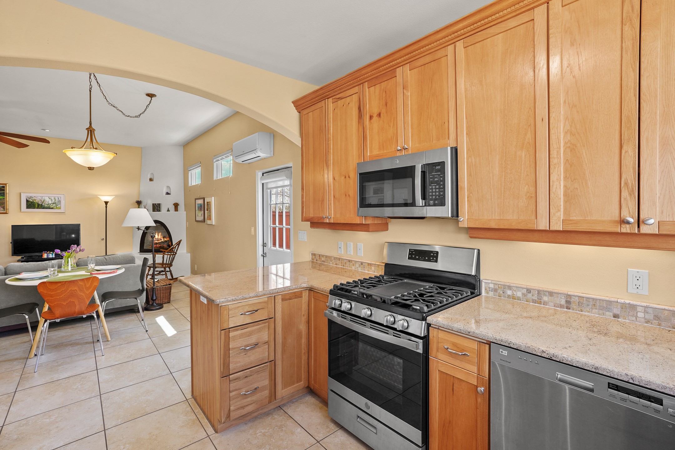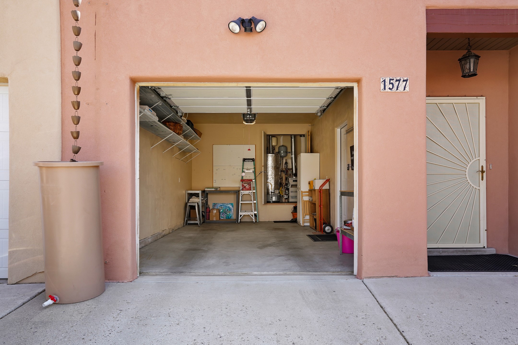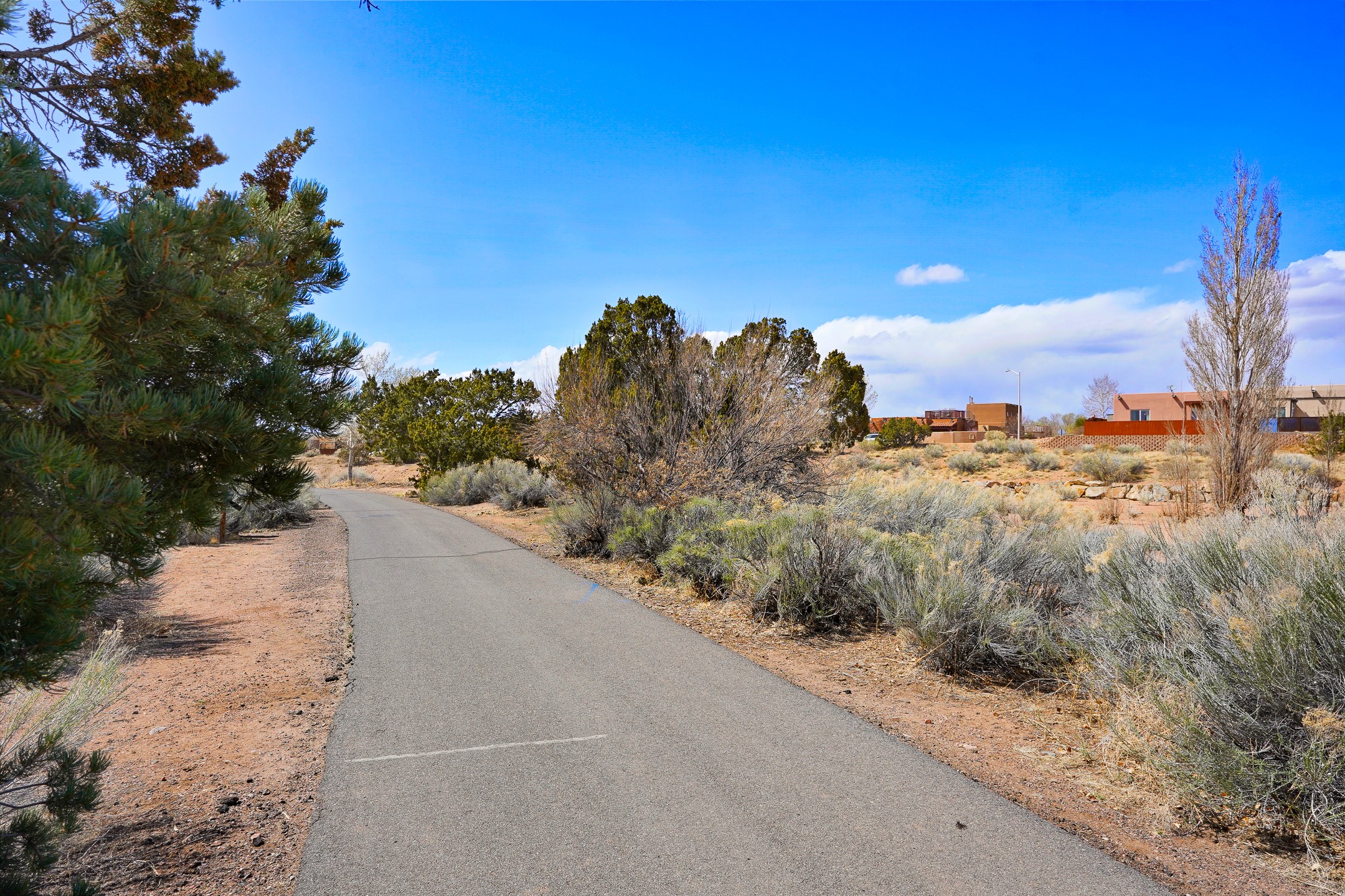 This charming home offers an abundance of natural light, with five skylights thoughtfully placed throughout the space--two in the hallway, one in each bathroom, and another in the direct entry garage. The former owner, a passionate artist, used the garage as a painting studio, which benefits from this incredible light. Enjoy stunning views of the expansive Arroyo de los Chamisos, perfect for soaking in breathtaking sunsets.For energy efficiency, solar panels keep your electric costs low. The home has been lovingly maintained, with both the roof and stucco remaining under a transferrable warranty for added peace of mind. Plus, there's wiring already in place for a hot tub on the patio, just waiting for your relaxation!You'll also appreciate the friendly neighborhood community, with dog walkers and hikers often seen enjoying the scenic arroyo trails. The current owner has also cultivated a beautiful stretch of NM sunflowers, which are set to bloom along the arroyo retaining wall. Simply use the drip/sprinkler hose in place, and you can continue this lovely annual tradition!This home truly offers the perfect blend of comfort, beauty, and efficiency, all in a peaceful, welcoming environment.