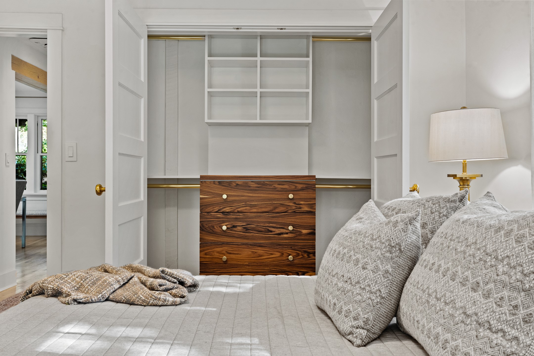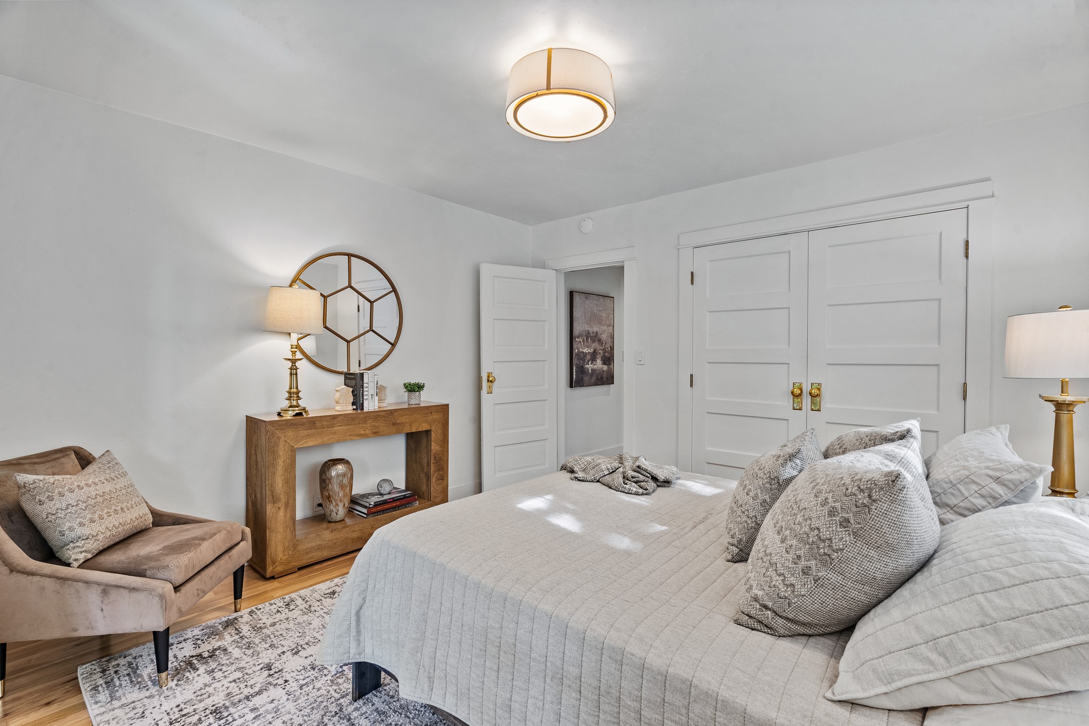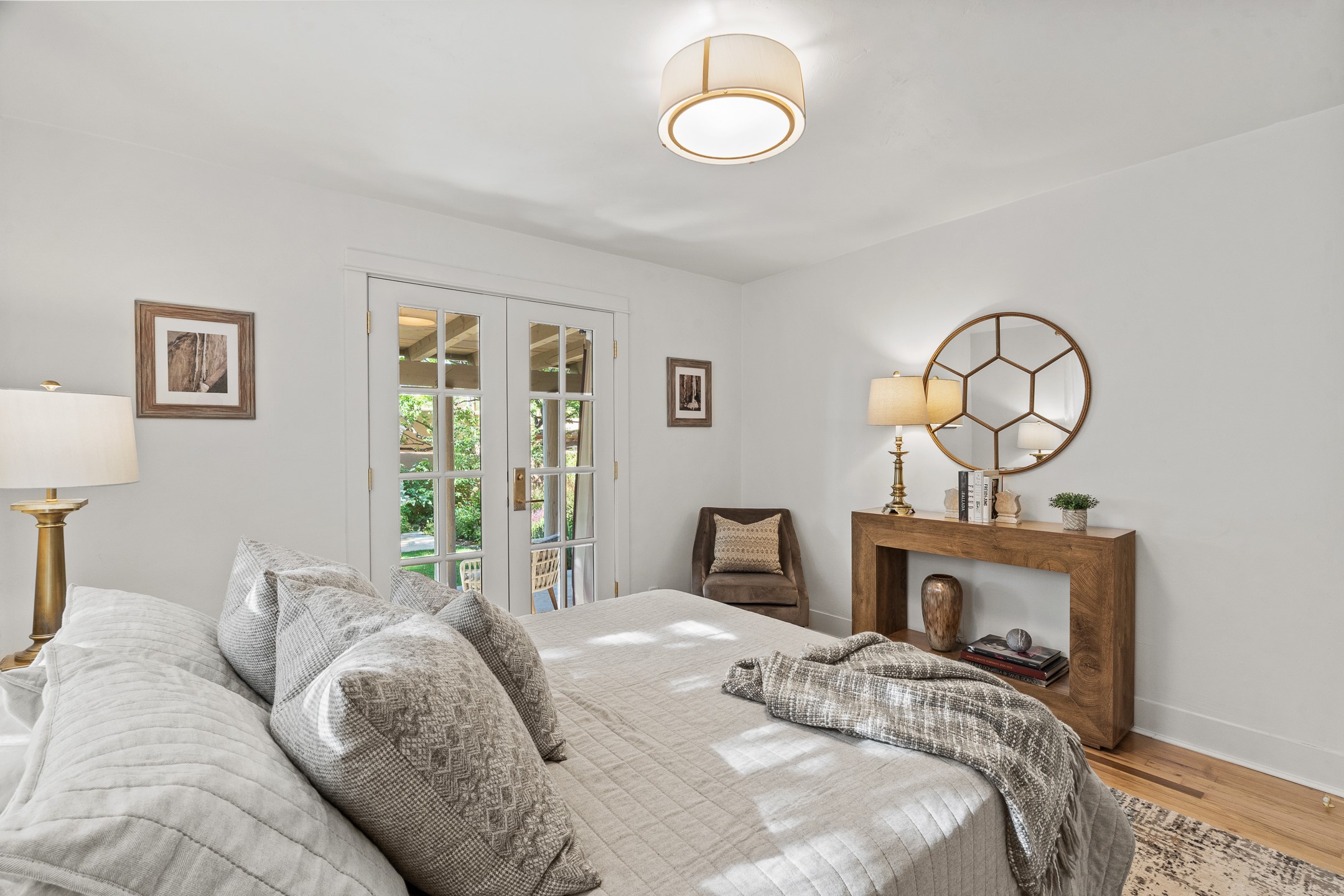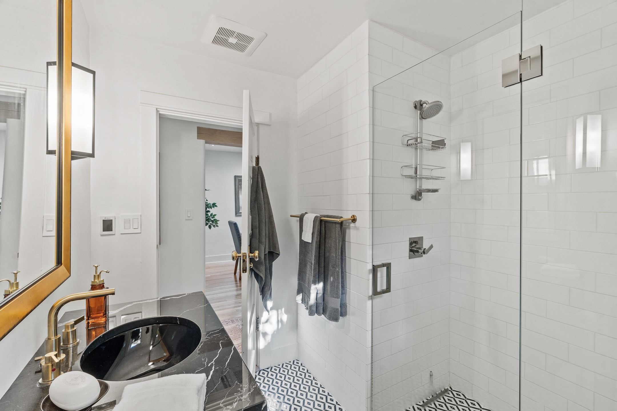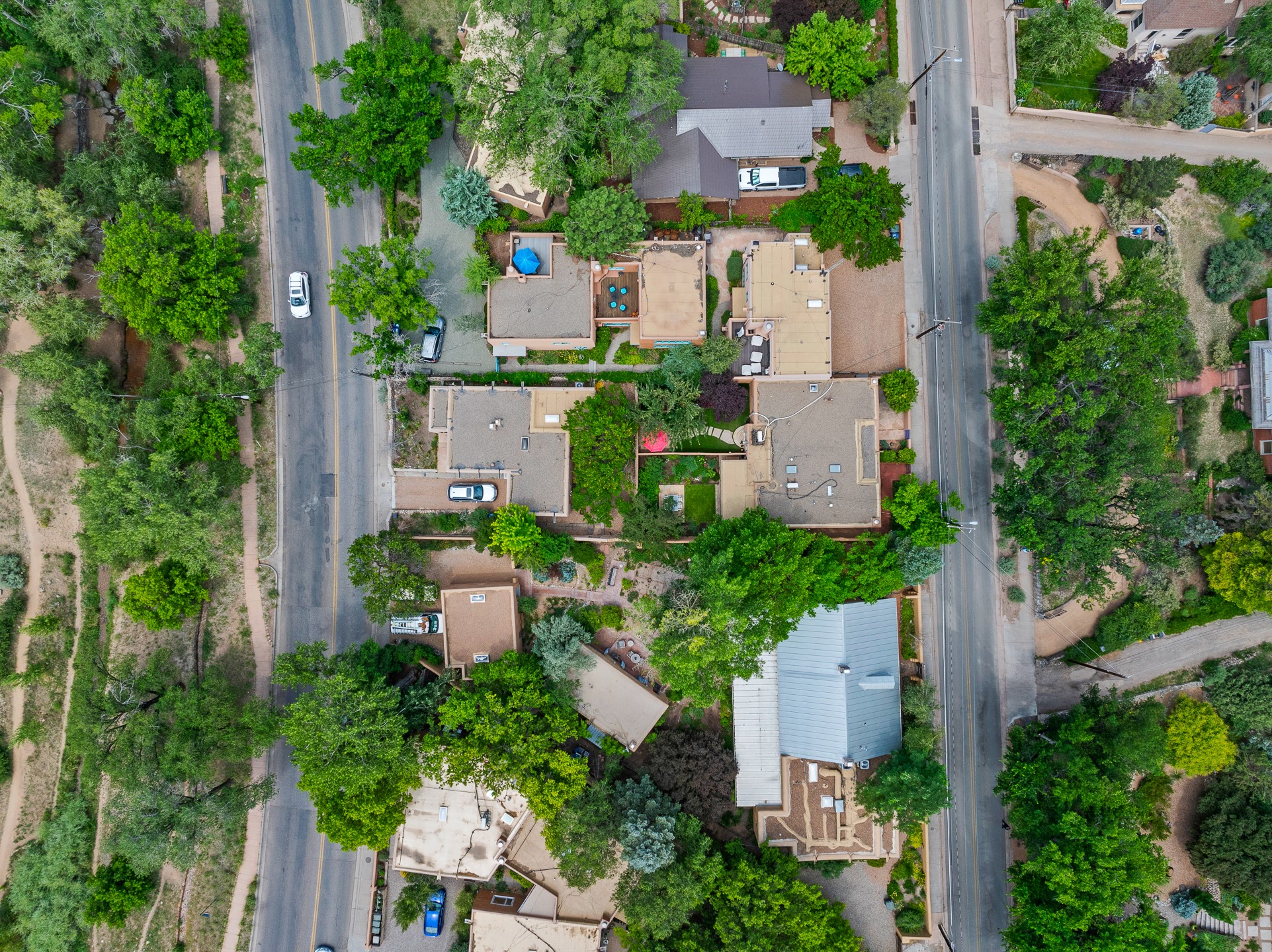 This impeccably designed 1920s adobe condo, nestled just three blocks from The Plaza and Canyon Road, is the crown jewel of coveted East Palace Avenue. Completely renovated in 2020, this exquisite 1-bedroom, 1-bathroom residence seamlessly blends Santa Fe charm with the sophistication of a Manhattan penthouse. The open floor plan is bathed in soft, natural light, featuring a refined living and dining area with a graceful kiva fireplace, beautifully refinished oak floors, and recessed art lighting. The kitchen is a true showpiece, boasting Ebony Macassar cabinetry, solid brass hardware by Water Street, and top-tier Asko, Sub-Zero, and Wolf appliances. Classico Quartz countertops and striking Black Marquina marble tile walls add a bold, modern aesthetic.The spacious bedroom offers custom closets and elegant French doors leading to a south-facing portal and a lush courtyard garden--an oasis of natural beauty with a classic flagstone patio, all masterfully designed by Linda Churchill of the Santa Fe Botanical Gardens. The bathroom is a masterpiece in itself, featuring a black-and-white marble mosaic walk-in shower, a custom rosewood vanity with bronze hardware, and a Nero Marquina marble countertop. A hidden surprise of this property is its rare, generous basement--an uncommon luxury in Santa Fe. Additional 2020 upgrades include new ductless heating and A/C, as well as upgraded electrical and plumbing. 638 East Palace is a rare fusion of sophistication and elegance--a radiant jewel in Santa Fe's architectural treasure chest.