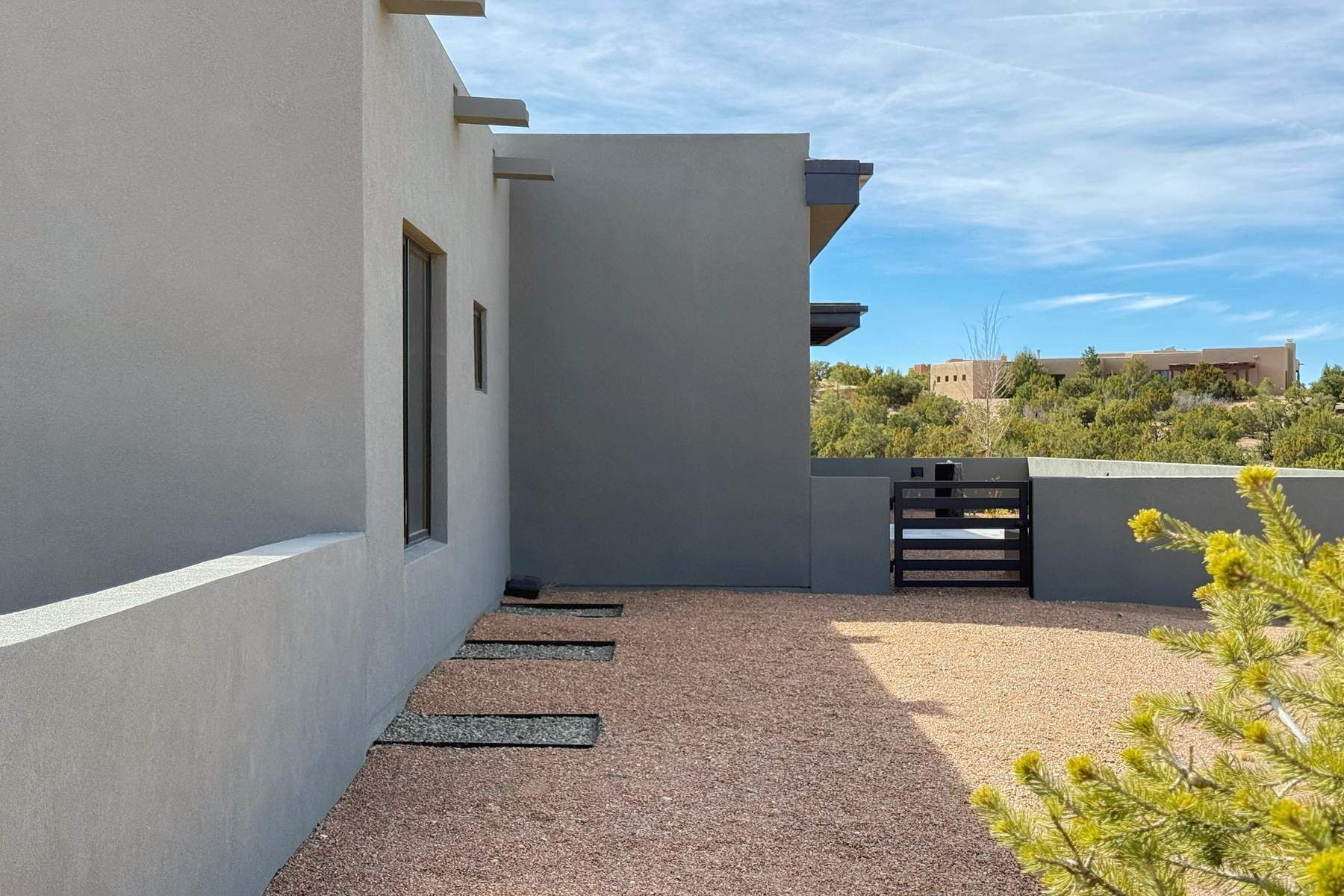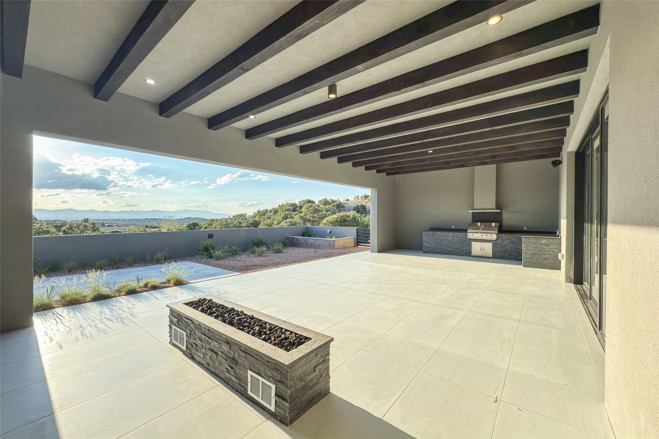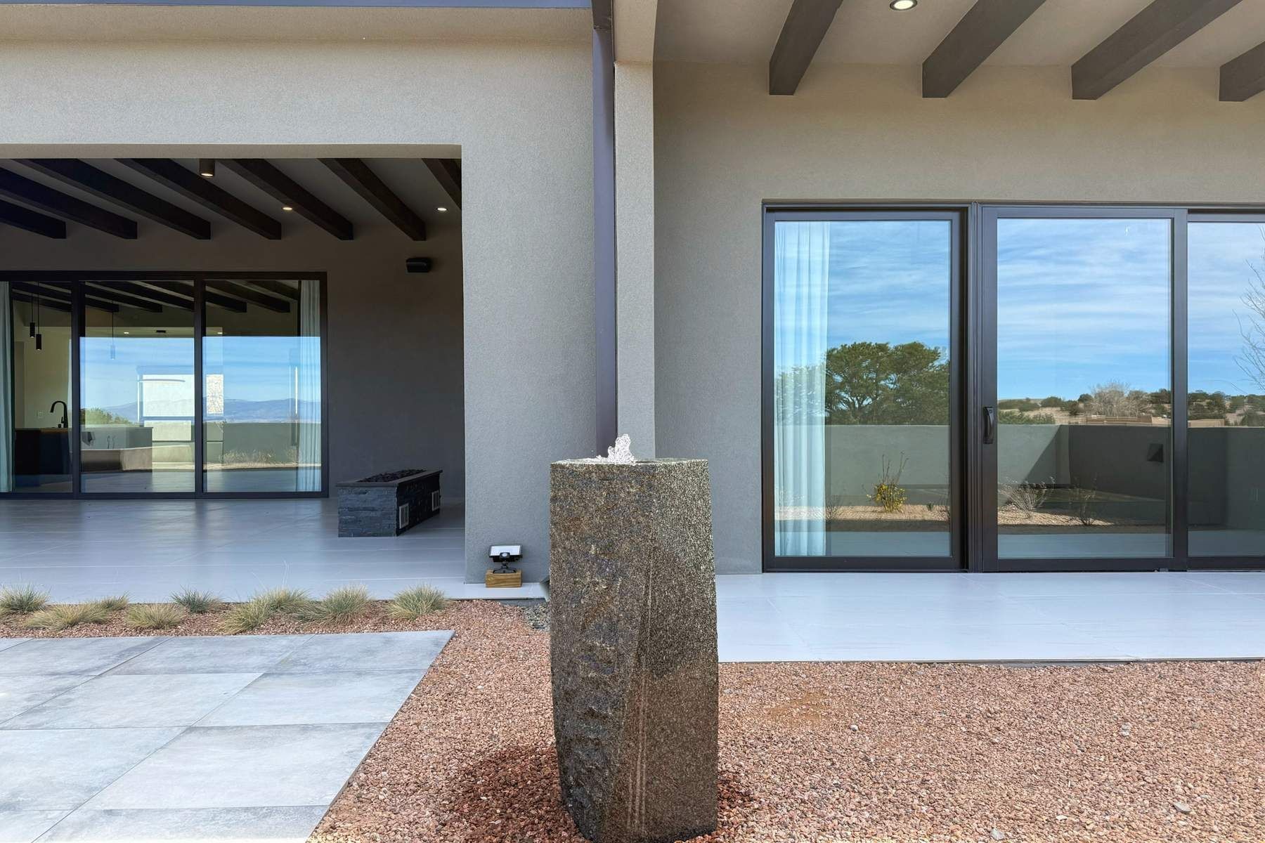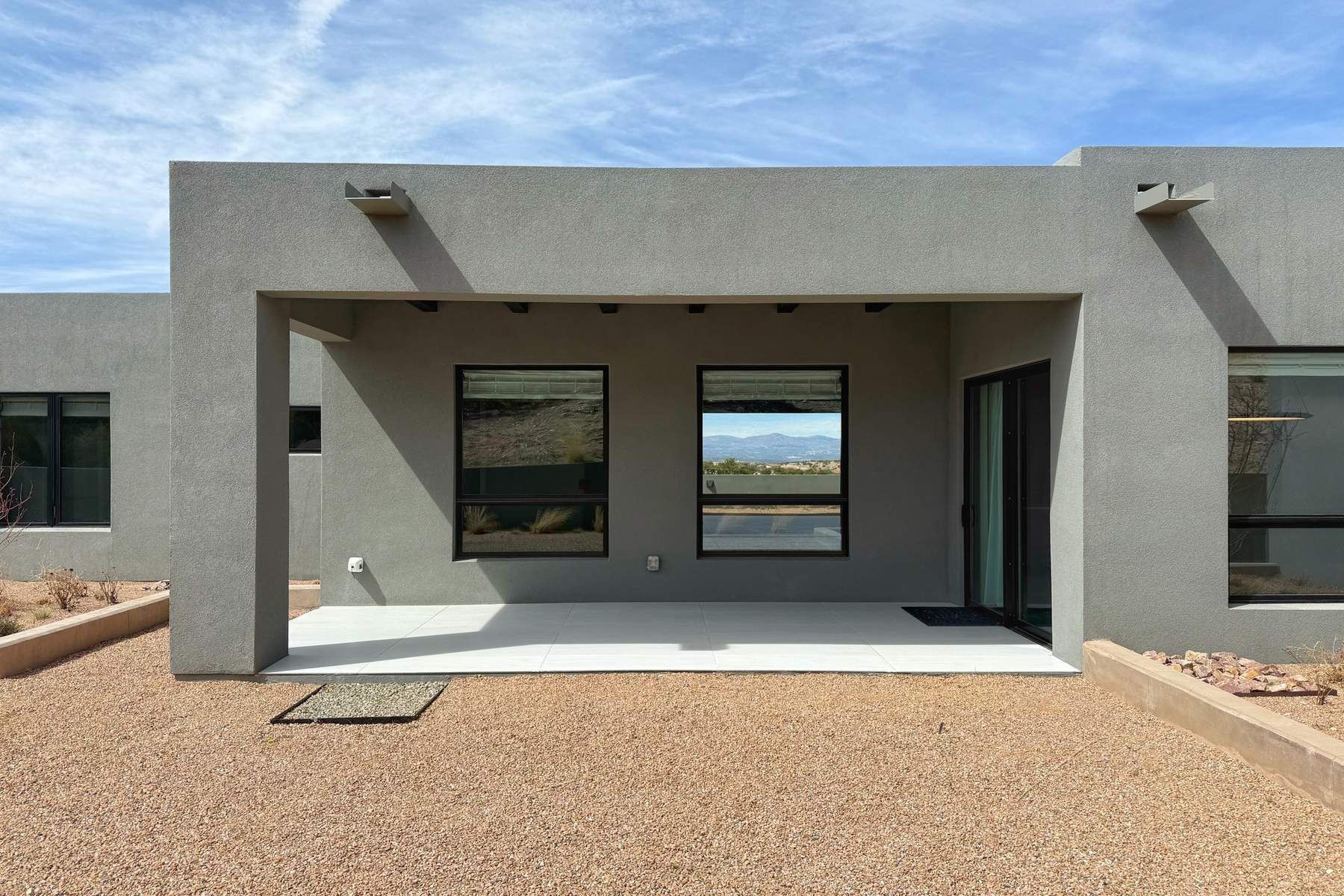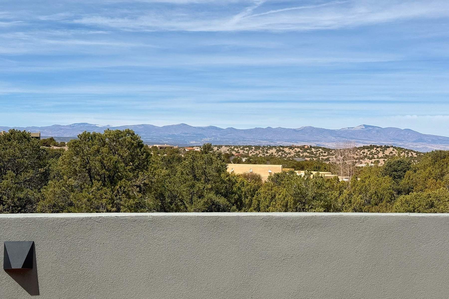 Experience contemporary living in this stunning 2023 home built by David Cordova. Nestled on 2.64 acres in Sundance Ridge. Spanning approximately 2,775 sq. ft., this 3-bedroom, 3-bathroom residence offers seclusion and privacy while being just a 17-minute drive to the Santa Fe Plaza. The living room boasts high ceilings, a beautiful accent wall with a gas fireplace, and built-in shelves, creating a refined yet cozy ambiance. Step outside to take in breathtaking sunset views over the Jemez Mountains from the covered portals and walled outdoor spaces. Entertain with ease in the outdoor kitchen, while the large walk-in butler's pantry with a second refrigerator makes hosting large gatherings a breeze. Or unwind amid the tranquil setting, surrounded by mature trees and nature. Designed for seamless indoor-outdoor living, the primary suite features large sliding doors that open to a private patio, perfect for enjoying the natural surroundings. A gas fireplace with a striking accent wall adds warmth and elegance to the space. A bonus feature is the radiant floor heated garage. More than $100K invested in upgrades--including landscaping, yard walls, garage floor finish, and a custom fountain--makes this better than new. The home has never been occupied and is truly a turn-key property. This exquisite home blends modern comfort with the serenity of Santa Fe's landscape--don't miss the chance to make it yours.