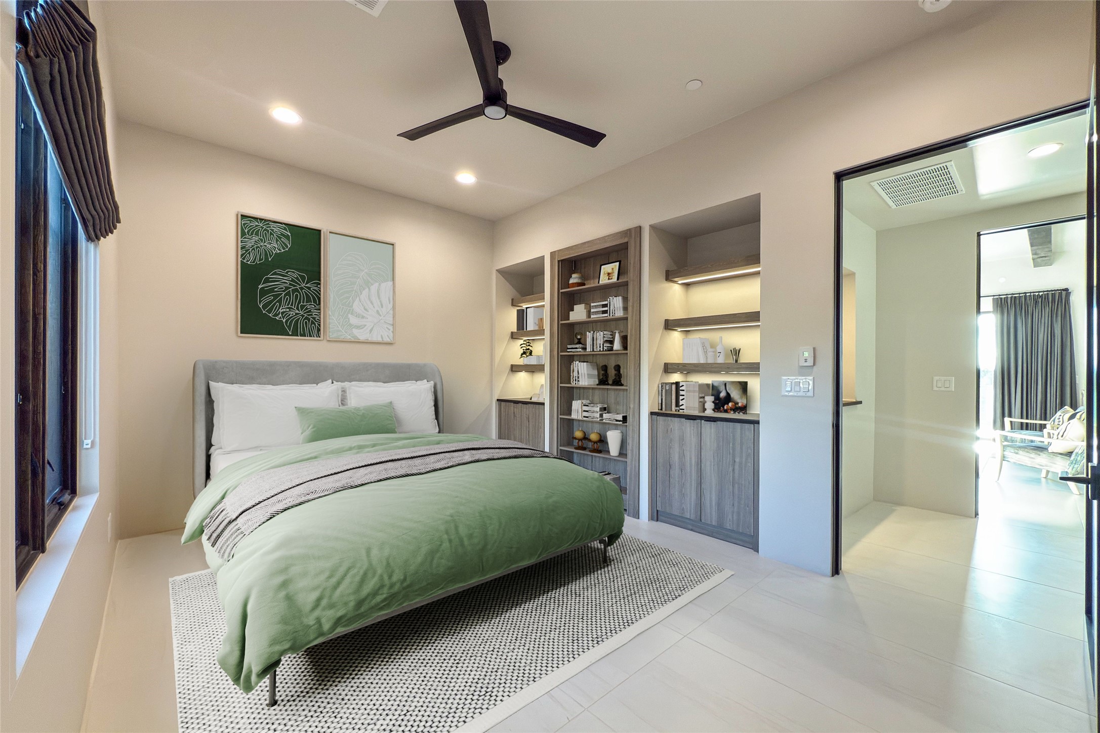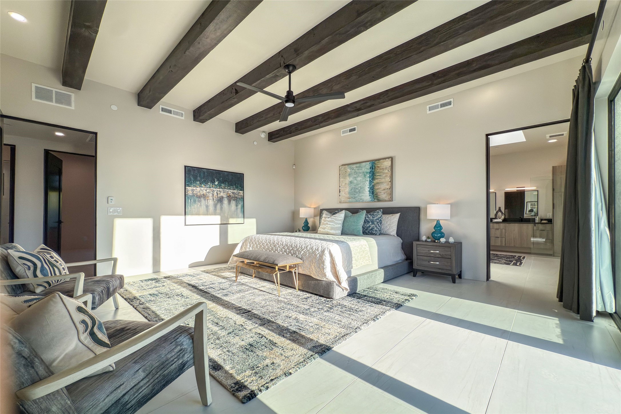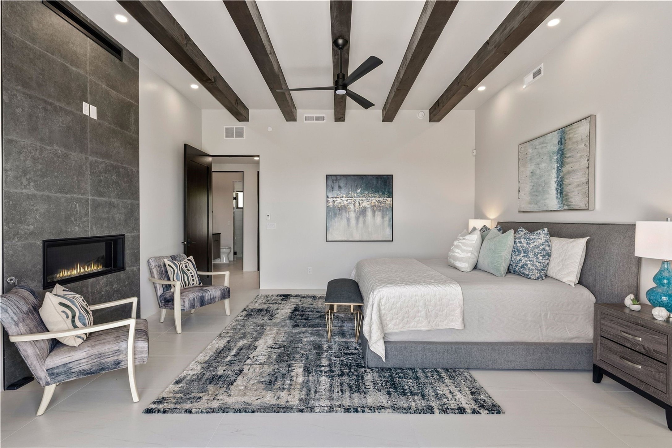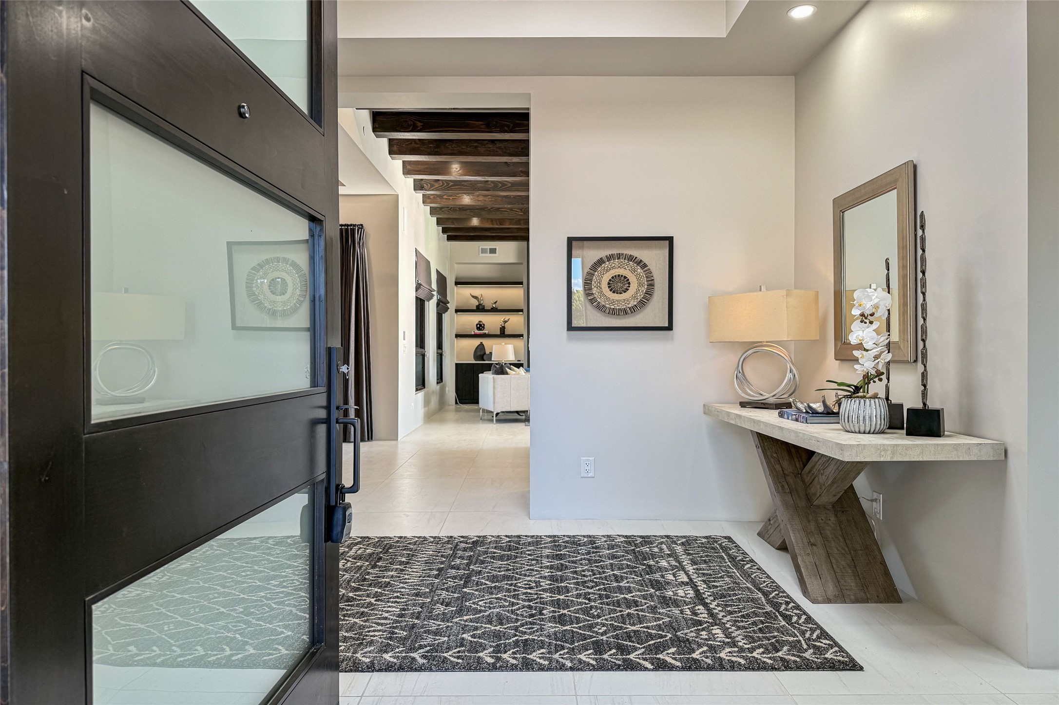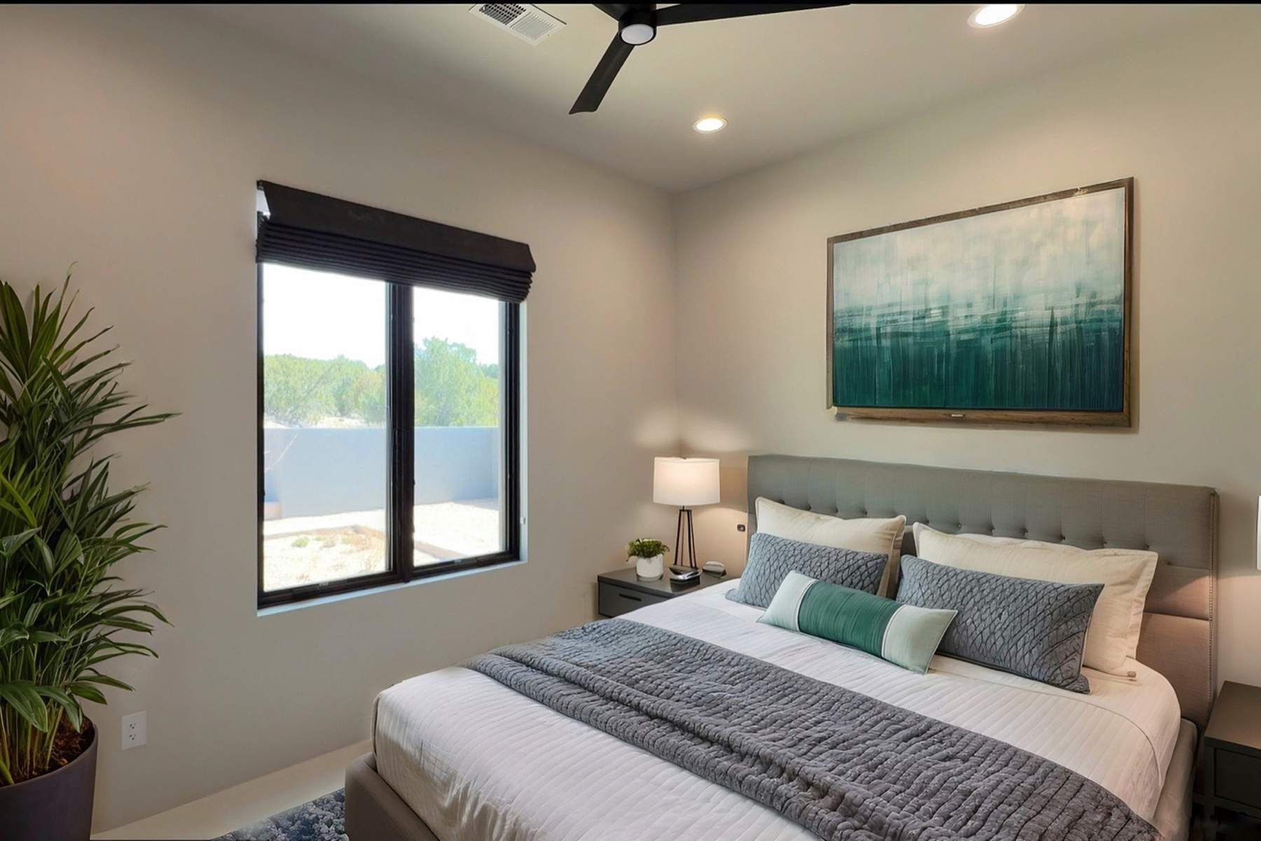 Experience contemporary living in this stunning 2023 home built by David Cordova. Nestled on 2.64 acres in Sundance Ridge. Spanning approximately 2,775 sq. ft., this 3-bedroom, 3-bathroom residence offers seclusion and privacy while being just a 17-minute drive to the Santa Fe Plaza. The living room boasts high ceilings, a beautiful accent wall with a gas fireplace, and built-in shelves, creating a refined yet cozy ambiance. Step outside to take in breathtaking sunset views over the Jemez Mountains from the covered portals and walled outdoor spaces. Entertain with ease in the outdoor kitchen, while the large walk-in butler's pantry with a second refrigerator makes hosting large gatherings a breeze. Or unwind amid the tranquil setting, surrounded by mature trees and nature. Designed for seamless indoor-outdoor living, the primary suite features large sliding doors that open to a private patio, perfect for enjoying the natural surroundings. A gas fireplace with a striking accent wall adds warmth and elegance to the space. A bonus feature is the radiant floor heated garage. More than $100K invested in upgrades--including landscaping, yard walls, garage floor finish, and a custom fountain--makes this better than new. The home has never been occupied and is truly a turn-key property. This exquisite home blends modern comfort with the serenity of Santa Fe's landscape--don't miss the chance to make it yours.