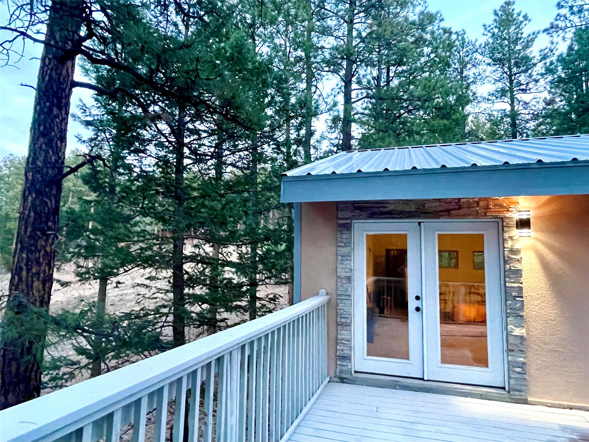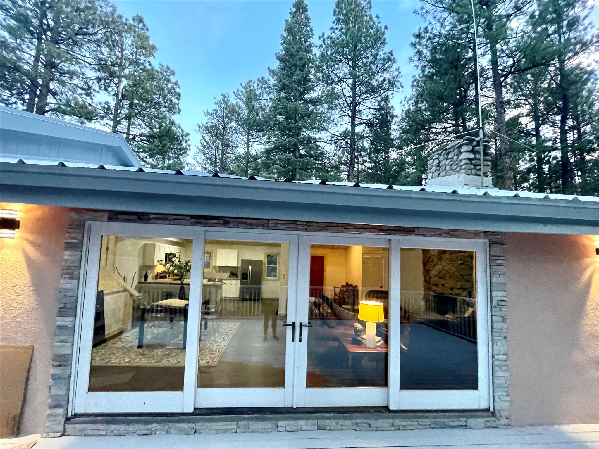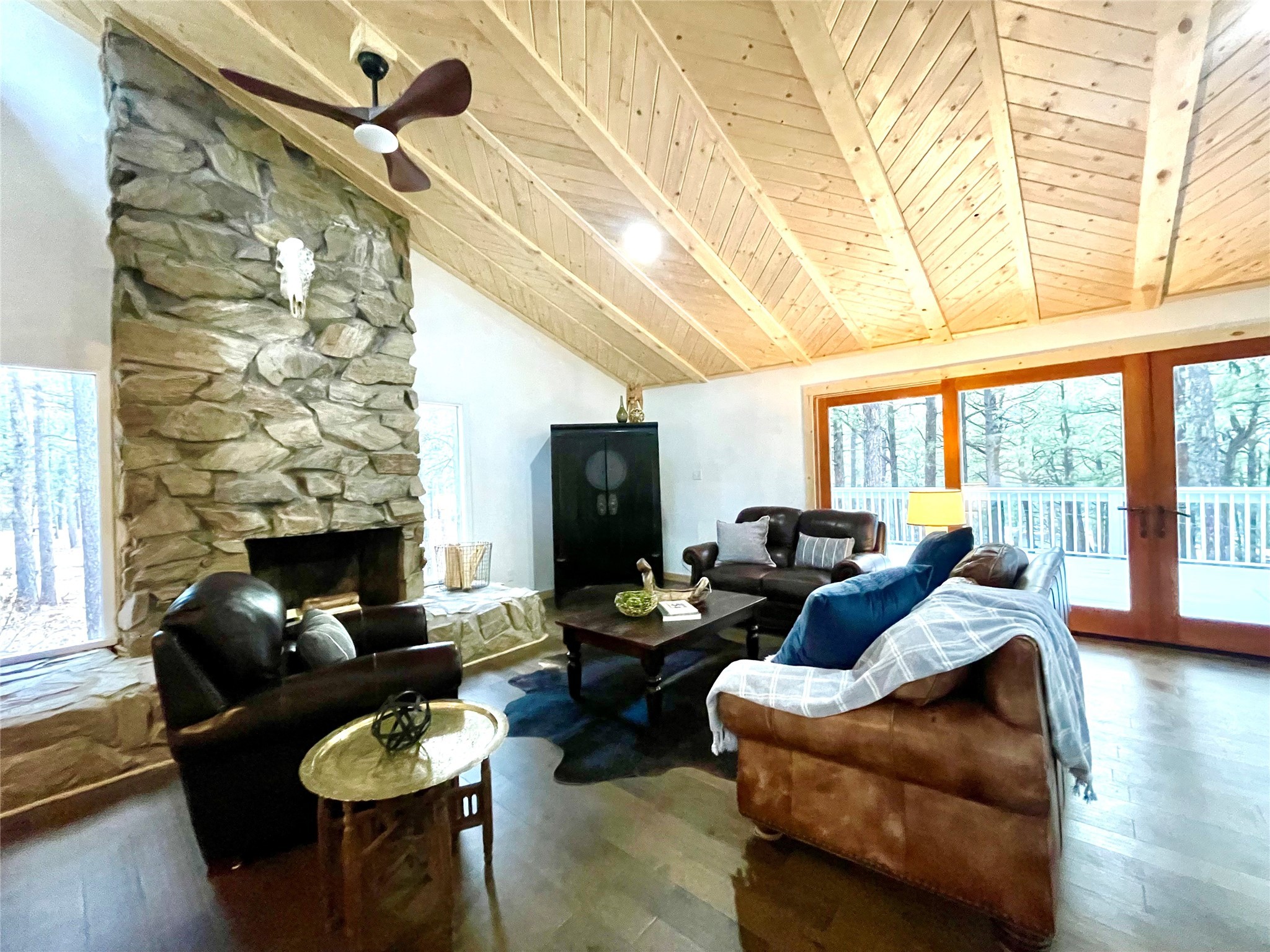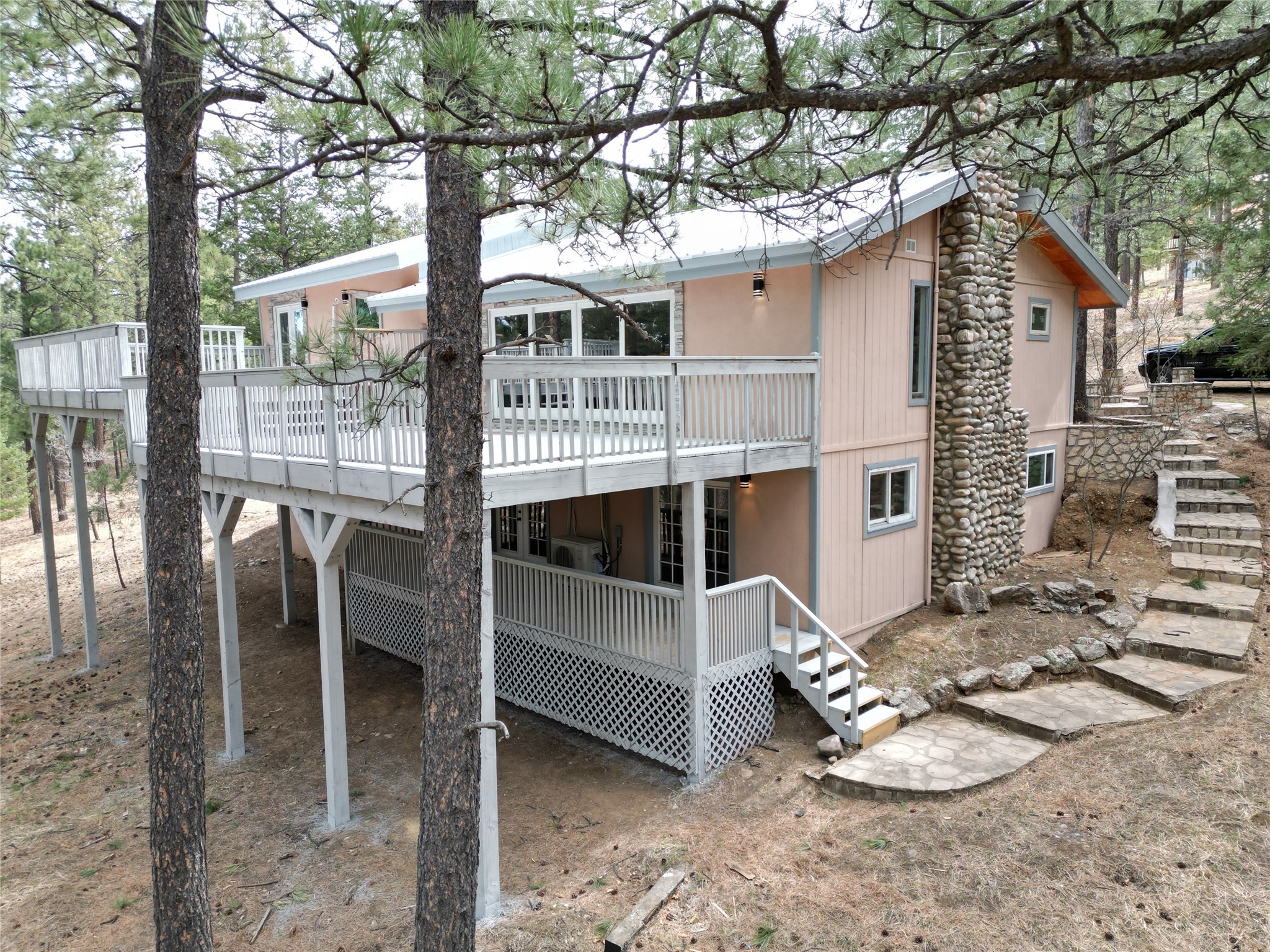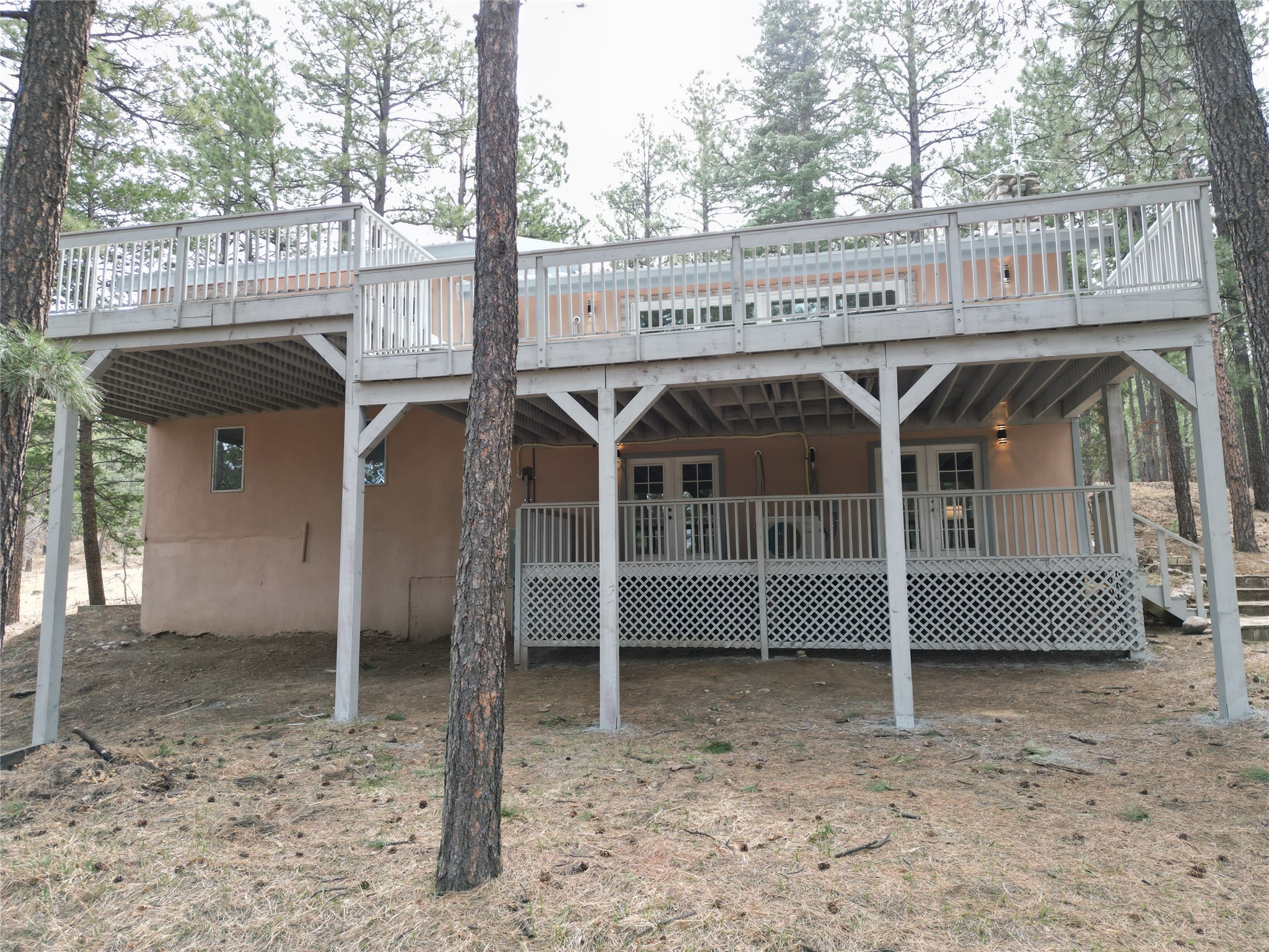 Beautifully updated luxury home in Pendaries Village Golf Club! Too many updates to list: all new floor coverings, all new appliances, all new interior and exterior paint, stucco and stonework, new roof, all new bathroom fixtures and vanities, all new kitchen cabinets and sinks, all new light fixtures, new 200 amp service, new mini-splits, new garage doors, new front doors, new interior doors, mostly new windows. Enjoy the gorgeous wooded mountain views with front patio as well as two separate back decks - enjoy star watching, nature, and deer watching while relaxing on the deck. Two grand stone fireplaces give it a mountain vibe, and has that contemporary New Mexico feeling. Perfect place to escape summer heat or to cozy up for winter! Short walk to nine hole golf course. Flexible floor plan, watch the video link, so you can use the entire space for one big group, or you can keep the guest quarters separate - each has own separate exterior and interior entries. Upstairs features cathedral ceilings in entry way, living room, dining area, kitchen with breakfast bar, grand suite with en suite bathroom, as well as full guest bathroom. Downstairs has a laundry area, a separate guest kitchen and dining area, a second living room with deck access and plumbed for wet bar area, a bedroom with deck access, a second bedroom, and a full bathroom. The two car garage is so spacious with separate area for storage and entrance to mud room. New wood flooring all over and new carpet in main bedroom. Luxurious finishes such as granite countertops, brand new stainless appliances, and all bathrooms have high end glass shower doors. Be the first person to use all the new fixtures. Excellent outdoor recreation: golf, hiking, snow shoeing or snowmobiling, nearby lakes, ski resorts, Montezuma Hot Springs, state parks, and Hermits Peak make this special place a haven for recreation. Hour and a half to Santa Fe, half hour to Las Vegas. HOA provides water. Listing includes home on lot 14 as well as vacant lot 15 next door, over an acre total. So spacious and open with room for everyone! This impressive luxury home will not last, so schedule your showing now!