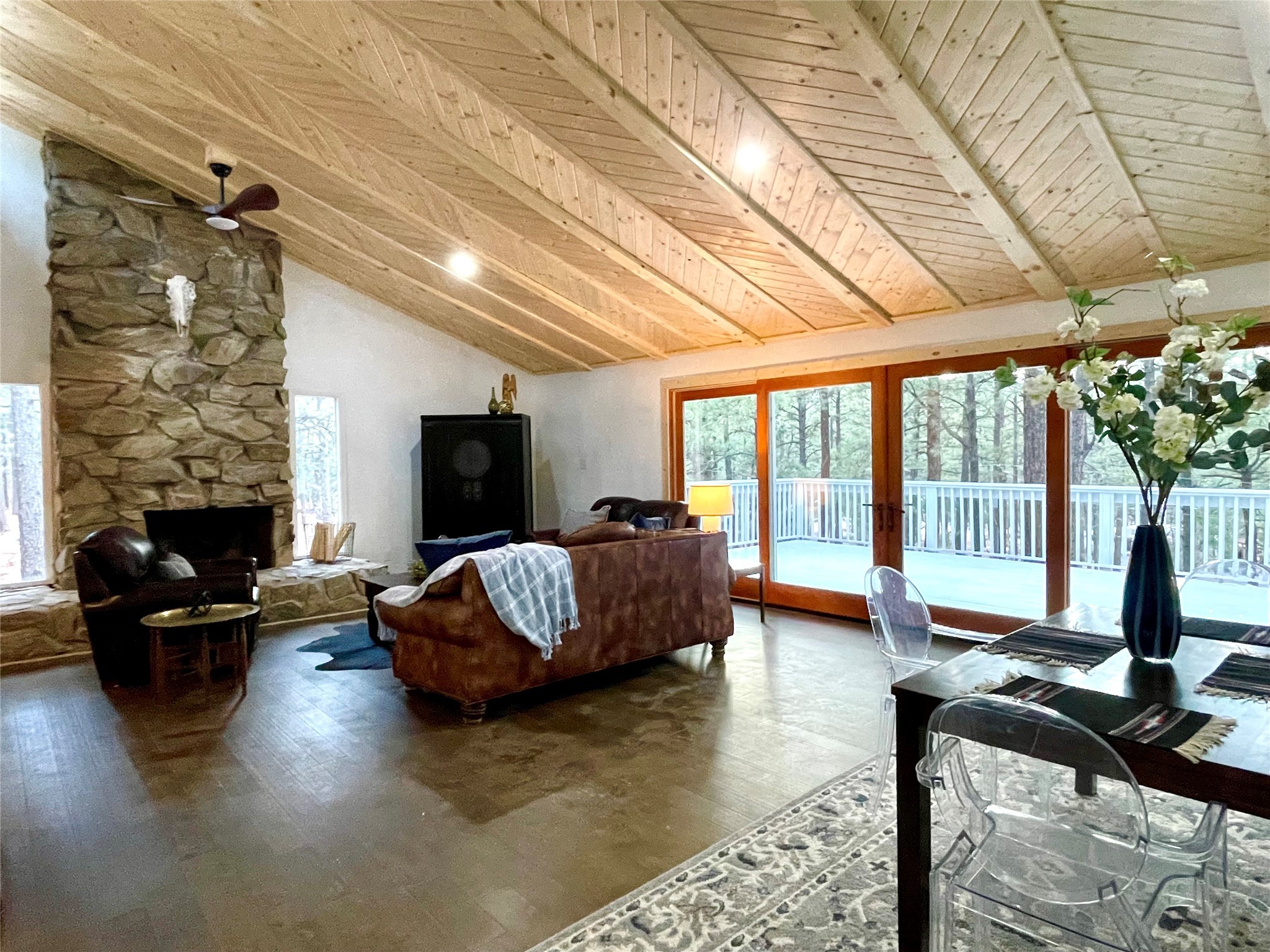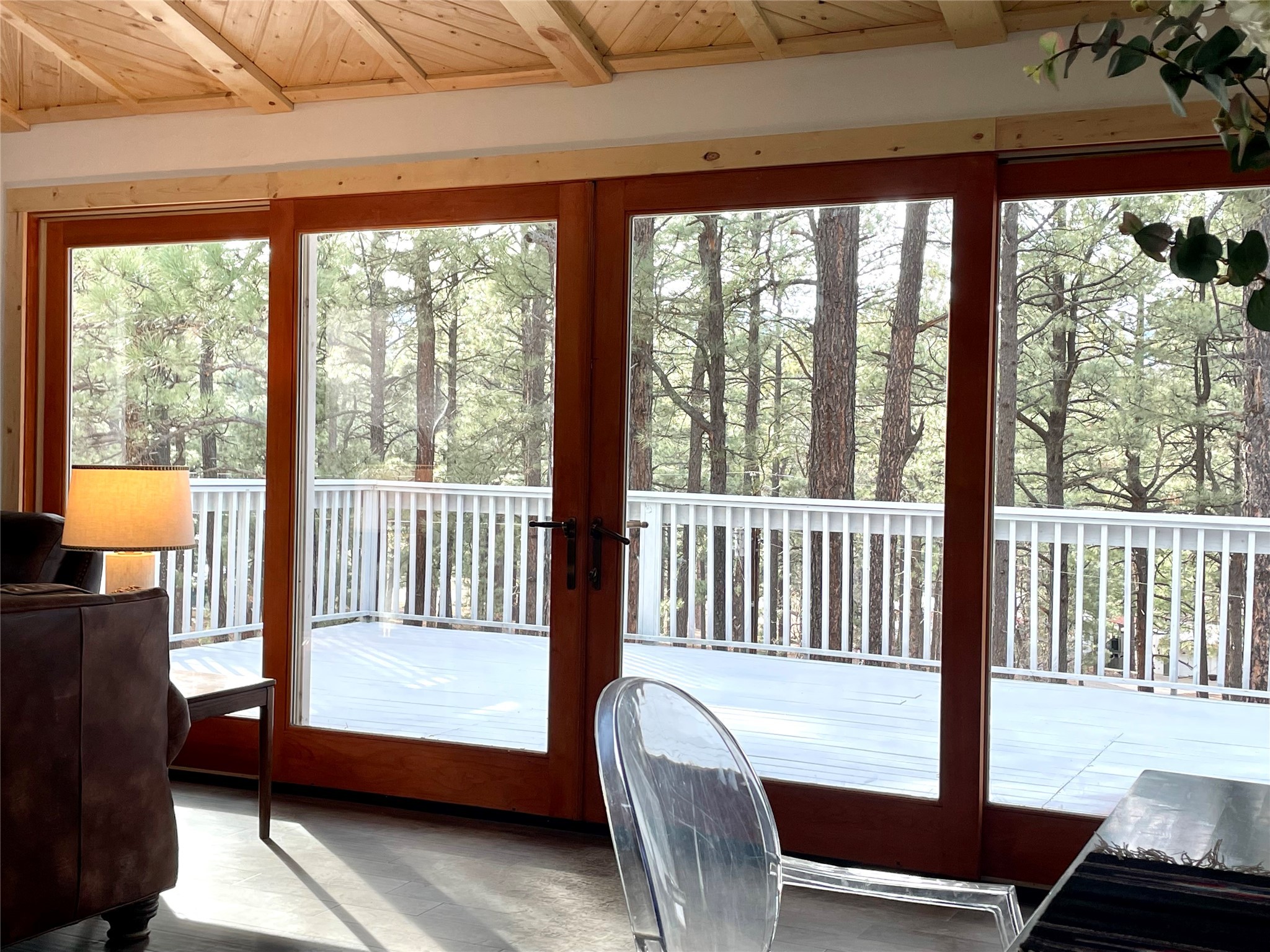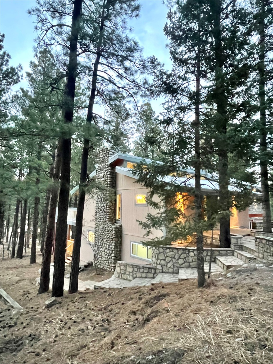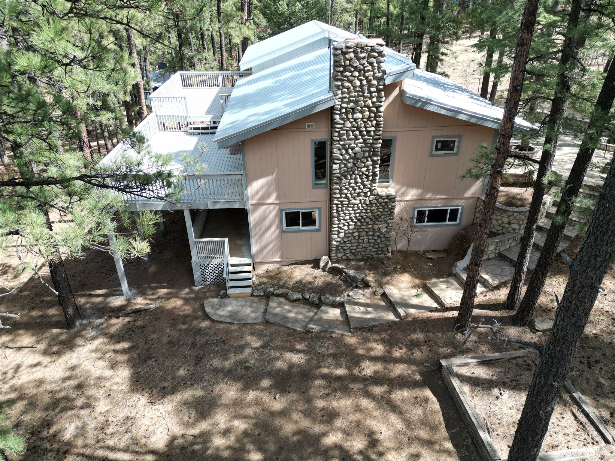Beautifully updated luxury home in Pendaries Village Golf Club! Too many updates to list: all new floor coverings, all new appliances, all new interior and exterior paint, stucco and stonework, new roof, all new bathroom fixtures and vanities, all new kitchen cabinets and sinks, all new light fixtures, new 200 amp service, new mini-splits, new garage doors, new front doors, new interior doors, mostly new windows. Enjoy the gorgeous wooded mountain views with front patio as well as two separate back decks - enjoy star watching, nature, and deer watching while relaxing on the deck. Two grand stone fireplaces give it a mountain vibe, and has that contemporary New Mexico feeling. Perfect place to escape summer heat or to cozy up for winter! Short walk to nine hole golf course. Flexible floor plan, watch the video link, so you can use the entire space for one big group, or you can keep the guest quarters separate - each has own separate exterior and interior entries. Upstairs features cathedral ceilings in entry way, living room, dining area, kitchen with breakfast bar, grand suite with en suite bathroom, as well as full guest bathroom. Downstairs has a laundry area, a separate guest kitchen and dining area, a second living room with deck access and plumbed for wet bar area, a bedroom with deck access, a second bedroom, and a full bathroom. The two car garage is so spacious with separate area for storage and entrance to mud room. New wood flooring all over and new carpet in main bedroom. Luxurious finishes such as granite countertops, brand new stainless appliances, and all bathrooms have high end glass shower doors. Be the first person to use all the new fixtures. Excellent outdoor recreation: golf, hiking, snow shoeing or snowmobiling, nearby lakes, ski resorts, Montezuma Hot Springs, state parks, and Hermits Peak make this special place a haven for recreation. Hour and a half to Santa Fe, half hour to Las Vegas. HOA provides water. Listing includes home on lot 14 as well as vacant lot 15 next door, over an acre total. So spacious and open with room for everyone! This impressive luxury home will not last, so schedule your showing now!