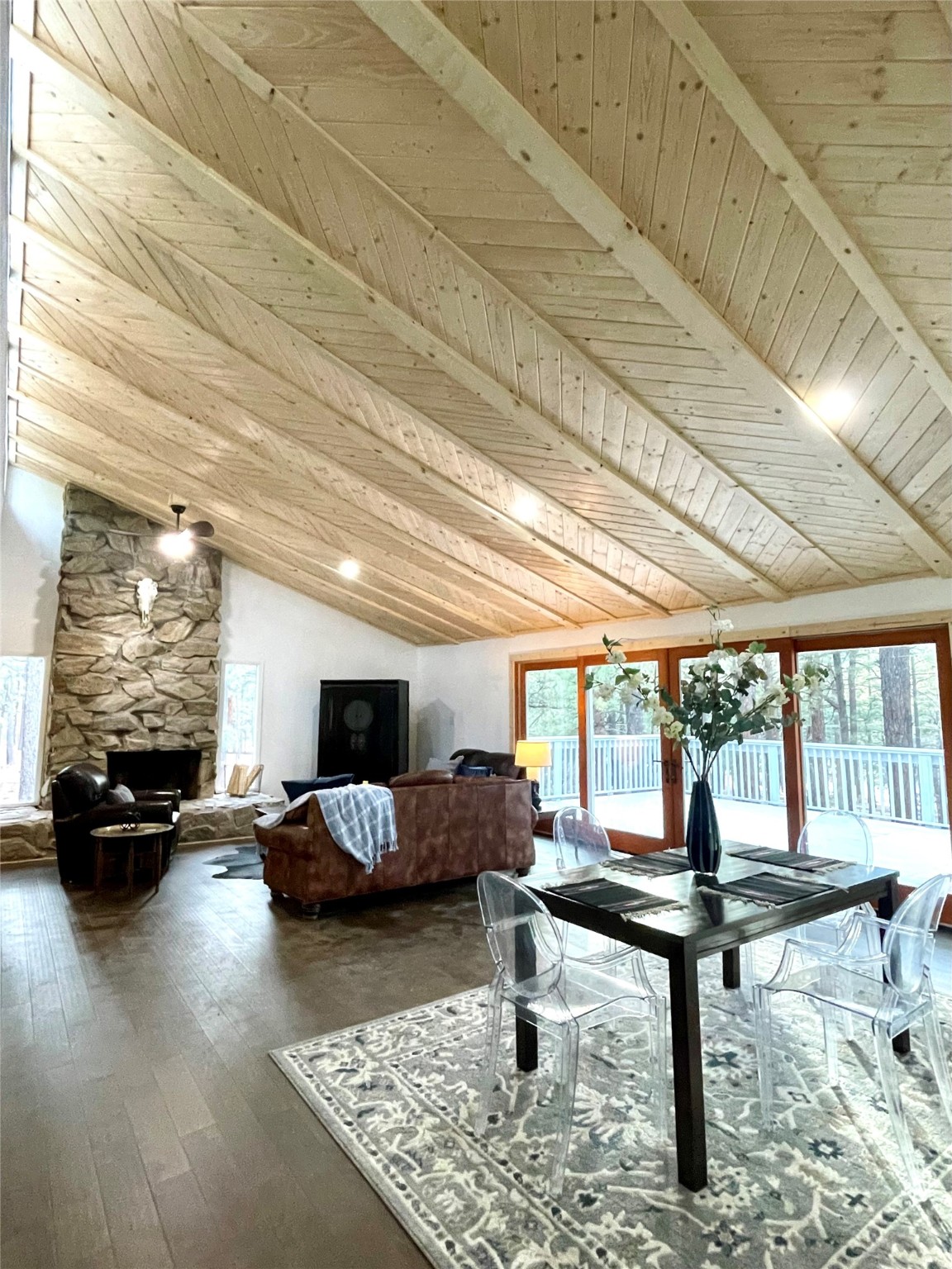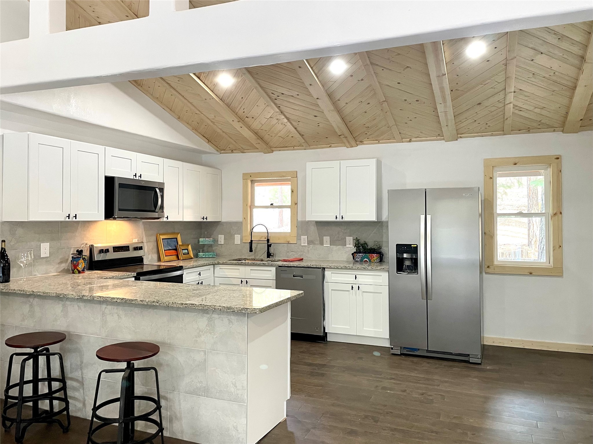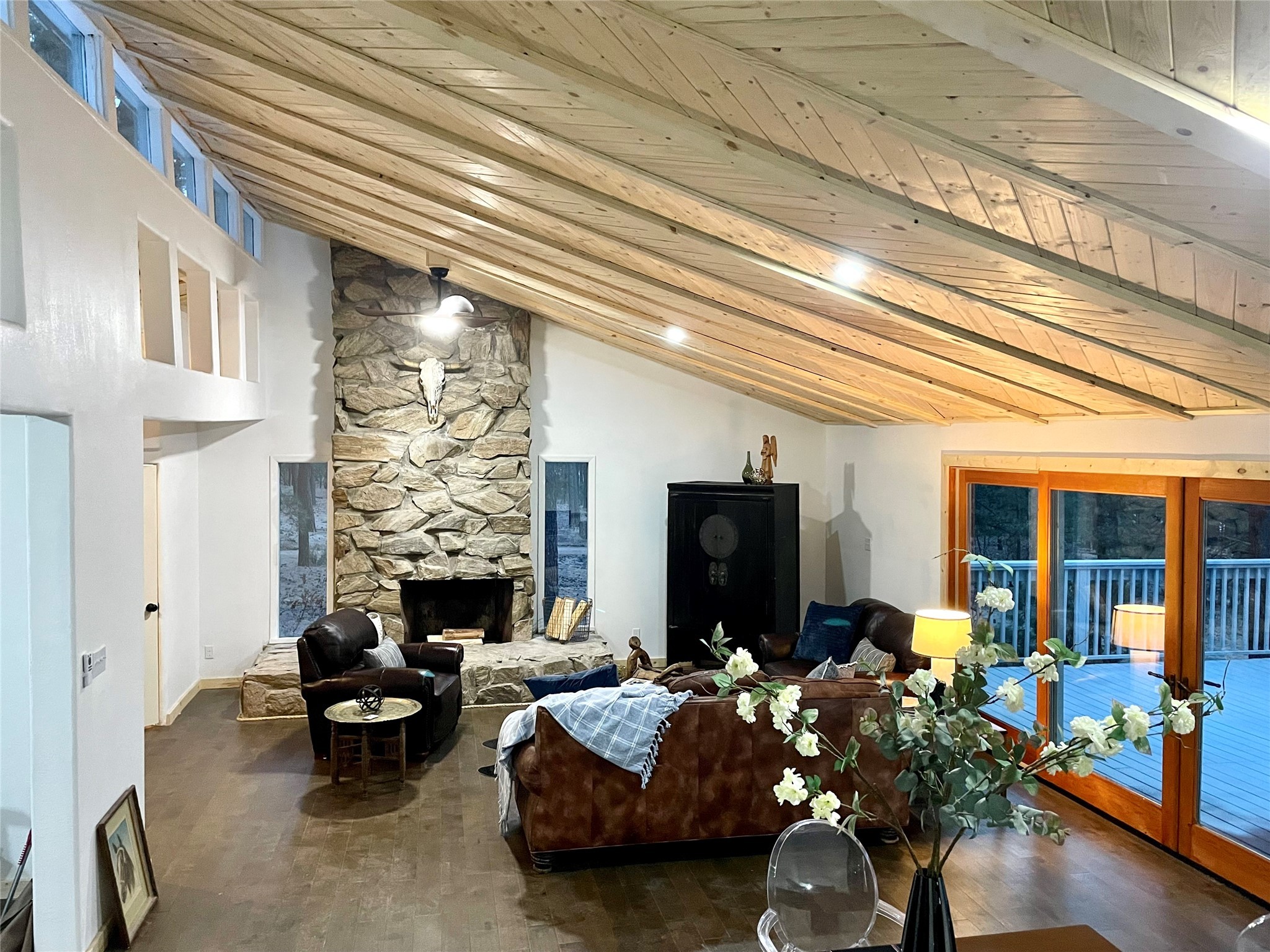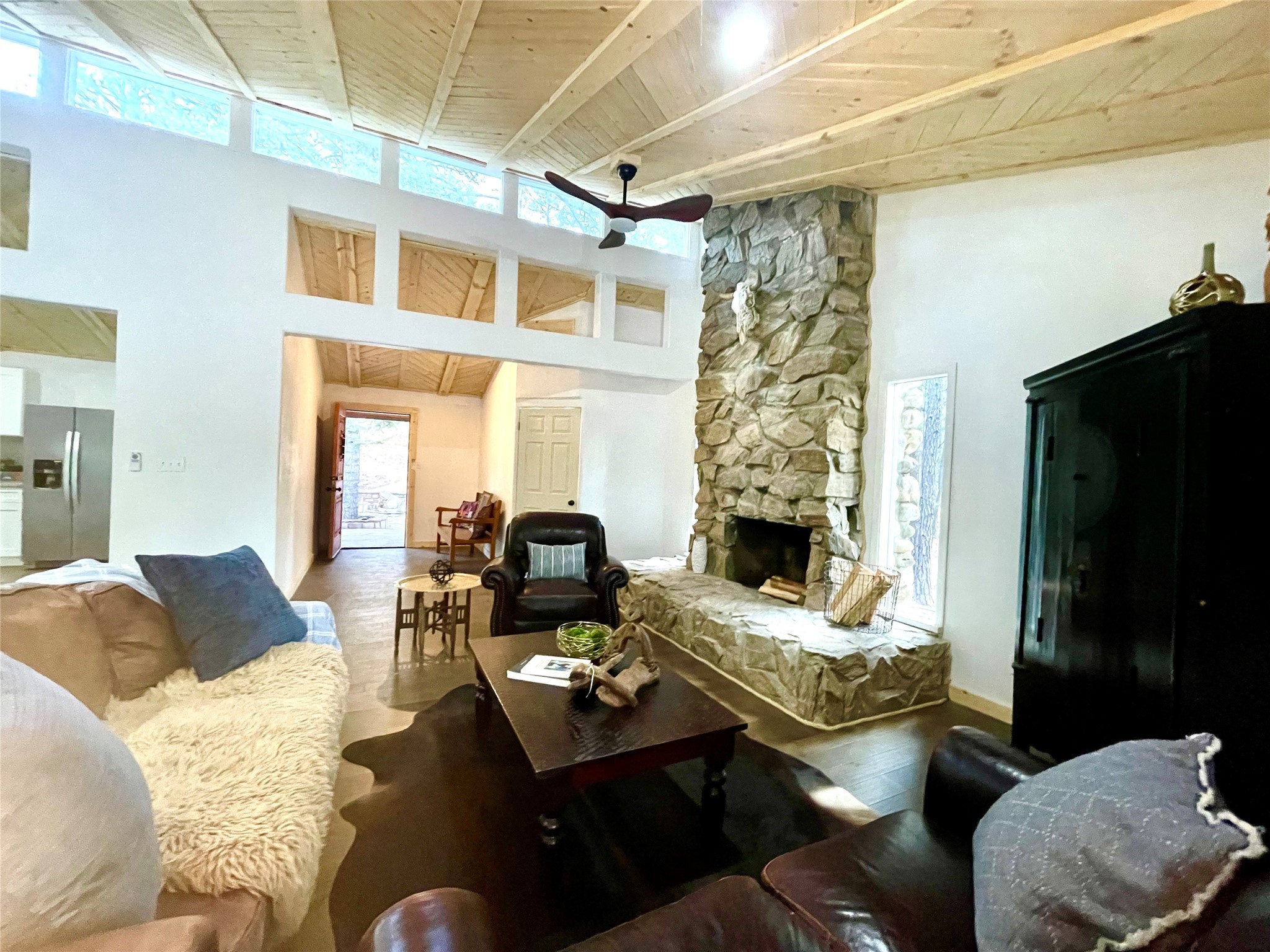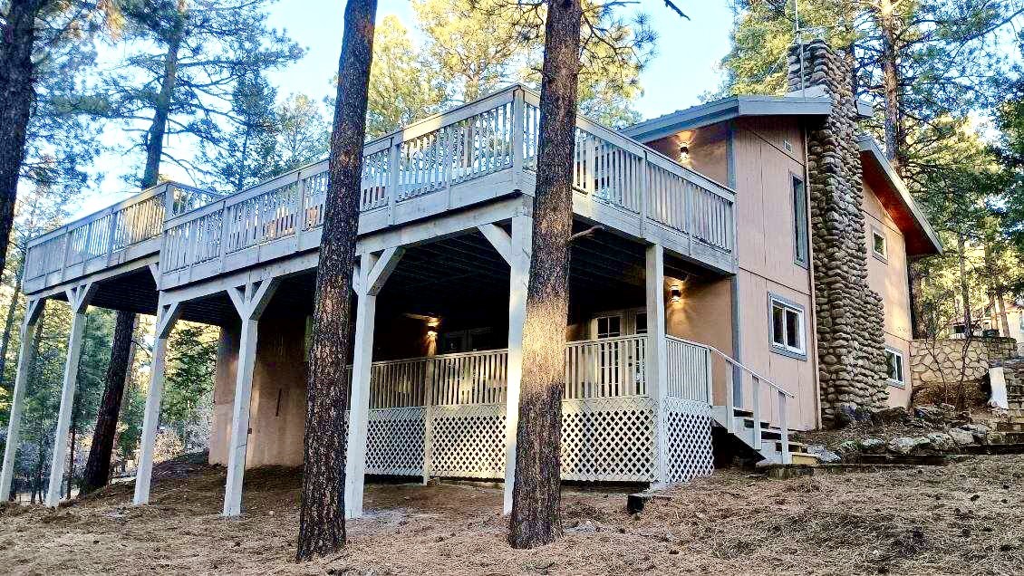 Beautifully updated luxury home in Pendaries Village Golf Club! Too many updates to list: all new floor coverings, all new appliances, all new interior and exterior paint, stucco and stonework, new roof, all new bathroom fixtures and vanities, all new kitchen cabinets and sinks, all new light fixtures, new 200 amp service, new mini-splits, new garage doors, new front doors, new interior doors, mostly new windows. Enjoy the gorgeous wooded mountain views with front patio as well as two separate back decks - enjoy star watching, nature, and deer watching while relaxing on the deck. Two grand stone fireplaces give it a mountain vibe, and has that contemporary New Mexico feeling. Perfect place to escape summer heat or to cozy up for winter! Short walk to nine hole golf course. Flexible floor plan, watch the video link, so you can use the entire space for one big group, or you can keep the guest quarters separate - each has own separate exterior and interior entries. Upstairs features cathedral ceilings in entry way, living room, dining area, kitchen with breakfast bar, grand suite with en suite bathroom, as well as full guest bathroom. Downstairs has a laundry area, a separate guest kitchen and dining area, a second living room with deck access and plumbed for wet bar area, a bedroom with deck access, a second bedroom, and a full bathroom. The two car garage is so spacious with separate area for storage and entrance to mud room. New wood flooring all over and new carpet in main bedroom. Luxurious finishes such as granite countertops, brand new stainless appliances, and all bathrooms have high end glass shower doors. Be the first person to use all the new fixtures. Excellent outdoor recreation: golf, hiking, snow shoeing or snowmobiling, nearby lakes, ski resorts, Montezuma Hot Springs, state parks, and Hermits Peak make this special place a haven for recreation. Hour and a half to Santa Fe, half hour to Las Vegas. HOA provides water. Listing includes home on lot 14 as well as vacant lot 15 next door, over an acre total. So spacious and open with room for everyone! This impressive luxury home will not last, so schedule your showing now!