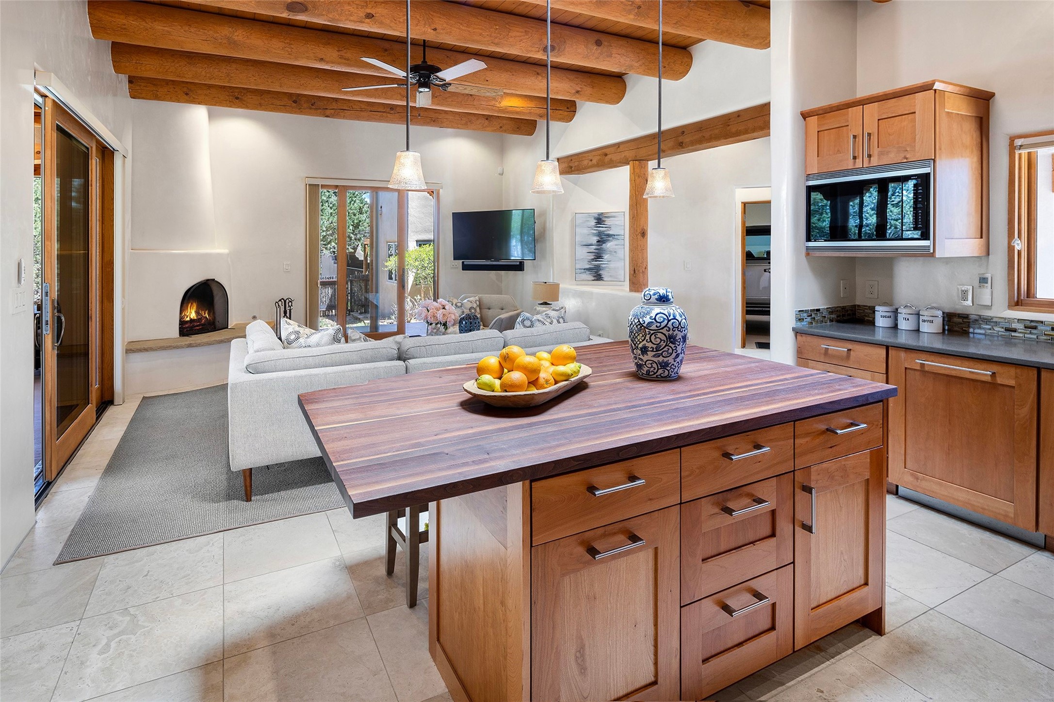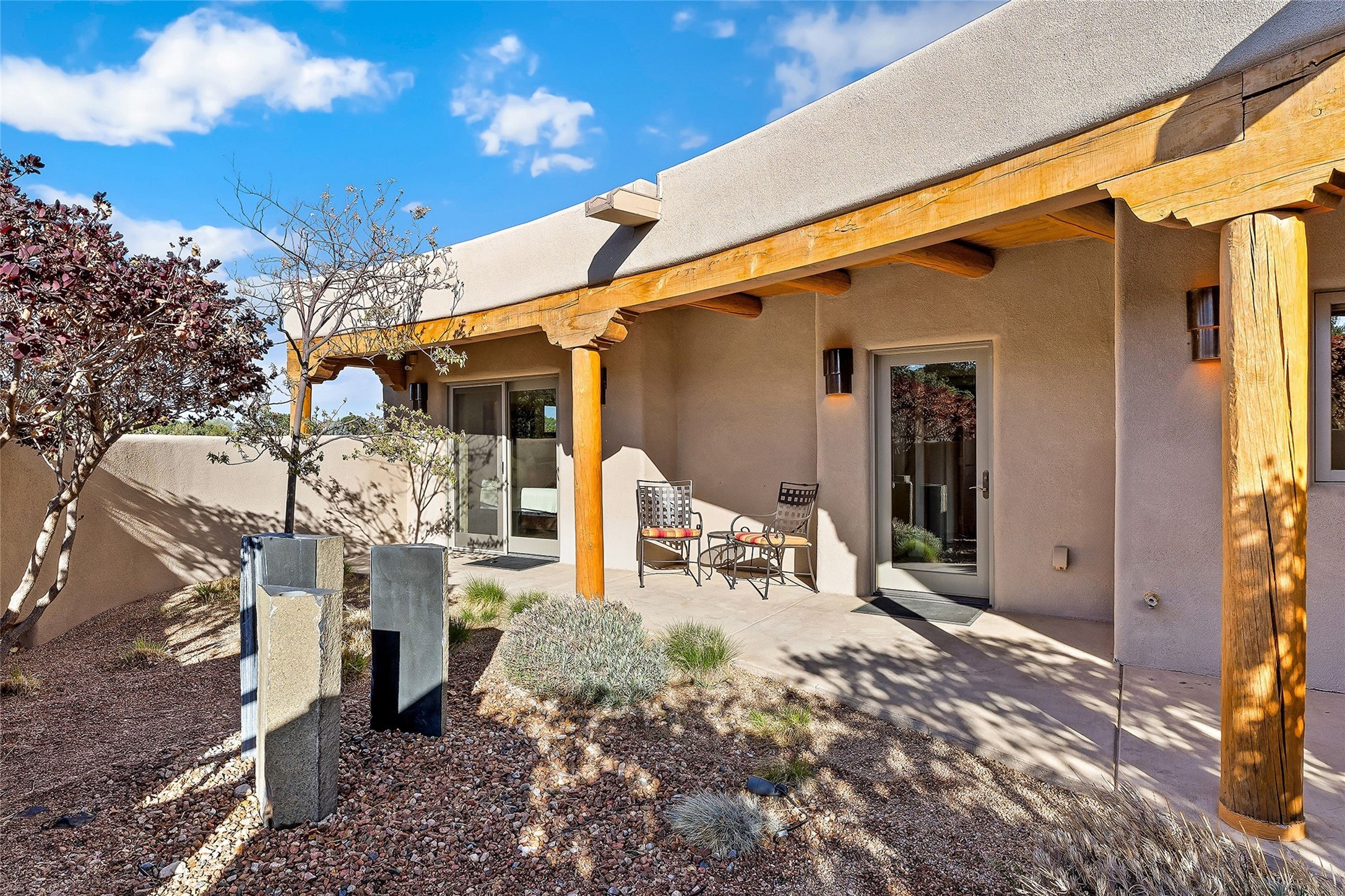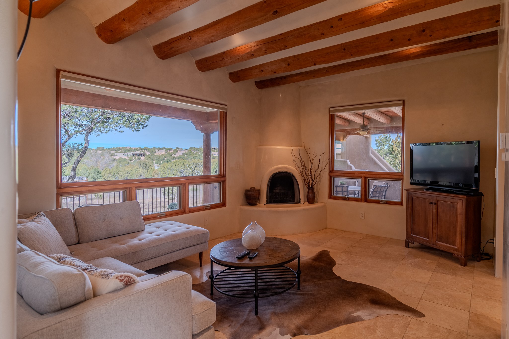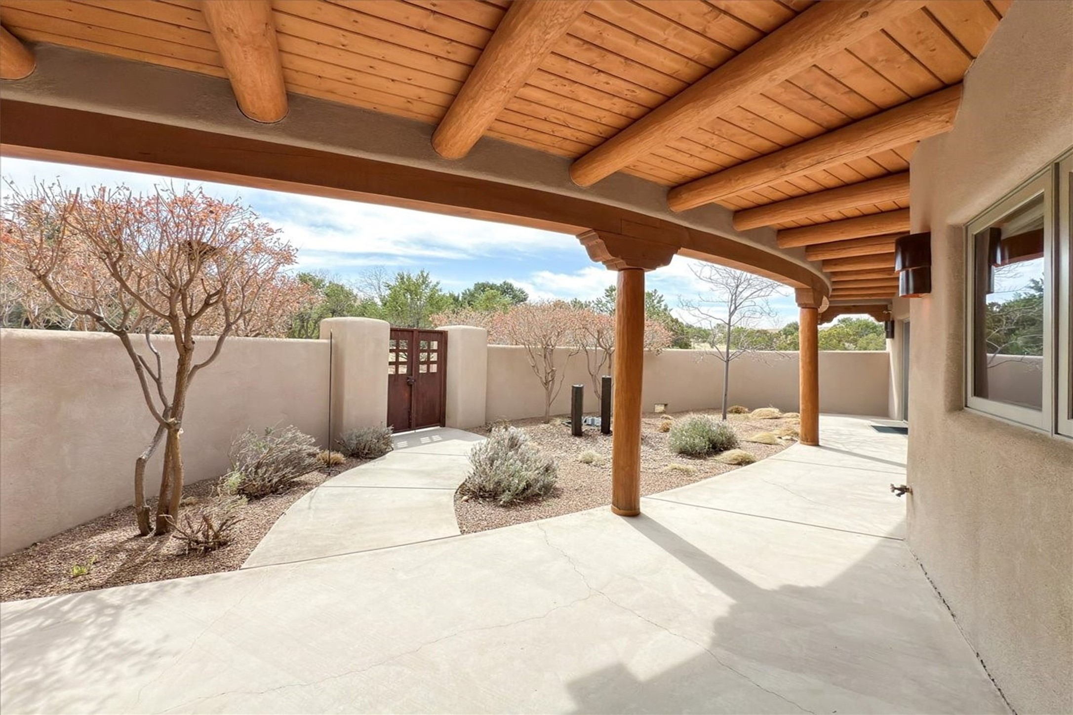 Spacious Luxury, Breathtaking Views & Multigenerational Comfort. Experience Santa Fe living at its finest in this elegant single-level home with an attached two-bedroom guest casita--ideal for extended family, guests, or a private retreat. Set on 1.5 acres in the gated community of Salva Tierra, this property offers stunning views, ultimate privacy, and convenient access to downtown, The Club at Las Campanas, and nearby hiking and biking trails. The main house features three ensuite bedrooms, a den, and an office, while the casita mirrors the main home's high-end finishes, including travertine floors, viga ceilings, and custom cabinetry. Both chef's kitchens are outfitted with Wolf, Sub-Zero, and Dacor appliances, large islands, and easy access to outdoor dining patios--perfect for entertaining under Santa Fe's starry skies. Enjoy peaceful courtyards, multiple portals, and a rooftop hot tub for sunset or stargazing. The primary suite includes a fireplace, spa-like bath, walk-in shower, soaking tub, and mountain views. Quality details throughout: radiant floor heat, mini splits, whole-house generator, new stucco, new TPO roof with warranty, electric shades, and a three-car garage with ample parking. Community amenities include tennis and pickleball courts, private roads, and a welcoming neighborhood atmosphere. Move-in ready and meticulously maintained--this home combines timeless Santa Fe style with modern comfort and flexibility for today's lifestyles. Watch the video and take the virtual tour to see why 118 E. Sunrise Drive is the perfect Santa Fe getaway or multigenerational retreat.
