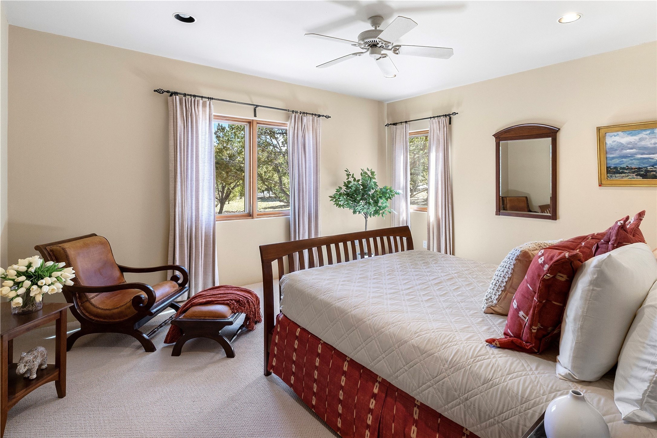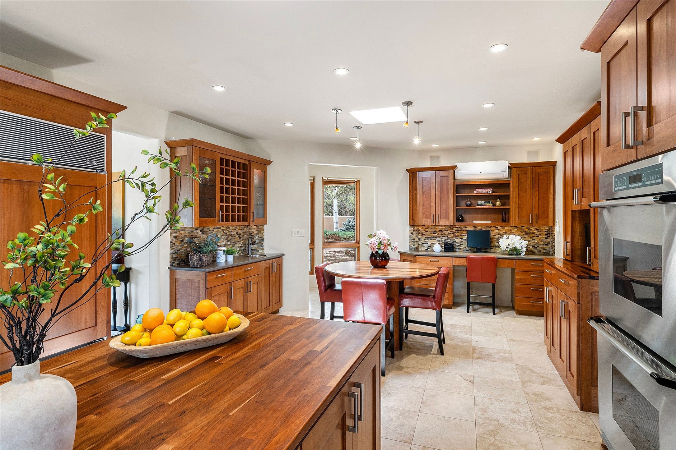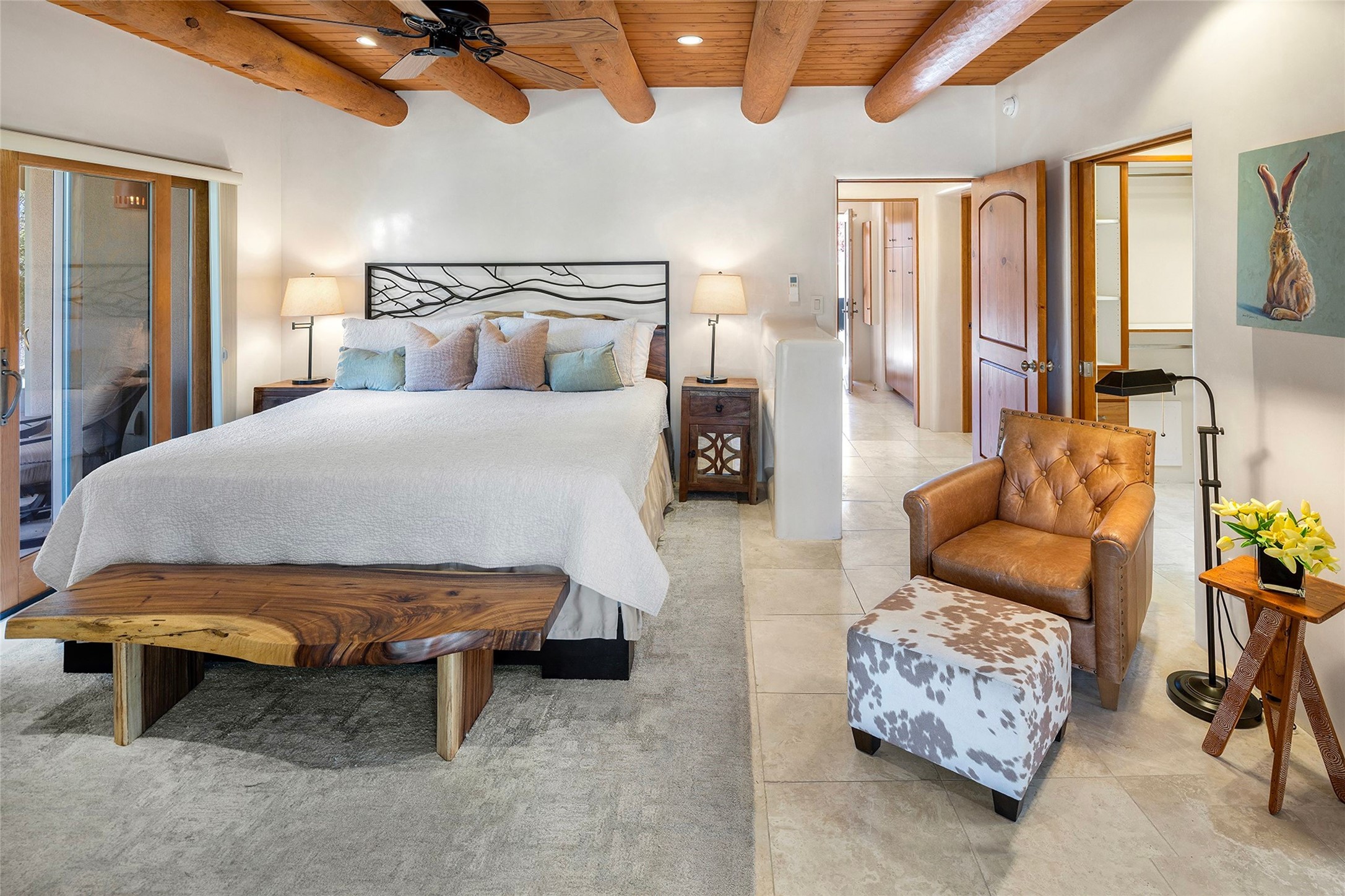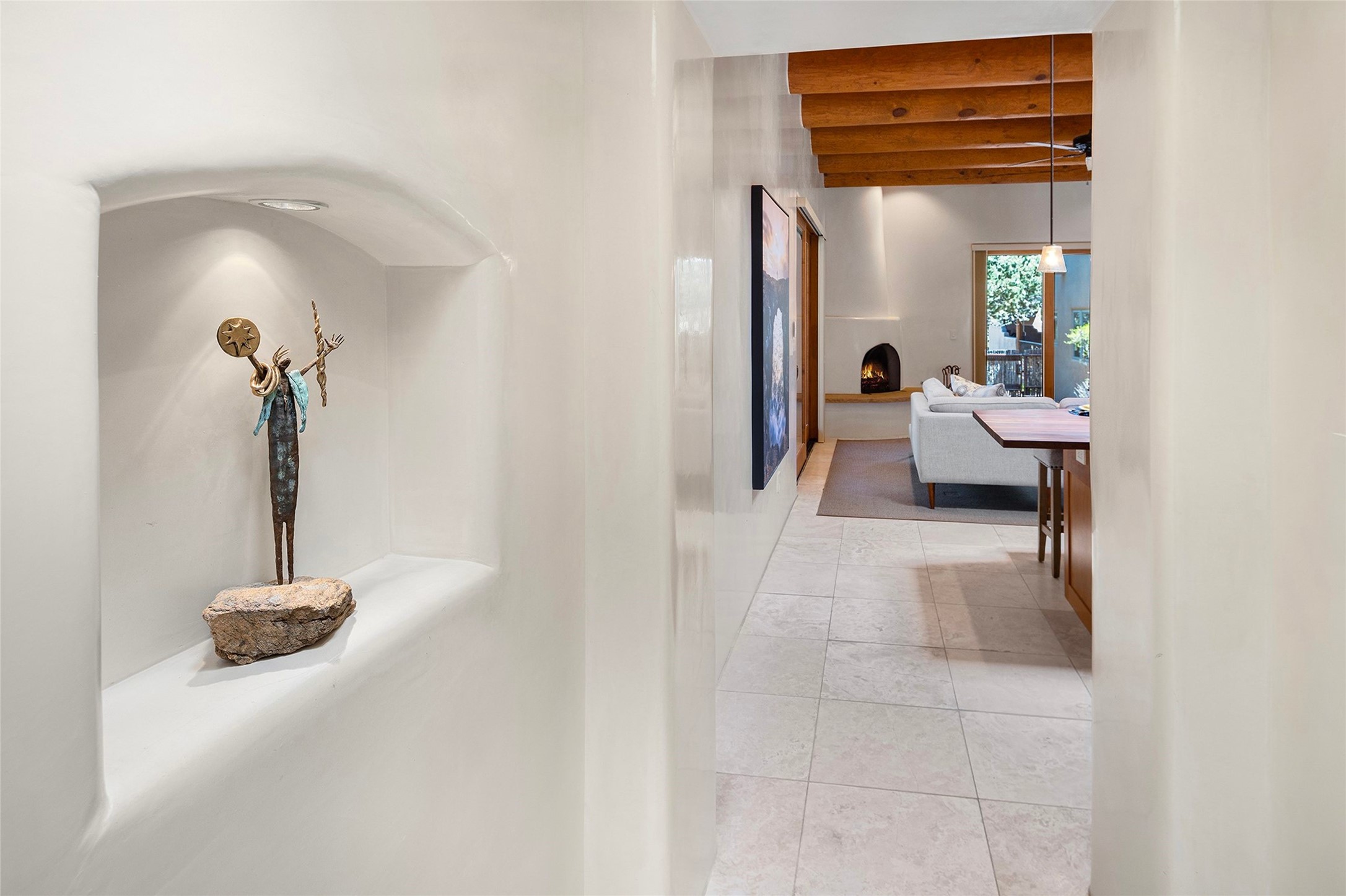 Spacious Luxury, Breathtaking Views & Multigenerational Comfort. Experience Santa Fe living at its finest in this elegant single-level home with an attached two-bedroom guest casita--ideal for extended family, guests, or a private retreat. Set on 1.5 acres in the gated community of Salva Tierra, this property offers stunning views, ultimate privacy, and convenient access to downtown, The Club at Las Campanas, and nearby hiking and biking trails. The main house features three ensuite bedrooms, a den, and an office, while the casita mirrors the main home's high-end finishes, including travertine floors, viga ceilings, and custom cabinetry. Both chef's kitchens are outfitted with Wolf, Sub-Zero, and Dacor appliances, large islands, and easy access to outdoor dining patios--perfect for entertaining under Santa Fe's starry skies. Enjoy peaceful courtyards, multiple portals, and a rooftop hot tub for sunset or stargazing. The primary suite includes a fireplace, spa-like bath, walk-in shower, soaking tub, and mountain views. Quality details throughout: radiant floor heat, mini splits, whole-house generator, new stucco, new TPO roof with warranty, electric shades, and a three-car garage with ample parking. Community amenities include tennis and pickleball courts, private roads, and a welcoming neighborhood atmosphere. Move-in ready and meticulously maintained--this home combines timeless Santa Fe style with modern comfort and flexibility for today's lifestyles. Watch the video and take the virtual tour to see why 118 E. Sunrise Drive is the perfect Santa Fe getaway or multigenerational retreat.