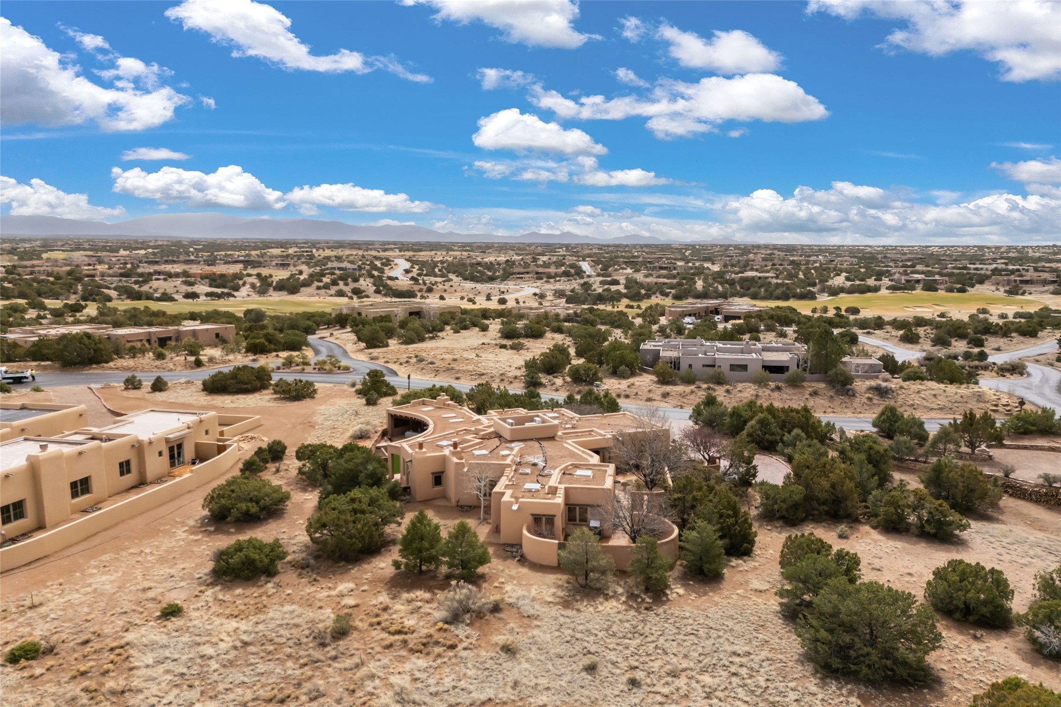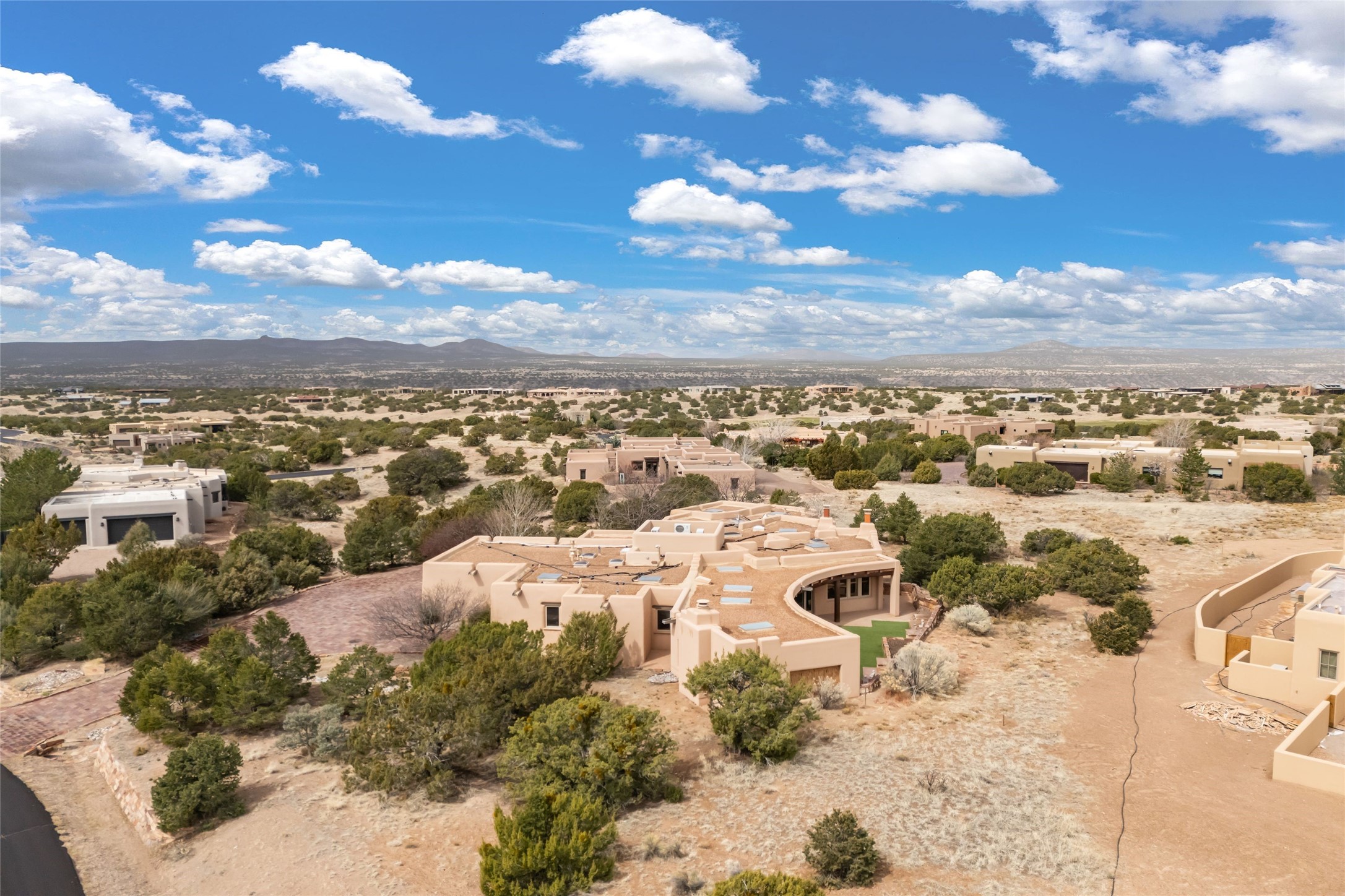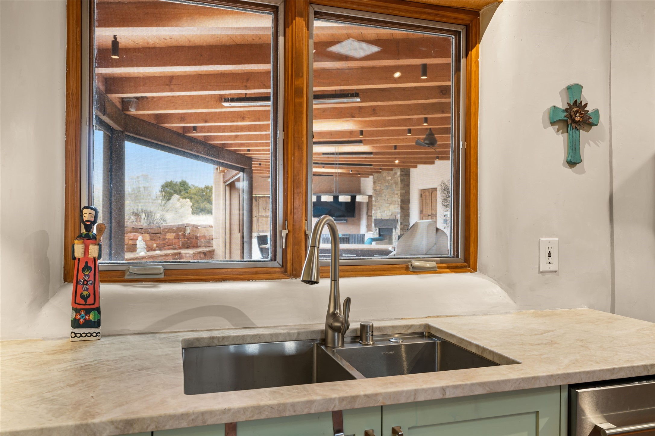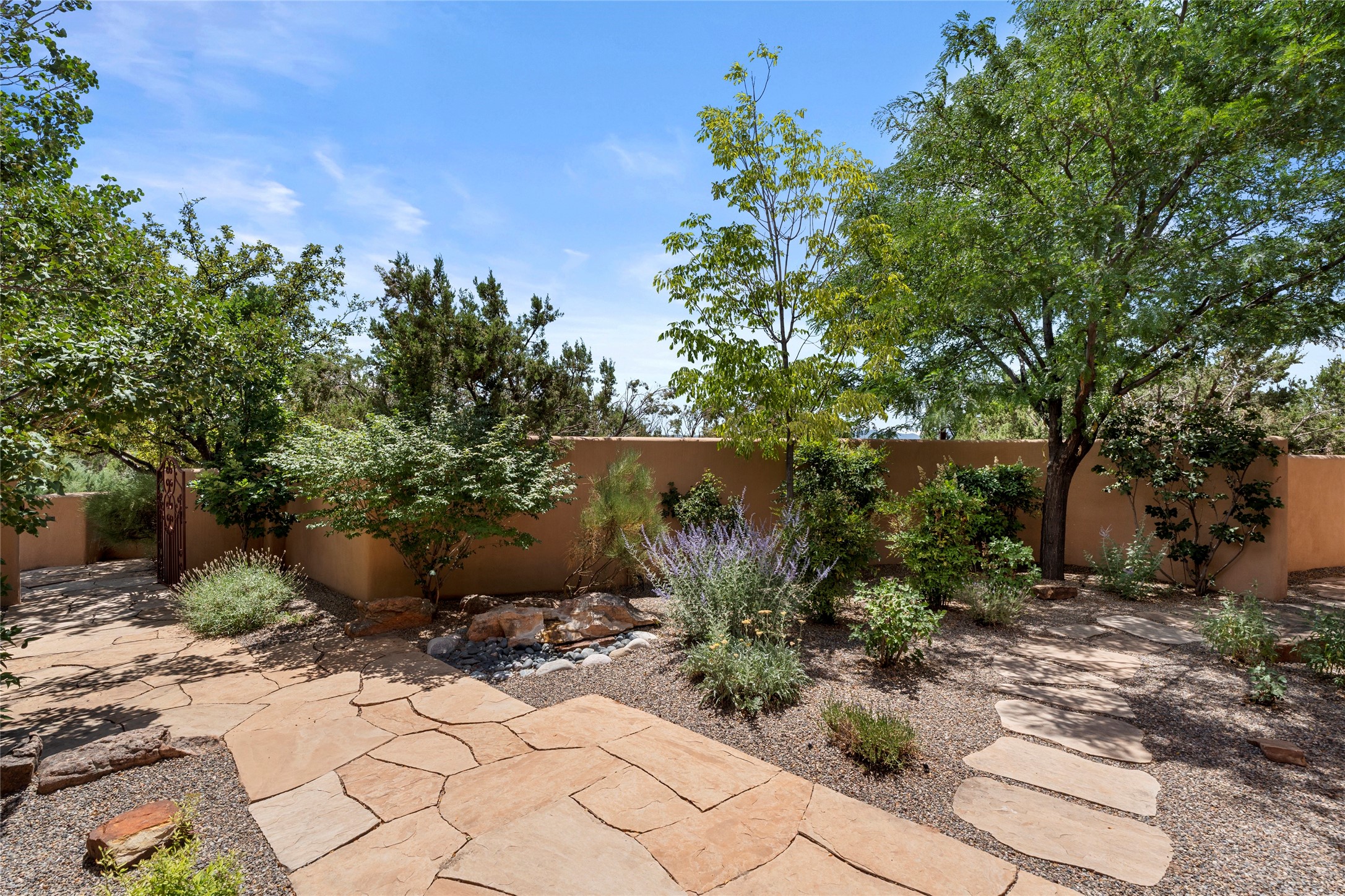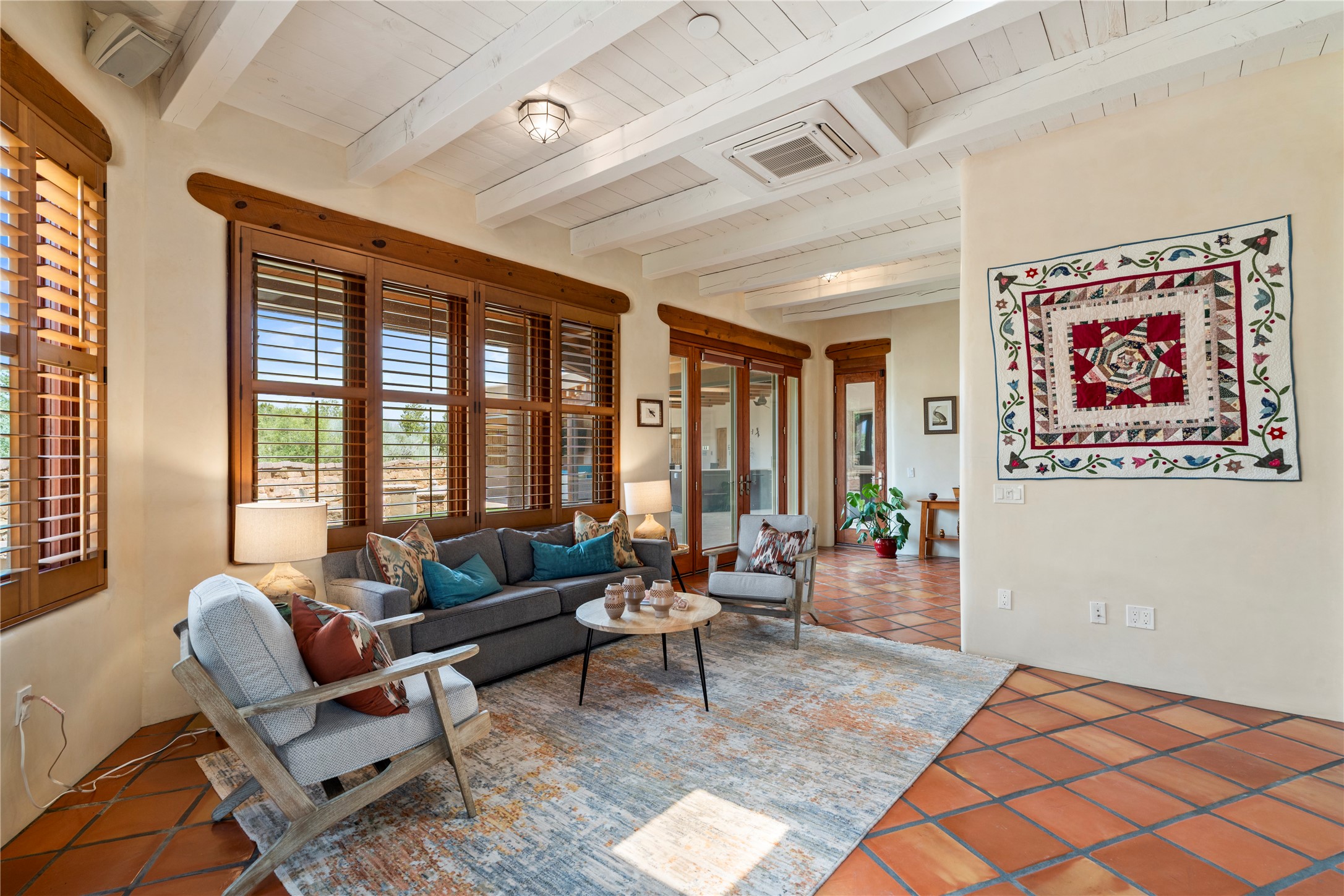Welcome home to timeless elegance and a space that is as beautiful and functional on the inside as it is on the outside. Ideal living is captured with an open, recently updated kitchen which includes Wolf and Sub Zero appliances along with a charming beverage bar that overlooks the serene front courtyard, all enhanced with stylish Taj Majal quartzsite counters. Classic Saltillo tile, tall ceilings and rich wood accents tastefully adorn this peaceful space. True Santa Fe living is captured in the expansive rear portal with a full outdoor kitchen, Infratech heaters, fireplace and expert lighting. Between the large versatile space inside and the fabulous kitchen outside; this is the place to entertain! Entertainers come and see! Retire inside to an accommodating primary suite complete with an office, large bathroom and closet and charming outdoor space. Optimal separation of bedrooms, updated bathrooms, mini splits throughout, heated stone driveway, tasteful landscape with ample flagstone and meticulous maintenance combine to create a space which satisfies all the creature comforts. This gem is located a half mile from The Club in Las Campanas' popular Park Estates. Come and see!