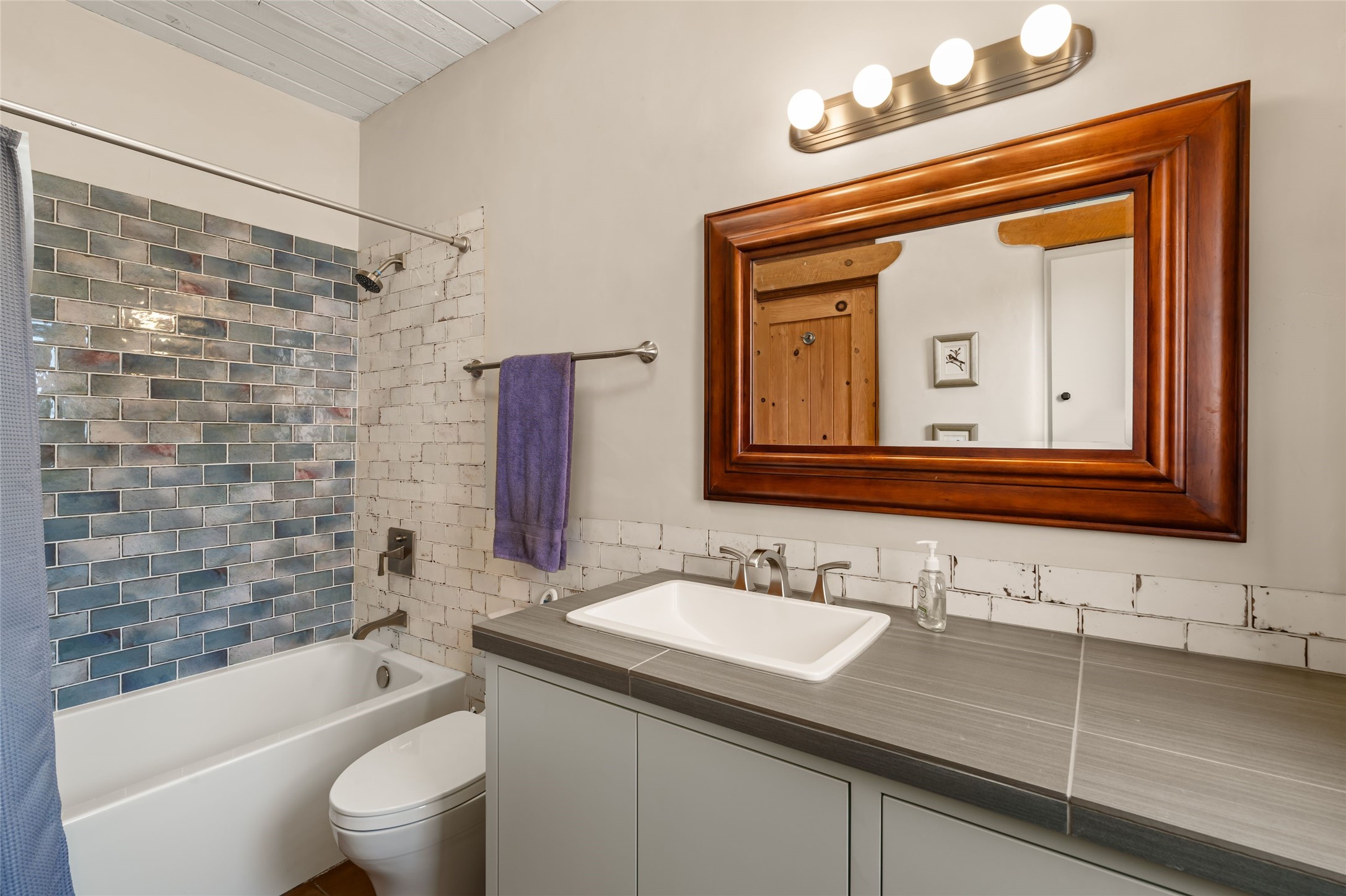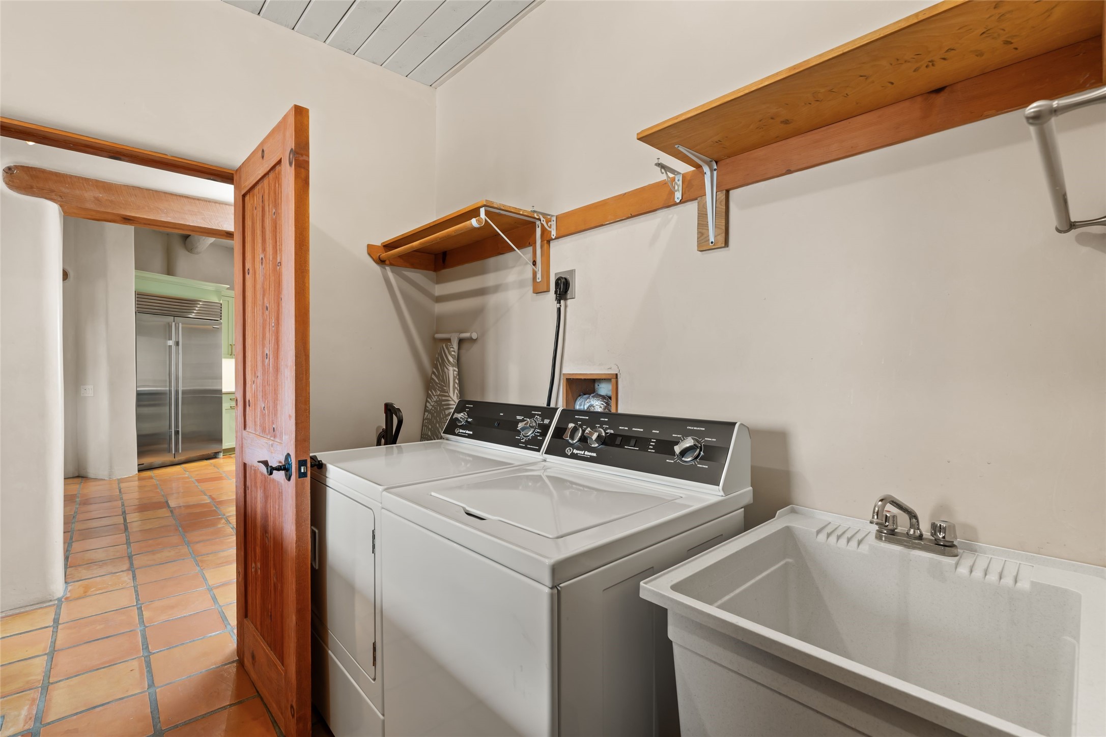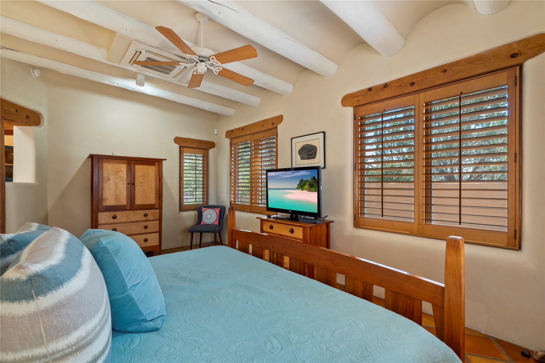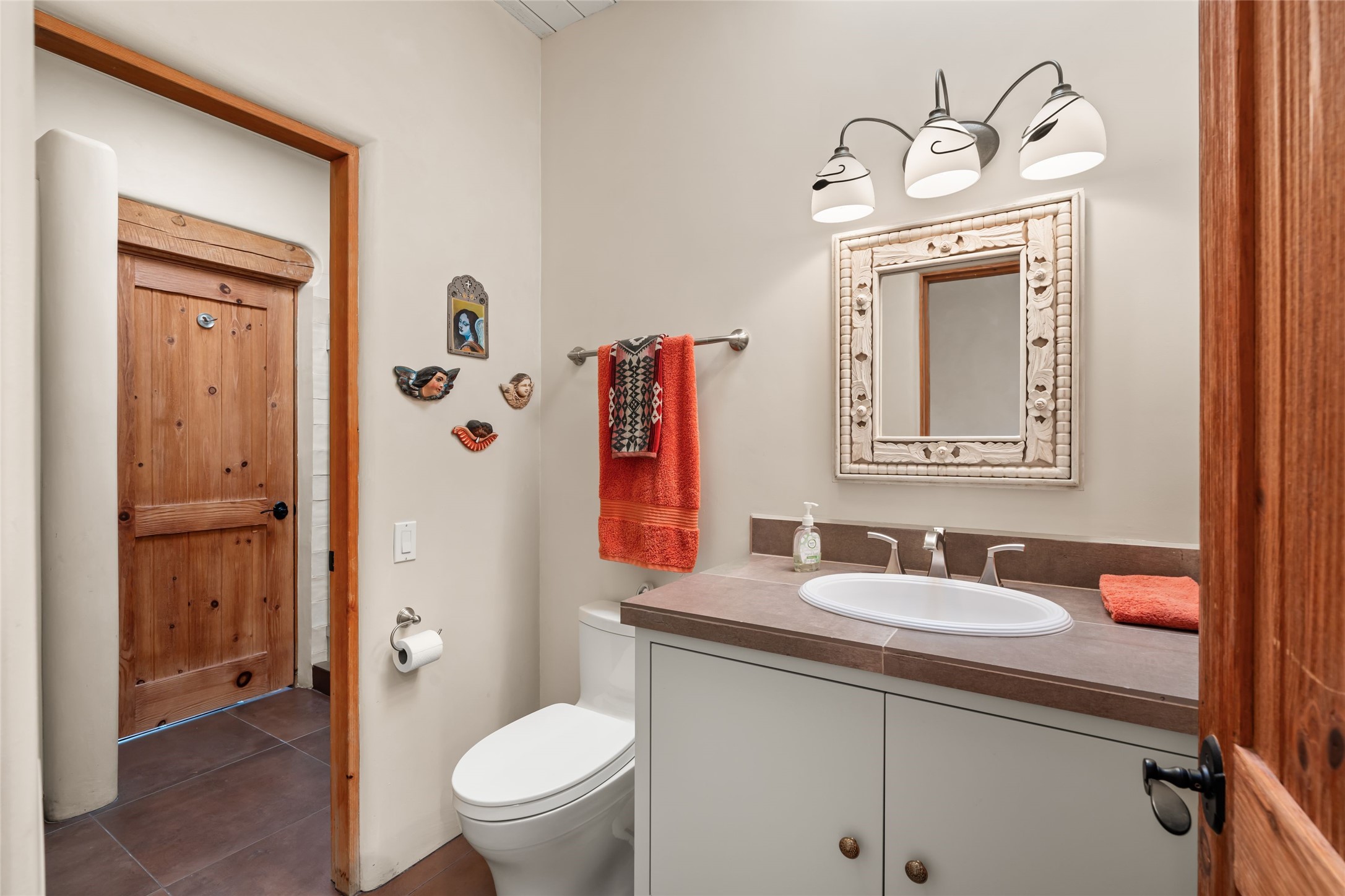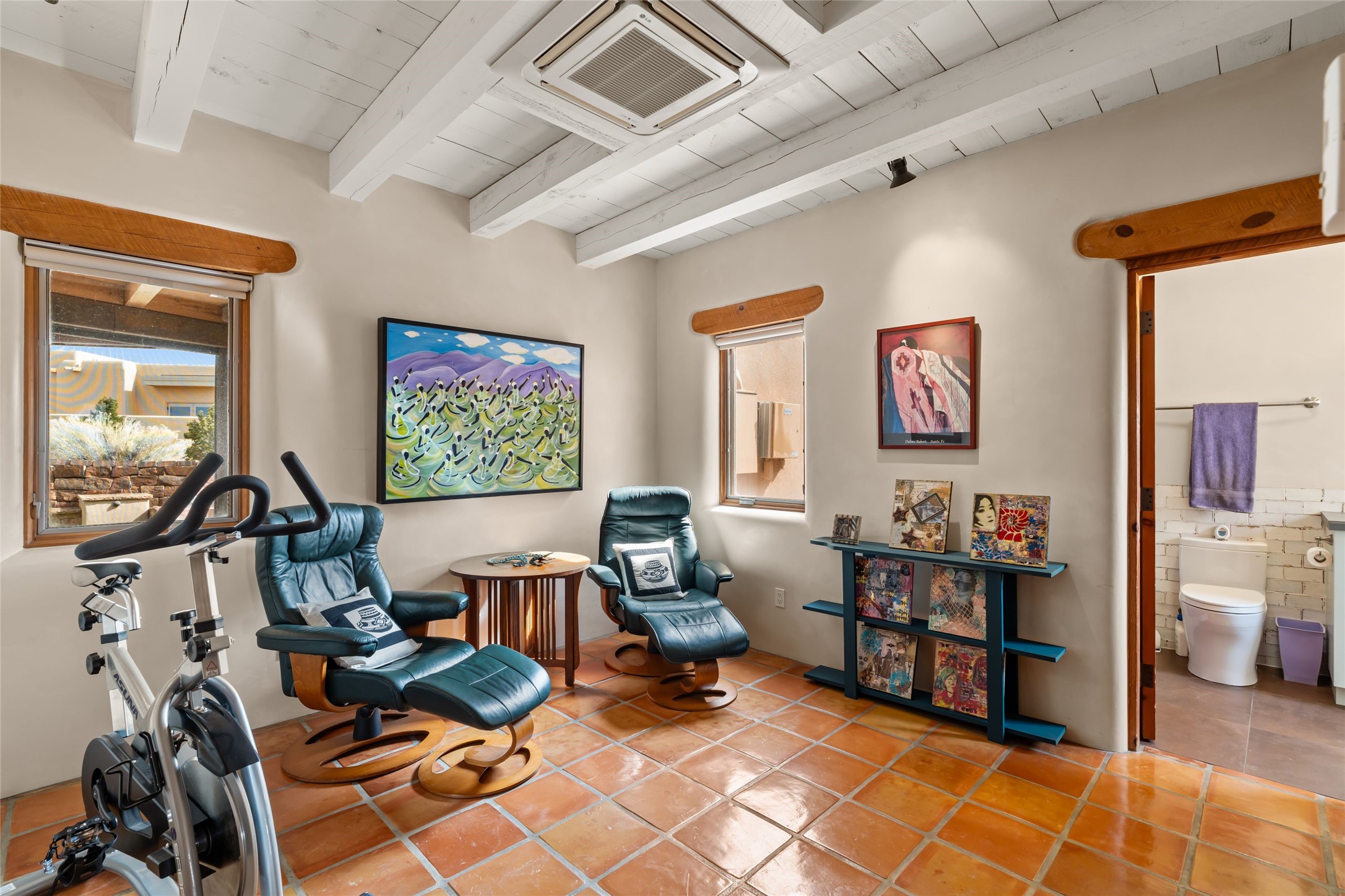 Welcome home to timeless elegance and a space that is as beautiful and functional on the inside as it is on the outside. Ideal living is captured with an open, recently updated kitchen which includes Wolf and Sub Zero appliances along with a charming beverage bar that overlooks the serene front courtyard, all enhanced with stylish Taj Majal quartzsite counters. Classic Saltillo tile, tall ceilings and rich wood accents tastefully adorn this peaceful space. True Santa Fe living is captured in the expansive rear portal with a full outdoor kitchen, Infratech heaters, fireplace and expert lighting. Between the large versatile space inside and the fabulous kitchen outside; this is the place to entertain! Entertainers come and see! Retire inside to an accommodating primary suite complete with an office, large bathroom and closet and charming outdoor space. Optimal separation of bedrooms, updated bathrooms, mini splits throughout, heated stone driveway, tasteful landscape with ample flagstone and meticulous maintenance combine to create a space which satisfies all the creature comforts. This gem is located a half mile from The Club in Las Campanas' popular Park Estates. Come and see!