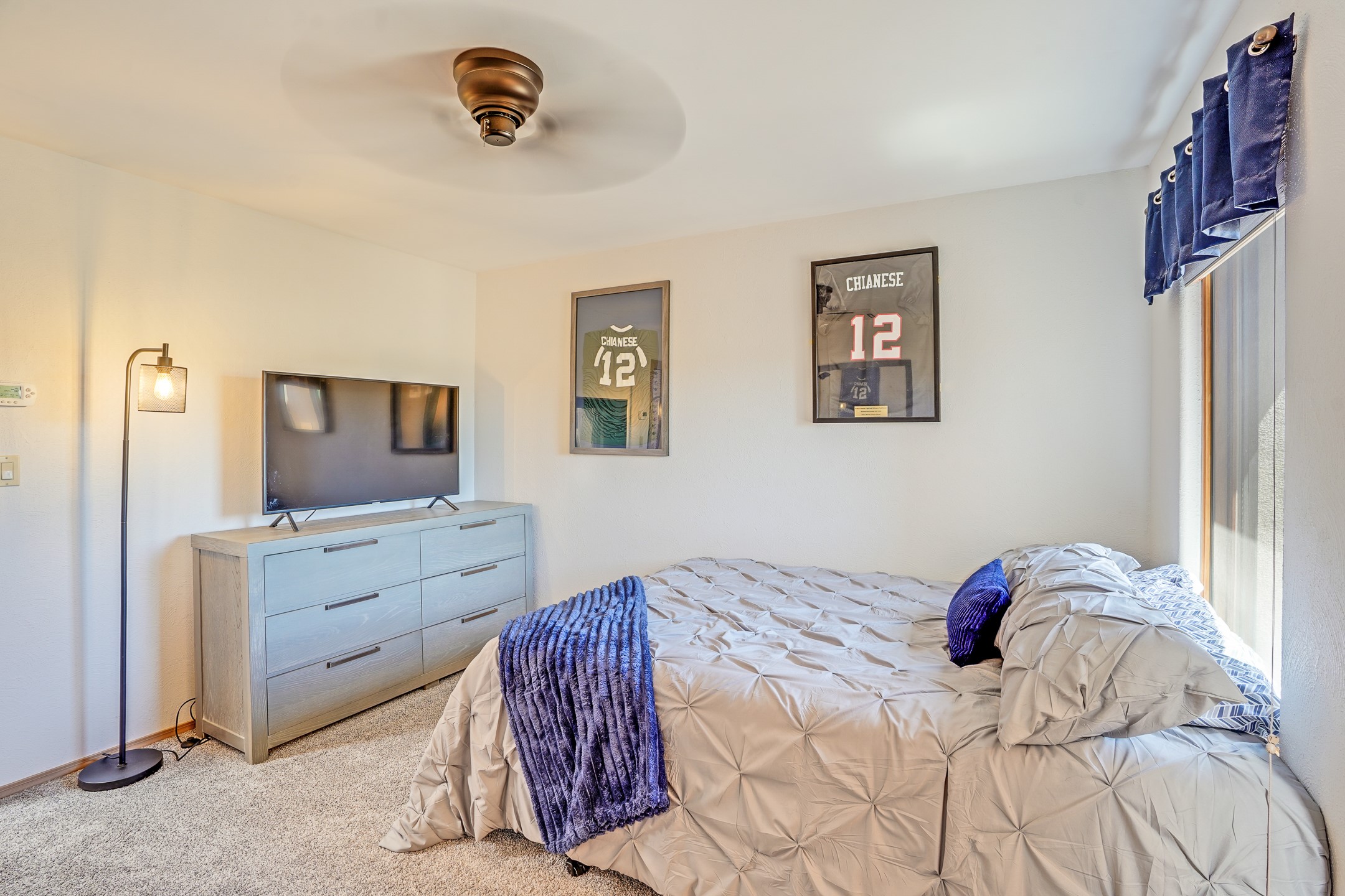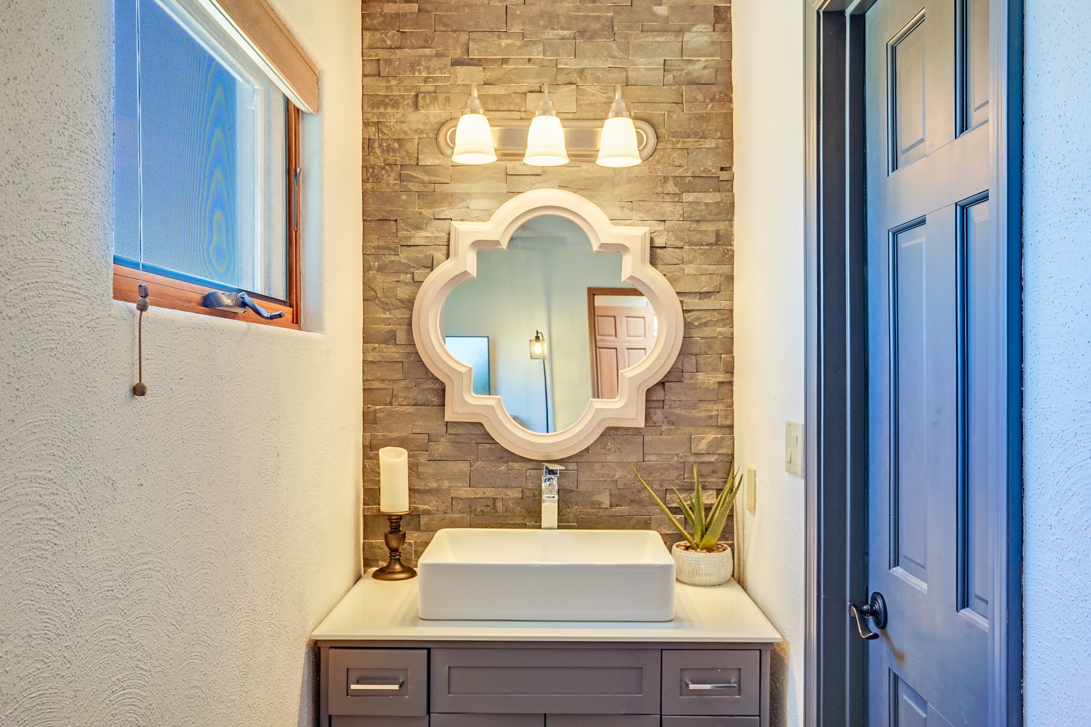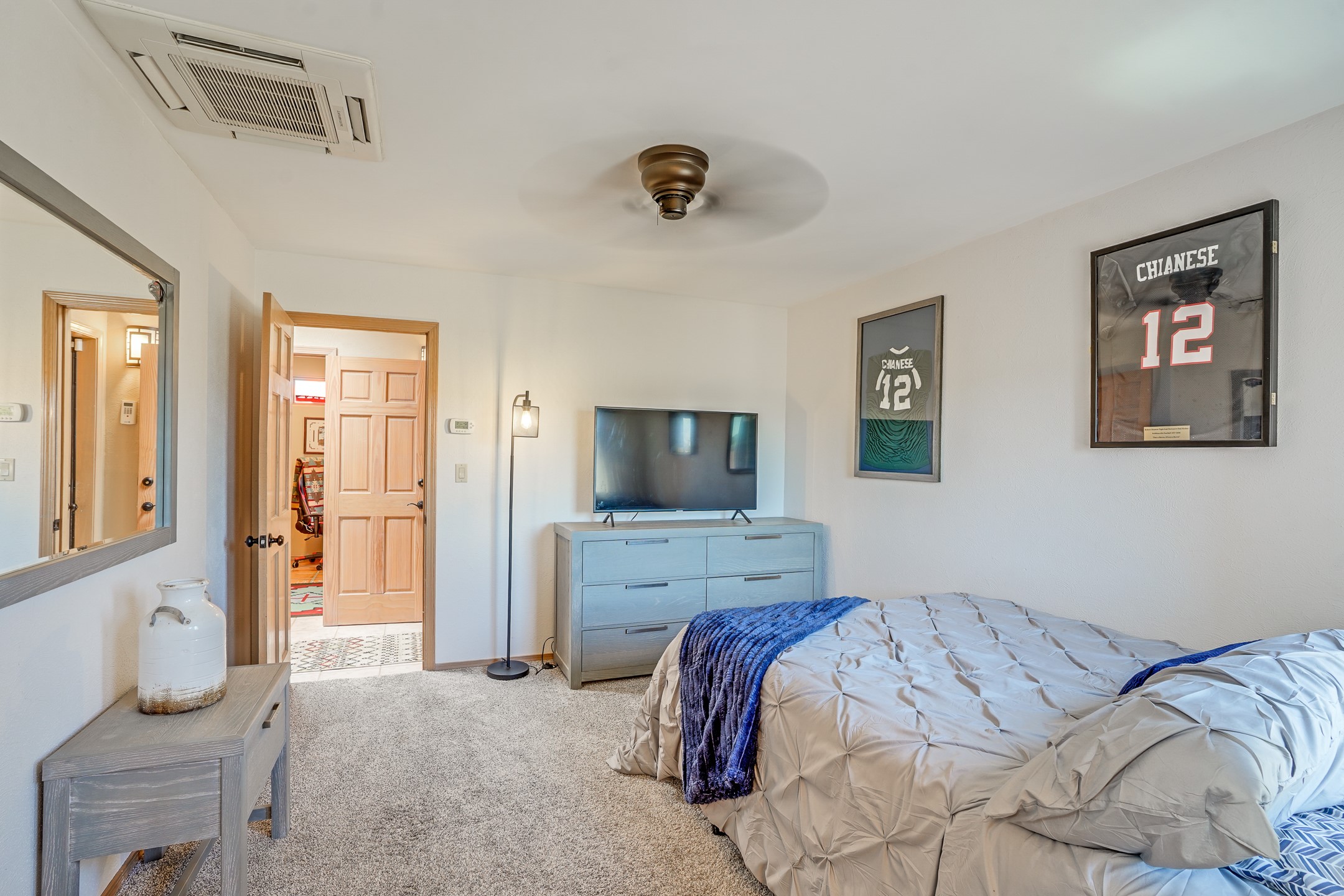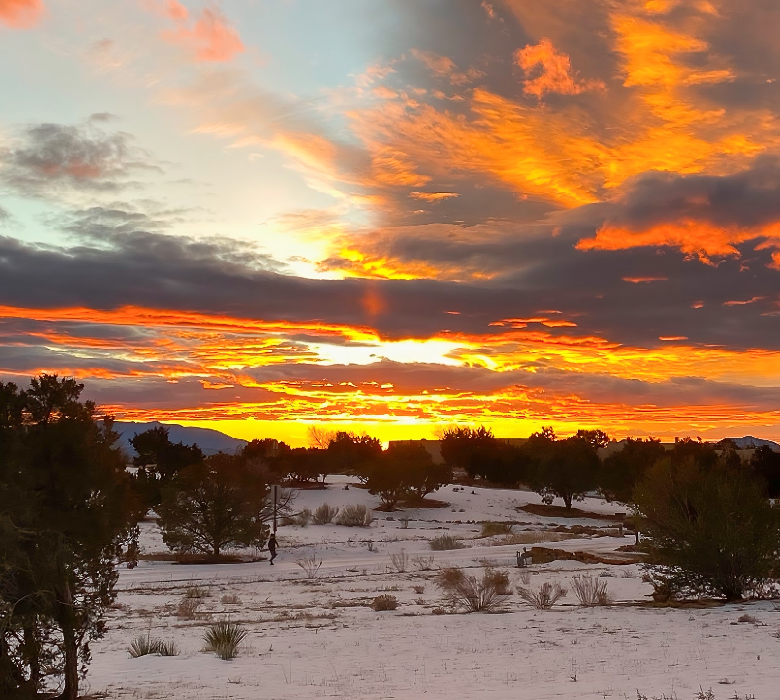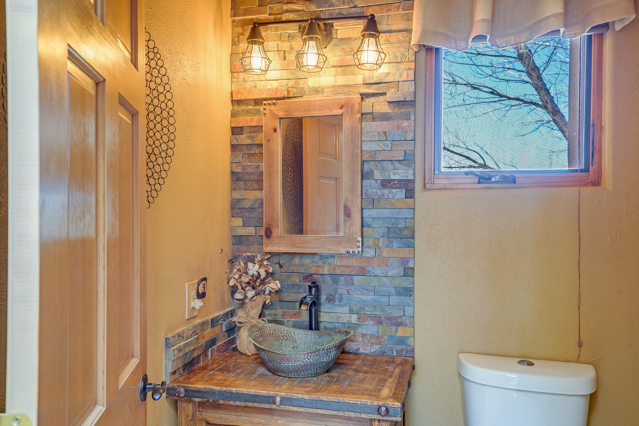 Stunning Southwestern Eldorado Gem with Views, Views, Views!Welcome to this beautifully updated and maintained 3-bedroom, 2.5-bath home with zero steps plus office on 1.38 acres of landscaped serenity. Offering incredible sunset and eastern views, this single level 2,281 sq ft property blends traditional charm with modern comfort.Enjoy outdoor living at its finest with covered portals, a walled backyard with gorgeous landscaping with views and a fenced dog run, perfect for relaxing, dining or entertaining.Step inside to a spacious living/dining area featuring tall ceilings with striking vigas, a cozy wood-burning fireplace, and view windows that bathe the home in natural light. The eat-in kitchen boasts refaced cabinets with new hardware, granite counters, gas stove, stainless steel appliances, a large pantry, and plenty of space to cook and gather!The primary suite offers a luxurious escape with Corian counters, copper sinks, extra closet storage, and a spa-like feel with access to its own outdoor sitting area to watch the brilliant Santa Fe sunsets. Comfort is ensured year-round with five mini-splits and in-floor radiant heating along with skylights throughout the home. Located just minutes from the Eldorado Community Center, local restaurants, bank, grocery store and shopping, this peaceful lot with circular driveway combines privacy, style, and comfort in a breathtaking setting--truly a must-see!