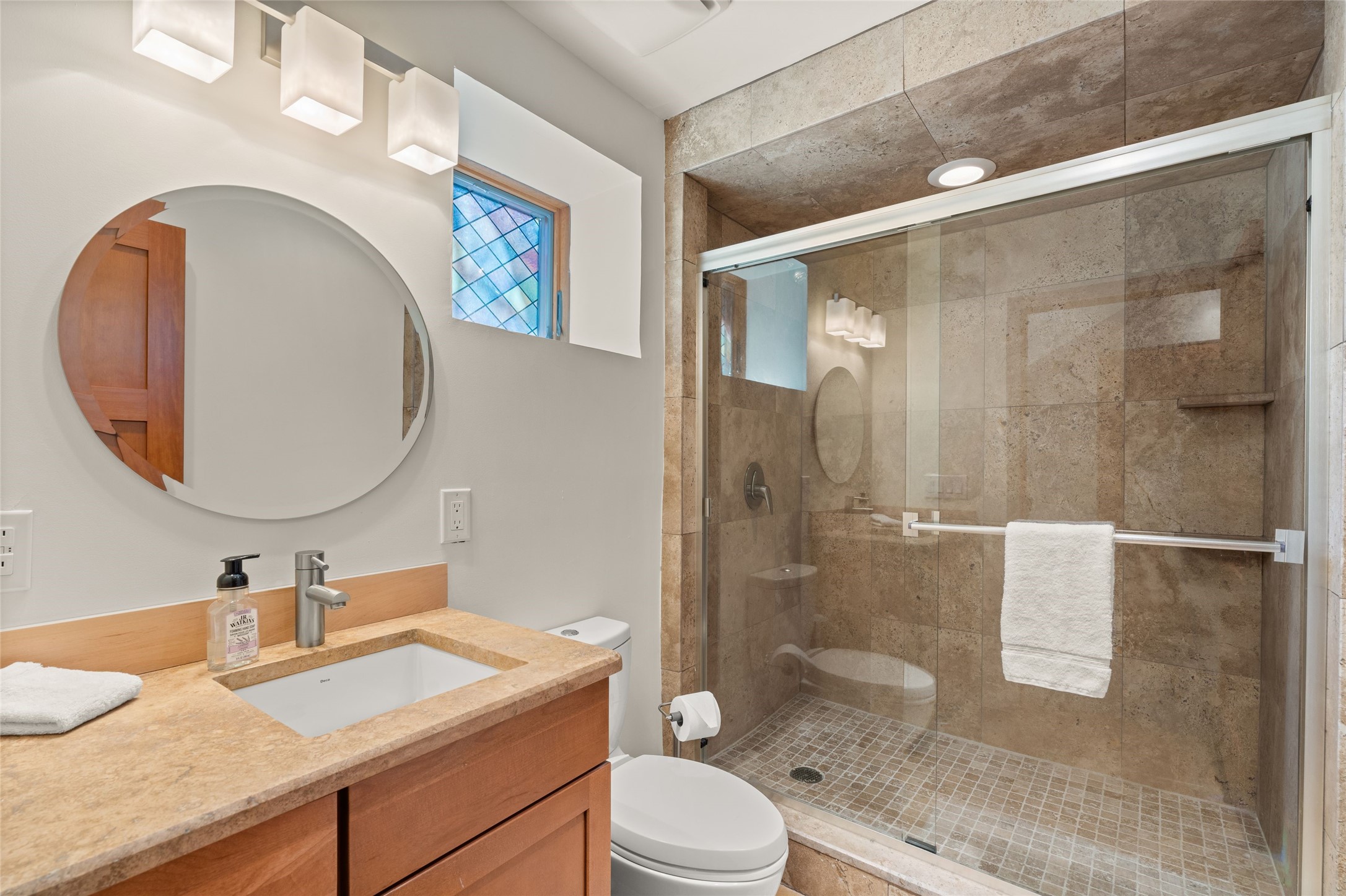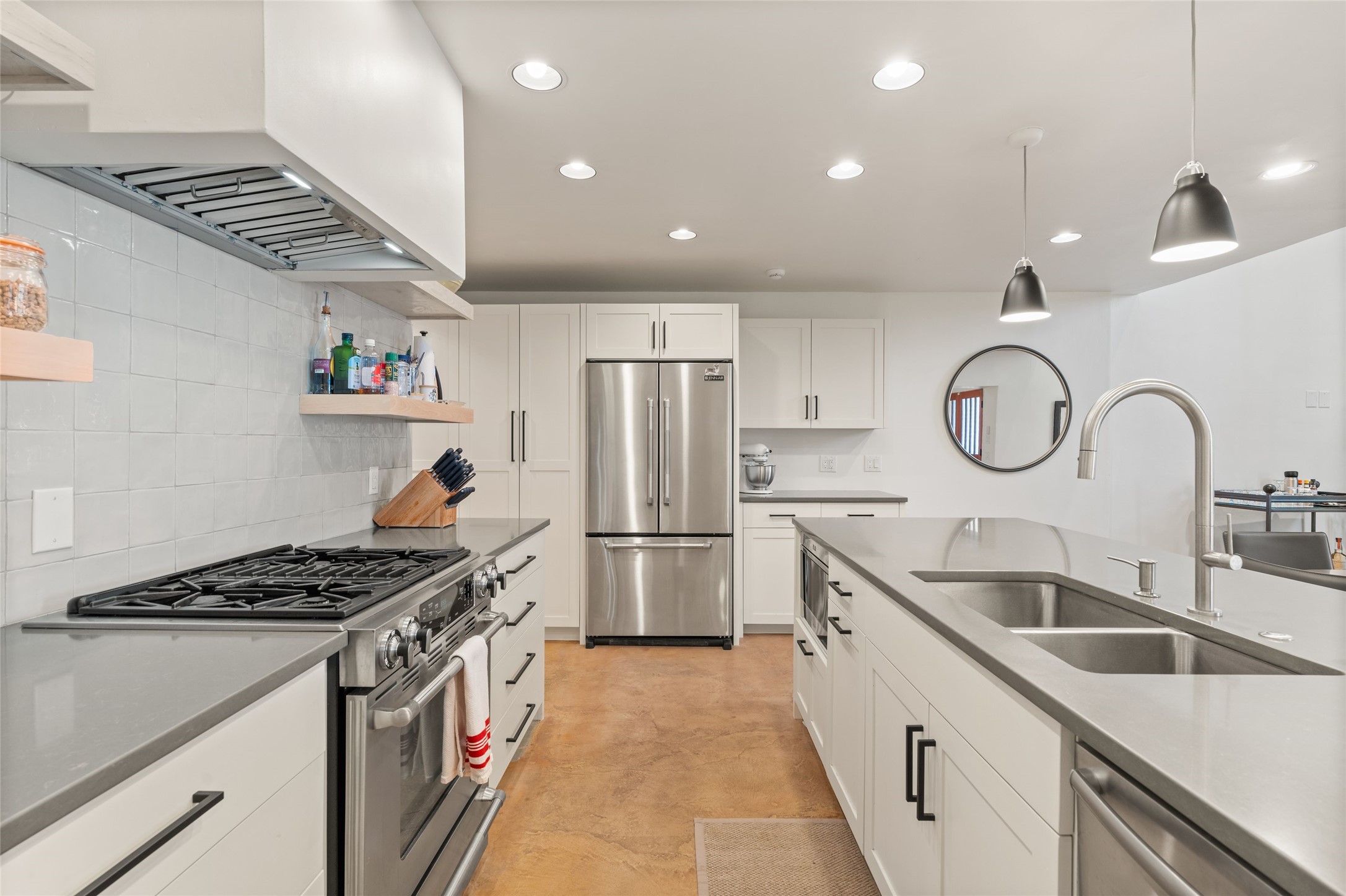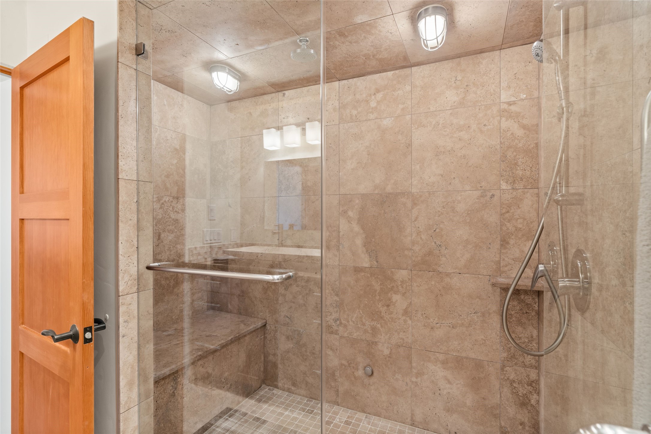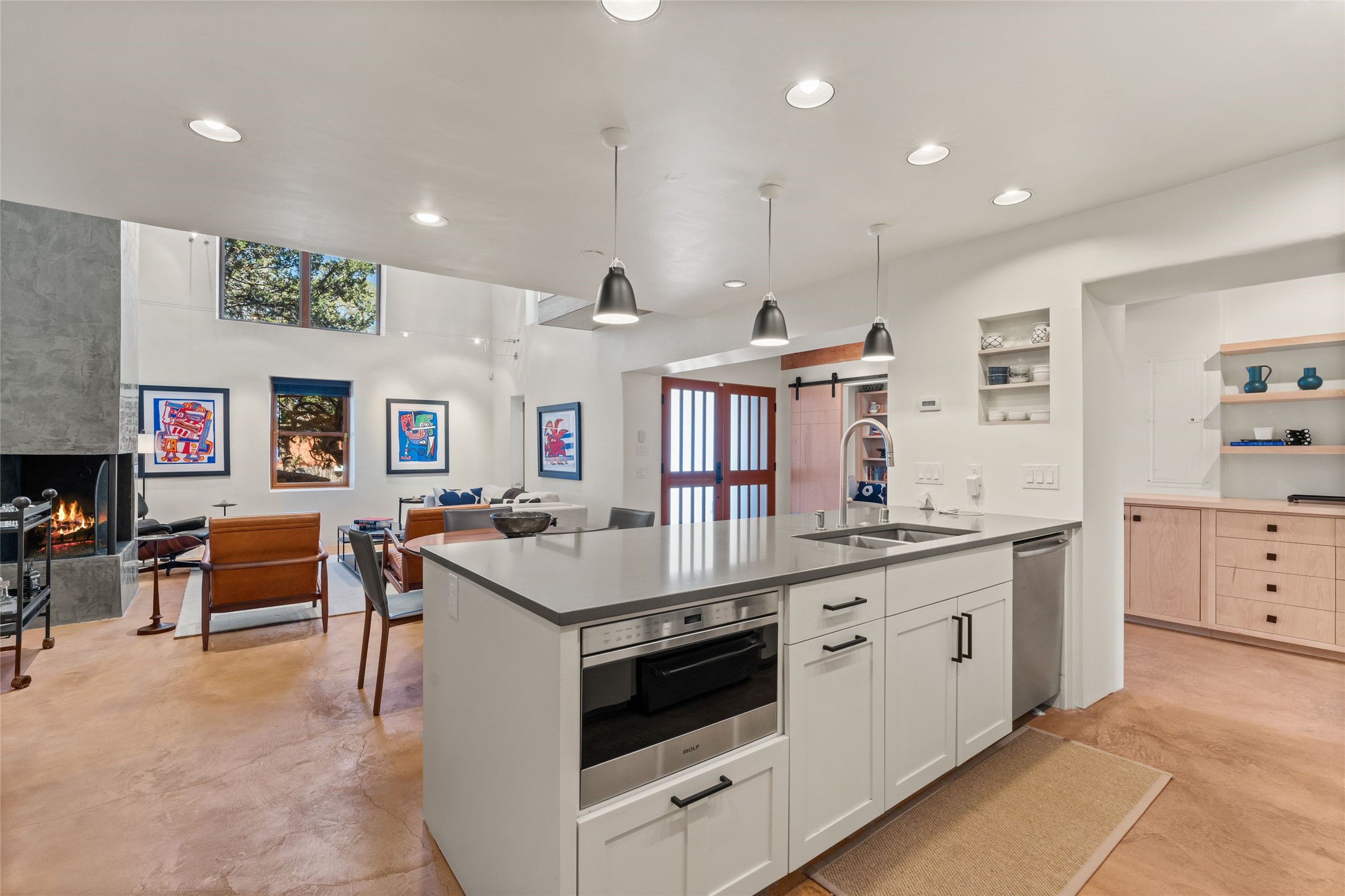 Have you been dreaming of a roof top garden deck where you can live alfresco with full kitchen (including dishwasher!), cozy gas fire pit and a sleeping spot under the stars? With views of sunrise over the Sangres, and sunsets behind the Jemez, and just three blocks from the Plaza, this is the icing on the cake of this cool soft contemporary 2 bedroom, 2,023 square foot condo. With two bedroom suites (one with a steam shower), bamboo floors and Ikea closet systems, this multi-level condo has nice bedroom separation and a very private walled patio off one, shaded by an ancient apricot tree. The living room enjoys a soaring 20 foot ceiling with beams, a fireplace, polished concrete floors, and has a wonderful open feel with the kitchen and dining areas. The kitchen has Cambria quartz counters, stainless appliances and great storage. All this, while being a handy run up to the ski basin and hiking trails, or a short walk to Ft. Marcy or downtown.