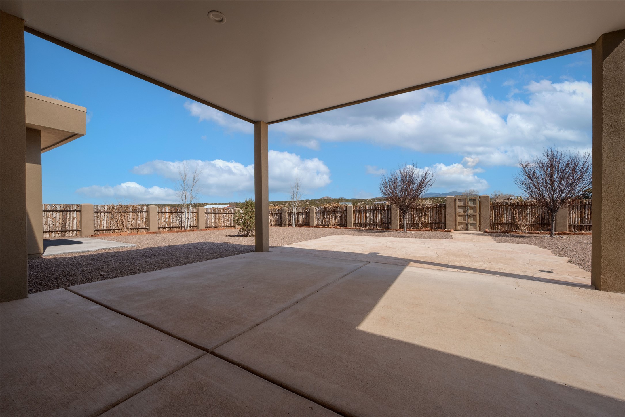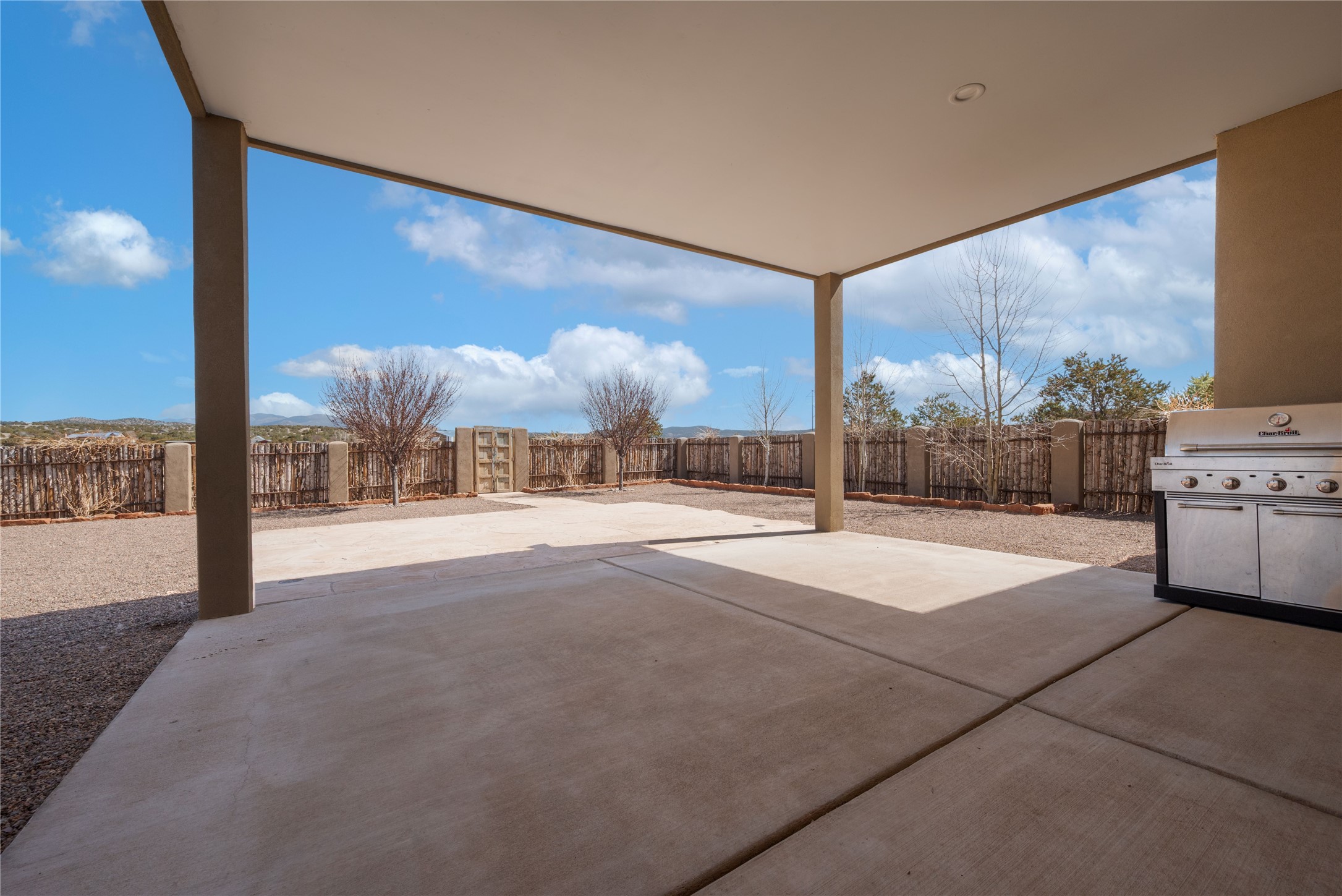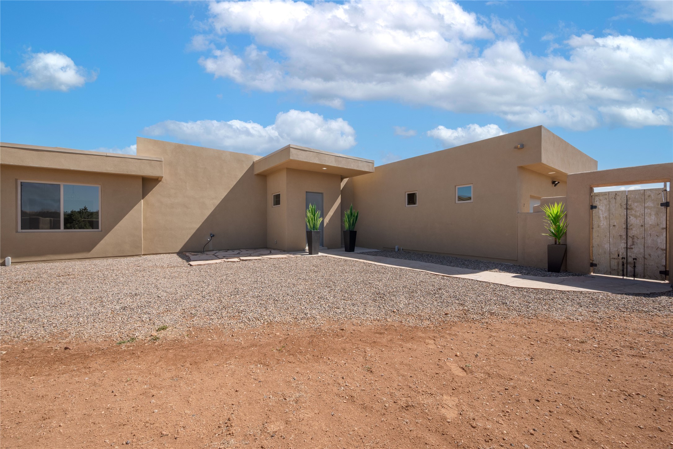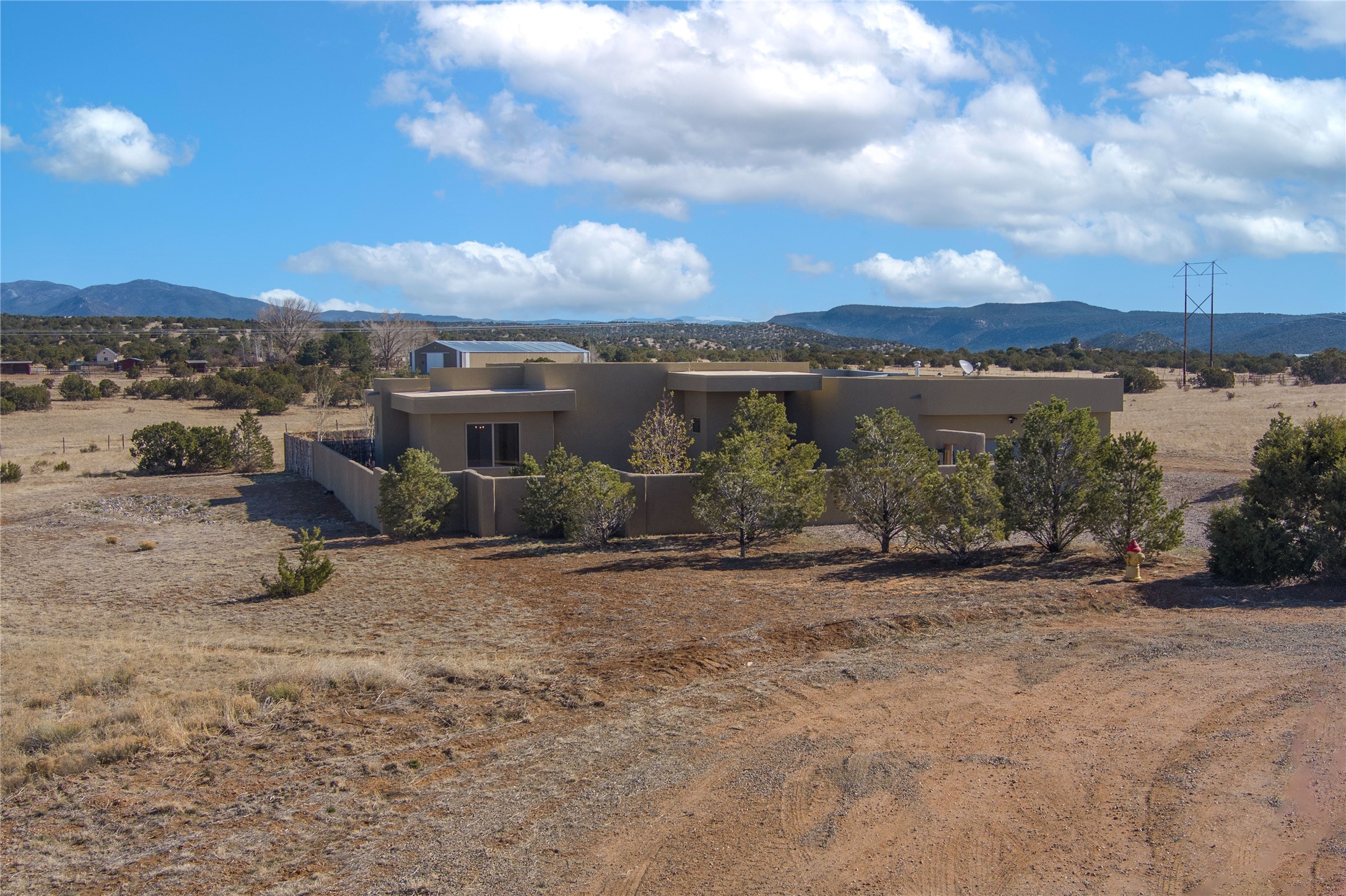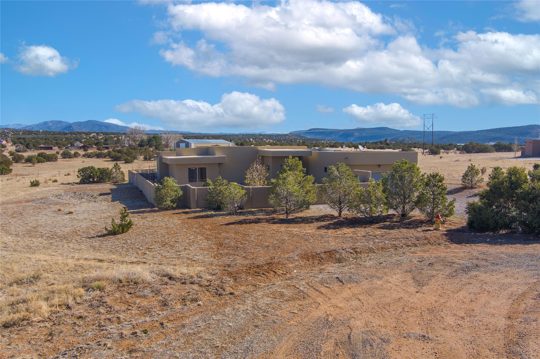 Experience modern living at its finest in this stunning 3-bedroom, 2-bath home, set on a peaceful 3.5-acre property surrounded by open space, wide-open skies, and the gentle sounds of nearby horses. Built just 4 years ago, this home blends sleek contemporary design with warm, livable comfort.Inside, you'll find a bright, open-concept layout with soaring ceilings and elegant architectural details, including a striking coffered ceiling in the main living area. The chef-inspired kitchen features high-end commercial-grade appliances--ideal for daily meals or entertaining with ease.The split floor plan offers privacy and functionality, with a spacious primary suite tucked away from the guest bedrooms. Guests enjoy their own private entrance--perfect for hosting, multigenerational living, or short-term rental potential.All just minutes from the Eldorado Shopping Center and a short drive to downtown Santa Fe--offering the perfect balance of serenity and convenience.