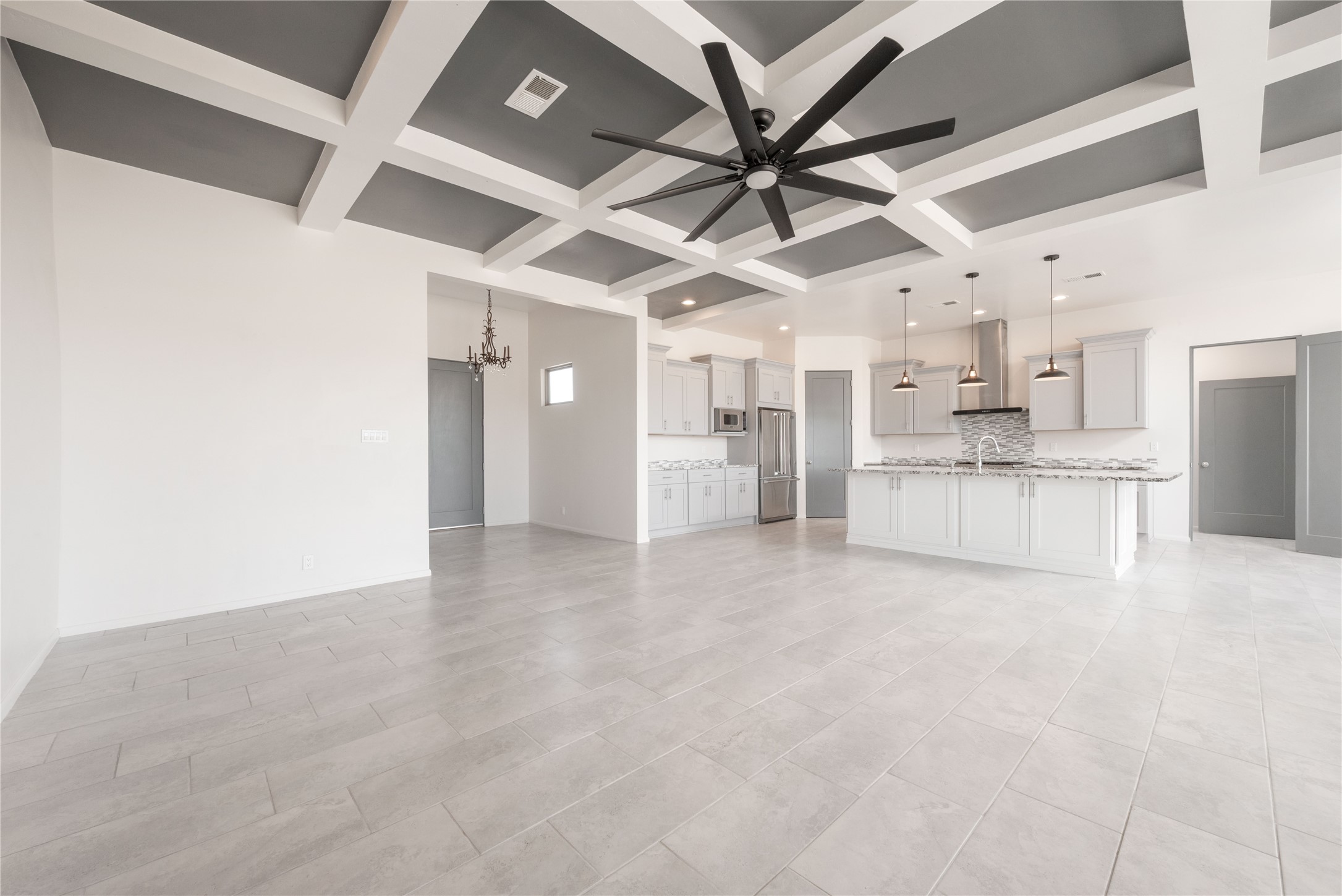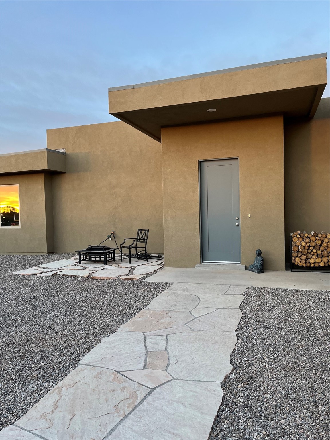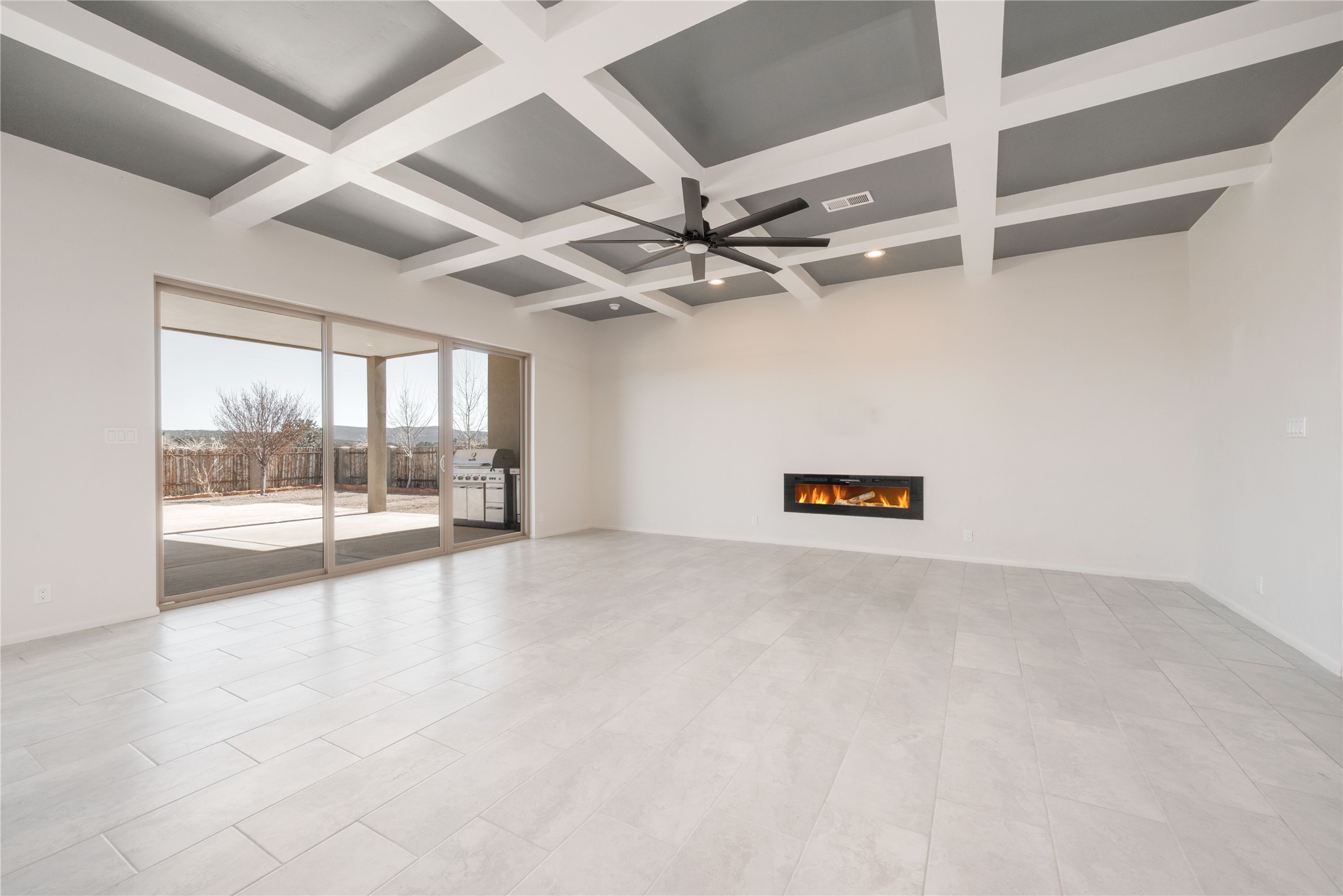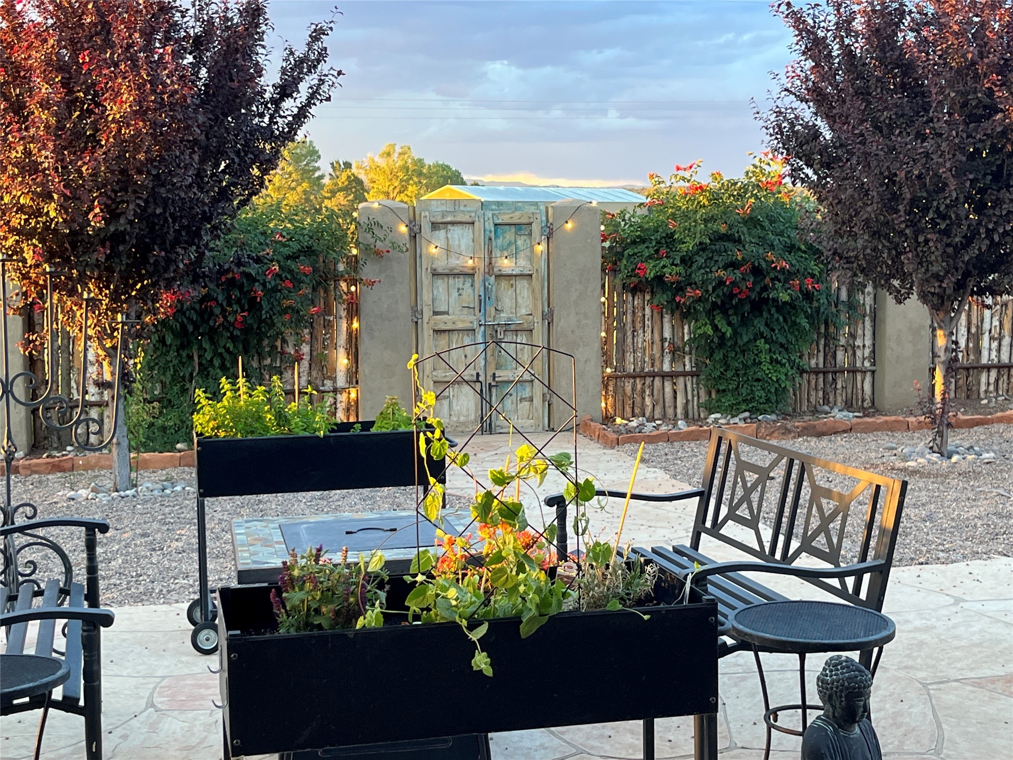 Experience modern living at its finest in this stunning 3-bedroom, 2-bath home, set on a peaceful 3.5-acre property surrounded by open space, wide-open skies, and the gentle sounds of nearby horses. Built just 4 years ago, this home blends sleek contemporary design with warm, livable comfort.Inside, you'll find a bright, open-concept layout with soaring ceilings and elegant architectural details, including a striking coffered ceiling in the main living area. The chef-inspired kitchen features high-end commercial-grade appliances--ideal for daily meals or entertaining with ease.The split floor plan offers privacy and functionality, with a spacious primary suite tucked away from the guest bedrooms. Guests enjoy their own private entrance--perfect for hosting, multigenerational living, or short-term rental potential.All just minutes from the Eldorado Shopping Center and a short drive to downtown Santa Fe--offering the perfect balance of serenity and convenience.