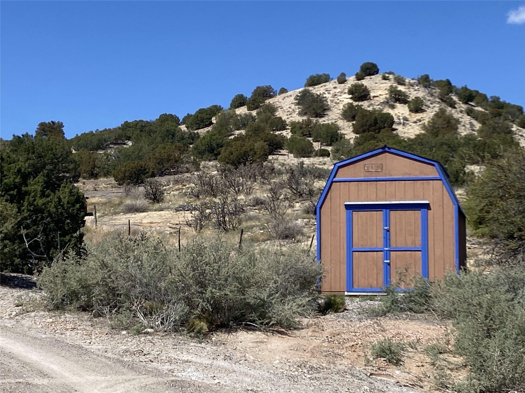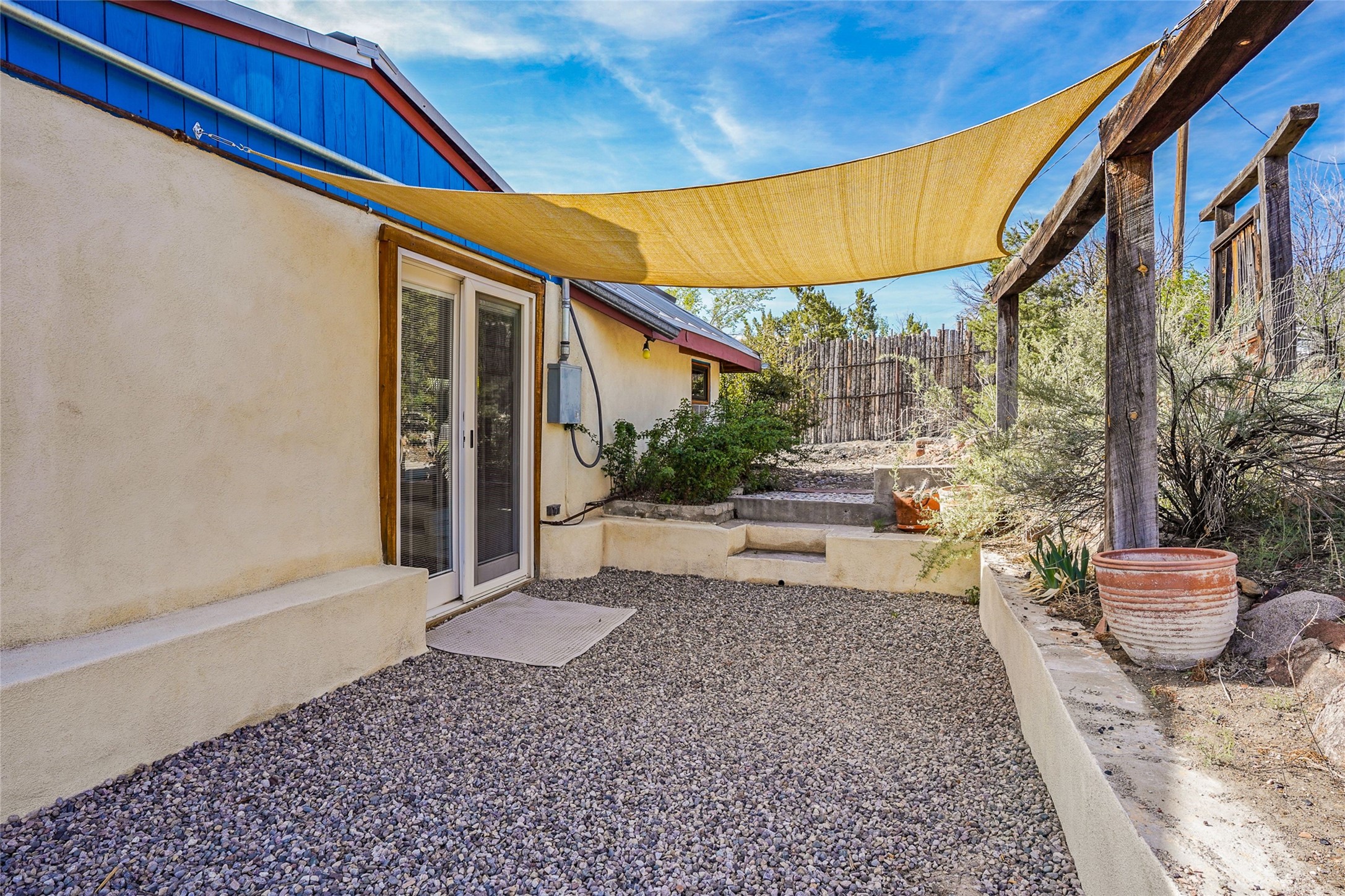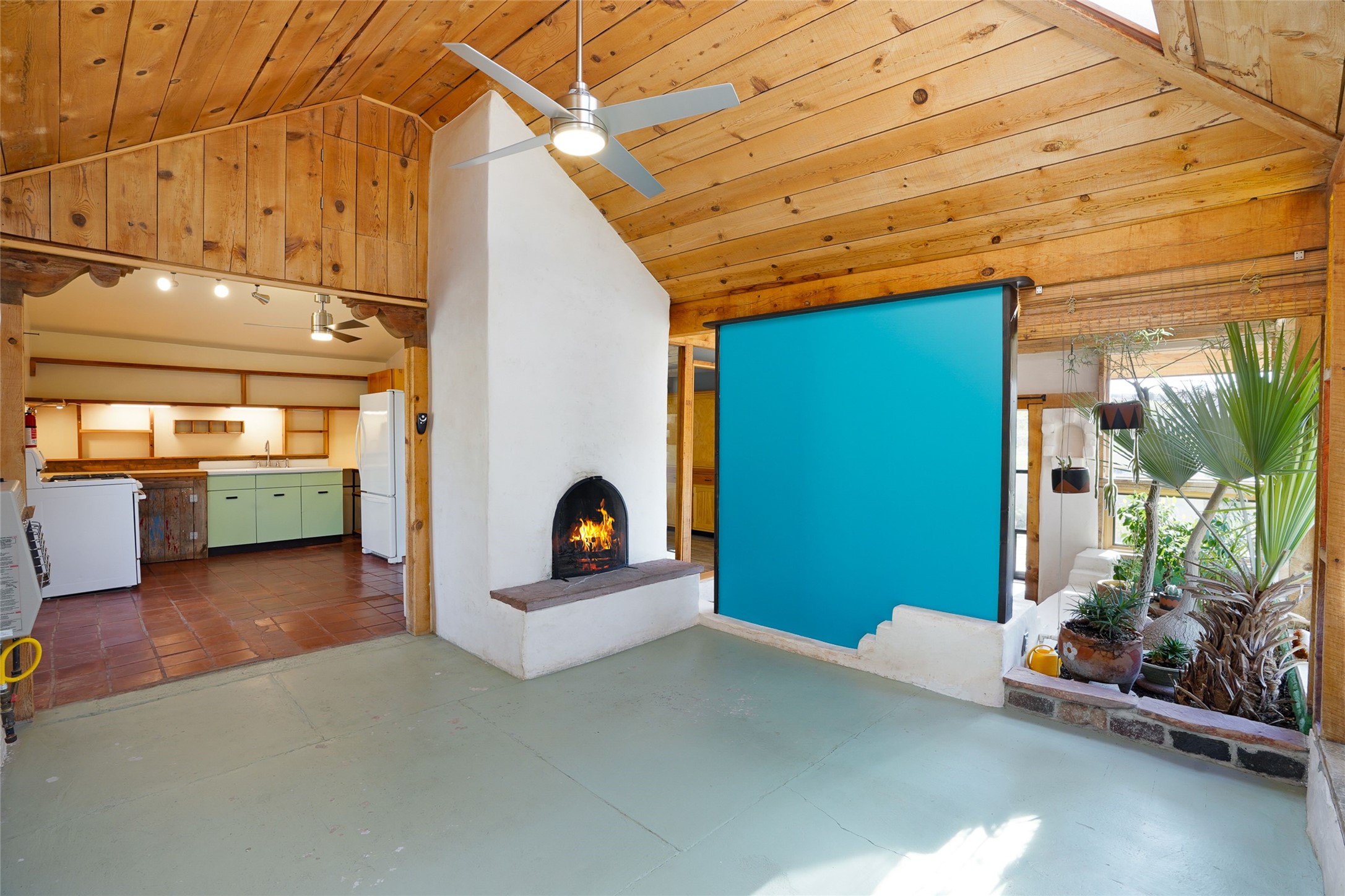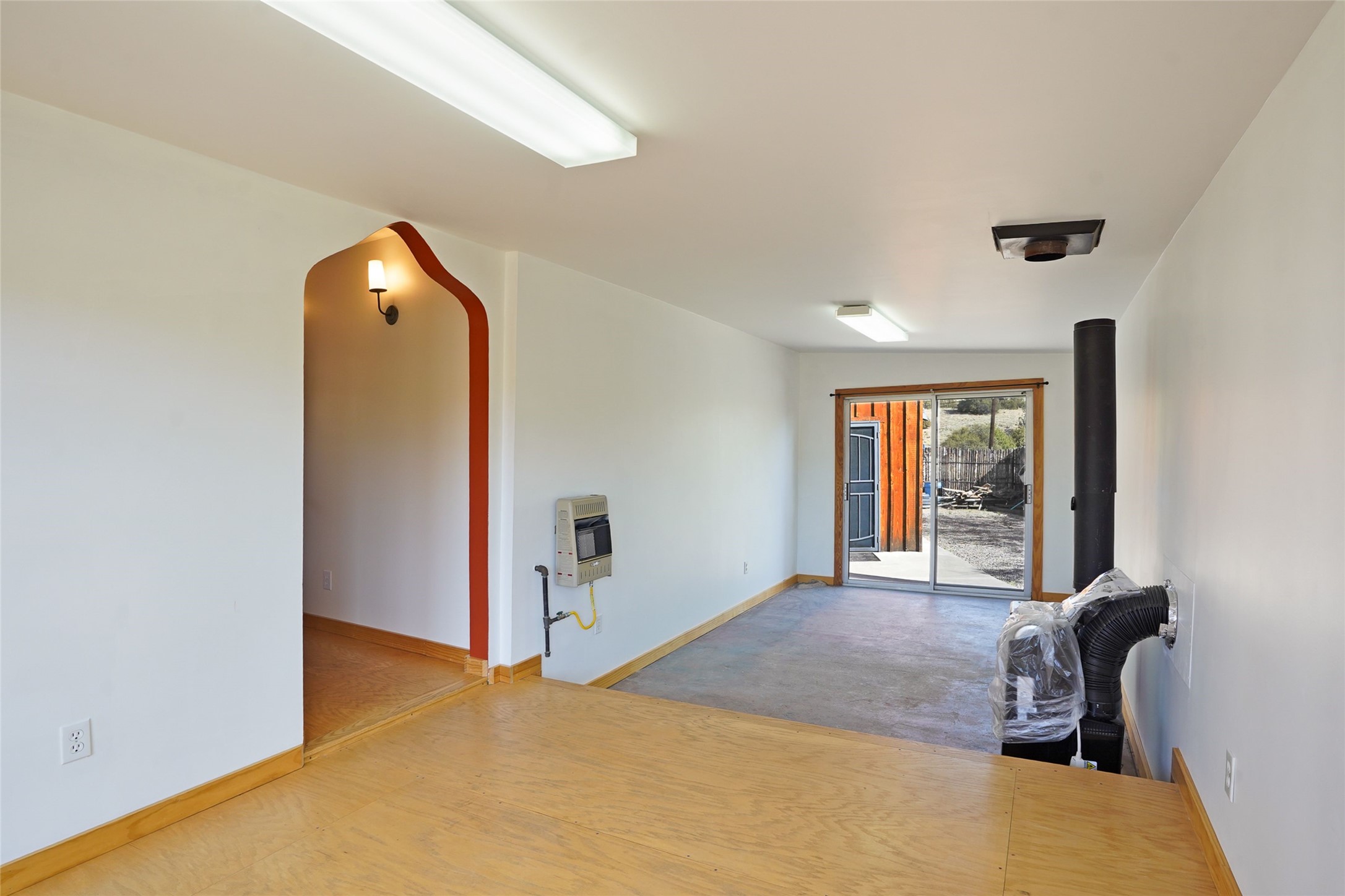 Nestled in the heart of historic Madrid village and close to the County greenbelt, this unique .64-acre property offers a blend of charm and functionality. It features a 972-square-foot artistic main home, a 443-square-foot studio complete bath with shower and sink, and a bright, spacious 750-square-foot workshop. The workshop is equipped with a wood stove for heating and a mini-split system that also provides heating and cooling. The main home showcases partial adobe construction, a sunlit atrium, a two-way kiva fireplace, and a bathroom featuring a clawfoot tub. The property consists of two legally recorded lots. Both the studio and the main house open to an expansive fenced yard with secure coyote fencing, ideal for pets. Just off the kitchen's patio doors lies a tranquil patio space, adding to the peaceful ambiance. This property is part of a lively, creative community with coffee shop, galleries, restaurants, and a general store--all within walking distance. Its location offers convenient access to Albuquerque and Santa Fe via the scenic Turquoise Trail. A perfect blend of artistry, community, and work-at-home possibilities awaits.