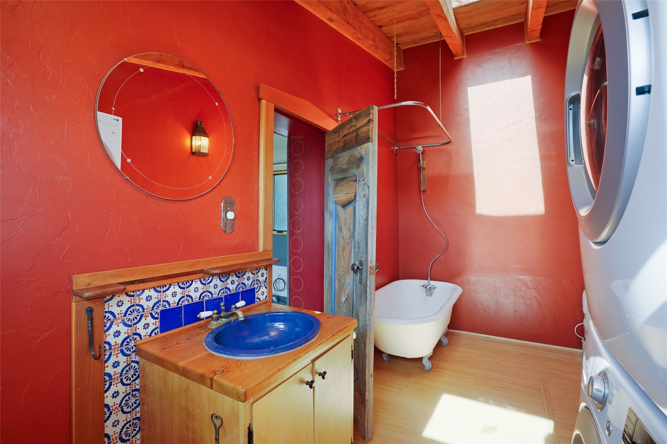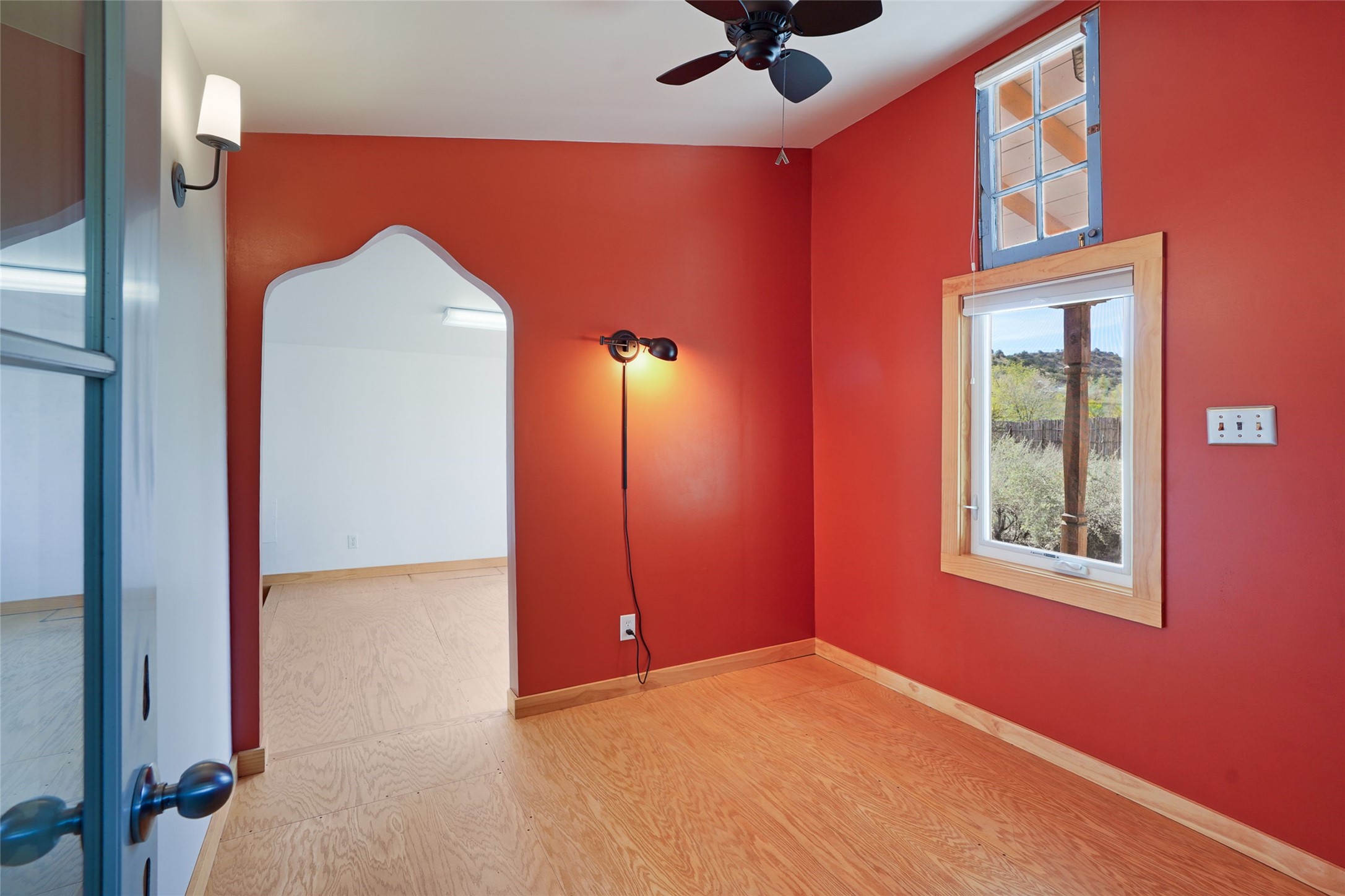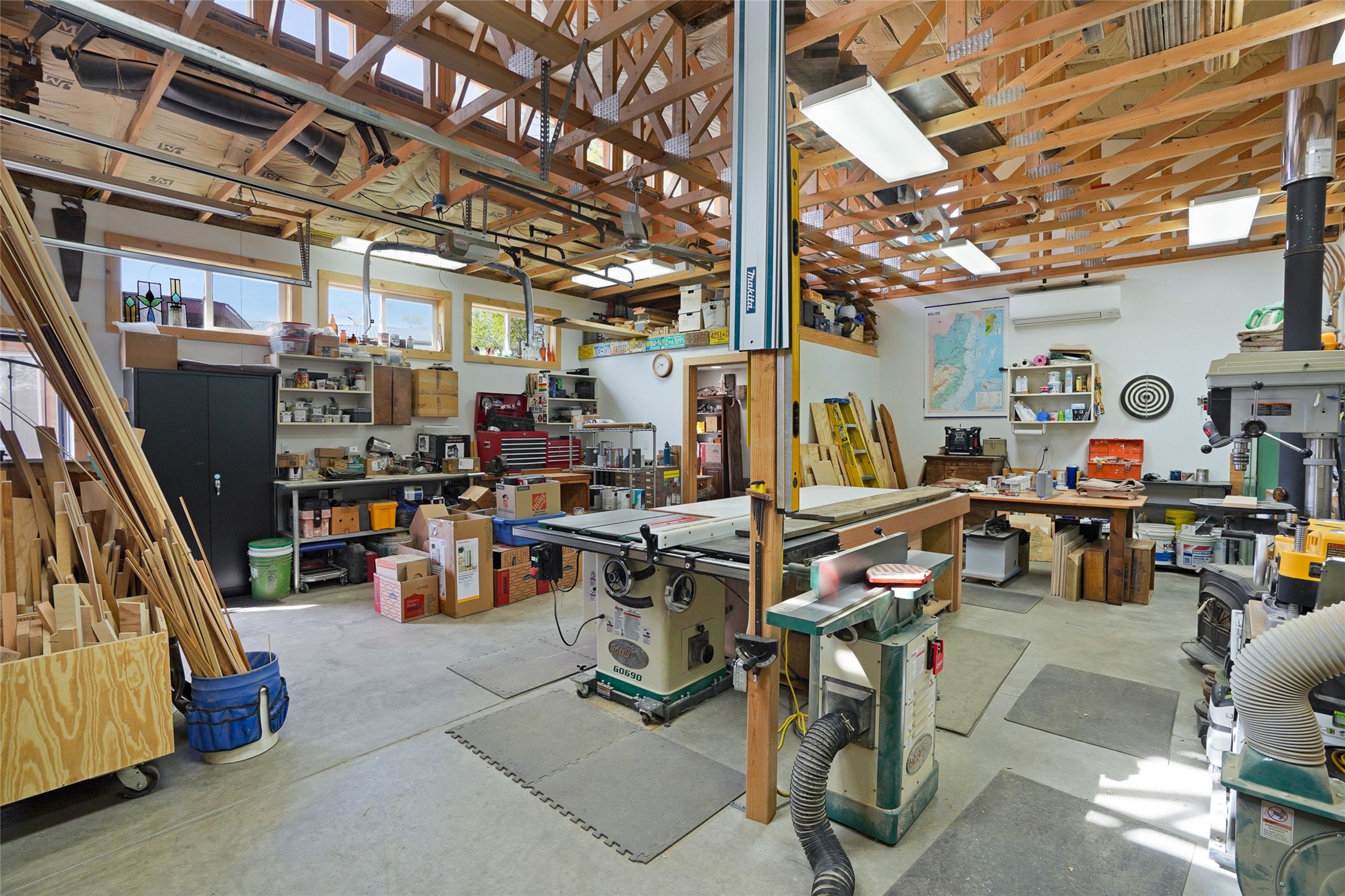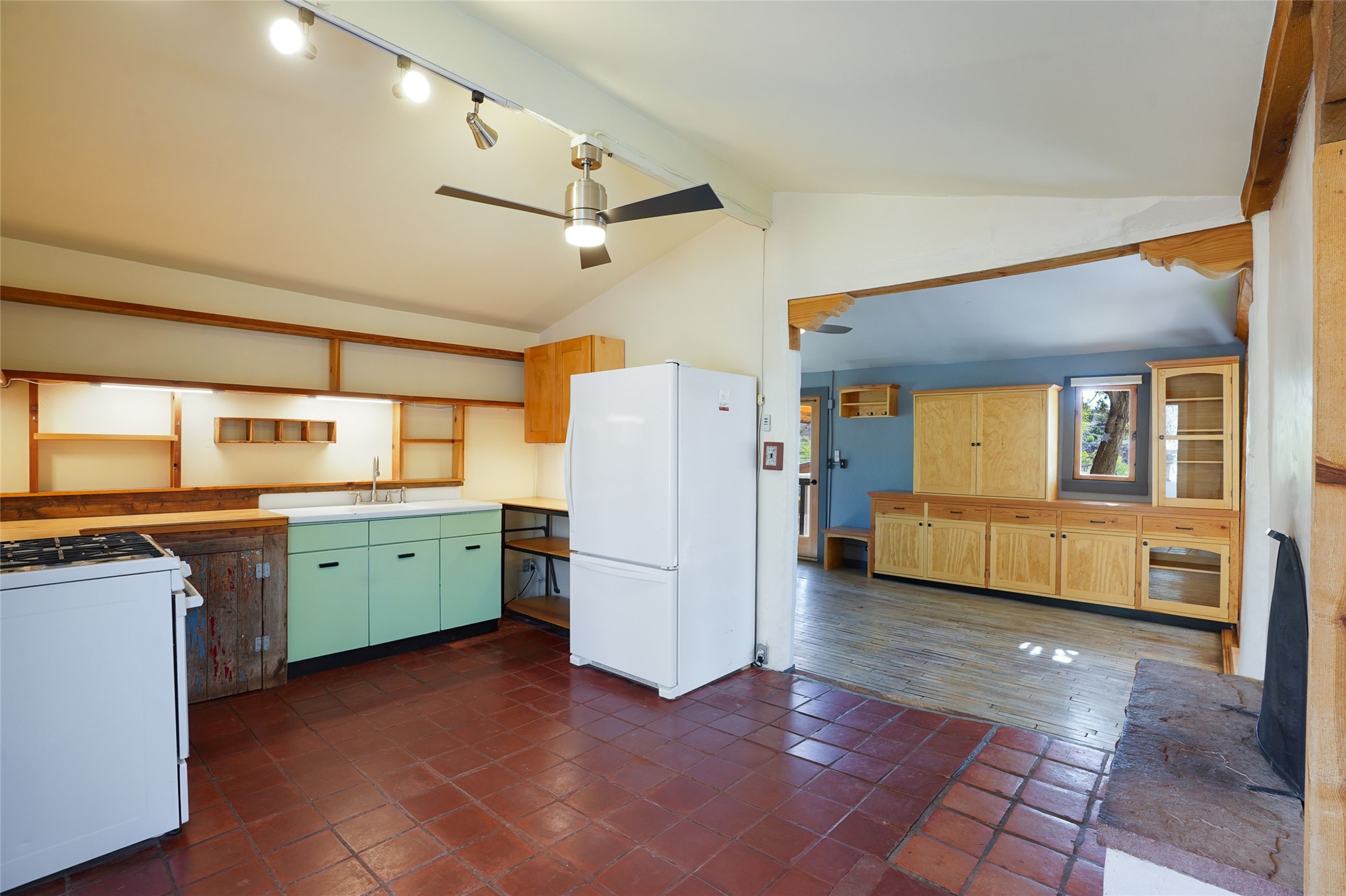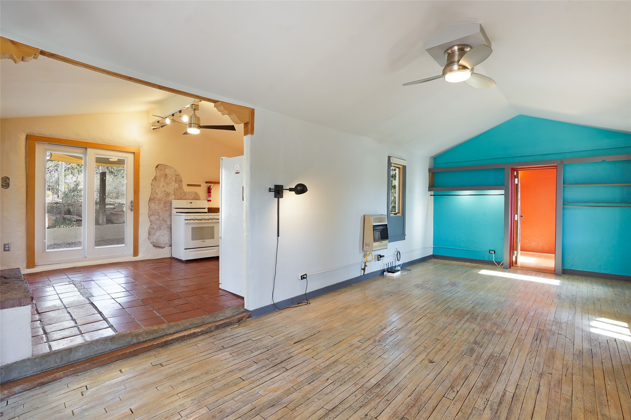 Nestled in the heart of historic Madrid village and close to the County greenbelt, this unique .64-acre property offers a blend of charm and functionality. It features a 972-square-foot artistic main home, a 443-square-foot studio complete bath with shower and sink, and a bright, spacious 750-square-foot workshop. The workshop is equipped with a wood stove for heating and a mini-split system that also provides heating and cooling. The main home showcases partial adobe construction, a sunlit atrium, a two-way kiva fireplace, and a bathroom featuring a clawfoot tub. The property consists of two legally recorded lots. Both the studio and the main house open to an expansive fenced yard with secure coyote fencing, ideal for pets. Just off the kitchen's patio doors lies a tranquil patio space, adding to the peaceful ambiance. This property is part of a lively, creative community with coffee shop, galleries, restaurants, and a general store--all within walking distance. Its location offers convenient access to Albuquerque and Santa Fe via the scenic Turquoise Trail. A perfect blend of artistry, community, and work-at-home possibilities awaits.