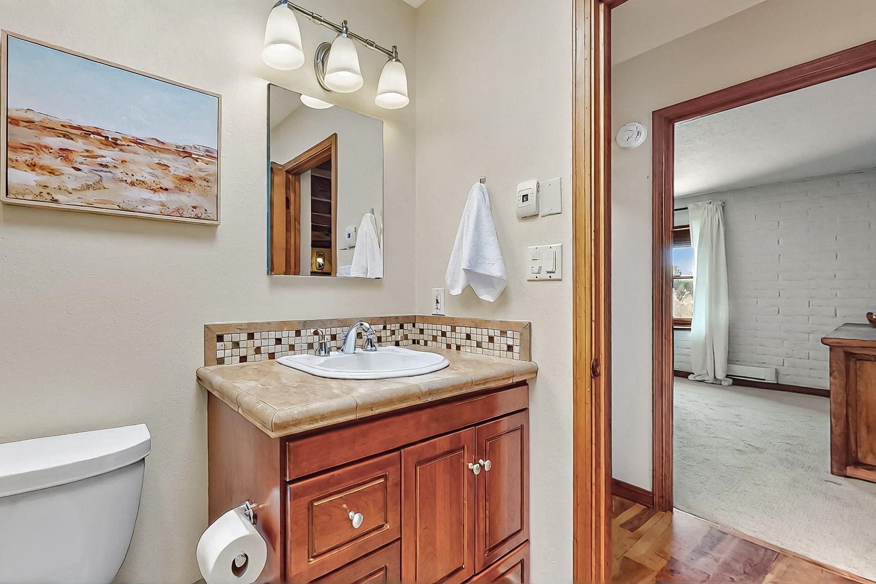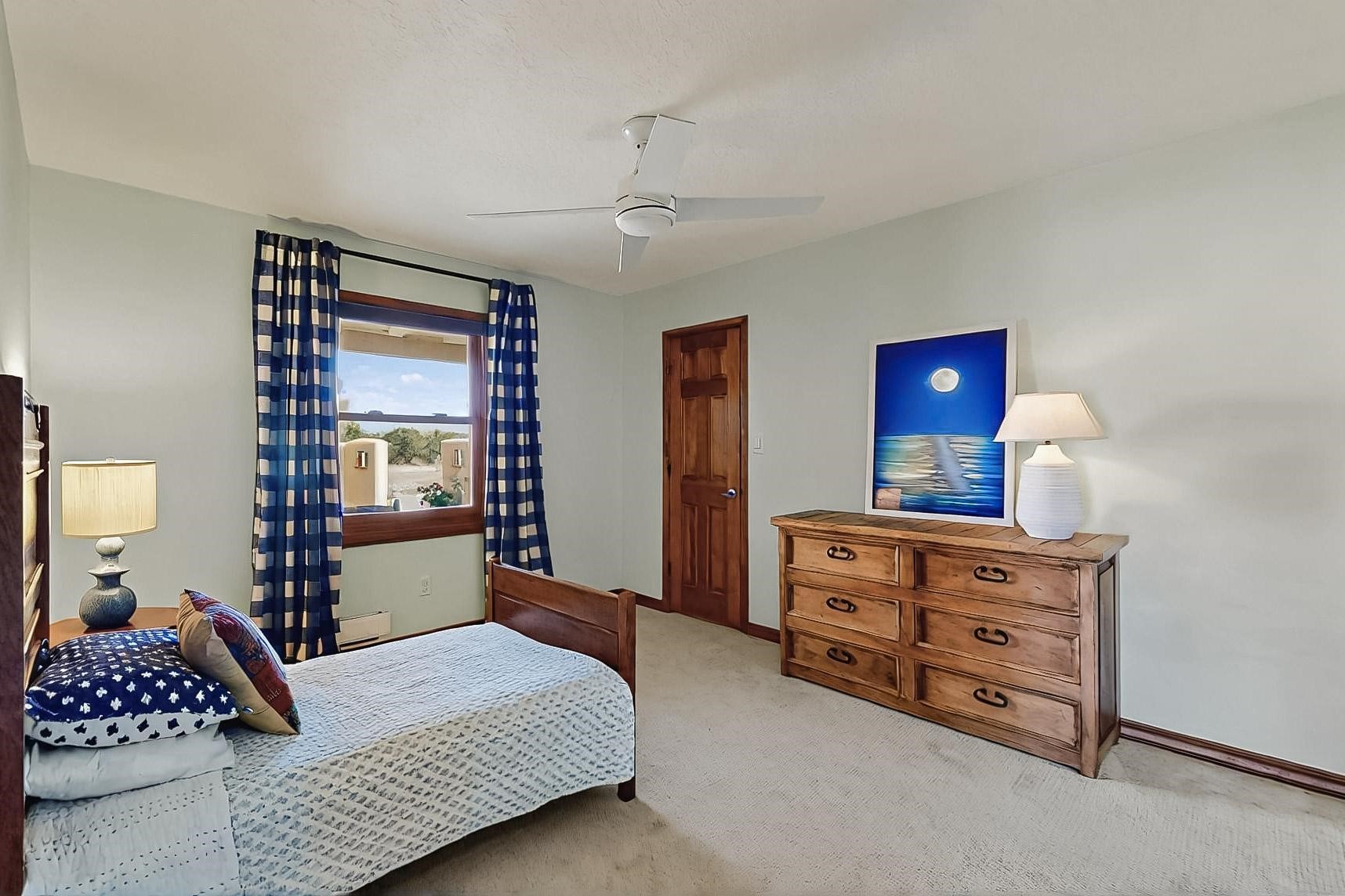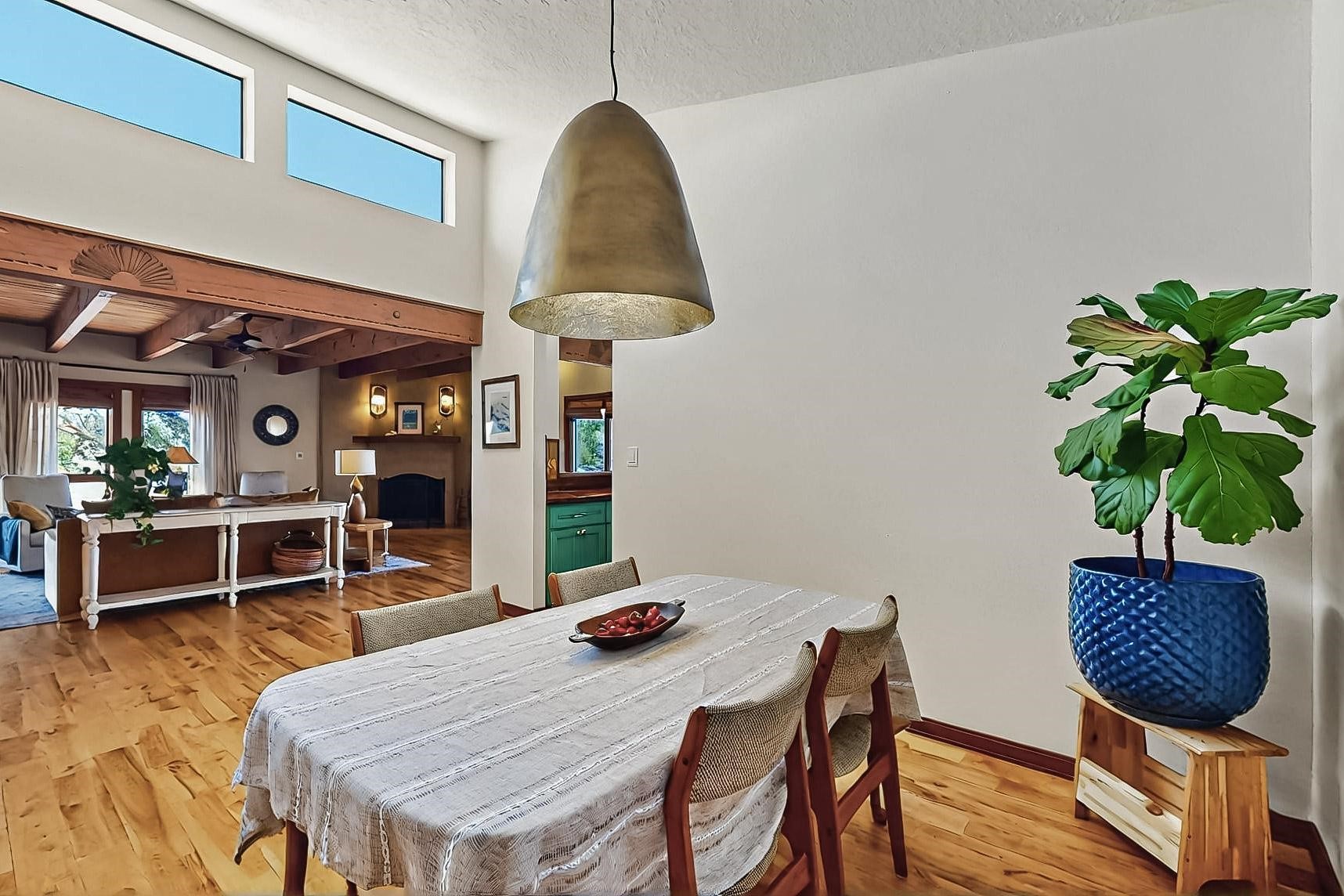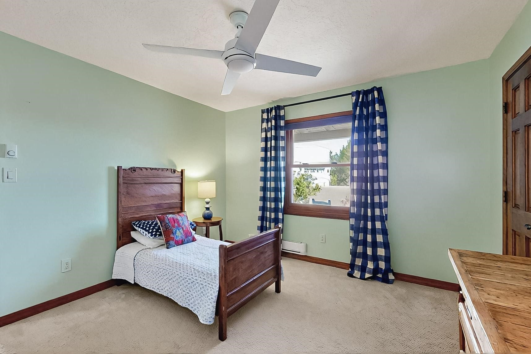 This is the property you've been waiting for! Set back off the road for serenity, privacy and tons of parking, this meticulously renovated passive solar partial adobe brick home has a welcoming walled courtyard, wide plank flamed birch and walnut hardwood floors, new silicon roof with transferable warranty, new transom windows, Navian tankless hot water heater, Dimplex electric heaters with wall thermostats, electric and plumbing upgrades.Beautiful kitchen with clerestory windows, maple cabinets, farmhouse sink, wood wainscoting and gleaming walnut butcher block countertops, Rejuvenation brass hardware, blue slate floors, new appliances, and Zellige handcrafted glazed Moroccan terracotta tiles flows into the pantry and utility room remodel with sink and new W/D.xBoth rooms with built-in storage galore. Open concept post and beam living room with a remote control natural gas fireplace, mini-split cooling system, architectural hand carved support beams and French doors leading out to the enclosed yard.Designated dining room off the kitchen with high sloped ceiling and clerestory windows. En-suite Master bath has been renovated with marble vanity and flooring. Xeriscaping with a partial drip irrigation system, numerous trees, shrubs and flowers. Sellers are avid gardeners and have built a robust native landscape that is drought-tolerant and low maintenance.