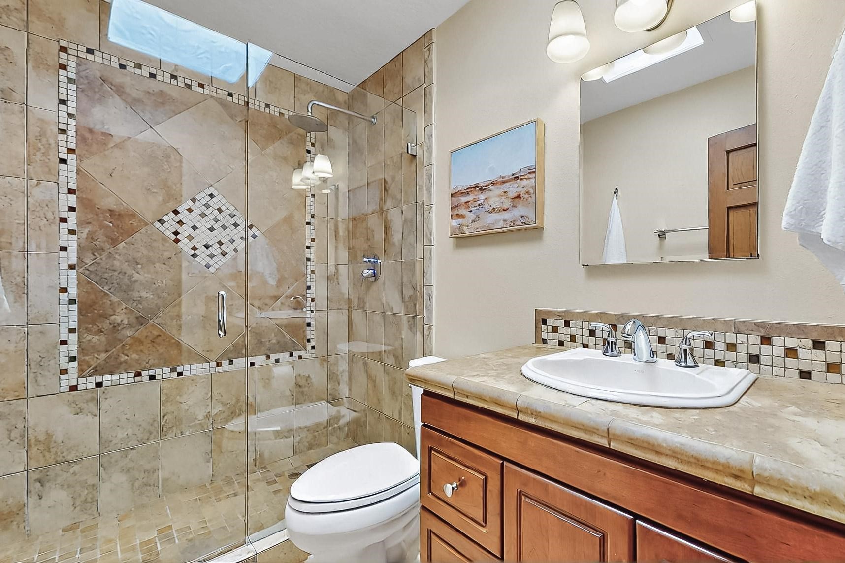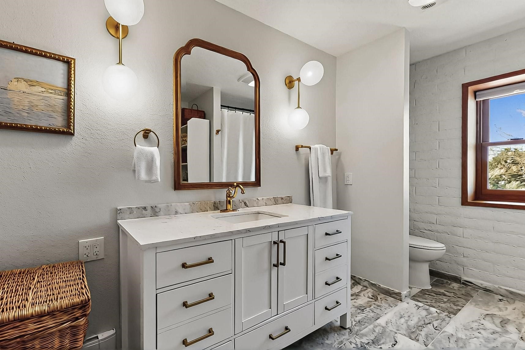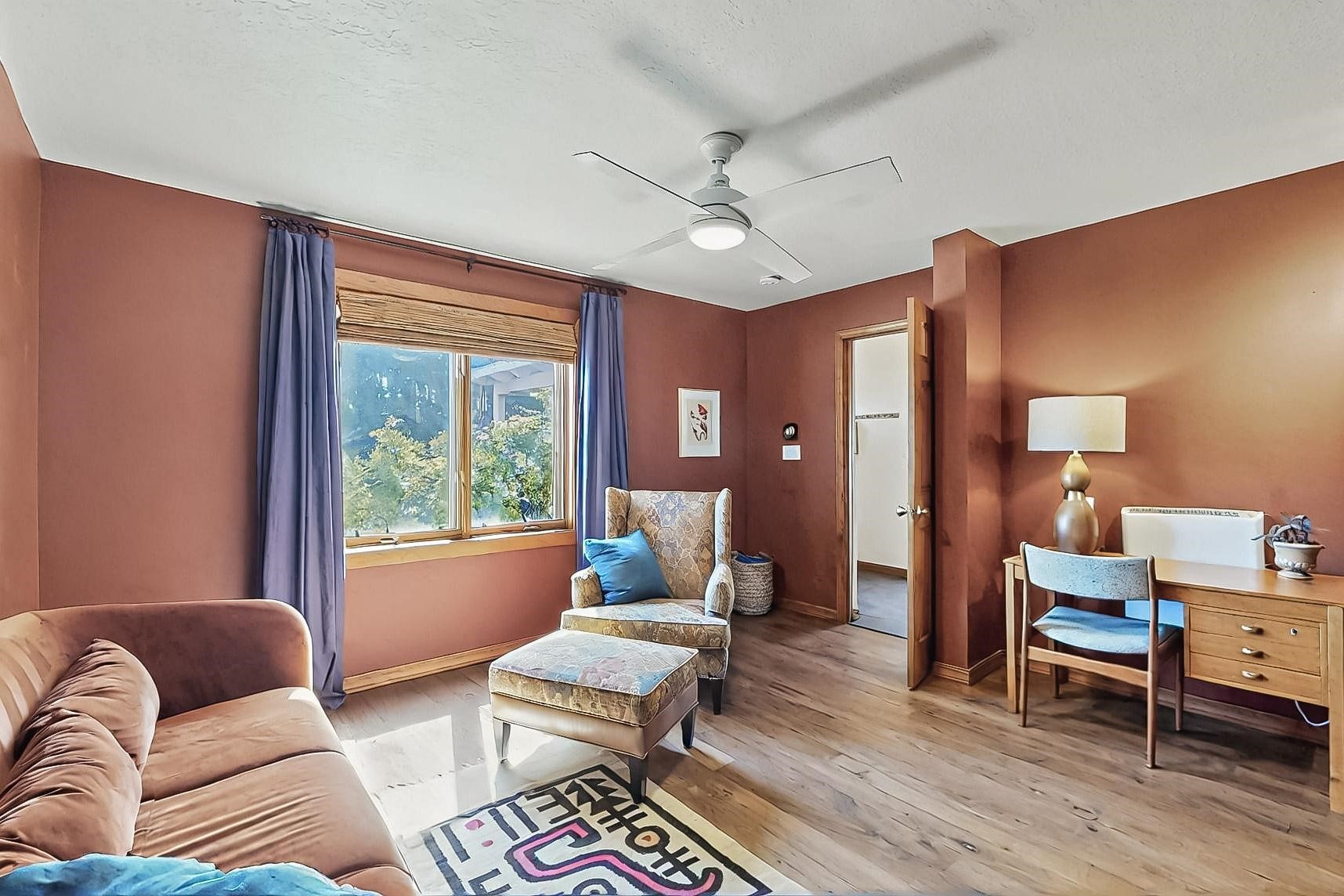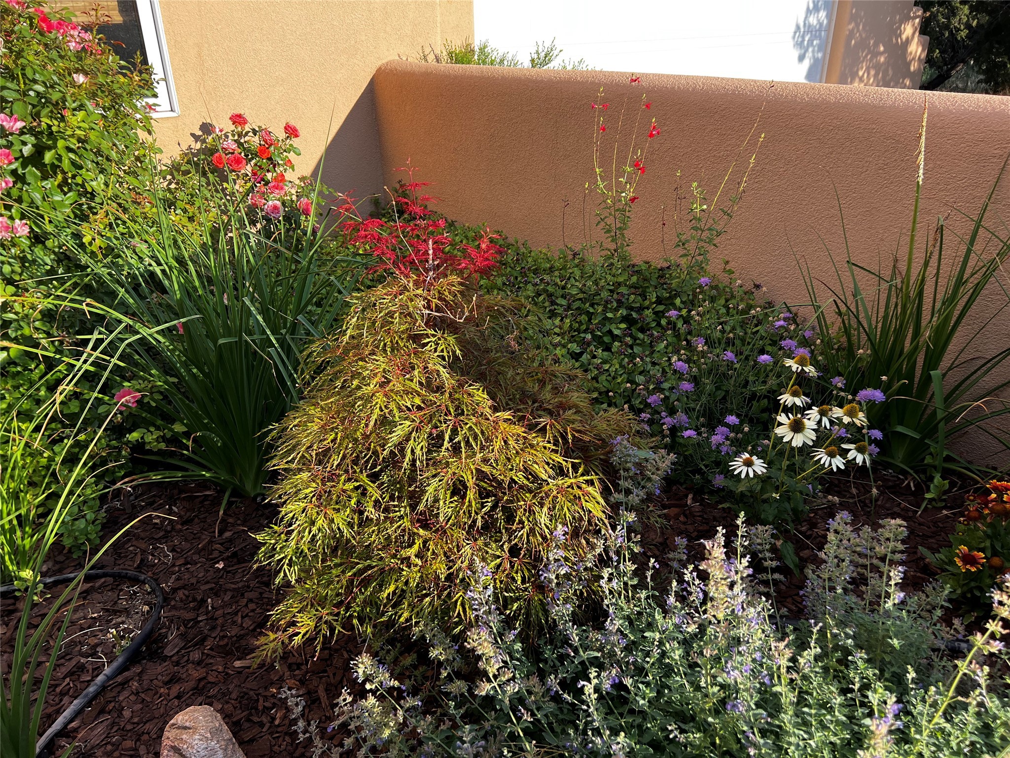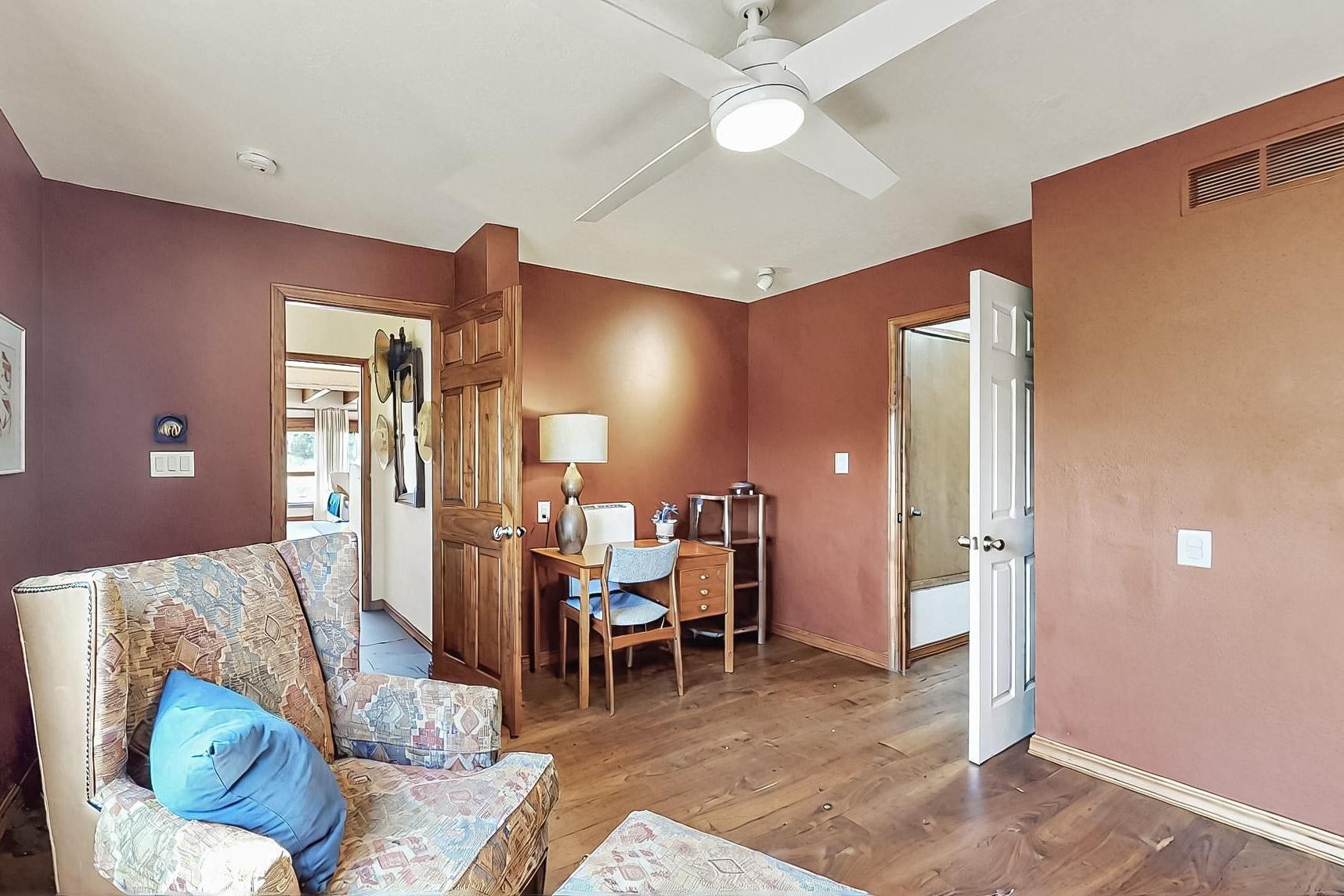 This is the property you've been waiting for! Set back off the road for serenity, privacy and tons of parking, this meticulously renovated passive solar partial adobe brick home has a welcoming walled courtyard, wide plank flamed birch and walnut hardwood floors, new silicon roof with transferable warranty, new transom windows, Navian tankless hot water heater, Dimplex electric heaters with wall thermostats, electric and plumbing upgrades.Beautiful kitchen with clerestory windows, maple cabinets, farmhouse sink, wood wainscoting and gleaming walnut butcher block countertops, Rejuvenation brass hardware, blue slate floors, new appliances, and Zellige handcrafted glazed Moroccan terracotta tiles flows into the pantry and utility room remodel with sink and new W/D.xBoth rooms with built-in storage galore. Open concept post and beam living room with a remote control natural gas fireplace, mini-split cooling system, architectural hand carved support beams and French doors leading out to the enclosed yard.Designated dining room off the kitchen with high sloped ceiling and clerestory windows. En-suite Master bath has been renovated with marble vanity and flooring. Xeriscaping with a partial drip irrigation system, numerous trees, shrubs and flowers. Sellers are avid gardeners and have built a robust native landscape that is drought-tolerant and low maintenance.