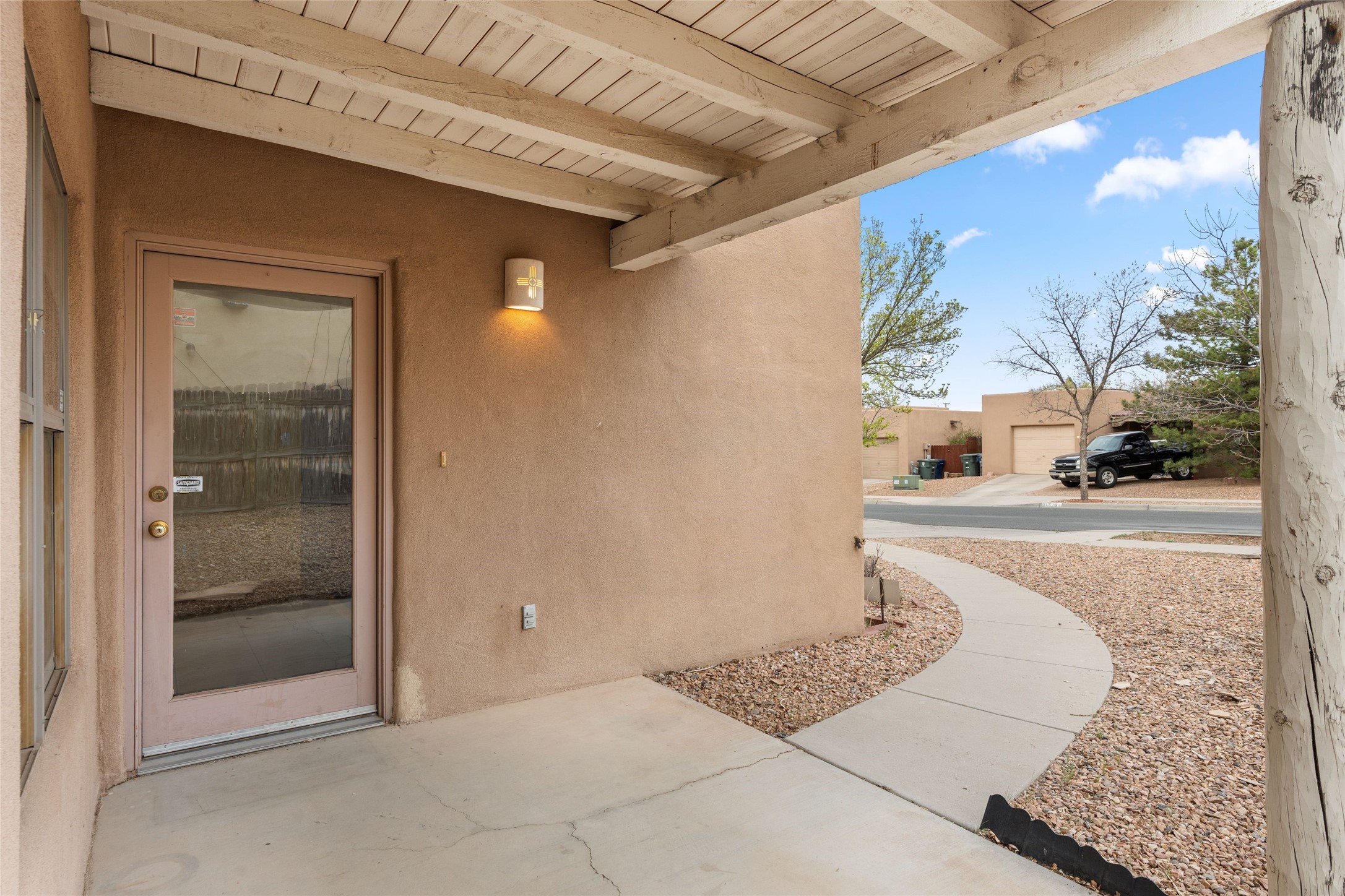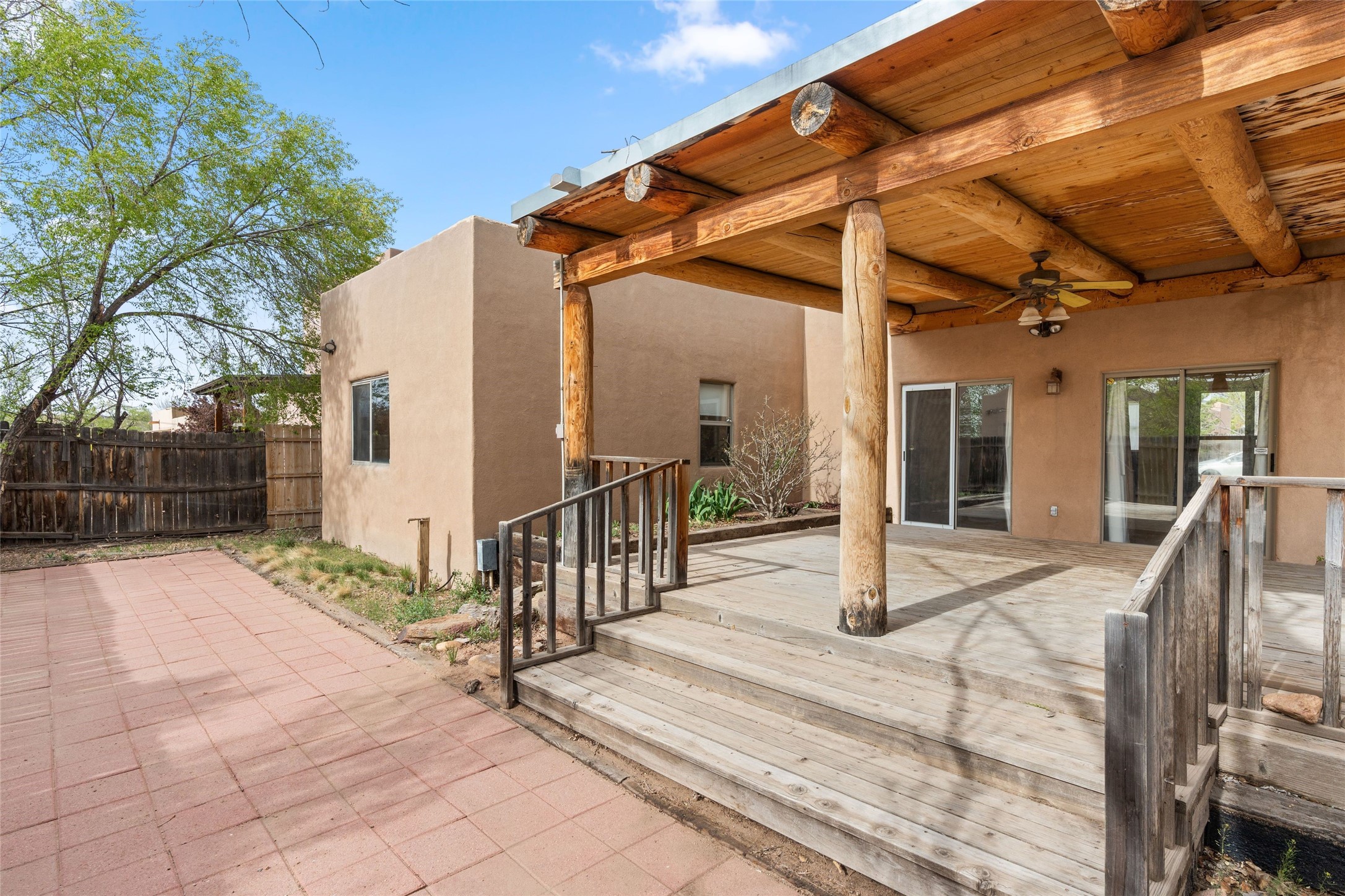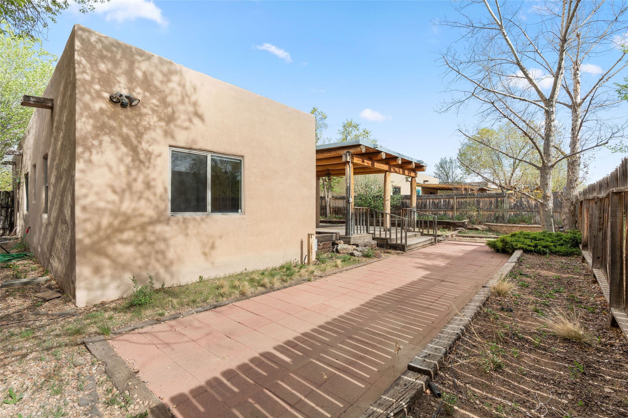 Charming 2-bedroom, 1-bath home offering 1,041 sq ft of character, warmth, and potential. Tucked beneath mature trees, the property provides a sense of privacy and tranquility. A generously covered portal creates the ideal setting for outdoor entertaining, relaxing, or dining al fresco. Inside, you'll be welcomed by high ceilings and a cozy kiva fireplace. This home is a wonderful opportunity for those with a vision to personalize and enhance a space full of charm.