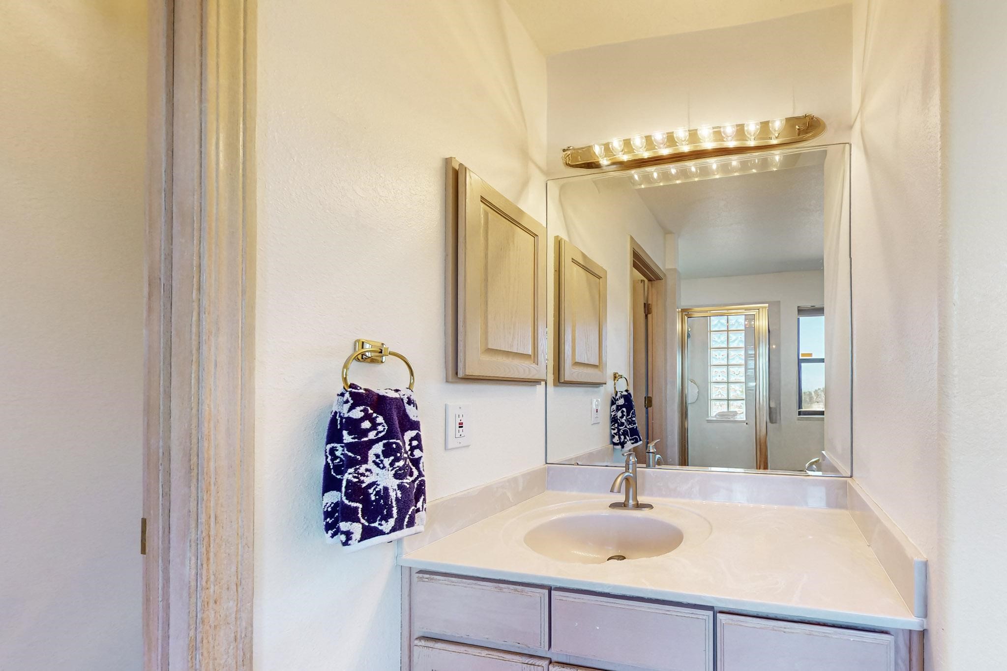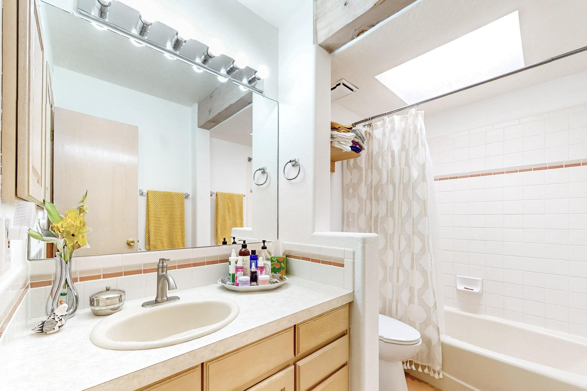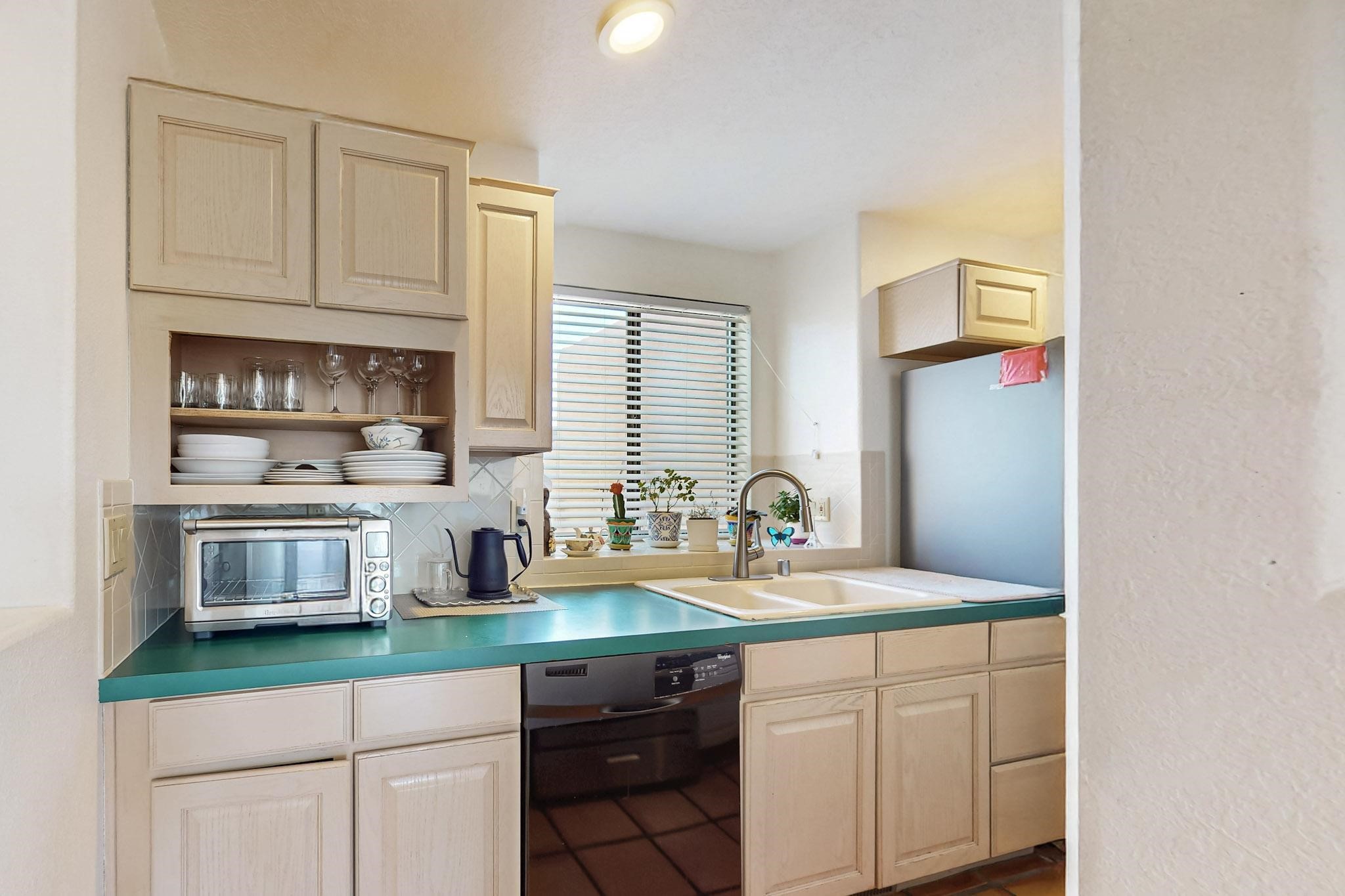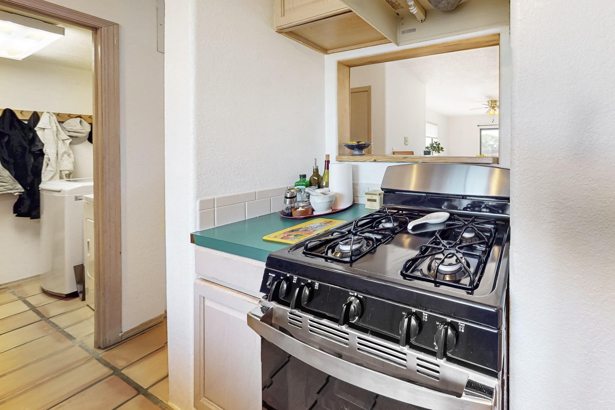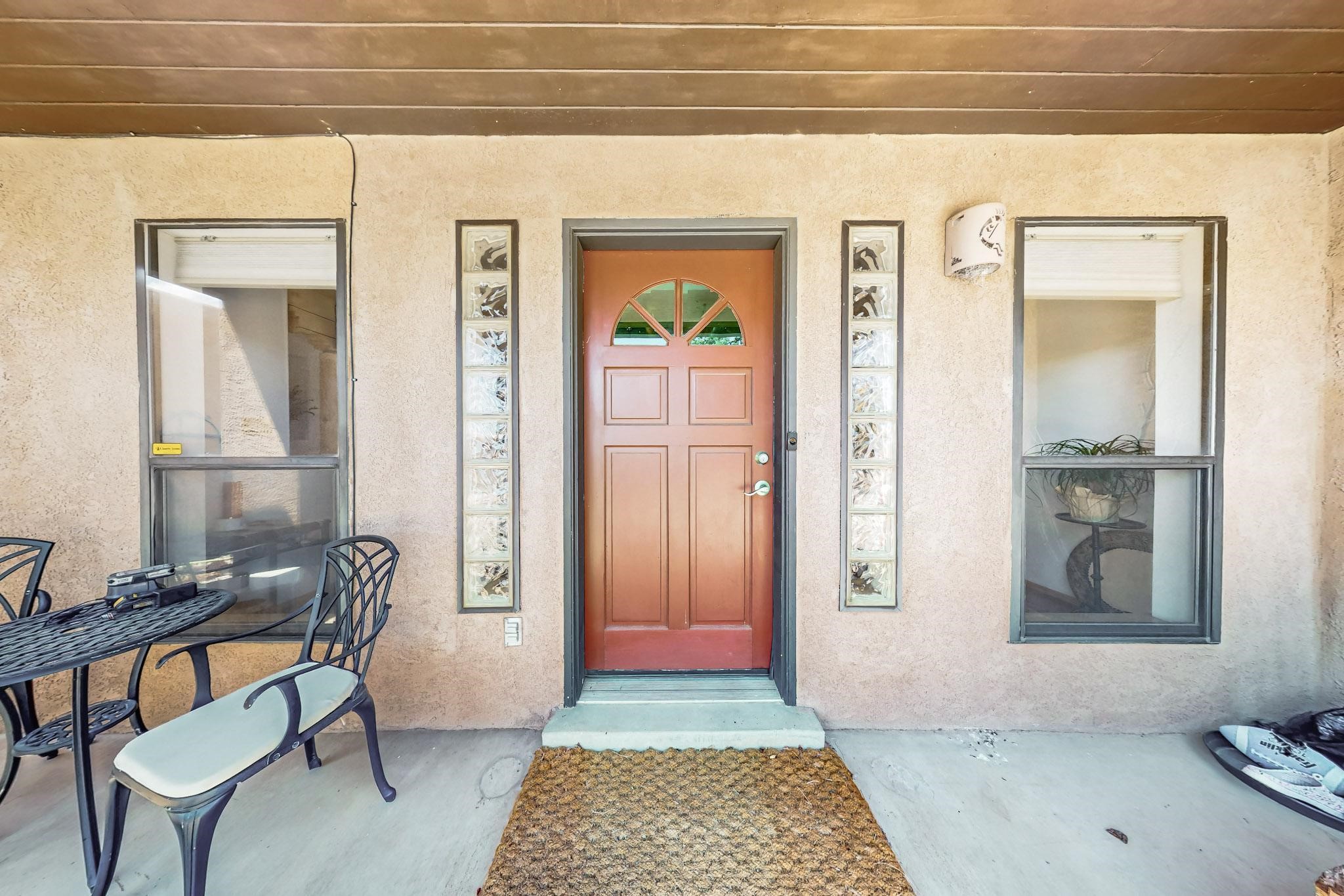 Lovely light classic contemporary pueblo, open plan design with a large extra sunroom. Natural gas forced air with a swamp cooler hook up giving central air conditioning to give both winter heat and summer cool. A 2 way wood burning fireplace with a gas log starter sits between the living room and main bedroom. A private front courtyard, Saltillo floors, viga beams and corbels add a touch of SF character. Ceiling fans in all rooms, one year old hot water heater and a brand new septic tank installed 2024. There is a privately fenced back yard accessed from the sunroom and sunny dining area for entertaining or quiet relaxation. This home sits back on 1.6 acres accessed by paved roads within easy reach of Eldorado amenities, two local shopping centers, schools, parks, library and senior center, only minutes into Santa Fe.