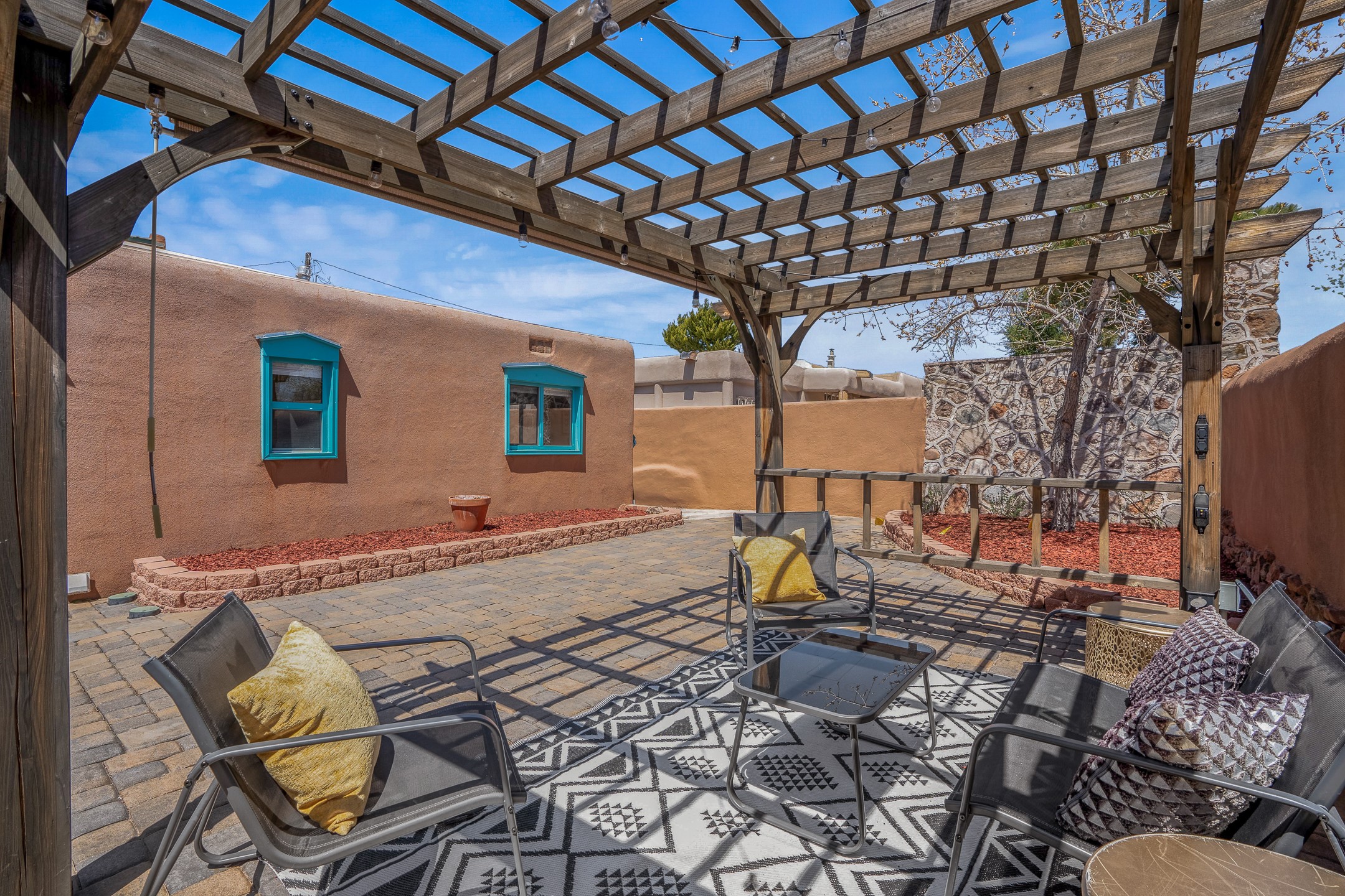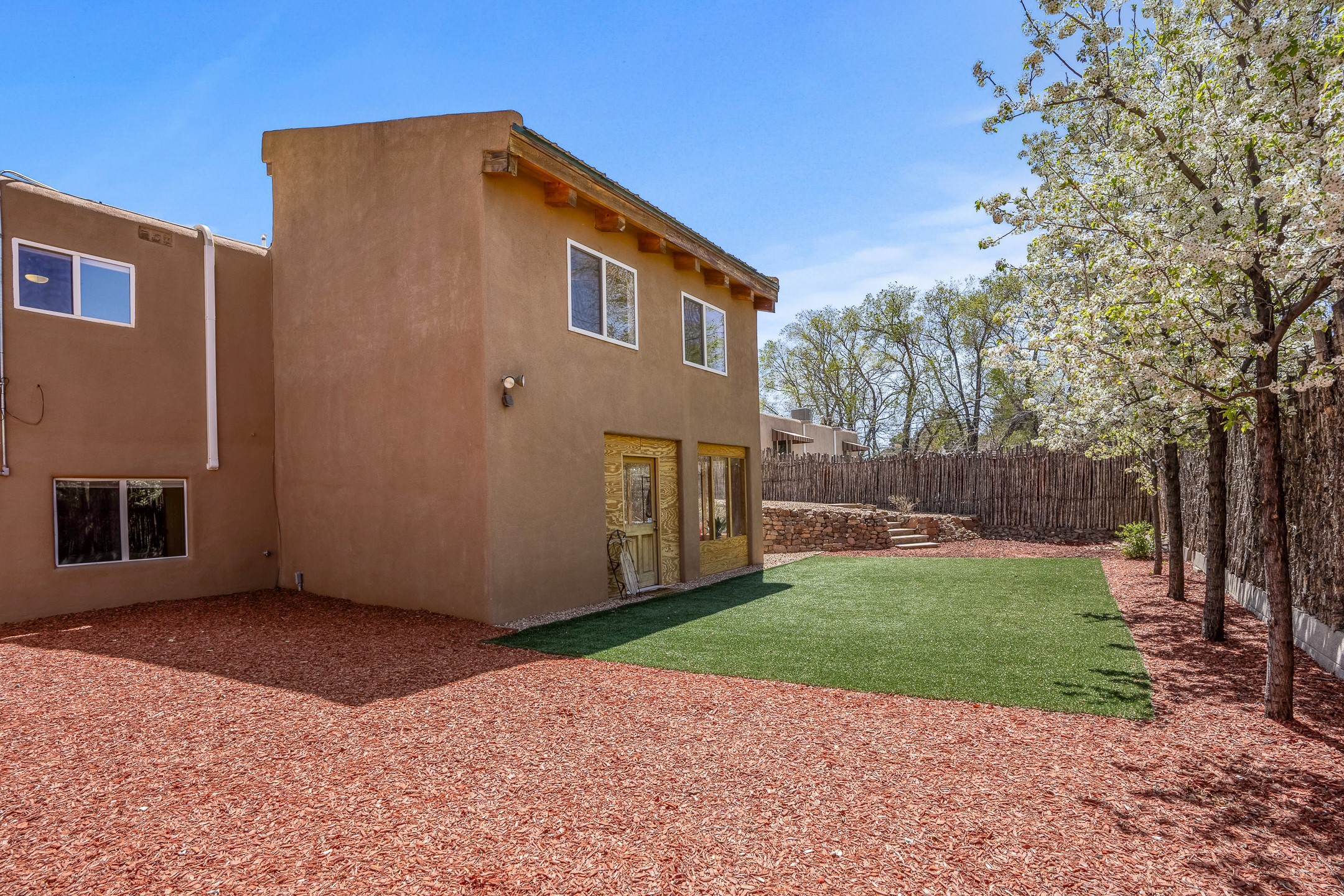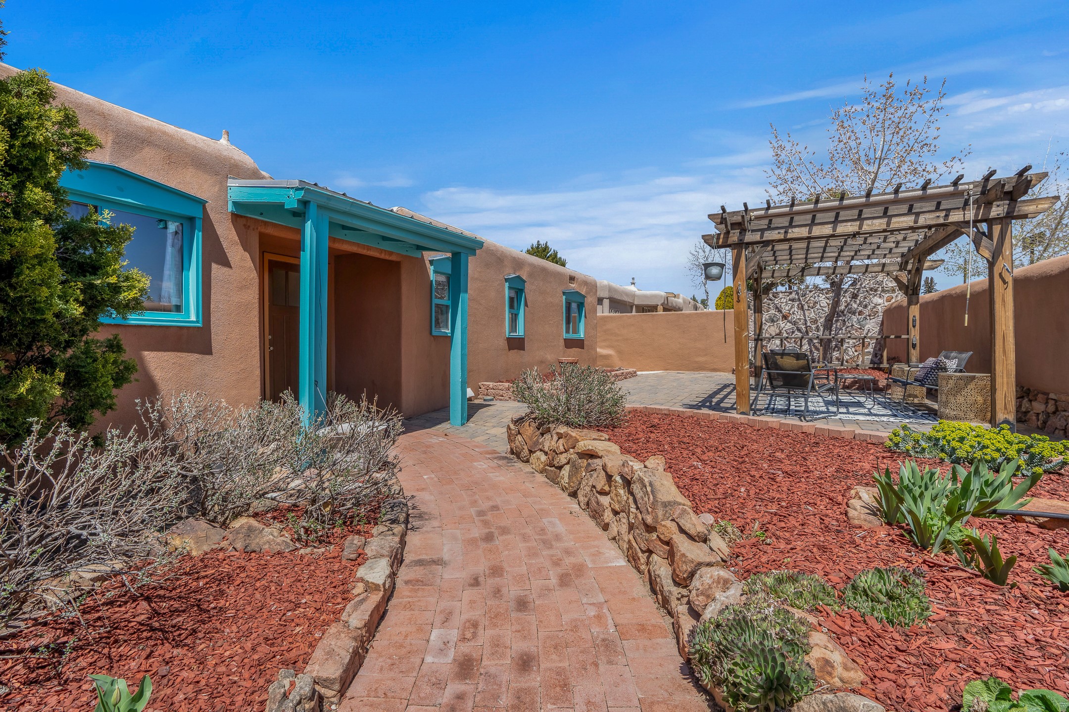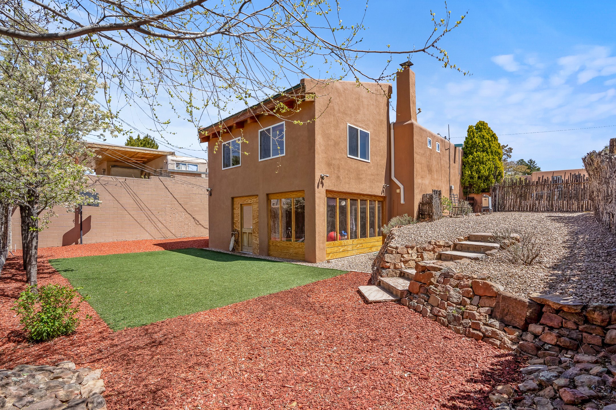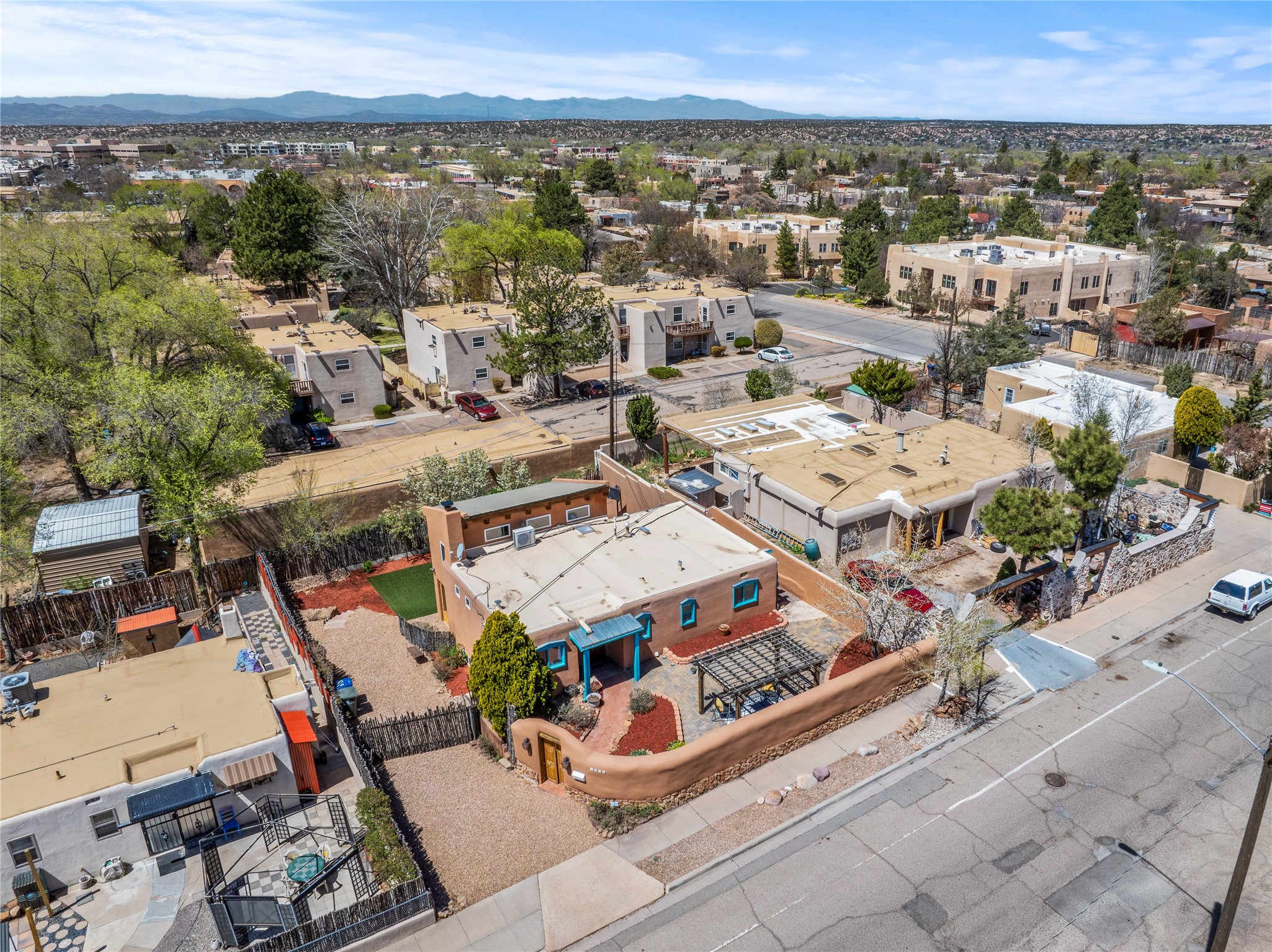 Nestled in the highly desirable South Capitol neighborhood and located within the sought-after Wood Gormley Elementary School District, 1204 Galisteo Street offers the perfect blend of location, versatility, and charm. This spacious 4-bedroom, 4-bathroom home spans approximately 2,300 square feet and is ideally situated within walking distance to both the Plaza and the Railyard. Enter through a lovely East-facing front courtyard featuring a gazebo--an ideal setting for morning coffee or al fresco dining. Inside, the colorful and welcoming kitchen boasts a large island perfect for casual meals and entertaining. The great room, with its cathedral ceiling, fills with natural light and frames expansive views of the stunning Santa Fe sky. The main level also includes two bedrooms and two bathrooms, one with an ensuite bath for added privacy. Downstairs, an interior staircase leads to two generous bedrooms, each with large walk-in closets and private ensuite bathrooms. The south bedroom opens to a screened patio with storage, currently used as a gym--an adaptable space that could serve as a studio, office, or peaceful retreat. The true surprise of this South Capitol gem is the expansive and private backyard--ideal for play, gardening, or simply unwinding. Whether you envision a greenhouse, a lush garden, or a safe space for kids to roam, this backyard offers endless potential. 1204 Galisteo represents incredible value in a prime downtown location--don't miss this opportunity to live in one of Santa Fe's most coveted neighborhoods.