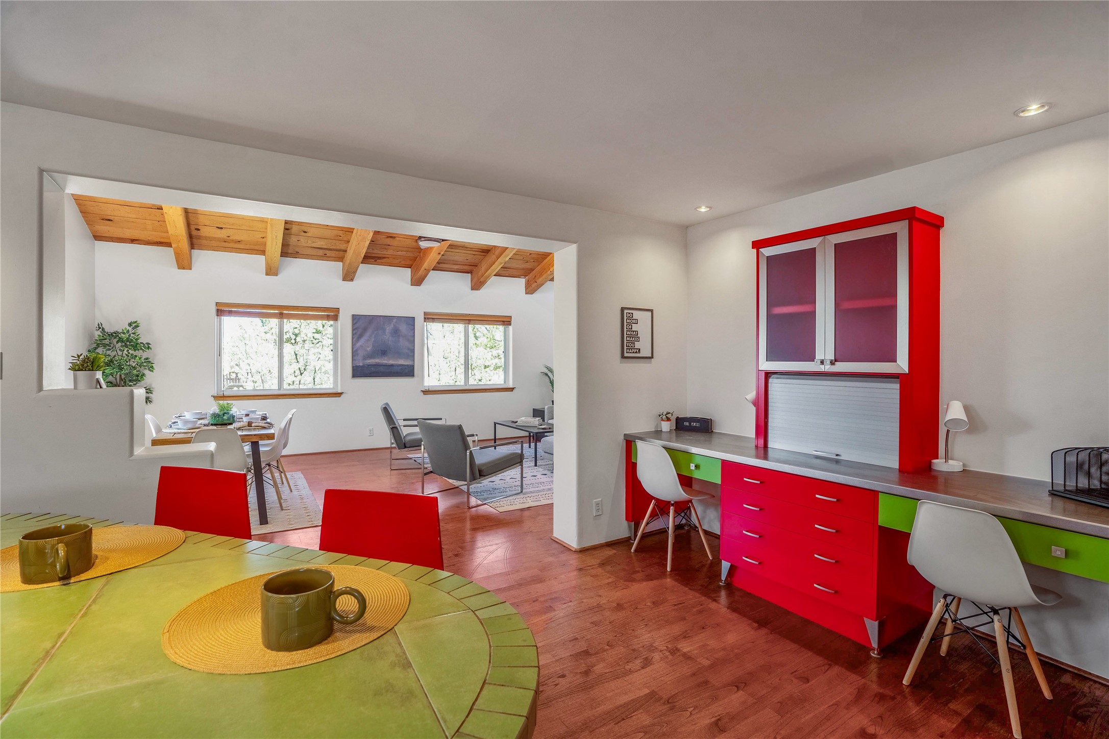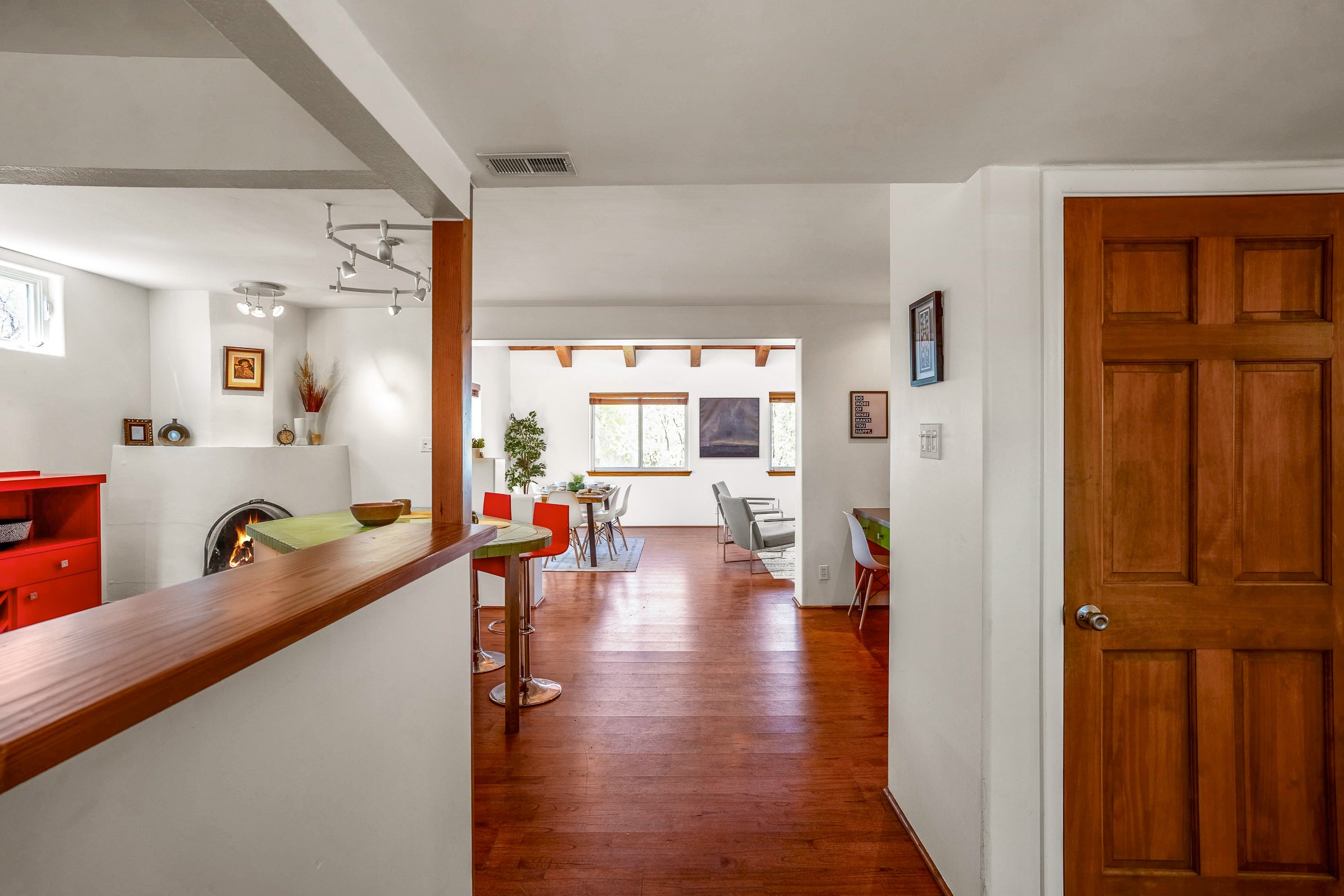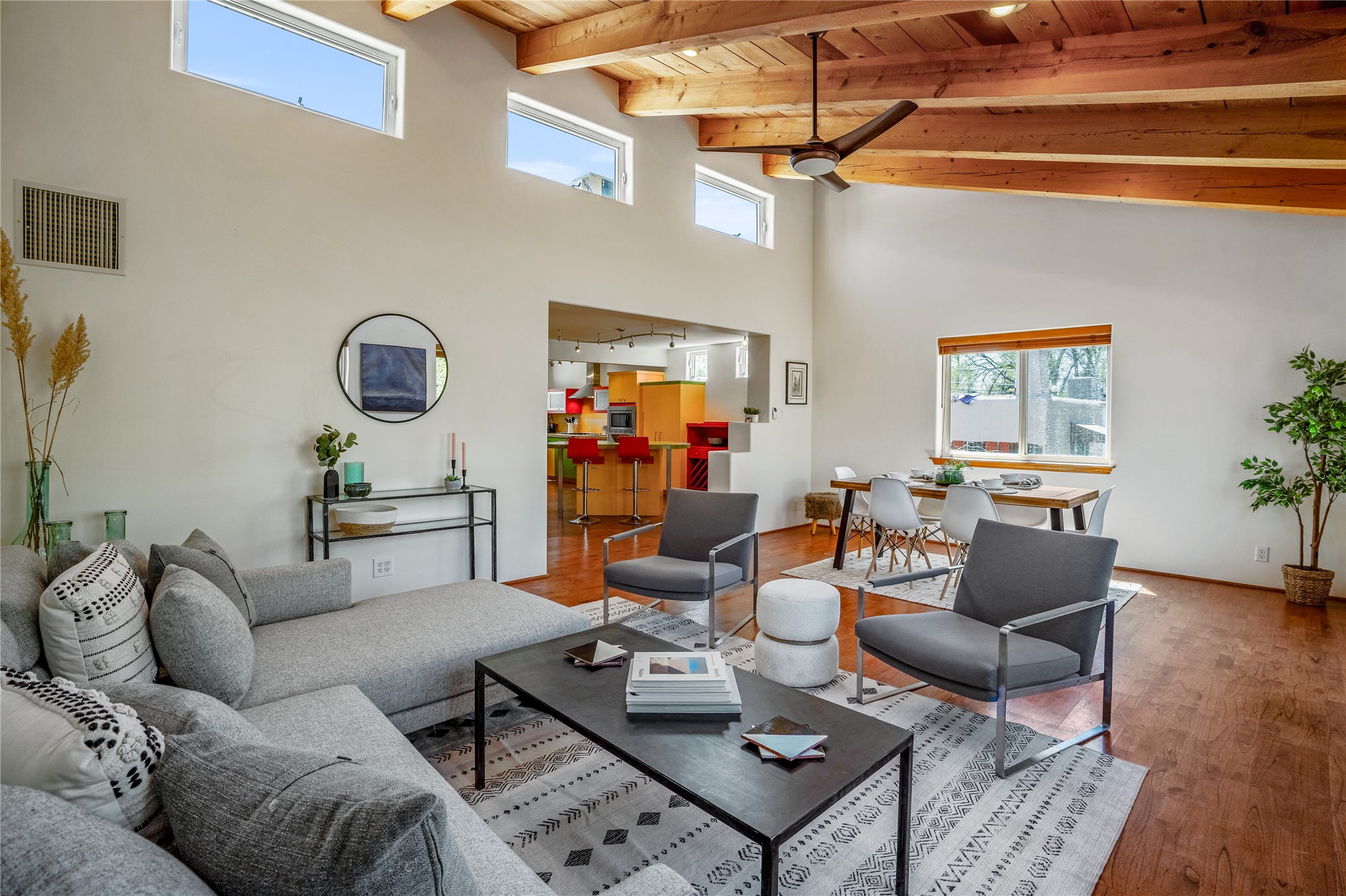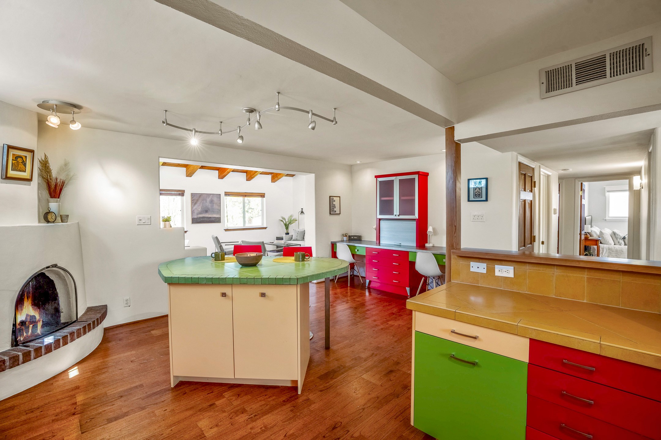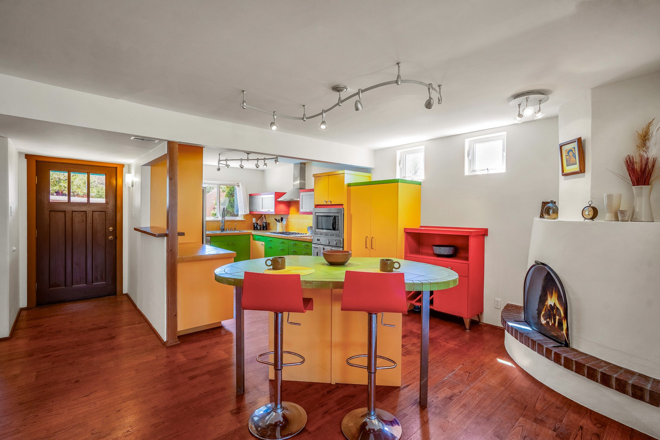 Nestled in the highly desirable South Capitol neighborhood and located within the sought-after Wood Gormley Elementary School District, 1204 Galisteo Street offers the perfect blend of location, versatility, and charm. This spacious 4-bedroom, 4-bathroom home spans approximately 2,300 square feet and is ideally situated within walking distance to both the Plaza and the Railyard. Enter through a lovely East-facing front courtyard featuring a gazebo--an ideal setting for morning coffee or al fresco dining. Inside, the colorful and welcoming kitchen boasts a large island perfect for casual meals and entertaining. The great room, with its cathedral ceiling, fills with natural light and frames expansive views of the stunning Santa Fe sky. The main level also includes two bedrooms and two bathrooms, one with an ensuite bath for added privacy. Downstairs, an interior staircase leads to two generous bedrooms, each with large walk-in closets and private ensuite bathrooms. The south bedroom opens to a screened patio with storage, currently used as a gym--an adaptable space that could serve as a studio, office, or peaceful retreat. The true surprise of this South Capitol gem is the expansive and private backyard--ideal for play, gardening, or simply unwinding. Whether you envision a greenhouse, a lush garden, or a safe space for kids to roam, this backyard offers endless potential. 1204 Galisteo represents incredible value in a prime downtown location--don't miss this opportunity to live in one of Santa Fe's most coveted neighborhoods.