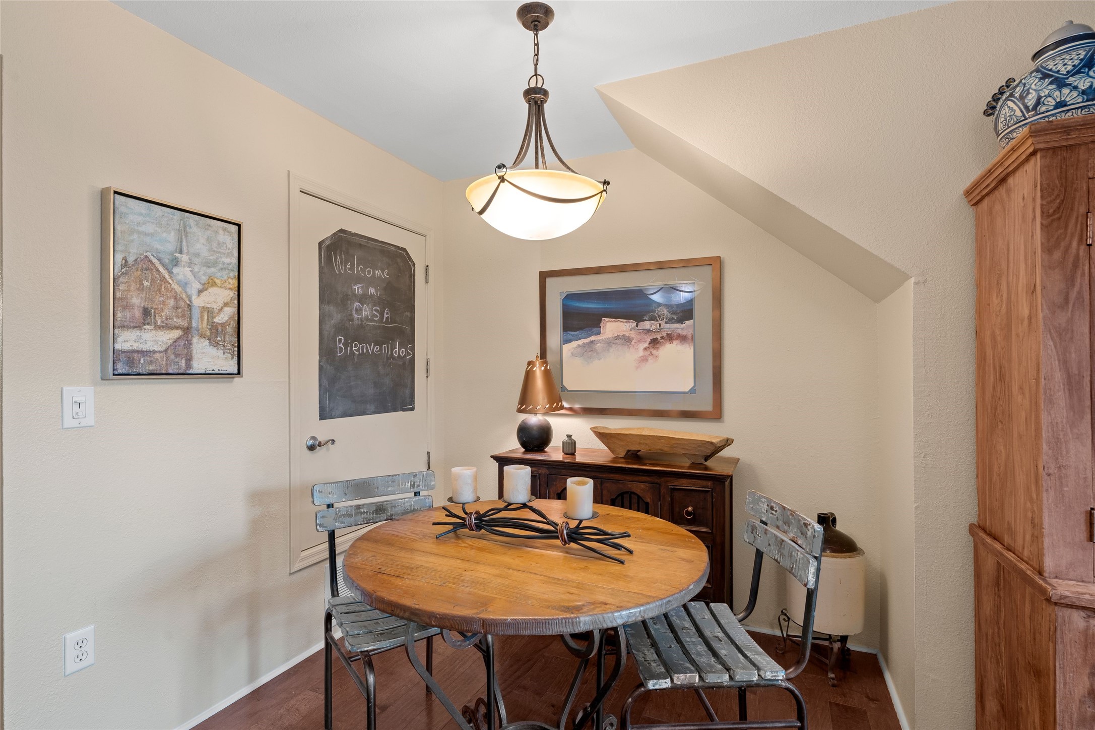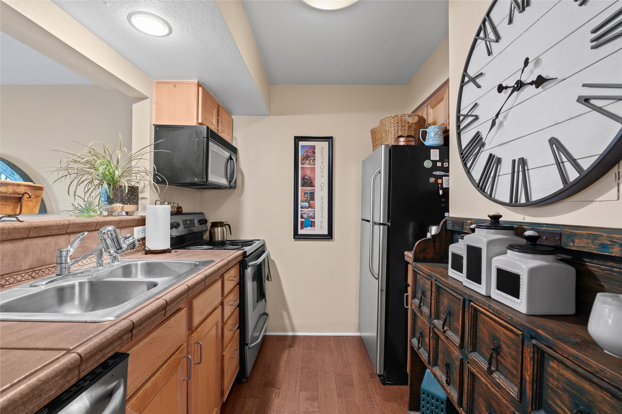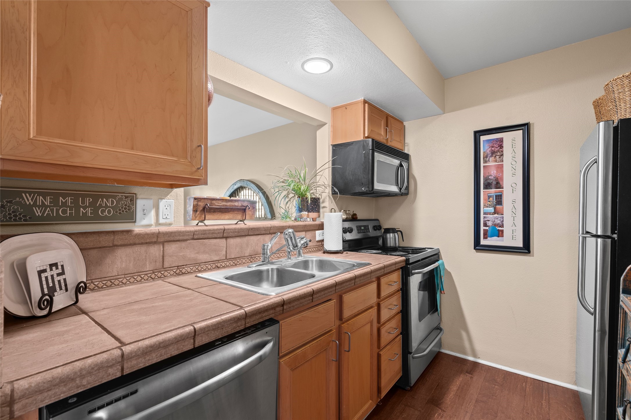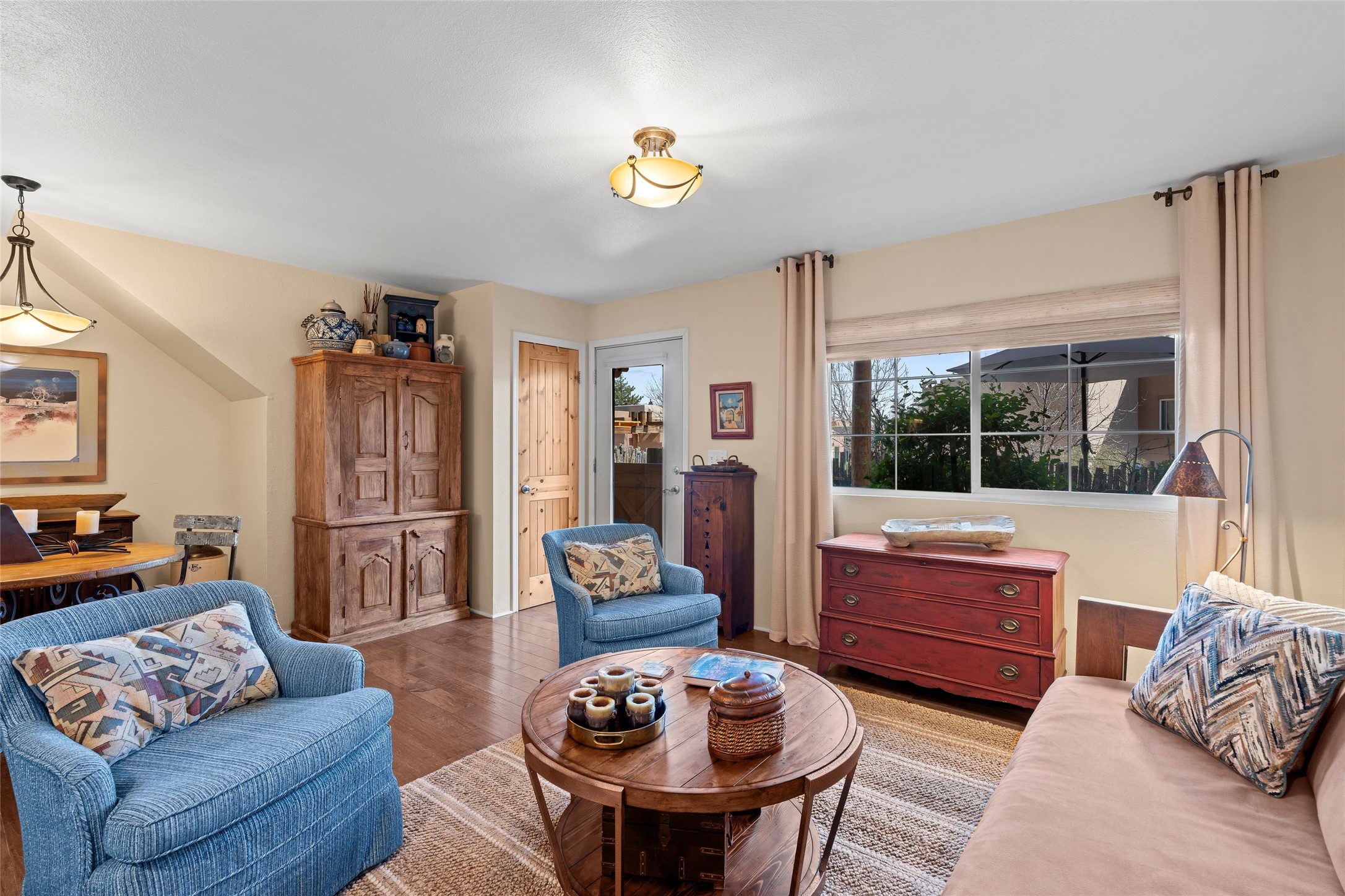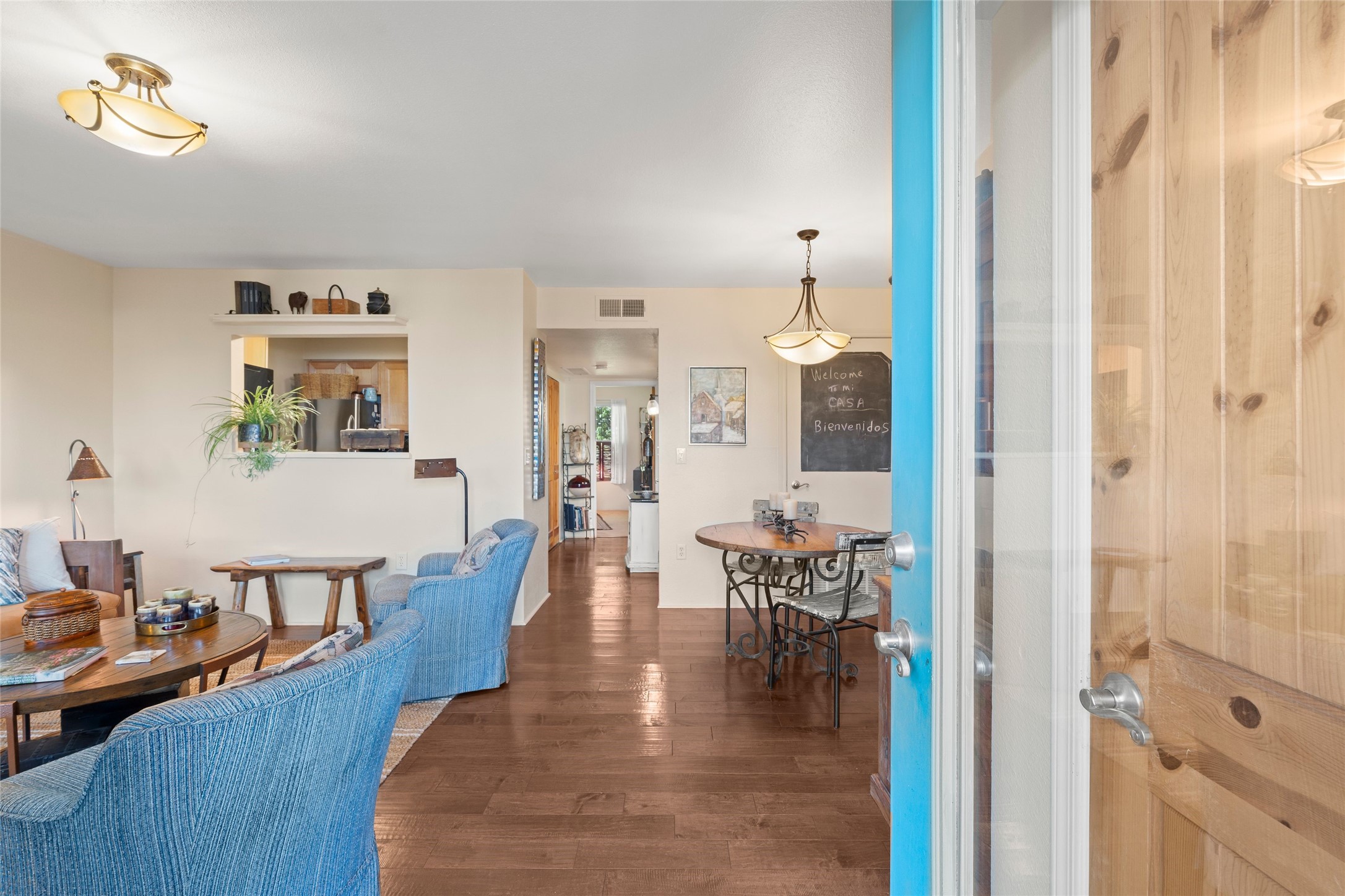 Prime location in Dos Santos. This single level condo on the first floor has a large, inviting front courtyard and opens out to a large common space ramada. This one bedroom, one bath condo with in-unit laundry has charming touches. This center unit is in close proximity to amenities including a seasonal swimming pool, hot tub, fitness area, outdoor grills and clubhouse. The complex also has security gates and a pet area. Convenient location near shopping, schools, medical facilities walking/biking trails.