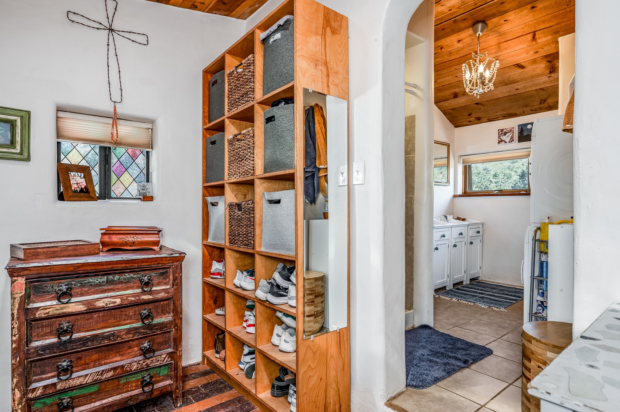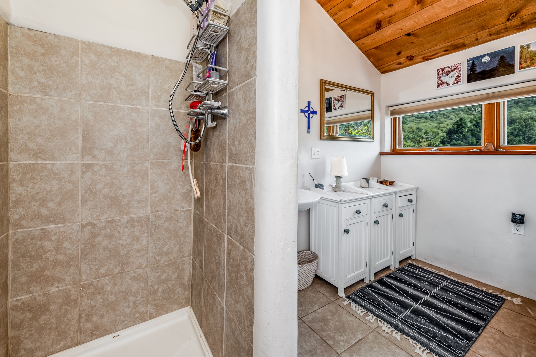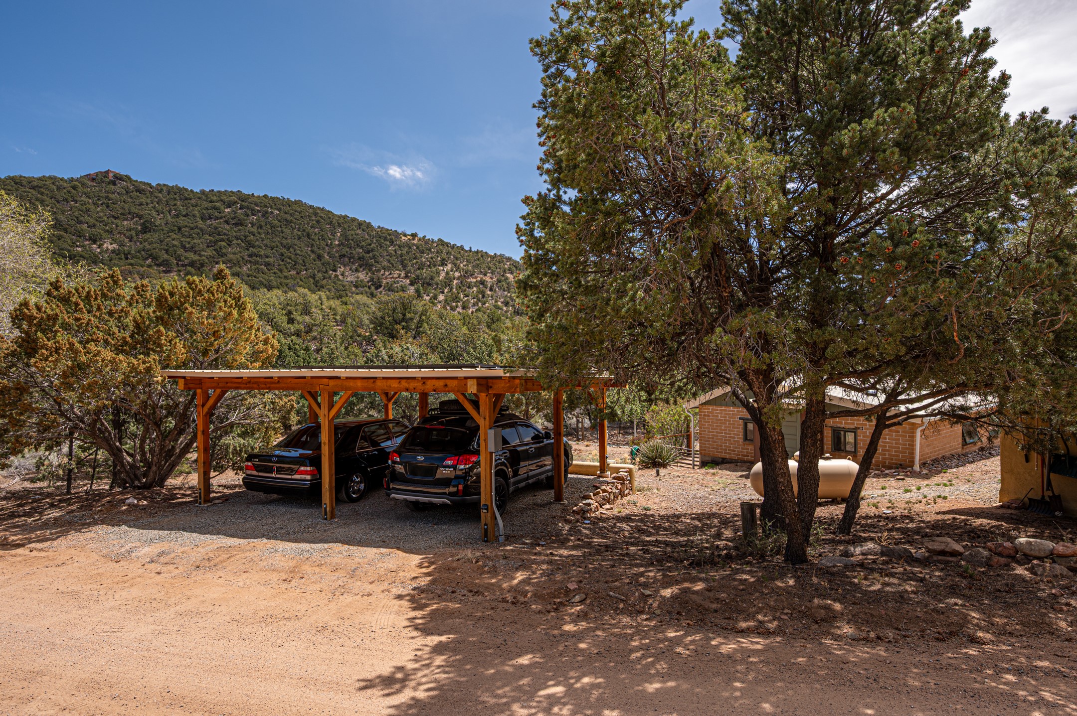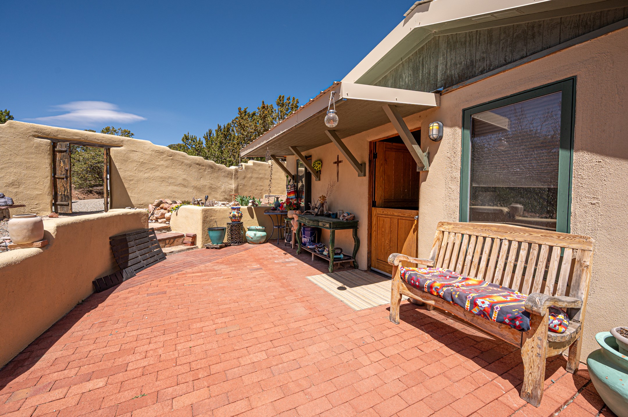 Discover this one-of-a-kind retreat nestled into the foothills of the Sangre de Cristo Mountains. Sited on 5 acres of idyllic high desert terrain off Old Santa Fe Trail, the ber-private property will make you forget the hustle and bustle and embrace open spaces, cool breezes, and endless starry skies. Featuring a +/- 600 sqft main house with gas fireplace in addition to a +/-315 sqft yurt with wood-burning stove, there is abundant space for creative endeavors and guests alike. The open concept kitchen is fully equipped with stainless steel appliances, the living area doubles as a bedroom with en suite walk-in closet and bathroom with a stackable washer and dryer. A spacious wrap-around deck will be the perfect perch for morning coffee and Al-fresco dining. The inclusion of photovoltaic solar panels, a shared well, and cistern for rain water harvesting will appeal to your environmental consciousness. Amenities are a moment away, with Harry's Roadhouse, The Agora Center in Eldorado, athletic facilities at El Gancho, and downtown Santa Fe, just to name a few. Prime for relaxation, enjoying hiking trails from your doorstep, homesteading with bountiful fruit trees, and more, this home is more than just a place to stay--it's a place to recharge, refresh, and reignite your spirit. **See broker remarks for more information. Details as provided by Sellers.