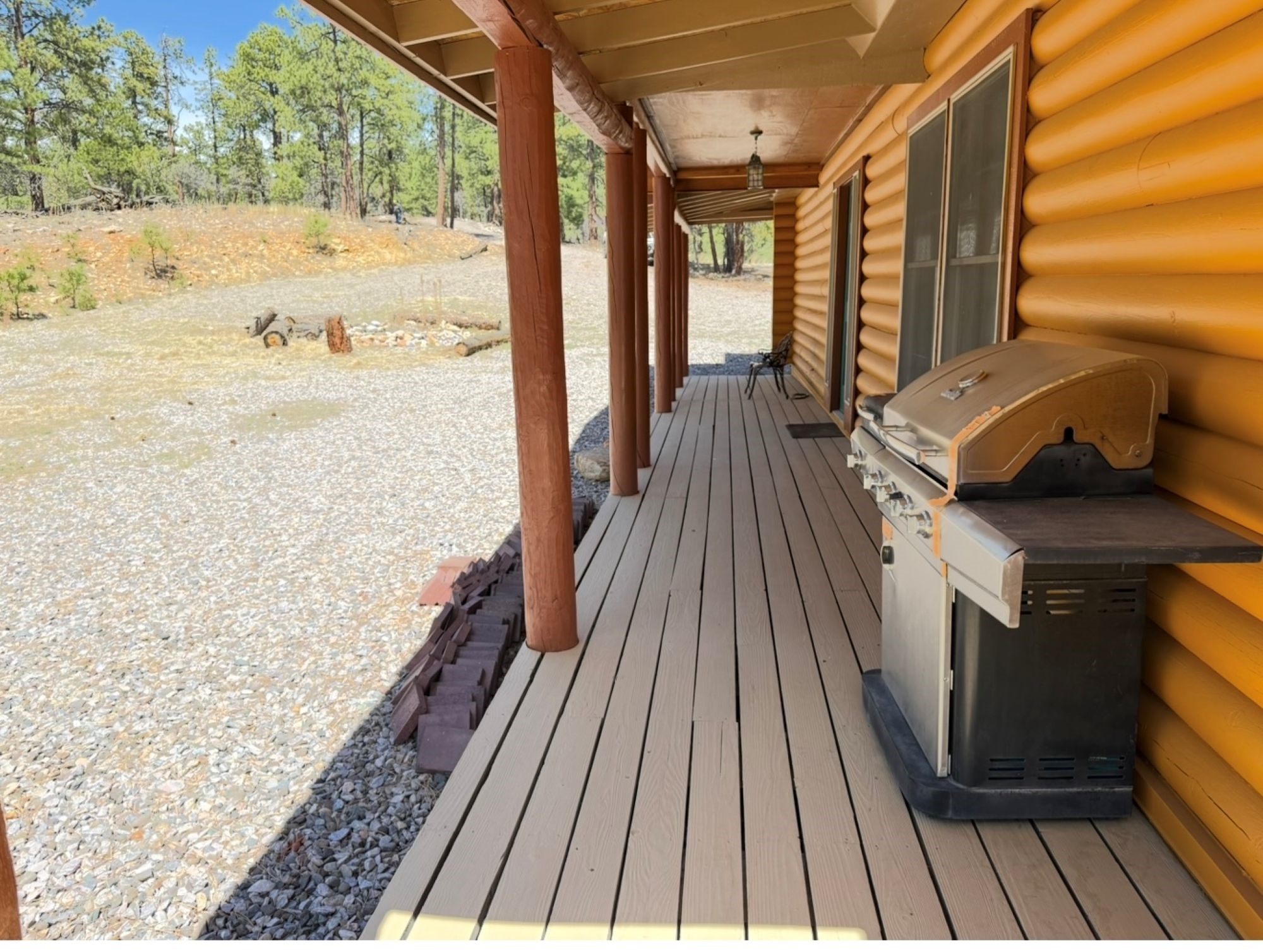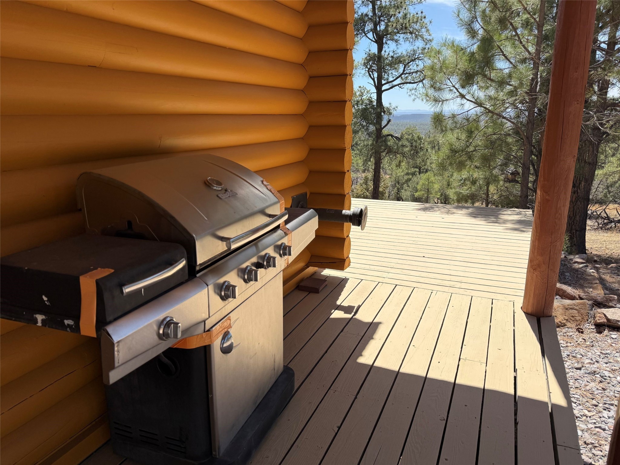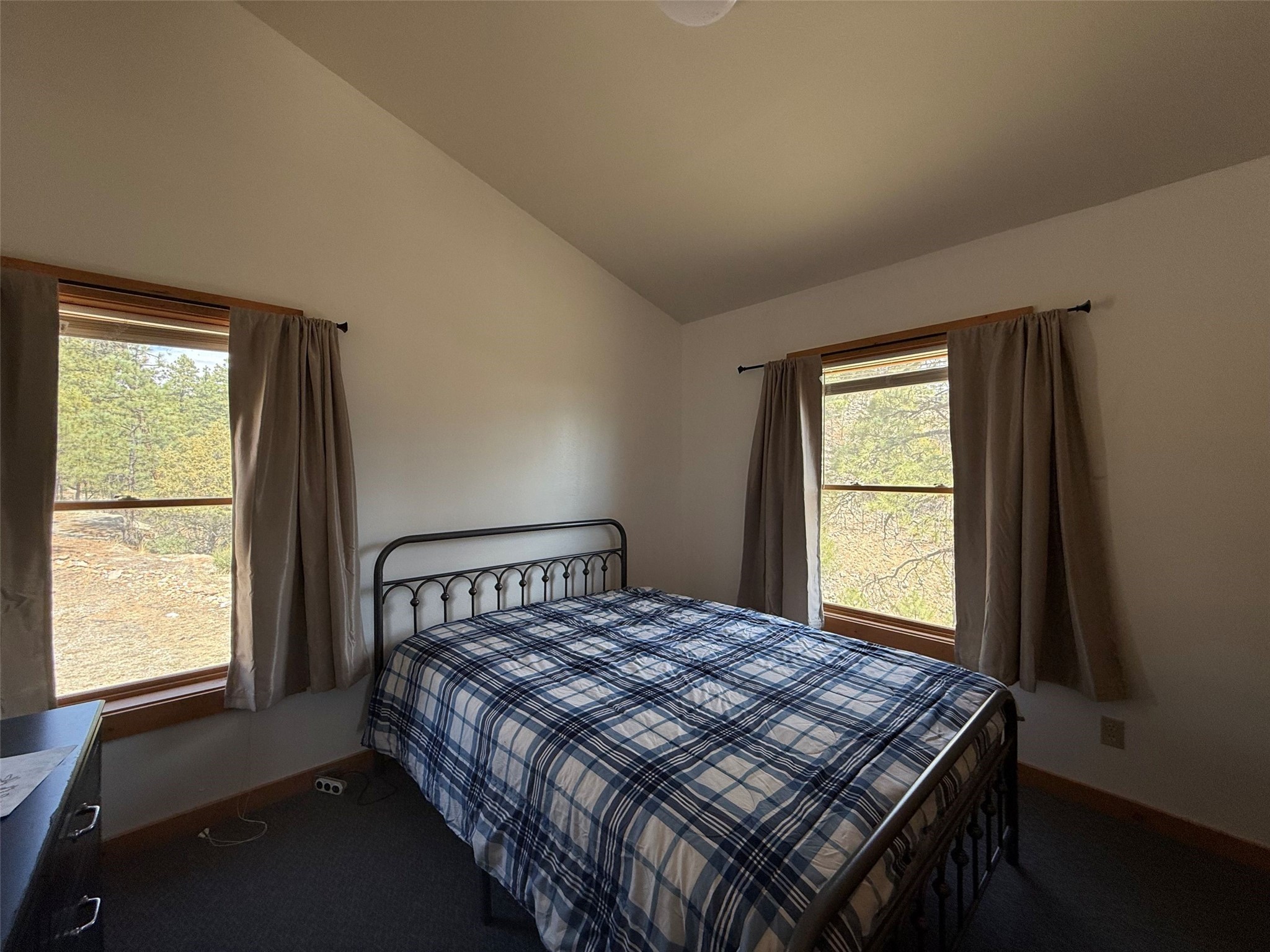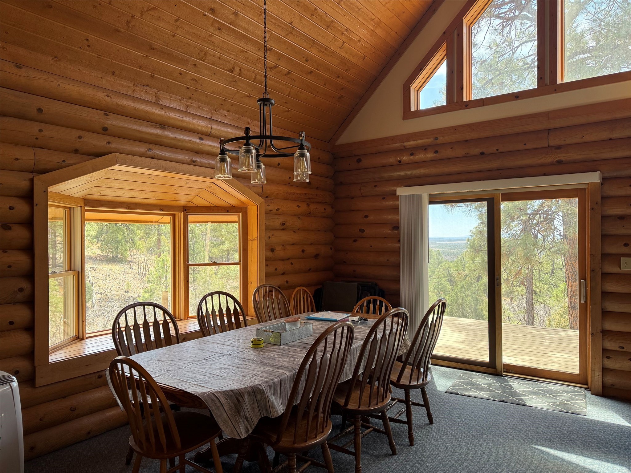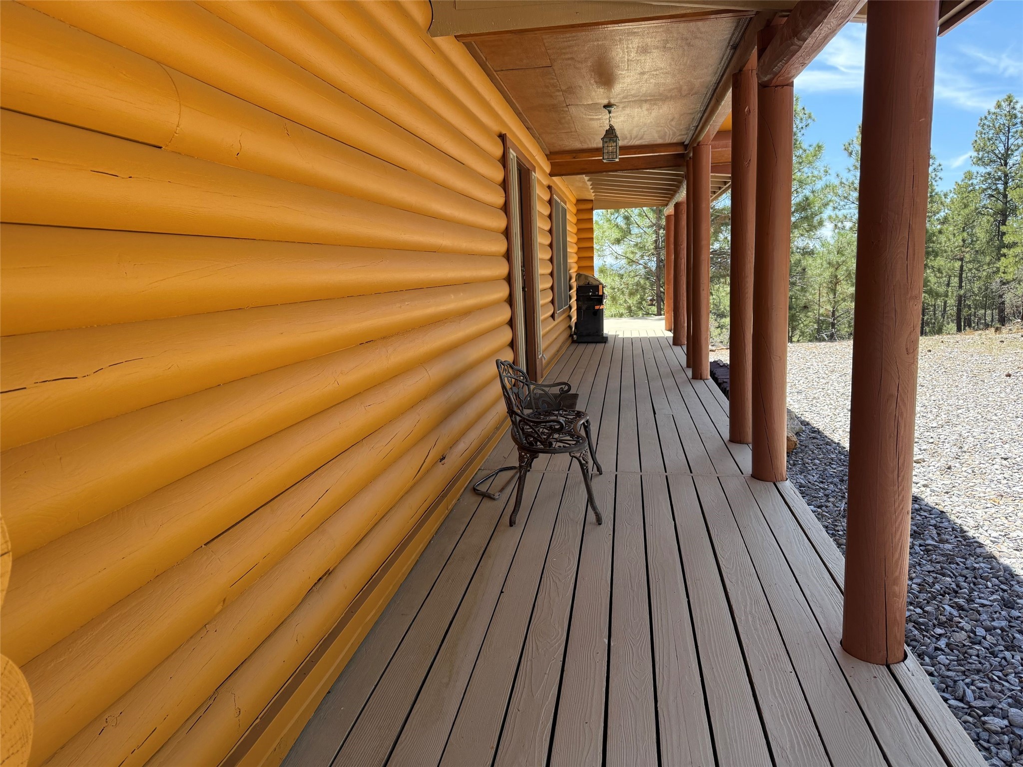 Located in Laguna Vista, this property offers spectacular views! On approximately 5 acres, this comfortable two story log cabin is nicely secluded, mostly level with plenty of trees. Exterior of cabin was recently painted. Open and airy with plenty of natural light, the kitchen is on the first level along with the living room, main Suite and bath. The two guest bedrooms are upstairs as well as bathroom and loft that can be used for additional sleeping, arts and craft space or a reading room. Furniture is negotiable; mattress are barely used, if at all. The large deck is great for enjoying company, bird watching and just relaxing. Hunting, hiking and boating are popular in the Chama and Tierra Amarilla Valley. A seasonal creek runs through the back yard and for those fishing enthusiasts there is access to N. side of Heron Lake in the Subdivision. Plenty of parking for your RV. Escape the city life for Northern New Mexico's recreation and fun!