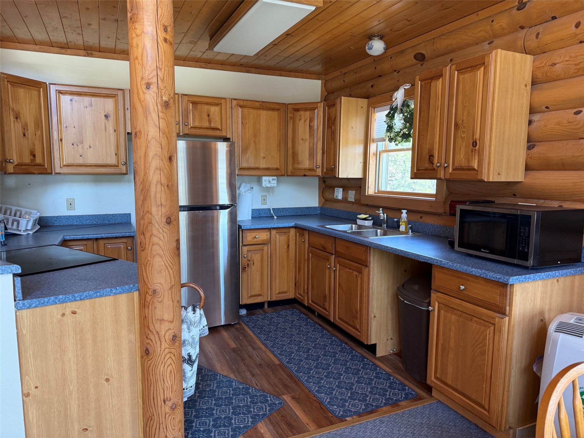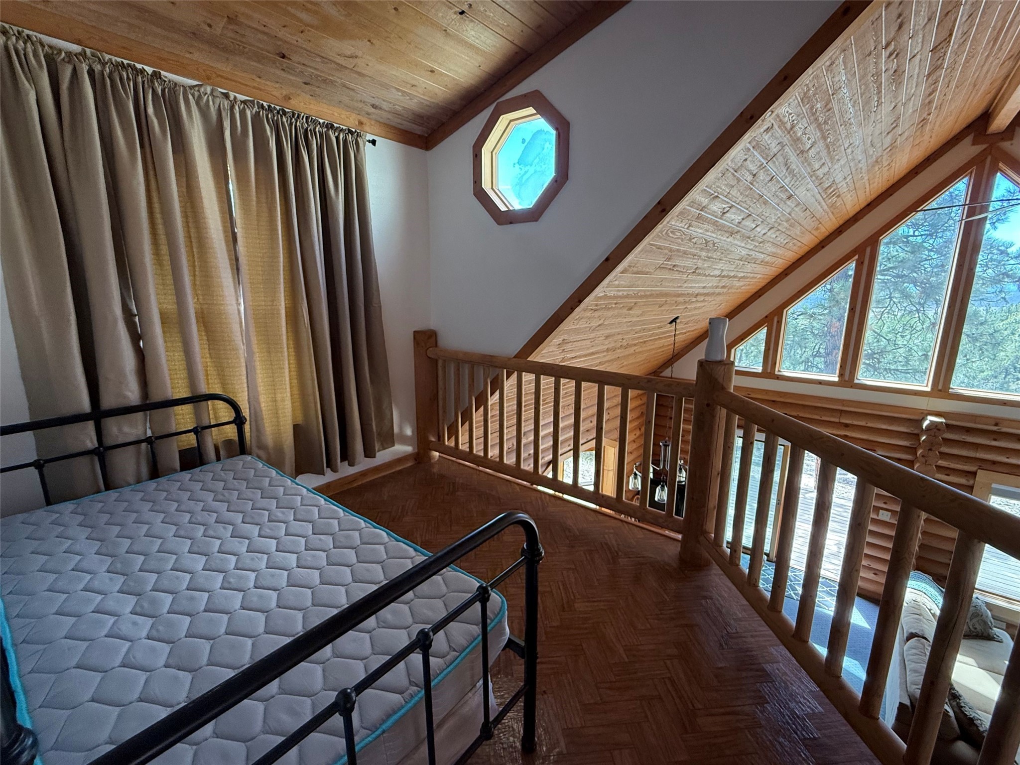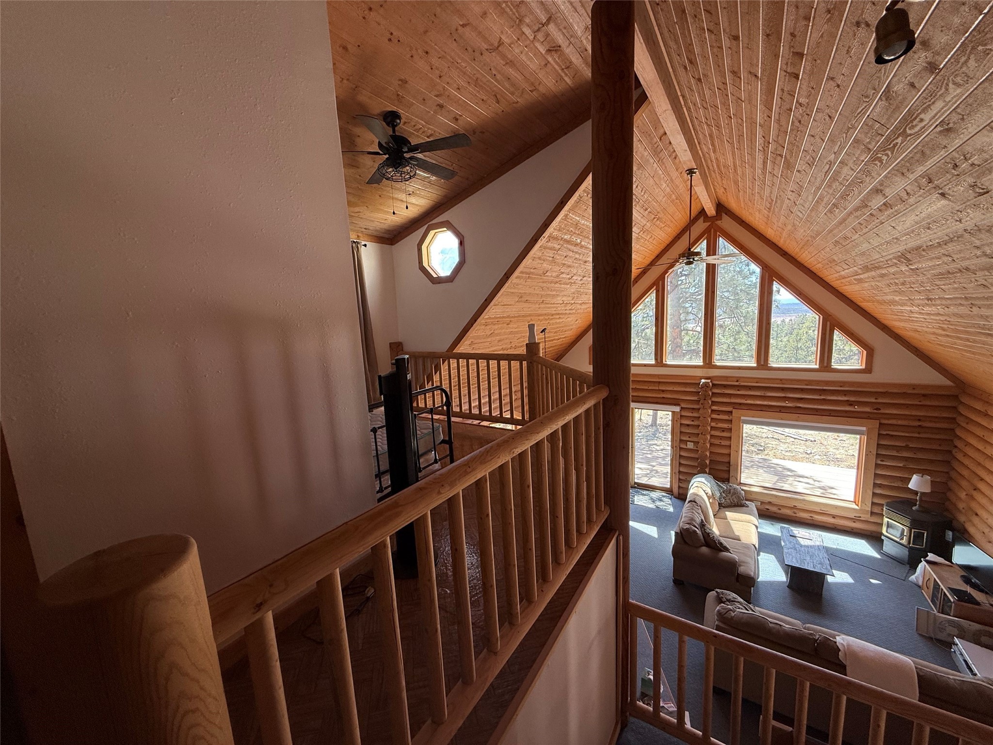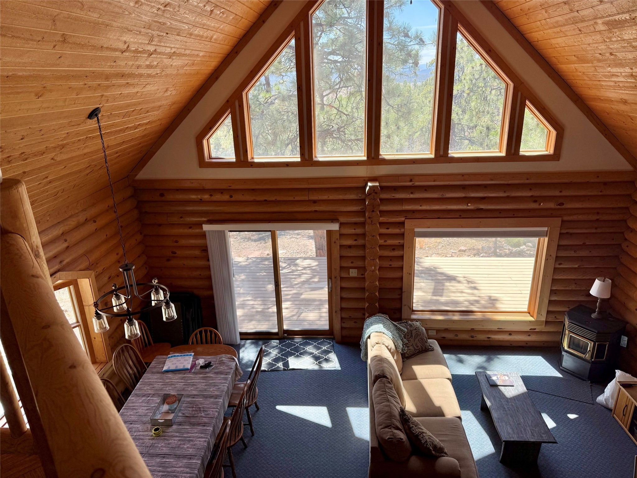 Located in Laguna Vista, this property offers spectacular views! On approximately 5 acres, this comfortable two story log cabin is nicely secluded, mostly level with plenty of trees. Exterior of cabin was recently painted. Open and airy with plenty of natural light, the kitchen is on the first level along with the living room, main Suite and bath. The two guest bedrooms are upstairs as well as bathroom and loft that can be used for additional sleeping, arts and craft space or a reading room. Furniture is negotiable; mattress are barely used, if at all. The large deck is great for enjoying company, bird watching and just relaxing. Hunting, hiking and boating are popular in the Chama and Tierra Amarilla Valley. A seasonal creek runs through the back yard and for those fishing enthusiasts there is access to N. side of Heron Lake in the Subdivision. Plenty of parking for your RV. Escape the city life for Northern New Mexico's recreation and fun!