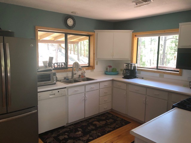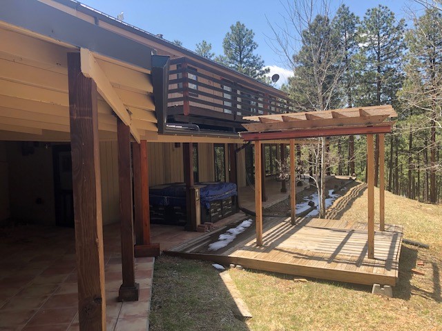 Spectacular country mountain retreat in Pendaries Village. The home is two stories with decks on three sides. Upstairs is ground level in the front, and includes 2 bedrooms and one full bath. Downstairs opens at ground level in the back of the house and has 3 bedrooms and 2.5 baths. Back deck has a hot tub which looks through tall Ponderosa. Original 2-car garage is detached from house but from the downstairs through covered porch. It has a concrete floor, 2 murphy beds, and half bath. A newer 2-car garage is a little downhill from the house, and has two large garage doors, and a small one which would accommodate UTVs and motorcycles. All this on 5.179 forested acres. There is a 4.62 kilowatt solar system and a 22 kilowatt Generac generator, which backs up the whole house and has an automatic transfer switch. Live in it full time and use it for a family retreat.