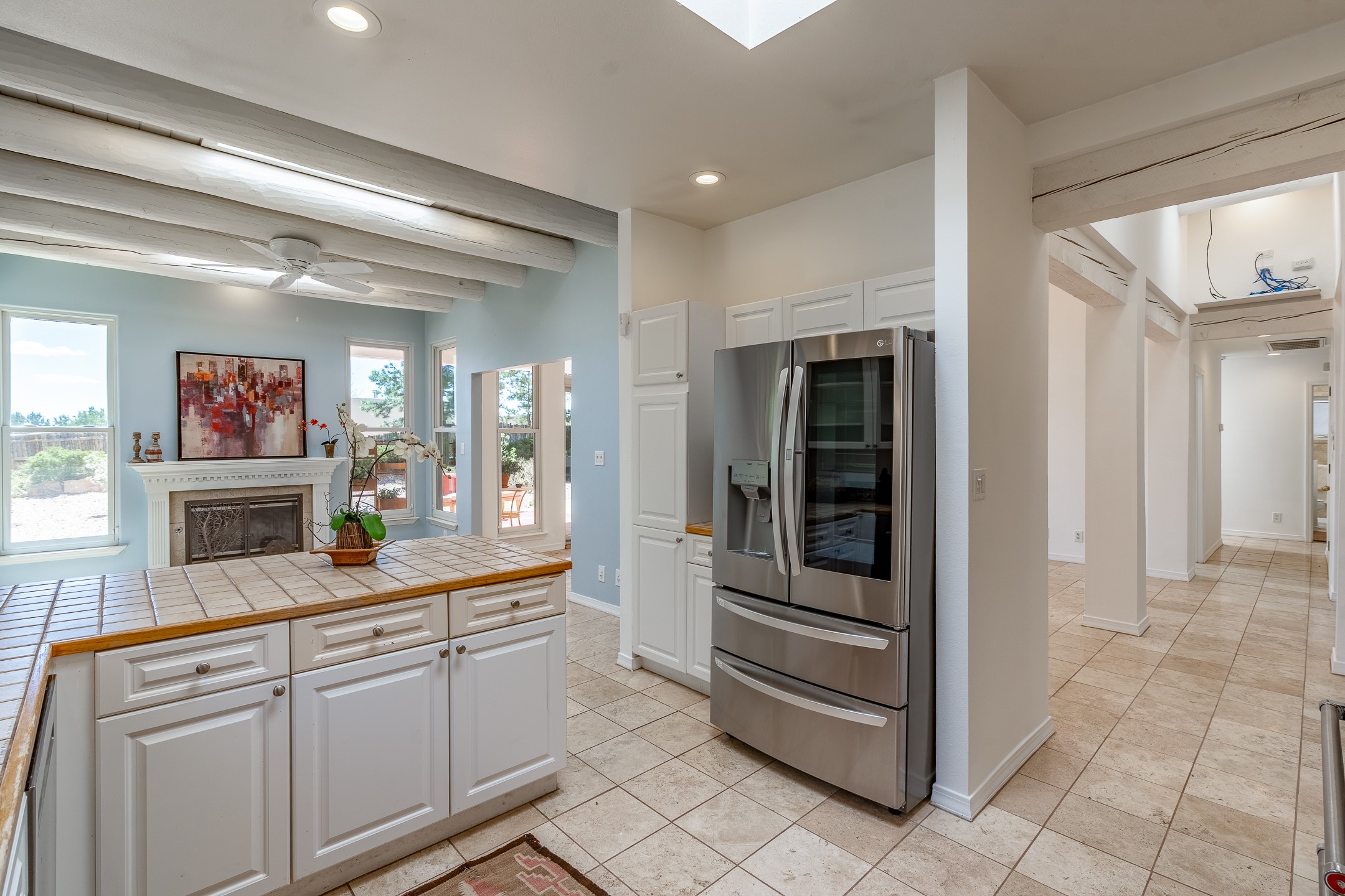Southwestern Elegance in Nava AdeWelcome to this beautifully crafted 3-bedroom + flex room, 2.5-bath home located in the desirable Nava Ade community--known for its thoughtful design and exceptional lifestyle amenities that was once a model home. With over 2,000 square feet of living space, this Pueblo/Territorial-style residence blends timeless Southwestern character with modern updates and eco-conscious features.Inside, you'll find high ceilings with wood beams, two cozy fireplaces, and two spacious living areas that offer warmth and versatility. Elegant travertine stone and wood flooring flow throughout, adding texture and sophistication. The flex room is ideal for a home office, studio, or guest space, while the formal dining area and kitchen--with newer stainless steel appliances--make everyday living and entertaining a breeze.Situated on an extra-large lot with open spaces behind and walking paths on one side, the home is surrounded by beautifully landscaped xeriscape gardens with drip irrigation--perfectly suited to Santa Fe's climate. The freestanding two-car garage provides added convenience and flexibility. Additional upgrades include newer windows and patio doors (2018), a recently replaced roof system, and a fully owned solar energy system for enhanced energy efficiency.Nava Ade offers parks, walking paths, a community pool, and a clubhouse with fitness equipment--creating a vibrant, connected neighborhood you'll love coming home to.Experience the perfect balance of comfort, style, and sustainability in one of Santa Fe's most sought-after communities.