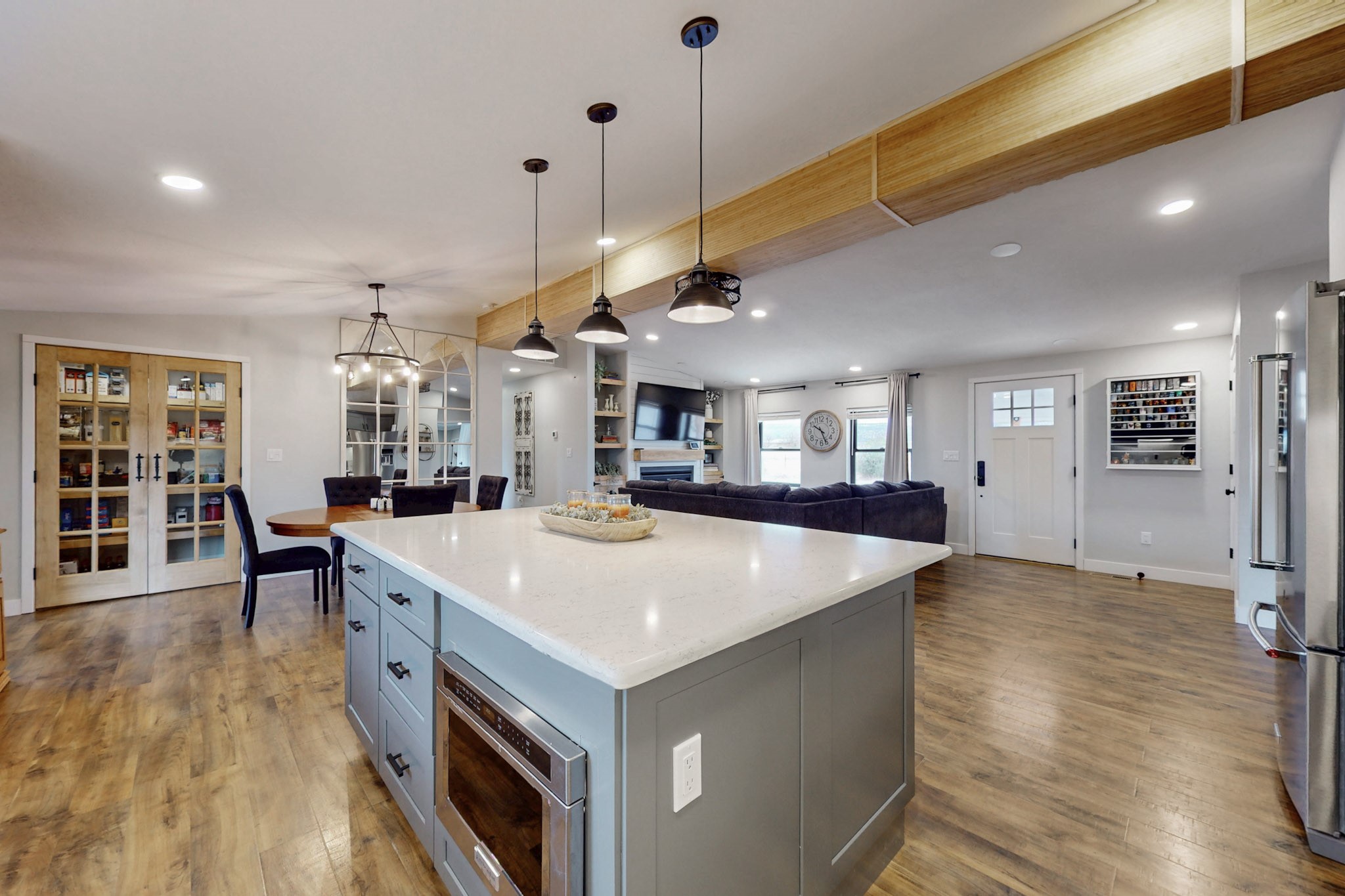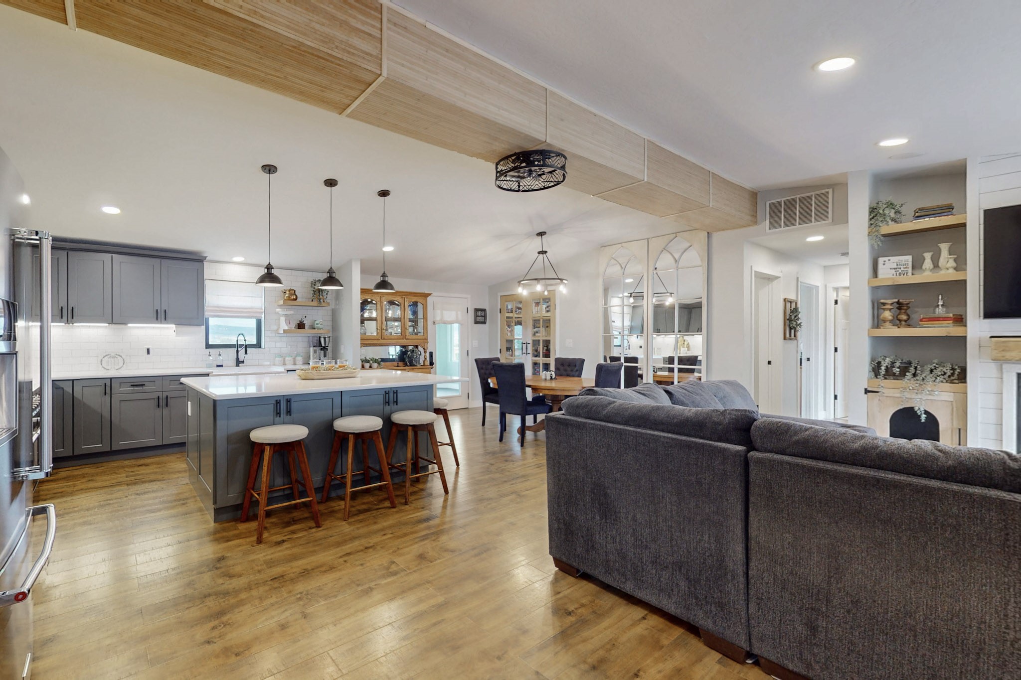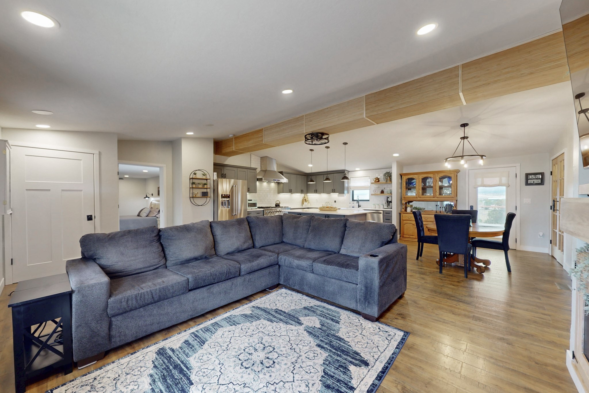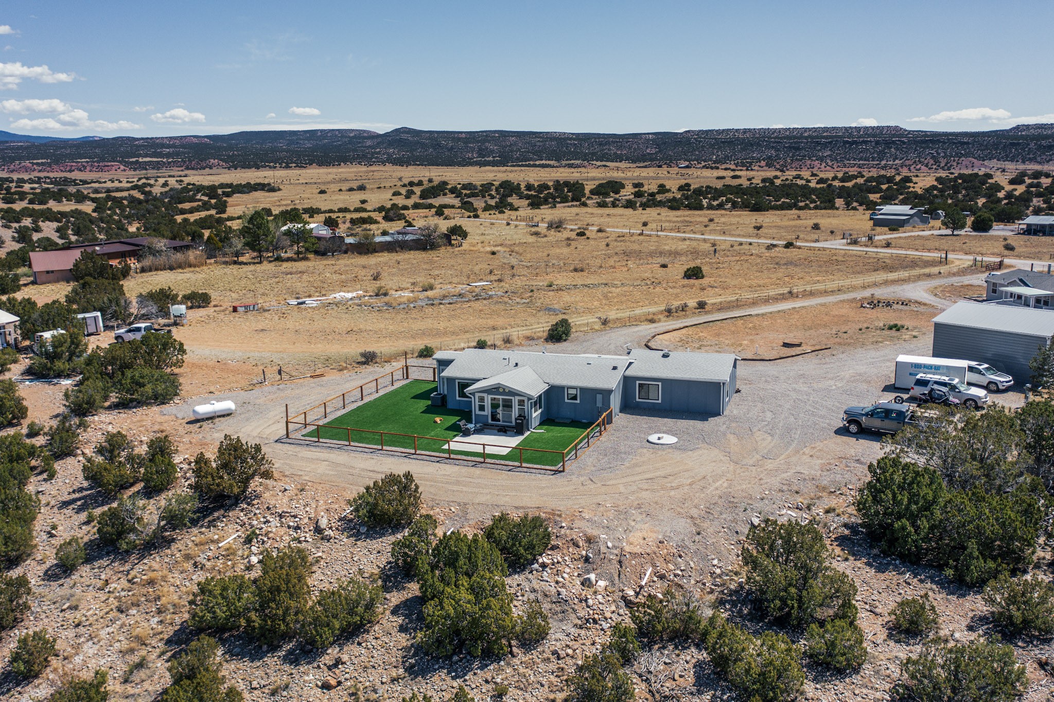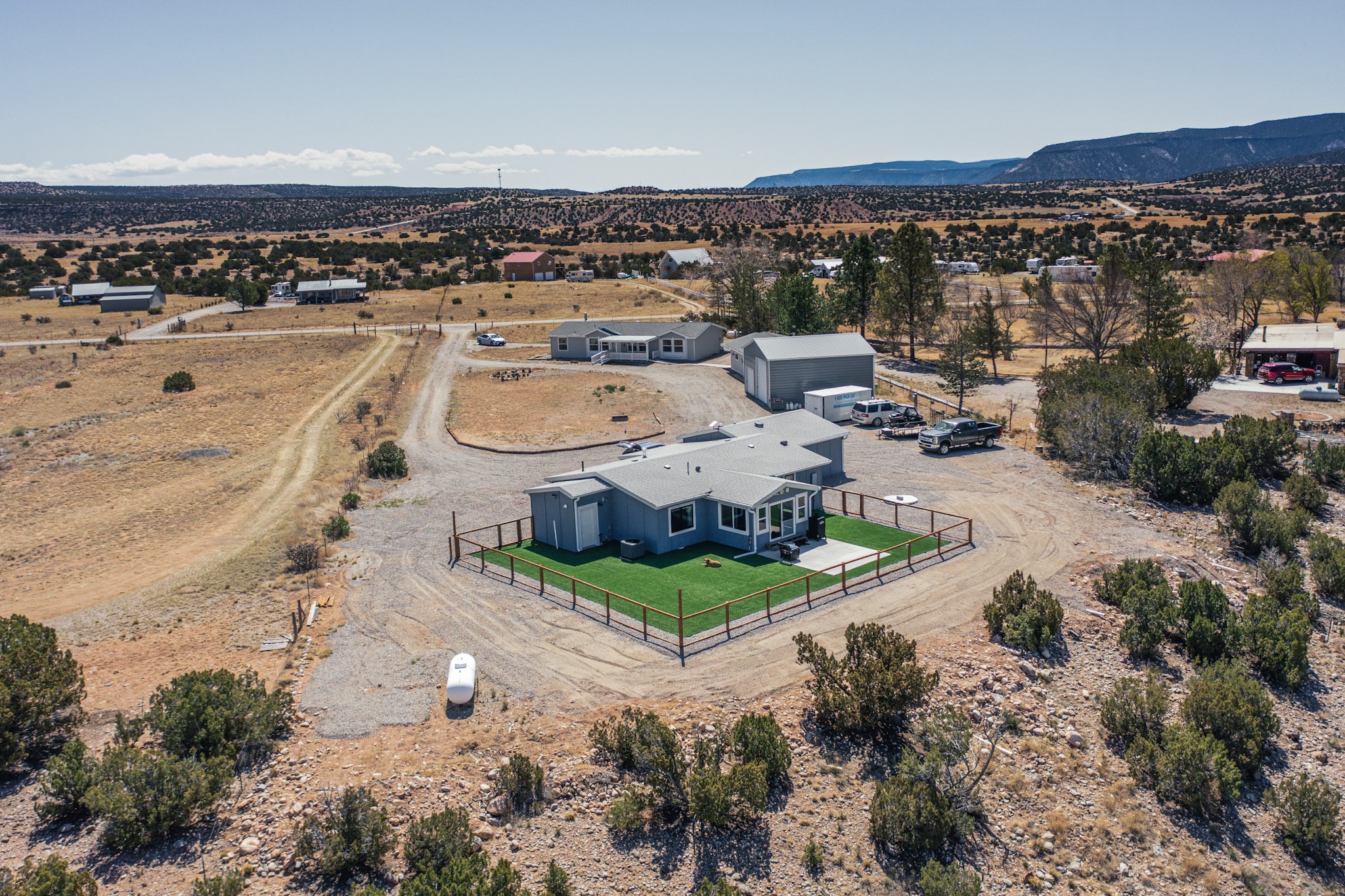 Imagine living and raising your family on Abiquiu Lake. The gated Subdivision renders easy access off HWY 84 on a paved road, and a generously graveled subdivision road. Never have to worry about access to the lake or your home. This home, that was once a part of a family compound, has all the bells and whistles one would want in a home. An incredible open concept chef's kitchen, with spectacular appliances. Quartz countertops and lighting add to the luxury. The owner suite is private and sensational, one would have to see it for oneself. Included in this suite is a home office space but could easily be converted into a personal place to read, write, sing, or watch television. The new owner can decide the use of this space. Then there are the ever changing views, regardless of the time day, there is always a new view. Whether it is early morning, midday, or evening, regardless of the time, the outside views are always stunning. The outside living space has a clear view of Abiquiu Lake and the renowned Ghost Ranch landscapes. If it is too cold outside, this home has enclosed space that could be utilized as an indoor patio, providing the same views that are offered outside. This is a unique subdivision, with an easy access boat ramp, for subdivision owners. Homes like this, with all it has to offer, rarely come on the market. You do not want to miss this opportunity to own this home and land, and all it has available. Nearby is 94A, PVT DR 1770 offering a home that also was once part of the same, family compound. The compound consisted of two dwellings, both are being sold separately. Whether you want one home or two homes, it is important you move quickly, so you can have a choice. Make sure you look at the Video Links.