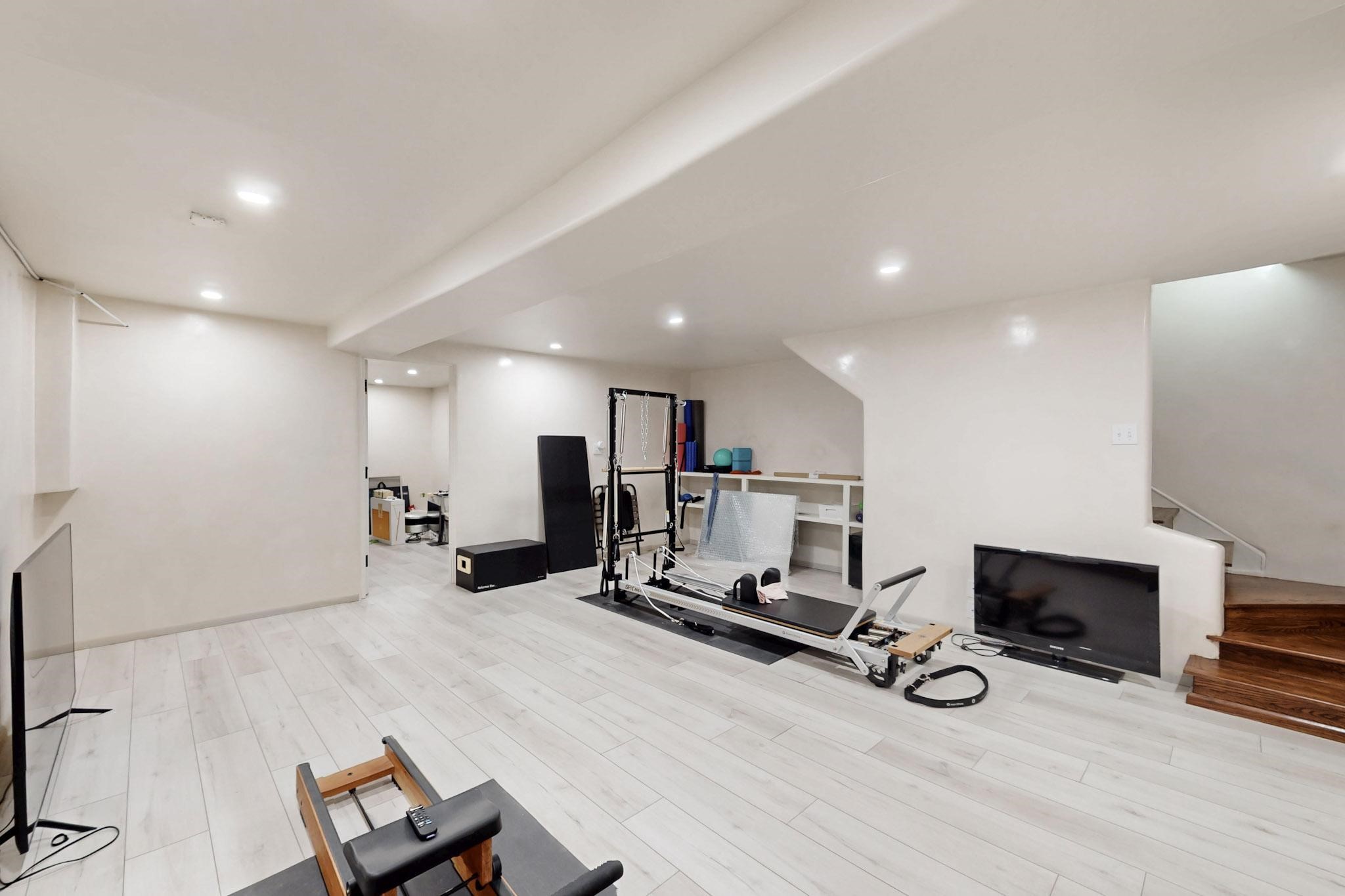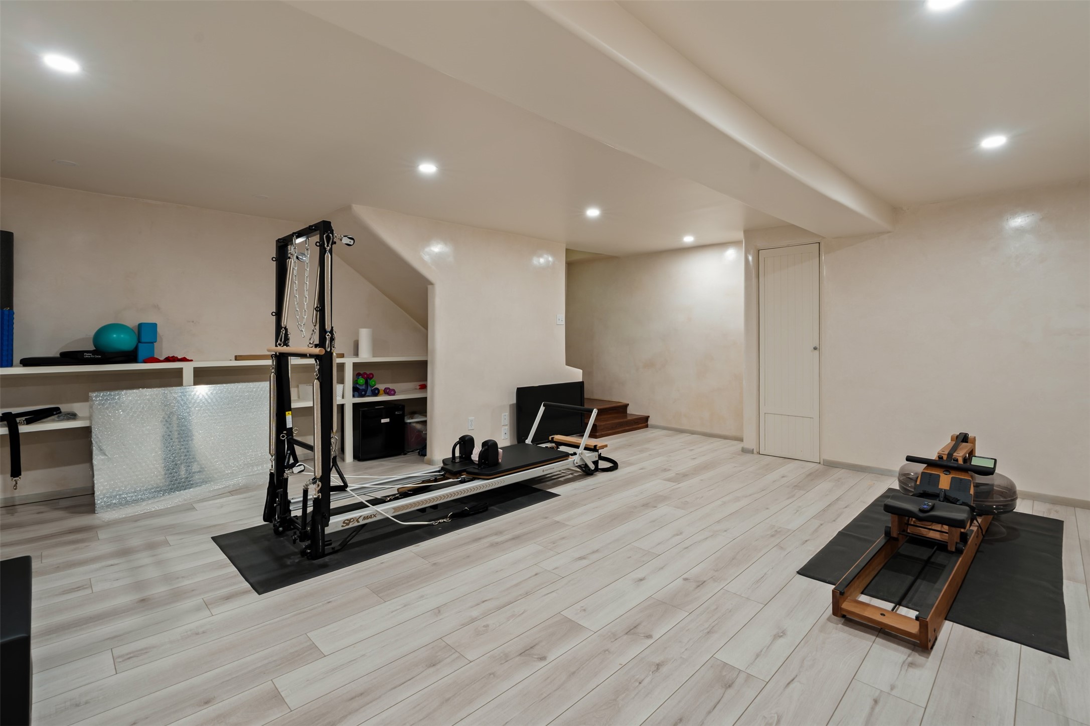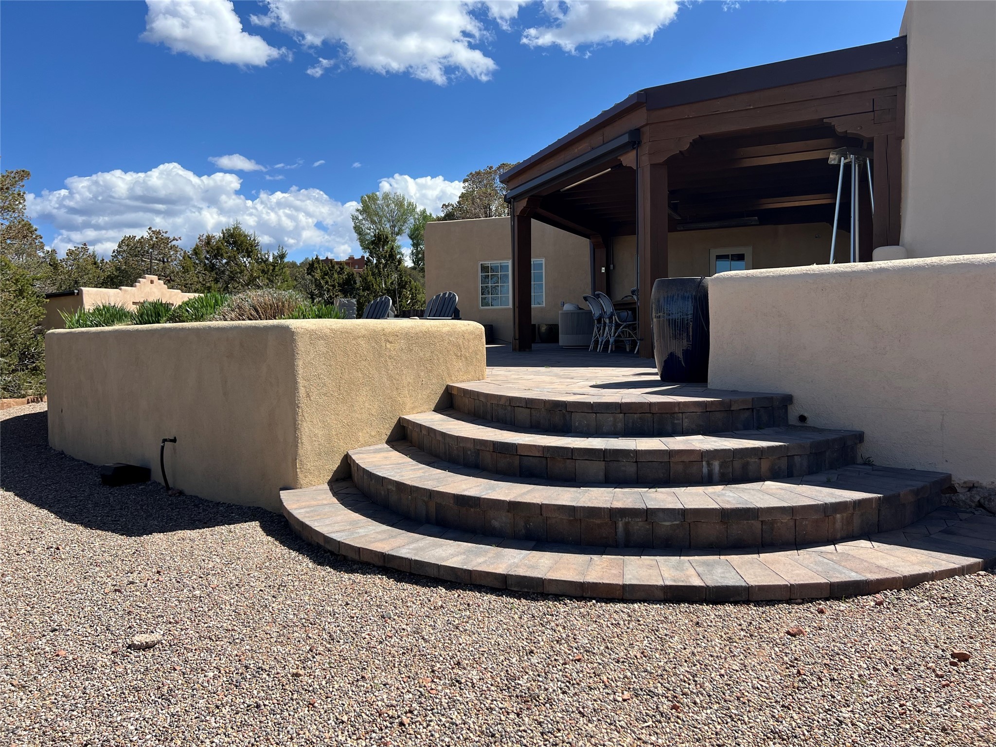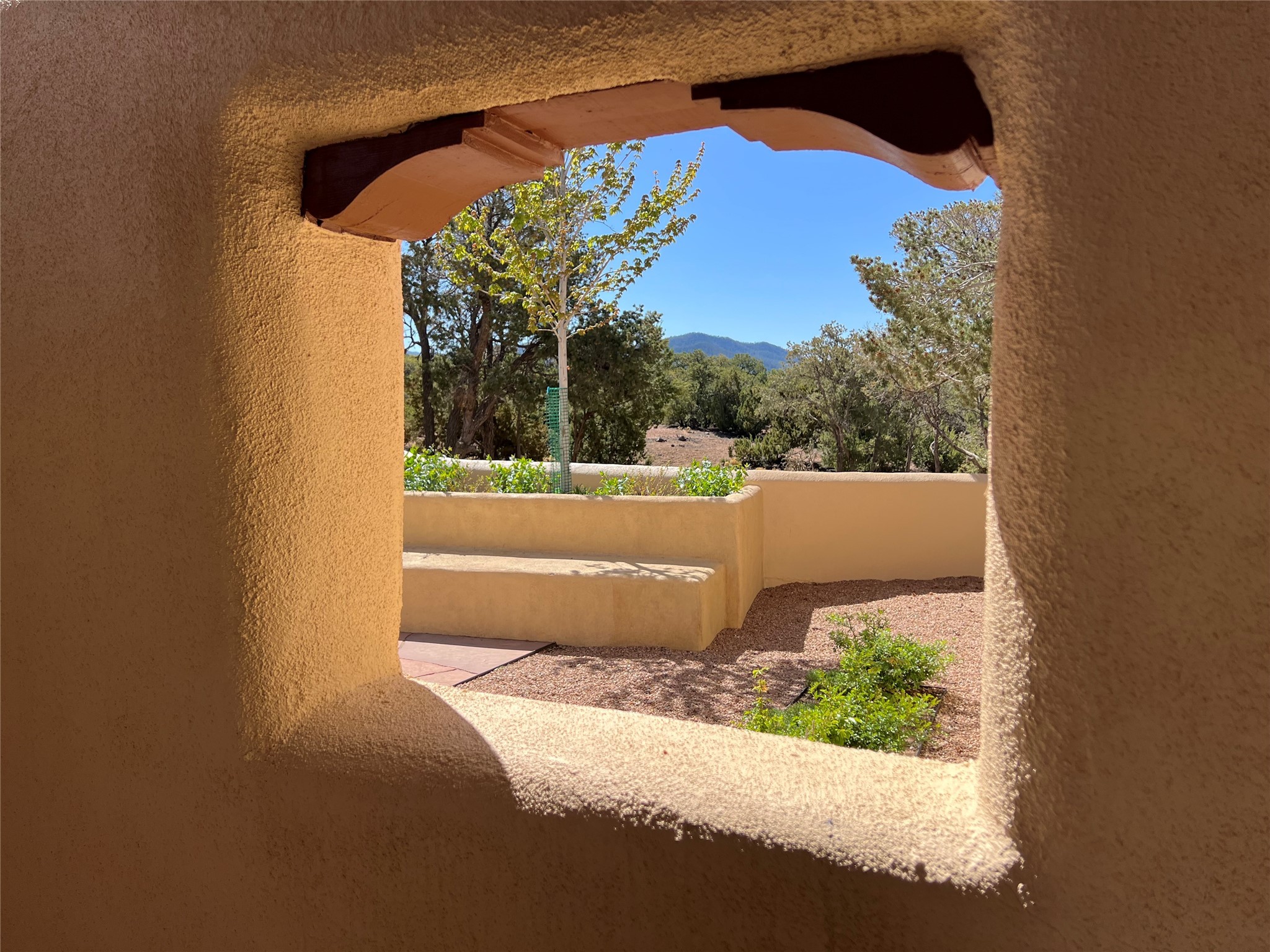 Beautiful, extensively remodeled, classic Santa Fe style home with jaw dropping panoramic mountain views on 3.4 wooded acres. Located on prestigious Circle Drive a mere 5 minute drive to downtown Santa Fe, this sensational home, built in 1936, impresses at every turn starting with the custom hand crafted iron gate, down the drive to a partially covered front entry courtyard leading to the front door and into a hallway of glistening diamond plaster walls that are throughout the house as, mostly, are the oak floors. Ahead is the spacious library/den with kiva fireplace. Through thick walled arches off the library is the formal living room beyond with its central fireplace and flanking windows and the 2 sets of French doors to bring in the light and the views; and boasting high ceilings with majestic corbels and vigas. The gourmet kitchen is entirely new with its own wet/coffee bar and nearby is an enormous pantry. Off the kitchen is a grand, heated portal and terrace to drink in the views and glory in the sunsets. The 3 bedroom suites are generously sized with remodeled bathrooms and each with glass doors to the outside. The closet in the primary bedroom is a wonder to behold and has its own washer and dryer. The 4th bedroom, currently set up as an office, is newly built and has some of the best views. A downstairs flex room (was a bedroom) is set up for exercise with adjacent laundry room. The heated detached studio nestles in the trees off the driveway and has multiple uses or, with adaption, could be another garage. A luxury home worthy of the name!