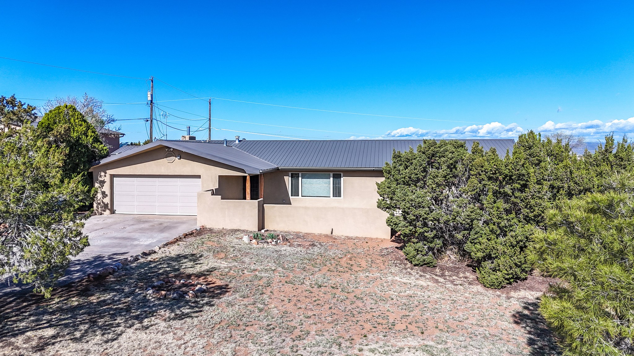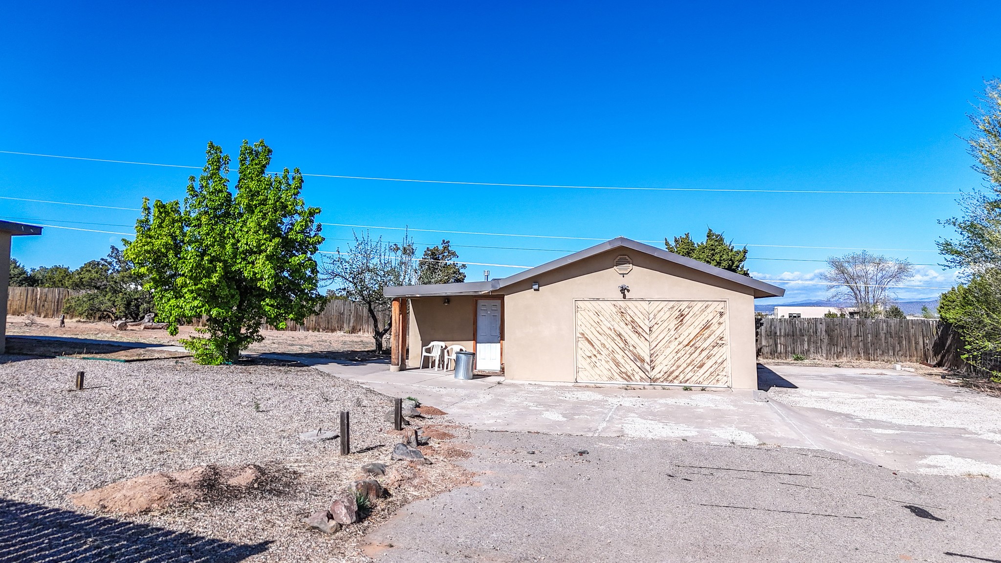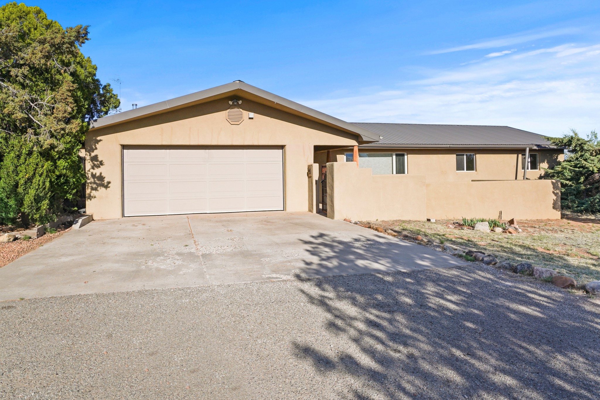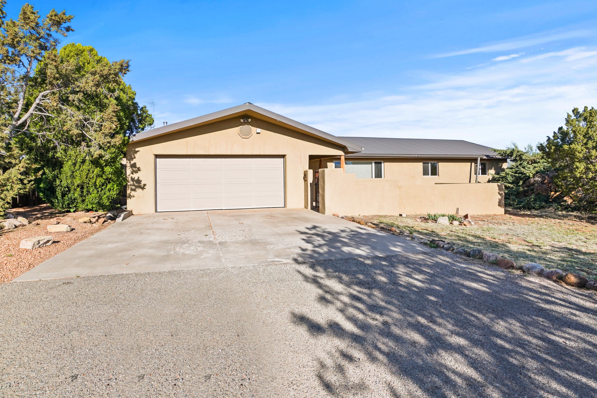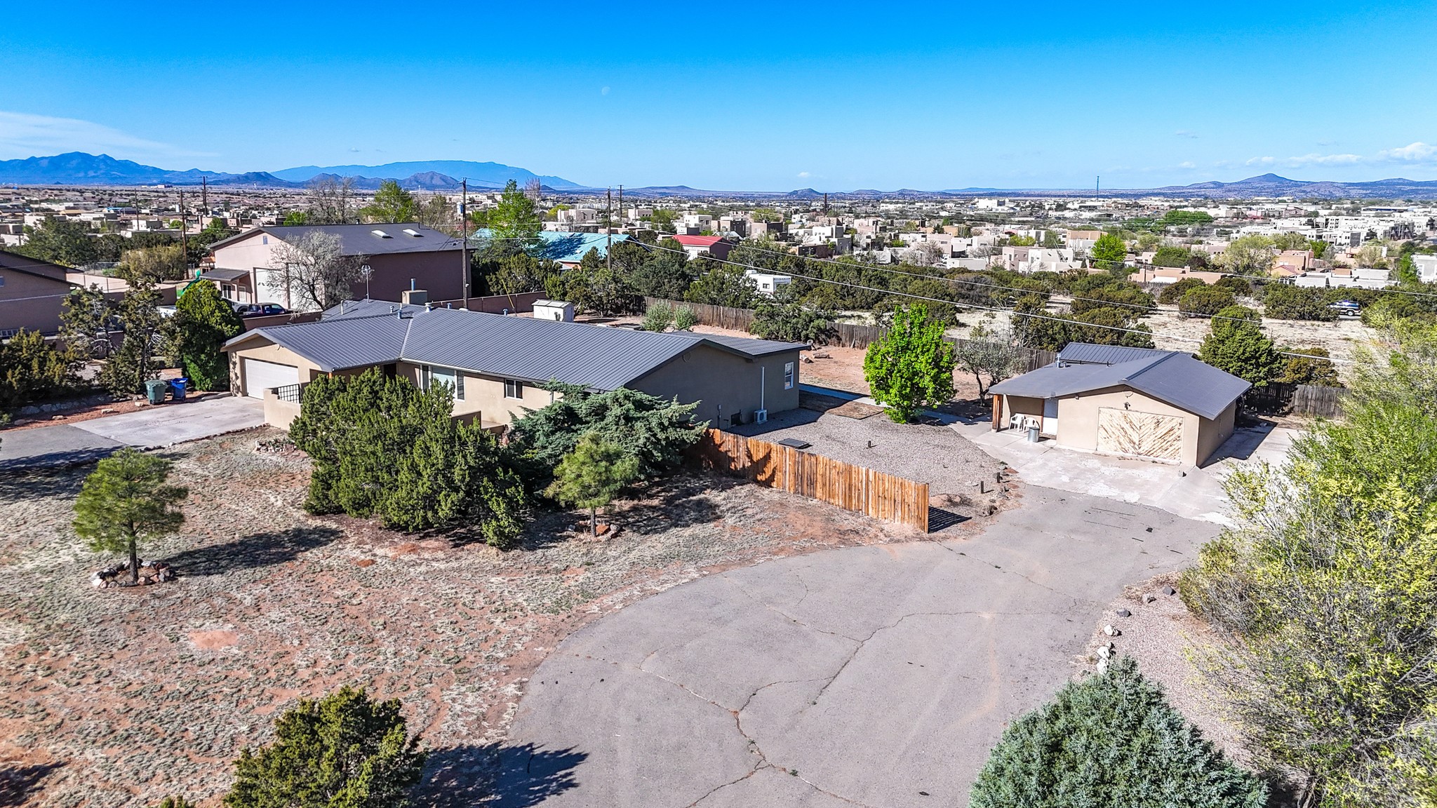 Amazing opportunity to own this versatile large home on a spacious rare one acre property with panoramic views in the heart of Santa Fe. Highly desirable area in the city limits with close proximity to everything that Santa Fe has to offer. Has a detached studio/workshop and dual driveways which is ideal for trade professionals or anyone seeking a flexible work setup with ample space to work with. The open-concept layout centers around a custom kitchen featuring a large granite island, stainless steel appliances, custom wood cabinetry, a built-in desk, and an oversized pantry, making it the perfect space for both everyday living and entertaining. The primary suite is generously sized and includes a private sitting area, along with a luxurious en-suite bathroom that features a walk-in shower and a classic pedestal tub. Natural gas fireplace in living area. In addition to the main home, this property includes several detached structures not included in the listed square footage, adding exceptional value and utility. A detached studio/workshop complete with its own bathroom, heating system, and water heater provides the ideal setup for a private office. The large detached workshop includes a utility sink and sits next to a separate storage unit, all accessible via a second private driveway--an excellent setup for equipment storage, tools, or home-based business operations.Additional features include an electric front gate with key fob entry, a custom front gate for added security, and an attached two-car garage. The lot offers plenty of space for RV or boat parking. Whether you need dedicated workspace, storage for your business, or are simply looking for a multi-functional property with income potential, this home checks all the boxes and offers a unique opportunity for both personal and professional use. Come see for yourself why this spectacular property is one of the great values available in todays market.