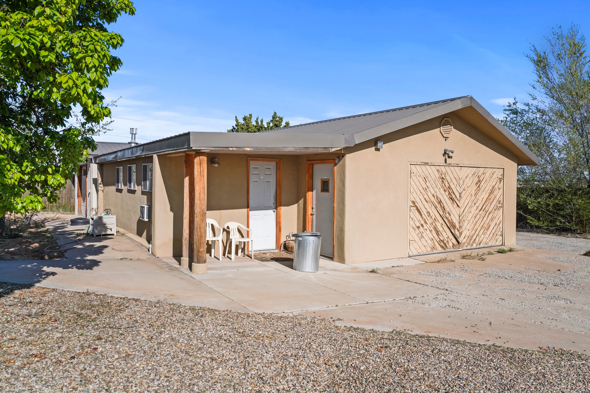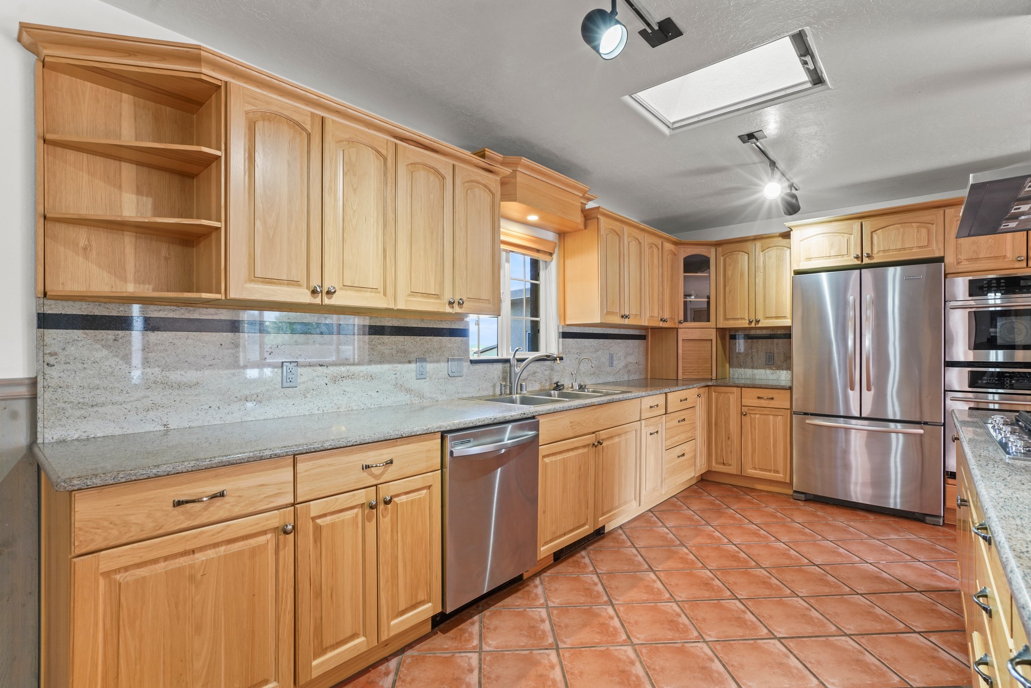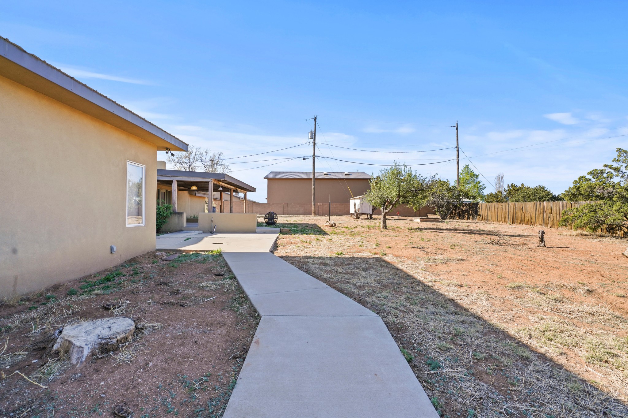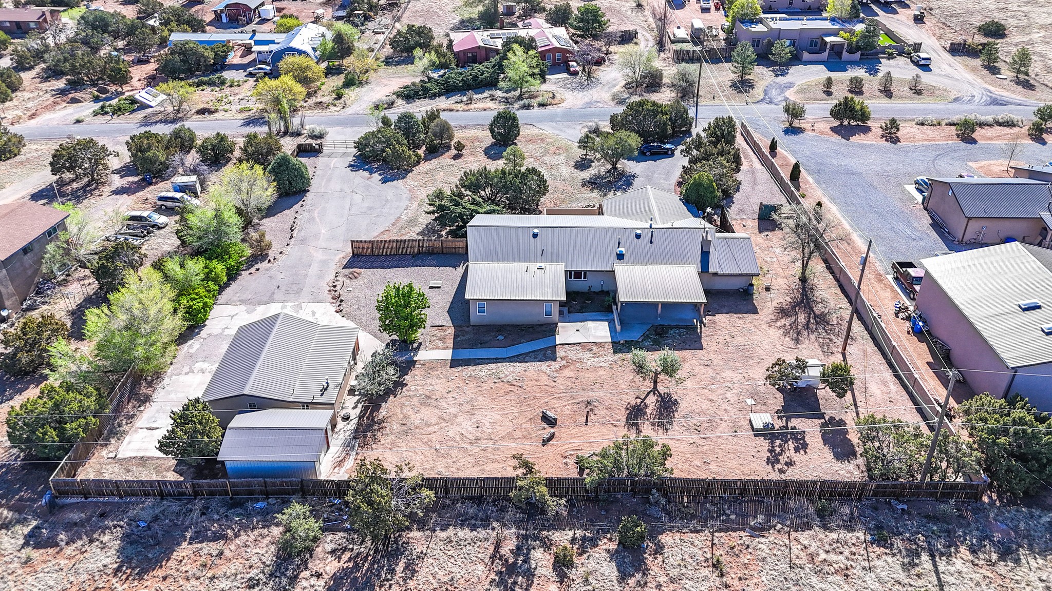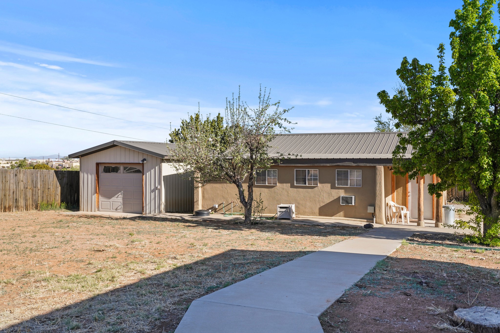 Amazing opportunity to own this versatile large home on a spacious rare one acre property with panoramic views in the heart of Santa Fe. Highly desirable area in the city limits with close proximity to everything that Santa Fe has to offer. Has a detached studio/workshop and dual driveways which is ideal for trade professionals or anyone seeking a flexible work setup with ample space to work with. The open-concept layout centers around a custom kitchen featuring a large granite island, stainless steel appliances, custom wood cabinetry, a built-in desk, and an oversized pantry, making it the perfect space for both everyday living and entertaining. The primary suite is generously sized and includes a private sitting area, along with a luxurious en-suite bathroom that features a walk-in shower and a classic pedestal tub. Natural gas fireplace in living area. In addition to the main home, this property includes several detached structures not included in the listed square footage, adding exceptional value and utility. A detached studio/workshop complete with its own bathroom, heating system, and water heater provides the ideal setup for a private office. The large detached workshop includes a utility sink and sits next to a separate storage unit, all accessible via a second private driveway--an excellent setup for equipment storage, tools, or home-based business operations.Additional features include an electric front gate with key fob entry, a custom front gate for added security, and an attached two-car garage. The lot offers plenty of space for RV or boat parking. Whether you need dedicated workspace, storage for your business, or are simply looking for a multi-functional property with income potential, this home checks all the boxes and offers a unique opportunity for both personal and professional use. Come see for yourself why this spectacular property is one of the great values available in todays market.