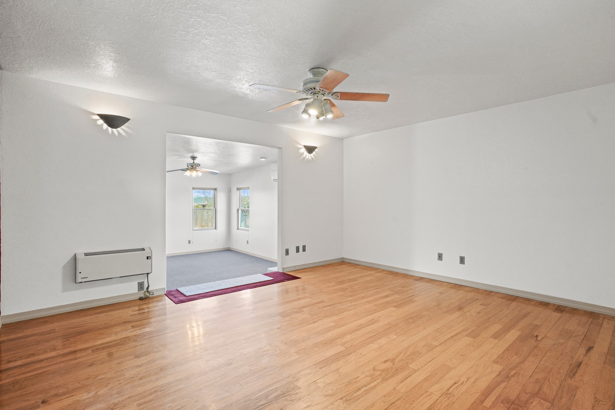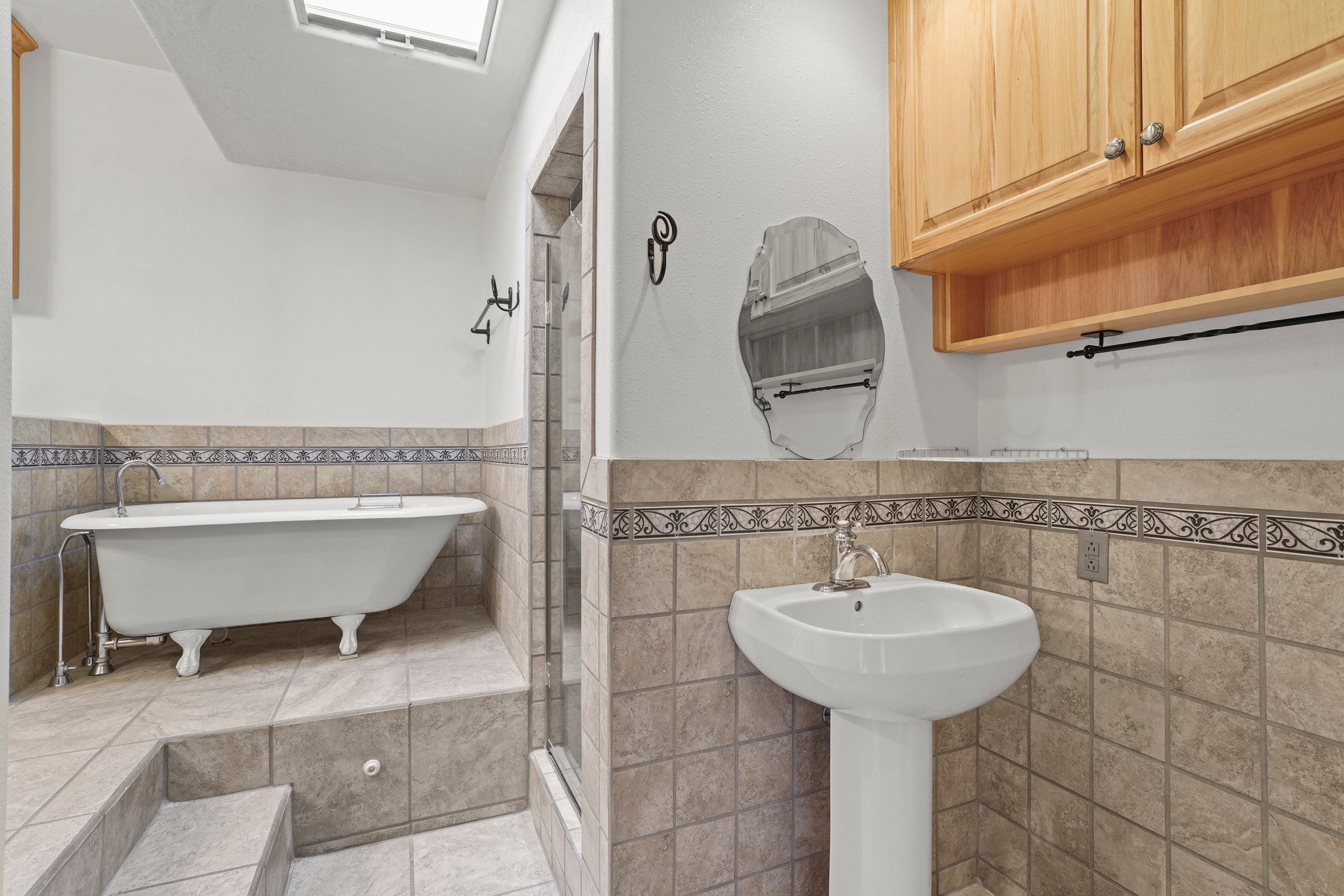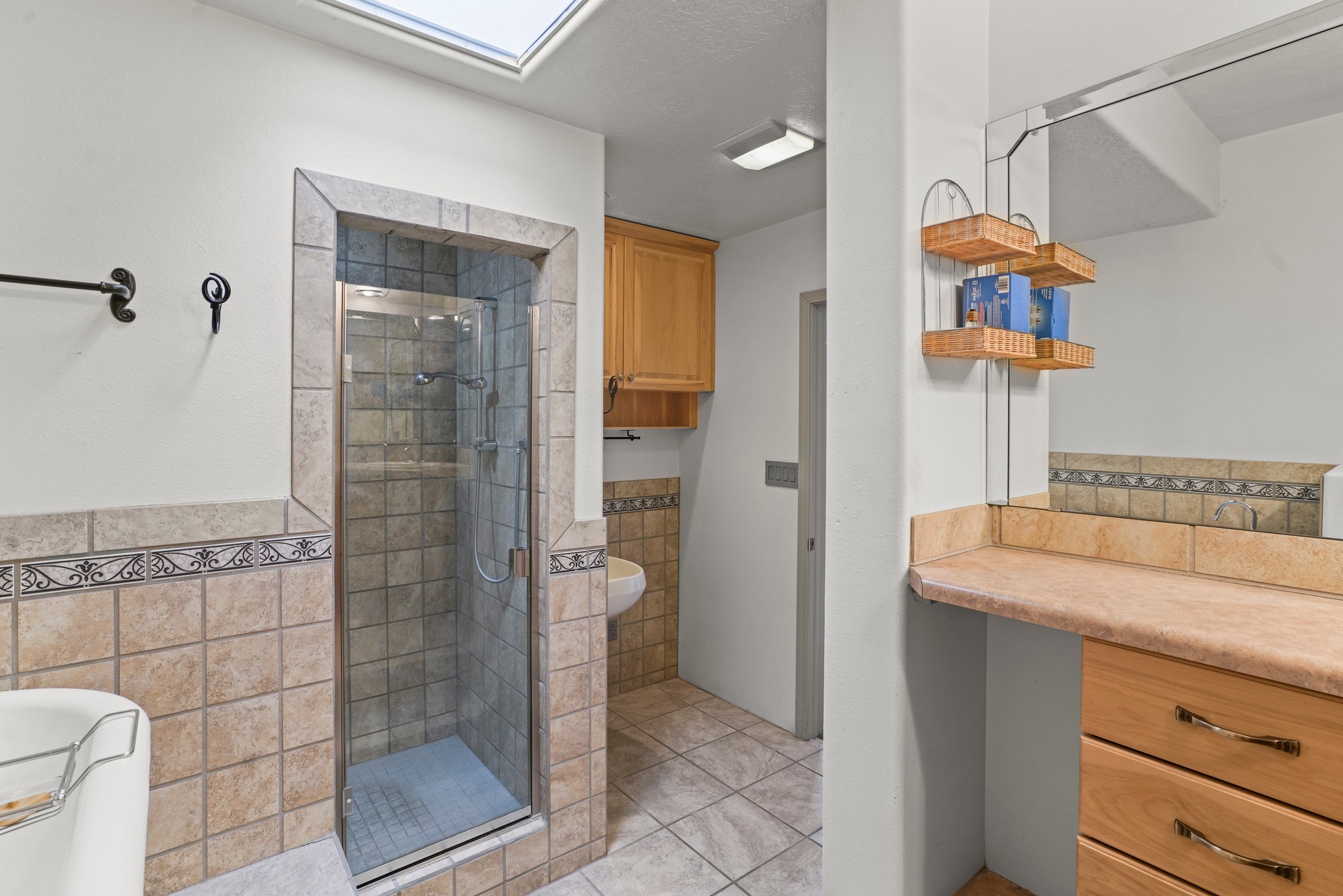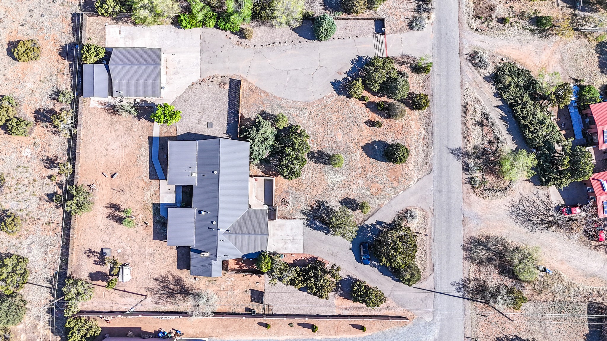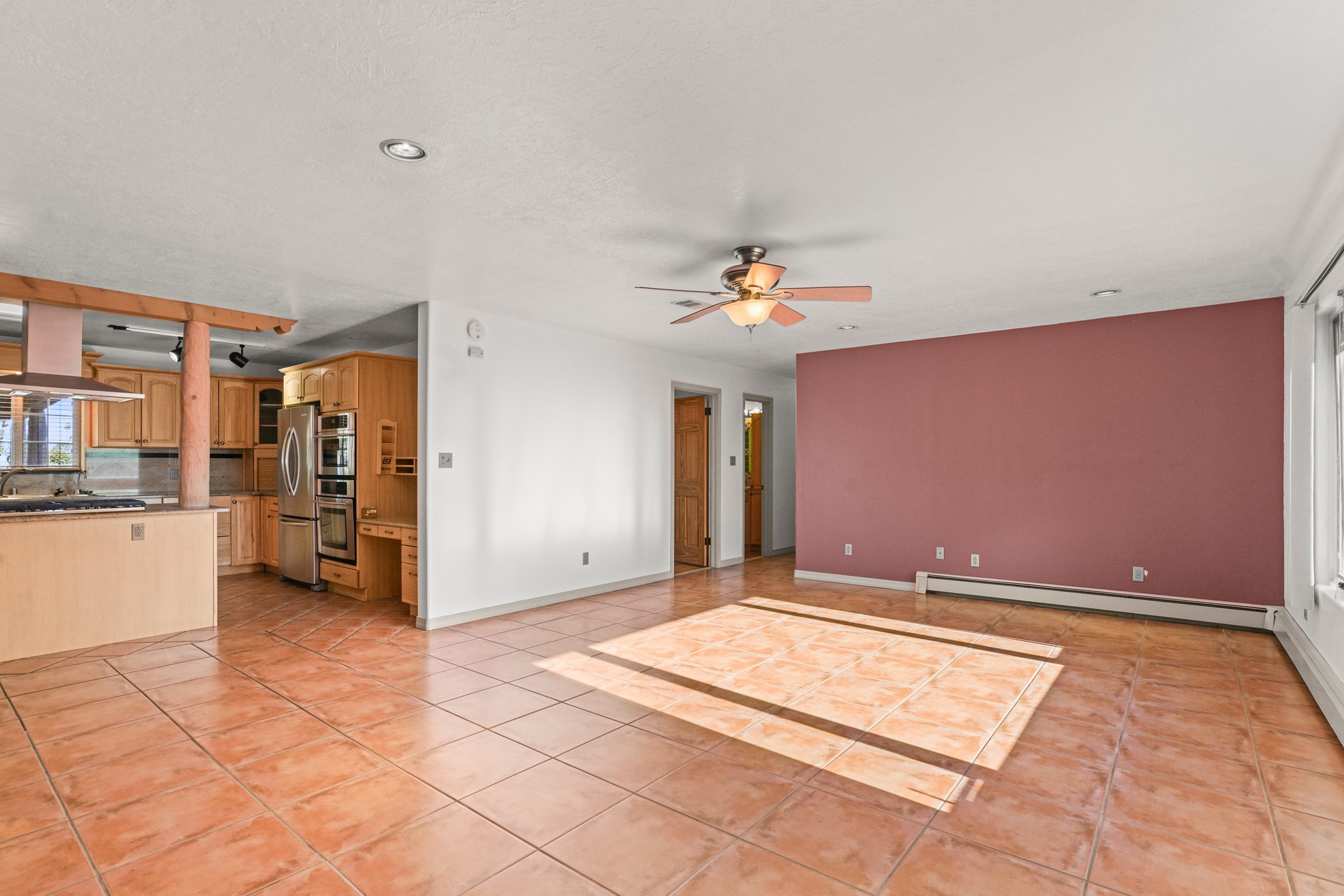Amazing opportunity to own this versatile large home on a spacious rare one acre property with panoramic views in the heart of Santa Fe. Highly desirable area in the city limits with close proximity to everything that Santa Fe has to offer. Has a detached studio/workshop and dual driveways which is ideal for trade professionals or anyone seeking a flexible work setup with ample space to work with. The open-concept layout centers around a custom kitchen featuring a large granite island, stainless steel appliances, custom wood cabinetry, a built-in desk, and an oversized pantry, making it the perfect space for both everyday living and entertaining. The primary suite is generously sized and includes a private sitting area, along with a luxurious en-suite bathroom that features a walk-in shower and a classic pedestal tub. Natural gas fireplace in living area. In addition to the main home, this property includes several detached structures not included in the listed square footage, adding exceptional value and utility. A detached studio/workshop complete with its own bathroom, heating system, and water heater provides the ideal setup for a private office. The large detached workshop includes a utility sink and sits next to a separate storage unit, all accessible via a second private driveway--an excellent setup for equipment storage, tools, or home-based business operations.Additional features include an electric front gate with key fob entry, a custom front gate for added security, and an attached two-car garage. The lot offers plenty of space for RV or boat parking. Whether you need dedicated workspace, storage for your business, or are simply looking for a multi-functional property with income potential, this home checks all the boxes and offers a unique opportunity for both personal and professional use. Come see for yourself why this spectacular property is one of the great values available in todays market.