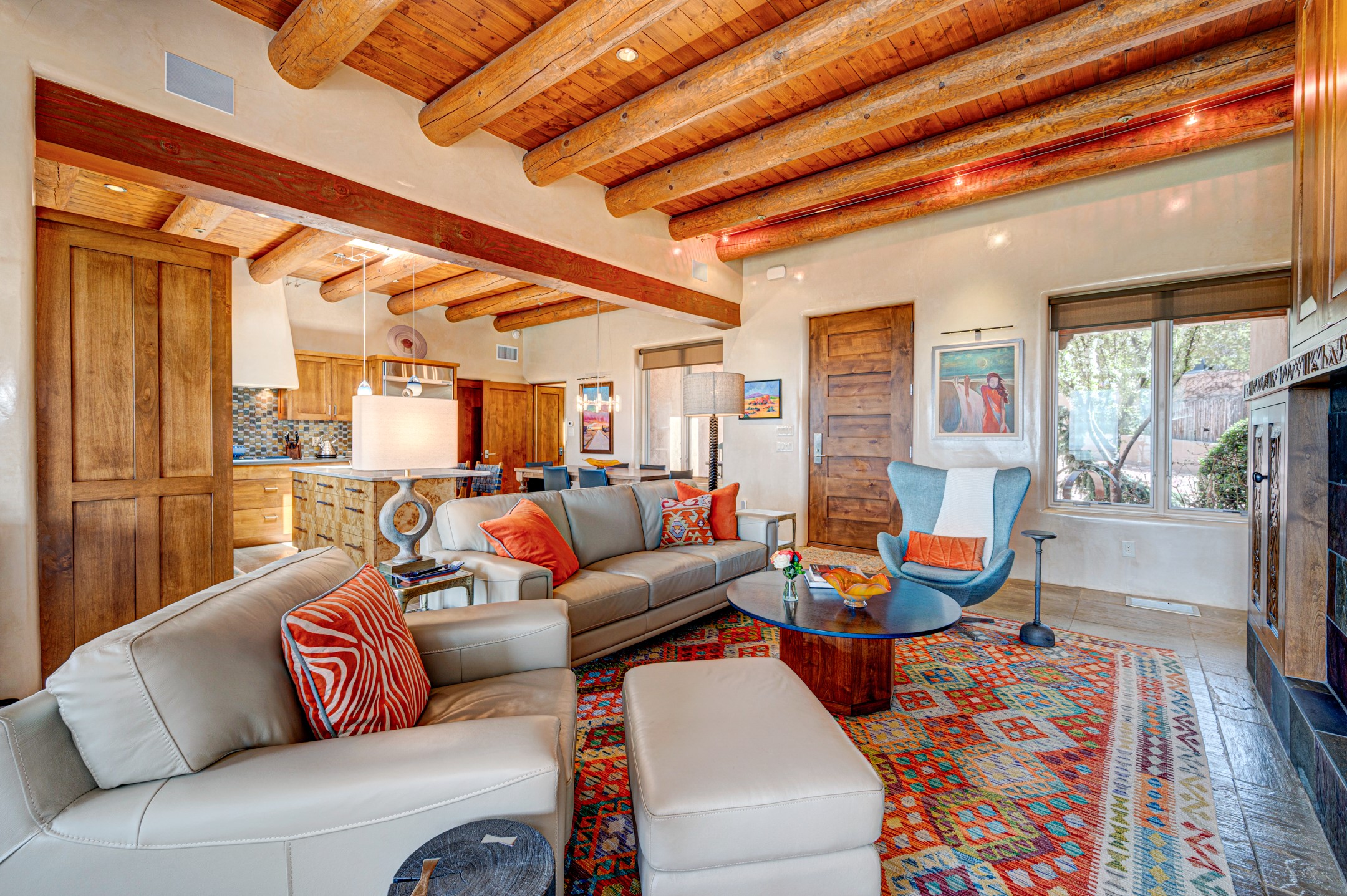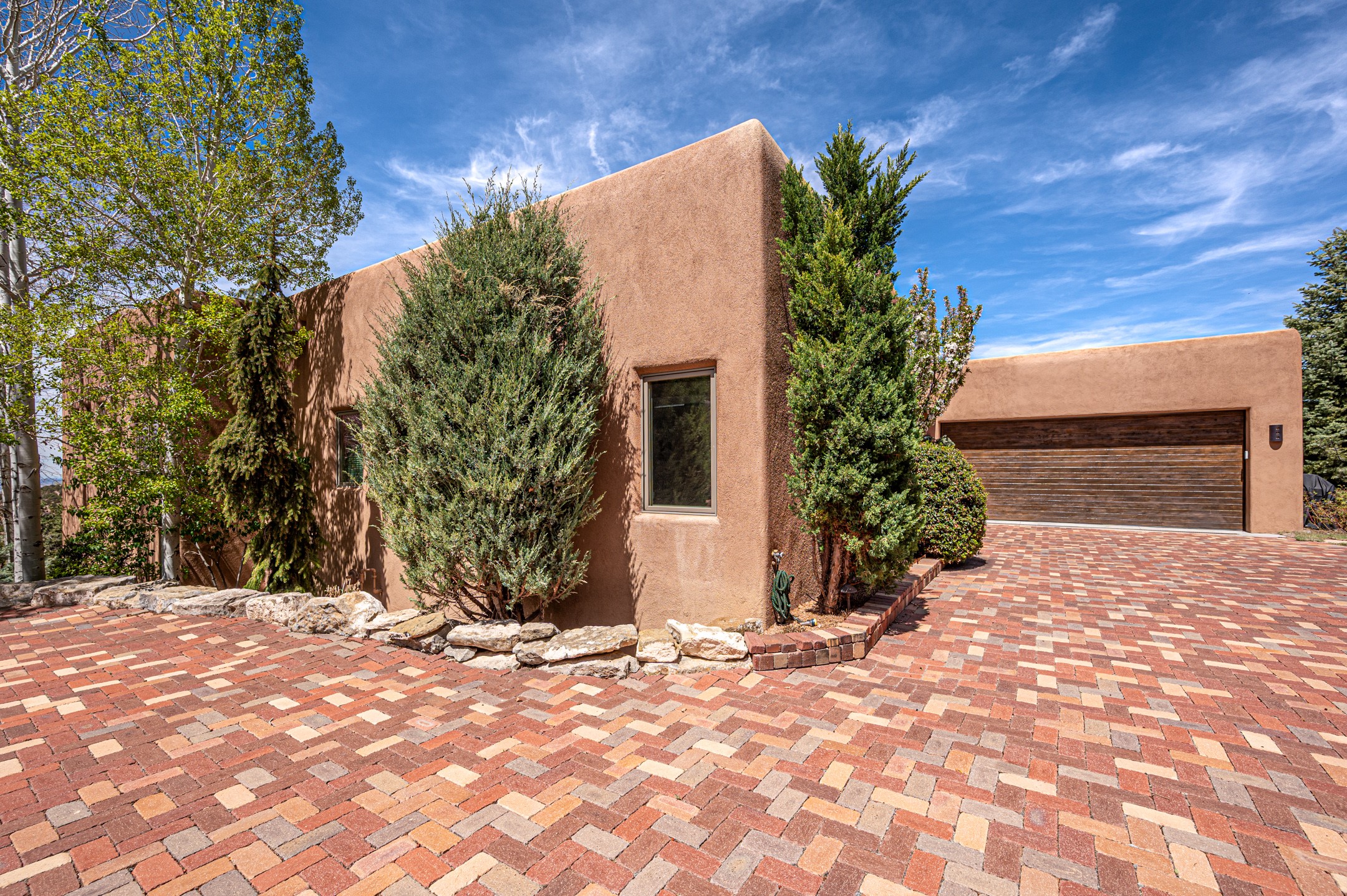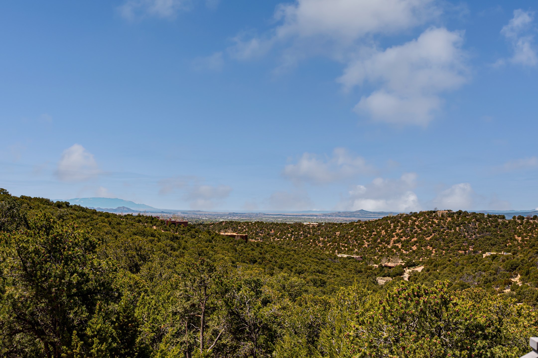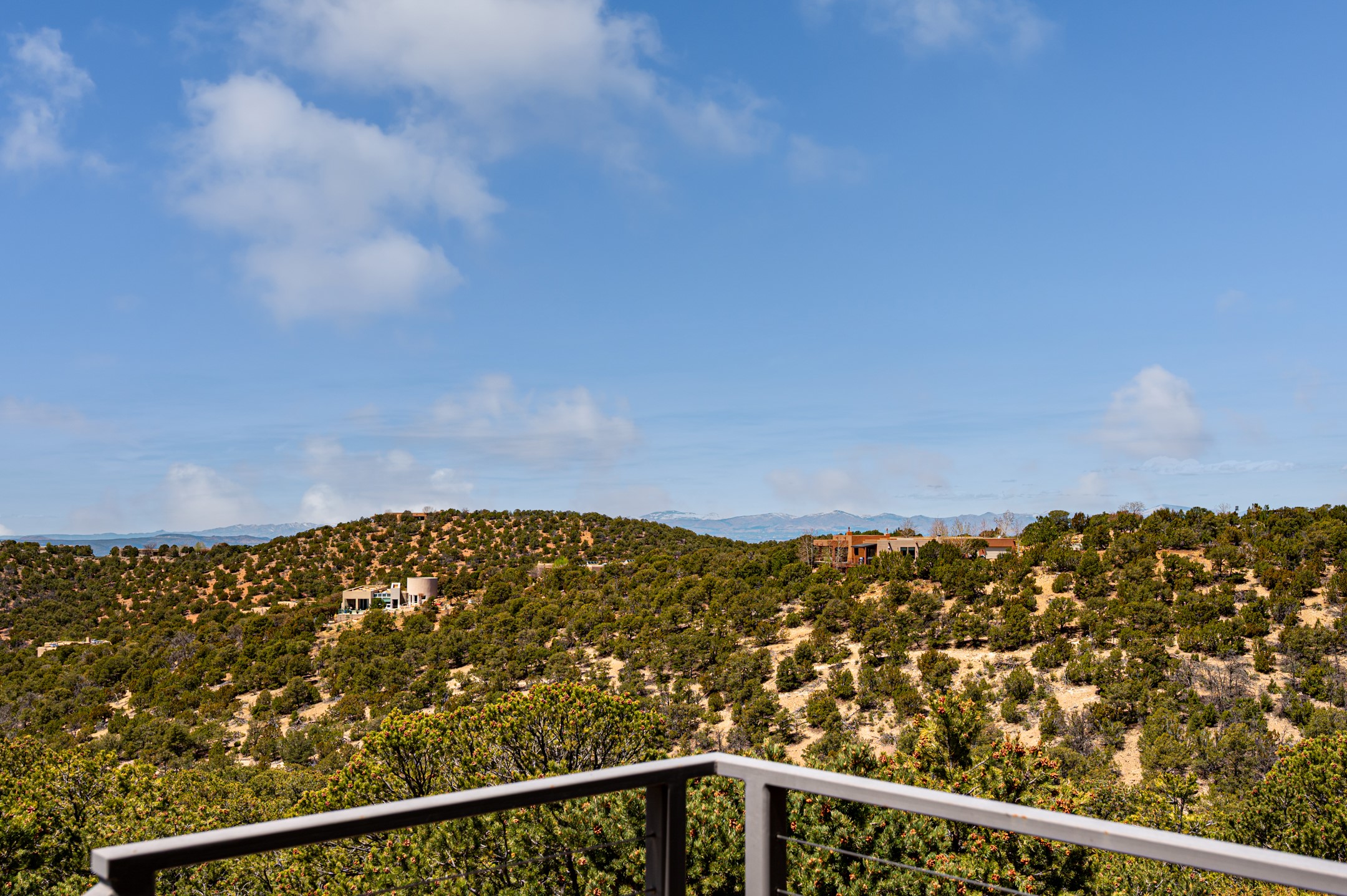 Located in the exclusive, gated High Summit community above Santa Fe, this stunning residence offers a rare blend of privacy, convenience, and breathtaking natural beauty and views. Located just minutes from Ten Thousand Waves, the Santa Fe Ski Basin, and the renowned Dale Ball Trail system--with direct access from your own backyard--this home is a true sanctuary for those who cherish the outdoors and Santa Fe's iconic landscape. Set against the serene backdrop of the Santa Fe National Forest, with sweeping views of the Sandia and Jemez Mountains, sunsets, and city lights, this thoughtfully designed home exemplifies the best of Santa Fe style. Inside, rich architectural details abound--vigas and beams, smooth plaster walls, custom cabinetry and doors, and natural stone flooring create a warm, refined atmosphere. This home is appointed with high-end finishes throughout. The gourmet kitchen is equipped with premium appliances, a generous island, and breakfast bar--ideal for everyday living or effortless entertaining. A gas log fireplace anchors the living room, while a cozy kiva fireplace adds charm to the bedroom suite. Comfort meets efficiency with central cooling, as well as radiant in-floor heating. The beautifully landscaped grounds are complemented by an outdoor view portal with automatic sunshades, seamlessly blending indoor and outdoor living. Built in 2013, the home has 2 bedrooms, 2 baths, private office/study/den plus an additional room currently the perfect home gym. Also included is a large storage room with built-in shelving and 2 car garage. All of this, with paved, maintained roads and city utilities--just five miles from the heart of downtown Santa Fe, Canyon Road's galleries, and world-class dining. A unique opportunity to own an elegant mountain escape in one of Santa Fe's most desirable enclaves.