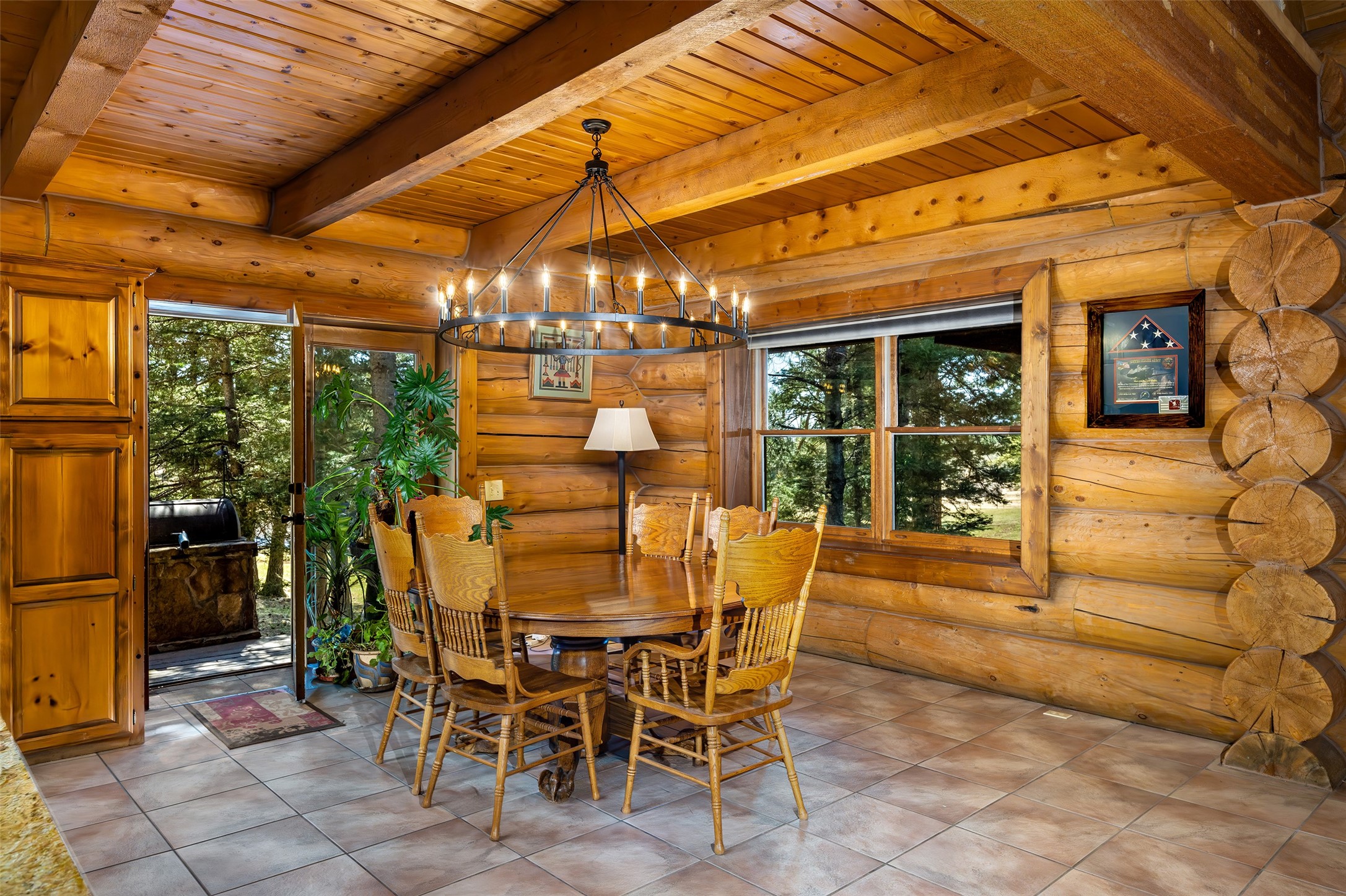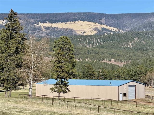 A rare opportunity to own a legacy estate steps from Carson National Forest, this exceptional property spans up to 80 acres of private alpine woods and open meadows-a true retreat in Northern New Mexico. The handcrafted log home is ideally positioned to capture sweeping views, total serenity, and the adventurous spirit of the region.Inside, rustic elegance shines with soaring tongue-and-groove ceilings, a striking rock fireplace, and open living spaces designed for comfort. The country-style kitchen features custom cabinetry, rich countertops, and ample storage. Outside, covered porches and wraparound decks offer year-round enjoyment of the mountain setting. Wildlife is part of daily life-watch elk and deer from your porch. Whether riding side-by-sides in summer, snowmobiling in winter, or enjoying the seasons, this property invites full immersion in nature. The lower level includes a large family room for guests or recreation. Amenities: game-processing room, 50x100 barn with horse stalls, pond, RV hook-up, oversized 1-car garage, and an owned vendor-flexible propane tank. The 80 acres have qualified for NM Game & Fish elk tags (Secondary Management Zone) for the past eight years. Forest Rd 76 lies in GMU 48, on the boundary of GMUs 48 and 49. Located on a quiet Forest Service road, the estate is a gateway to Carson National Forest-perfect for hiking, horseback riding, and exploring. Despite the seclusion, it's only 7 minutes to Angel Fire Resort and 10 minutes to the jet-capable Angel Fire Airport. Flexible acreage options available. More than a home-it's a generational sanctuary and smart investment in Northern New Mexico living.